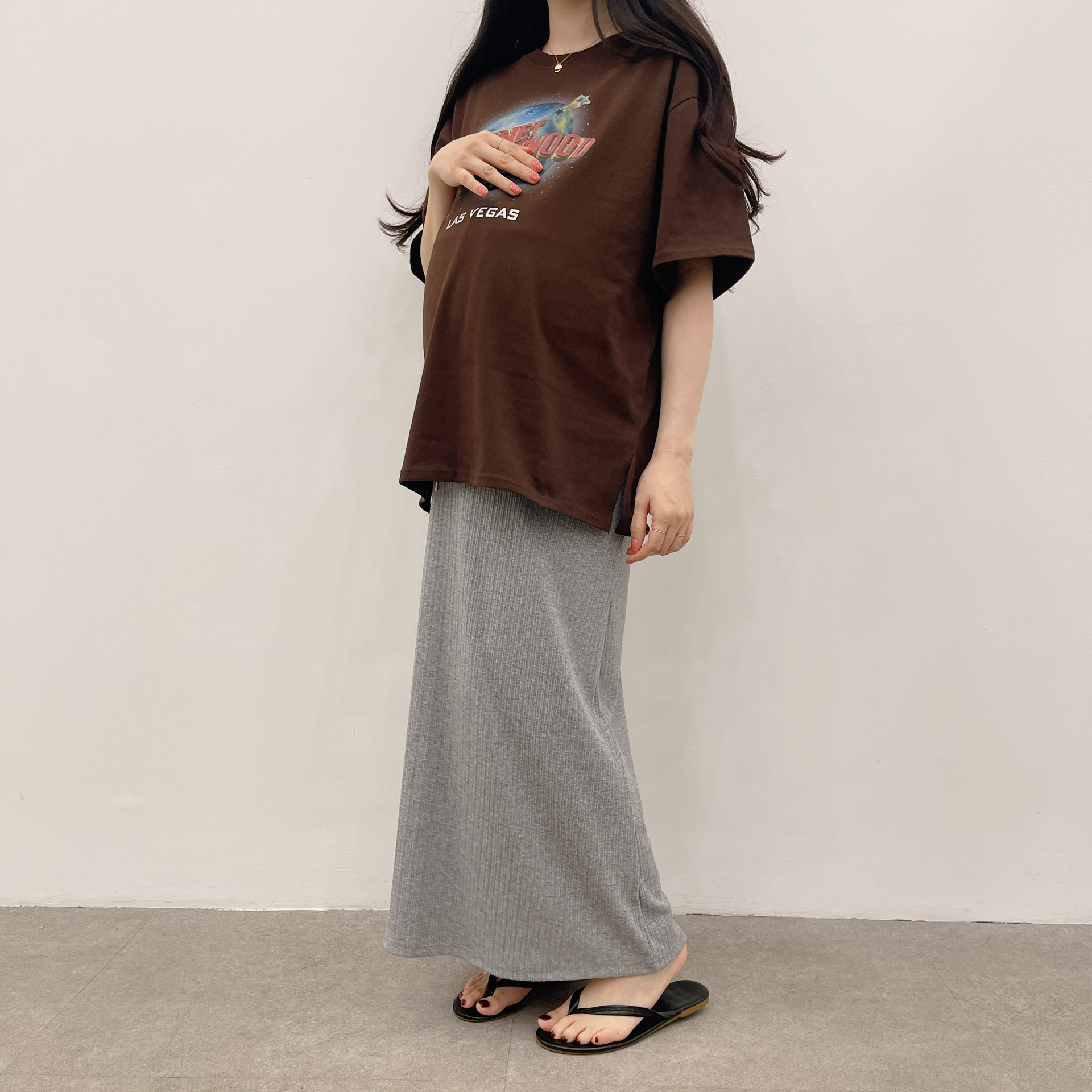 플래닛반팔T(브라운)+미쯔골지스커트(그레이)