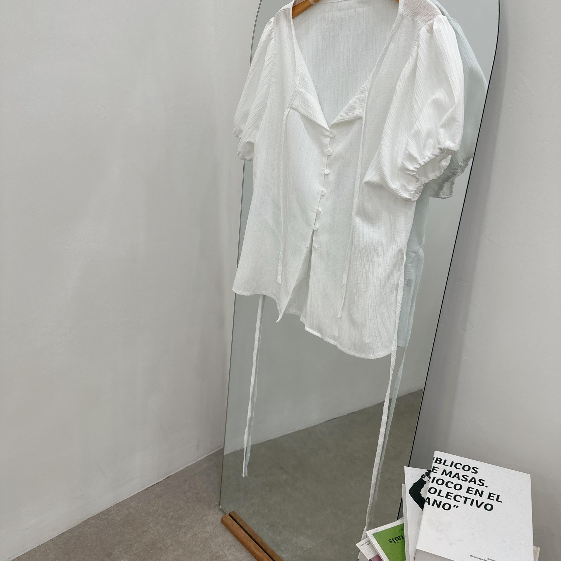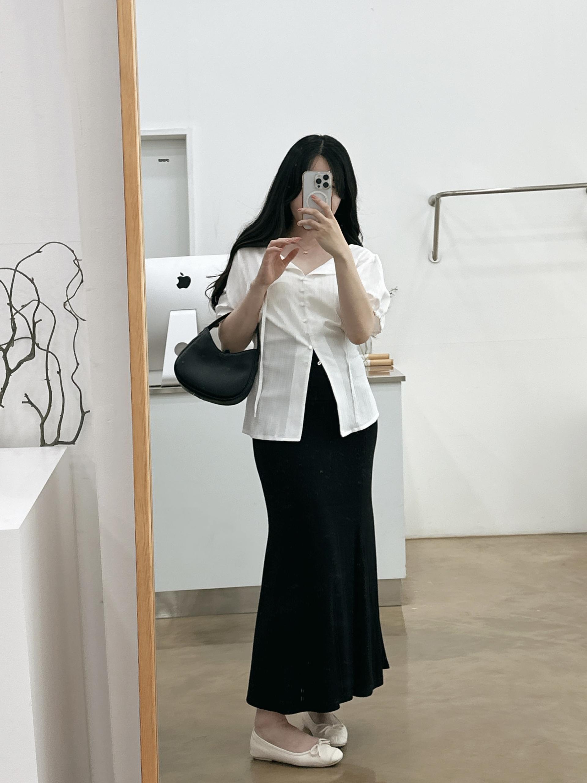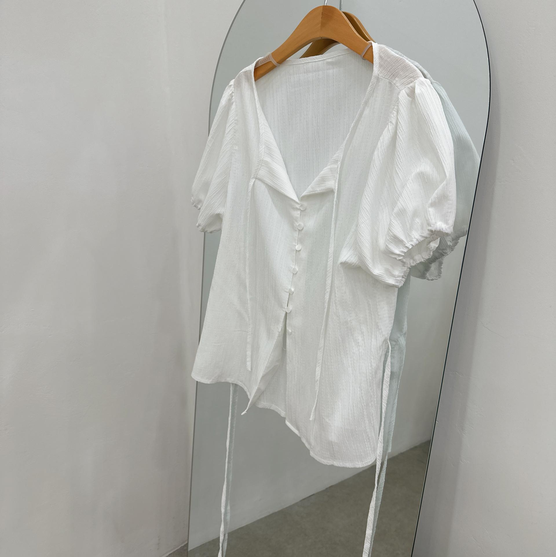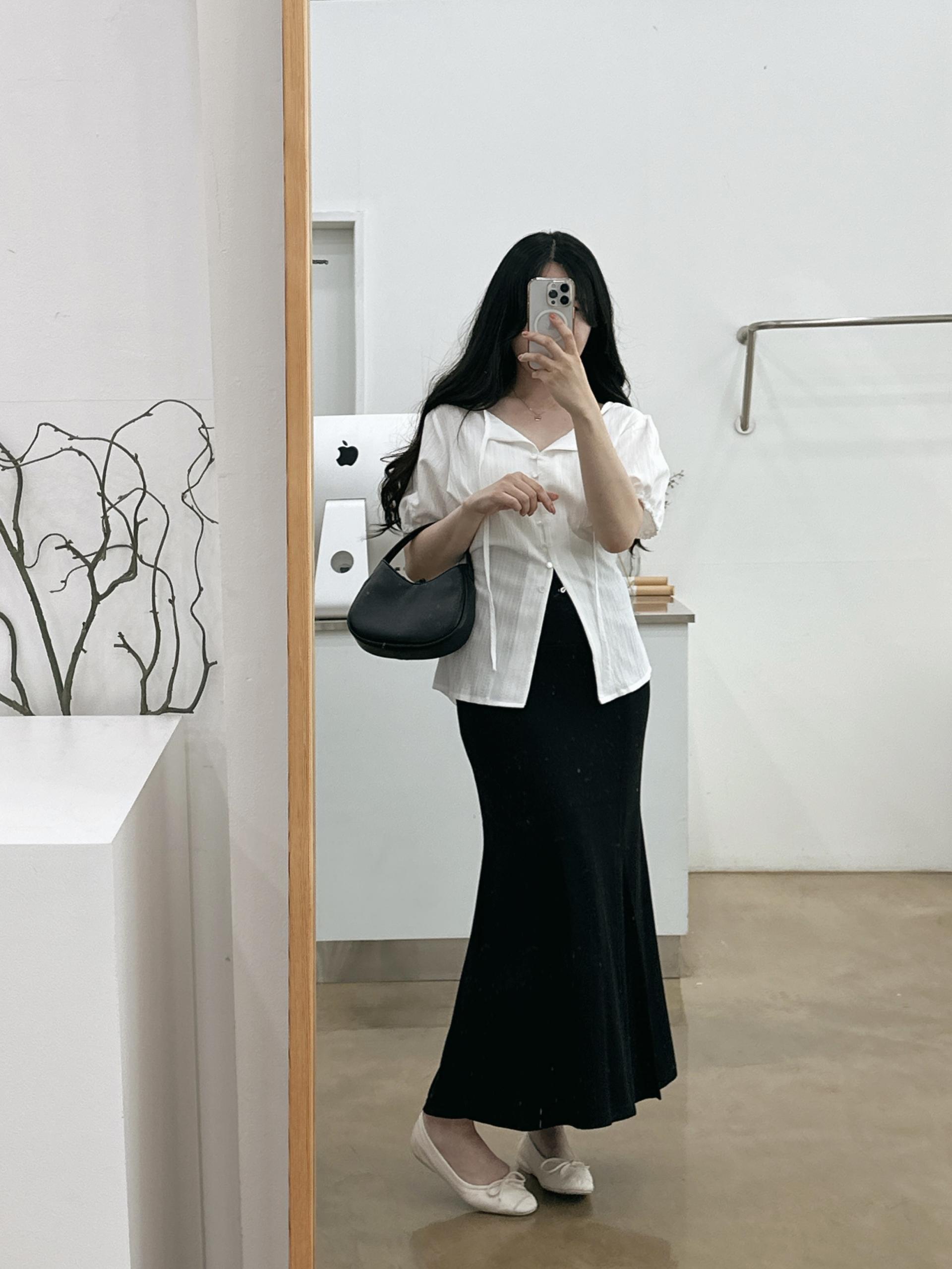 부드러운콩단추라 잠그고 풀고 편하답니다:) 옆 끈으로 뒤로 살짝 묶어주시면 세상날씬한예쁜핏 D라인부터 출산후까지 완벽하게 입으실 수 있는 블라우스입니다!