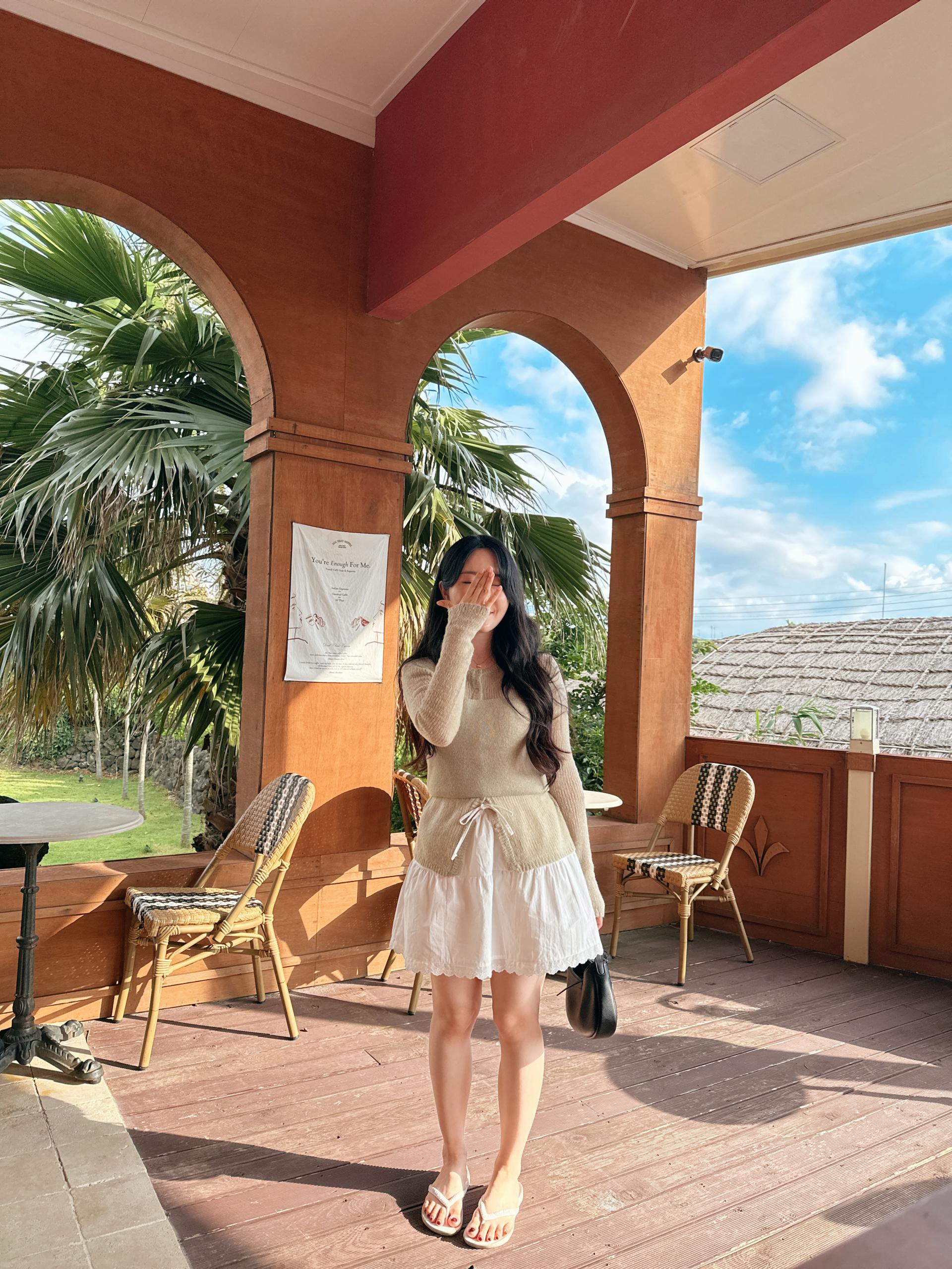 - 크림/아이보리/화이트계열 원단, 니트류의 경우 미세한 잡사가 끼어있을 수 있습니다. 원단자체의 특성상 불가피한 부분이니 참고 바랍니다.