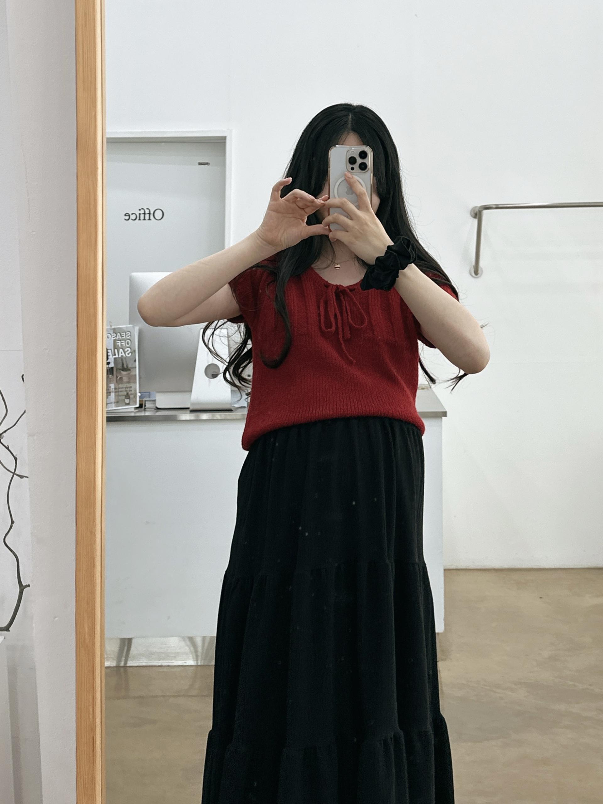 폭닥폭닥 까슬거림없이 입는 반팔니트입니다! 러블리하면서 귀여운느낌을 담은 가을니트입니다:)
