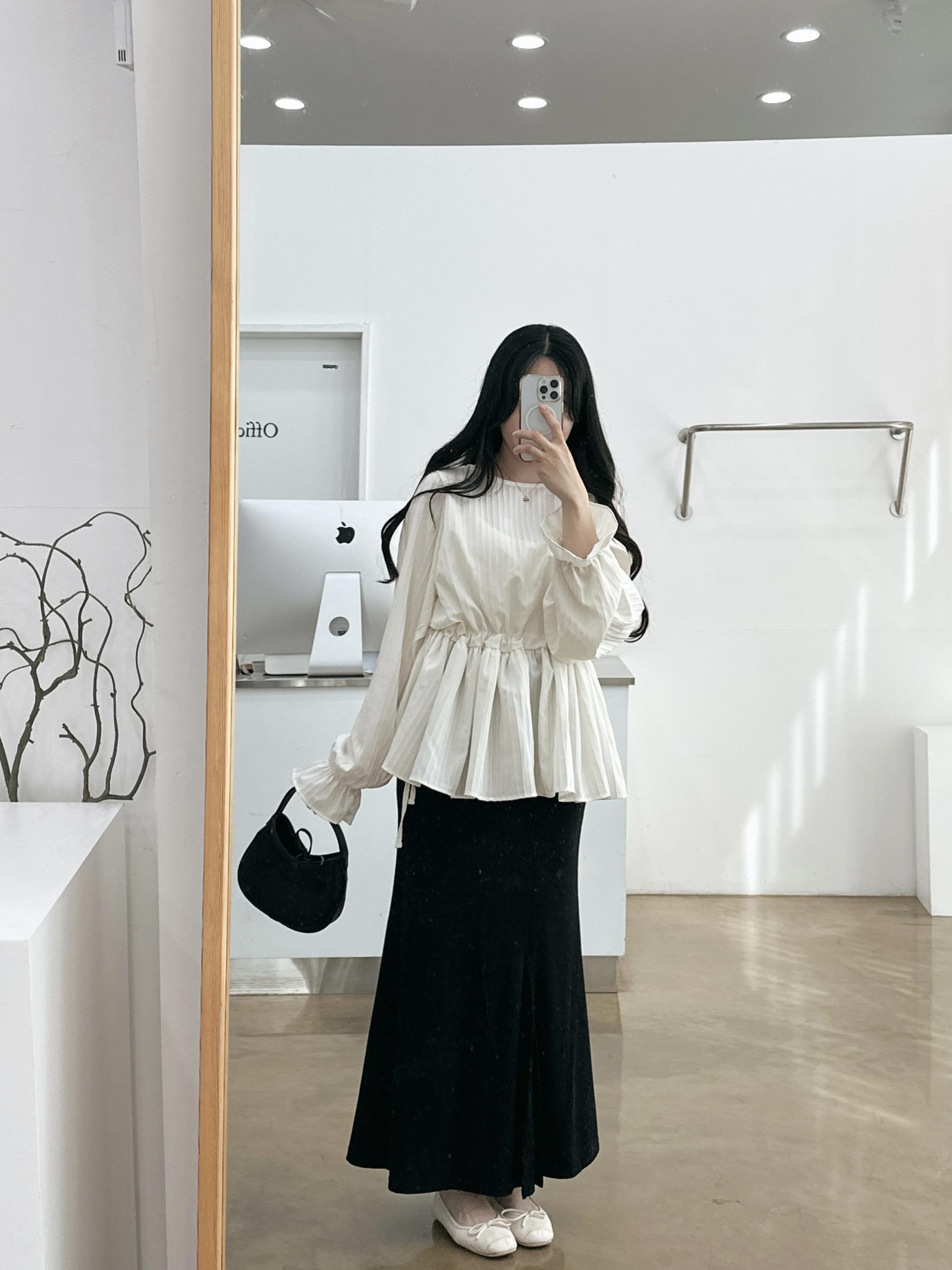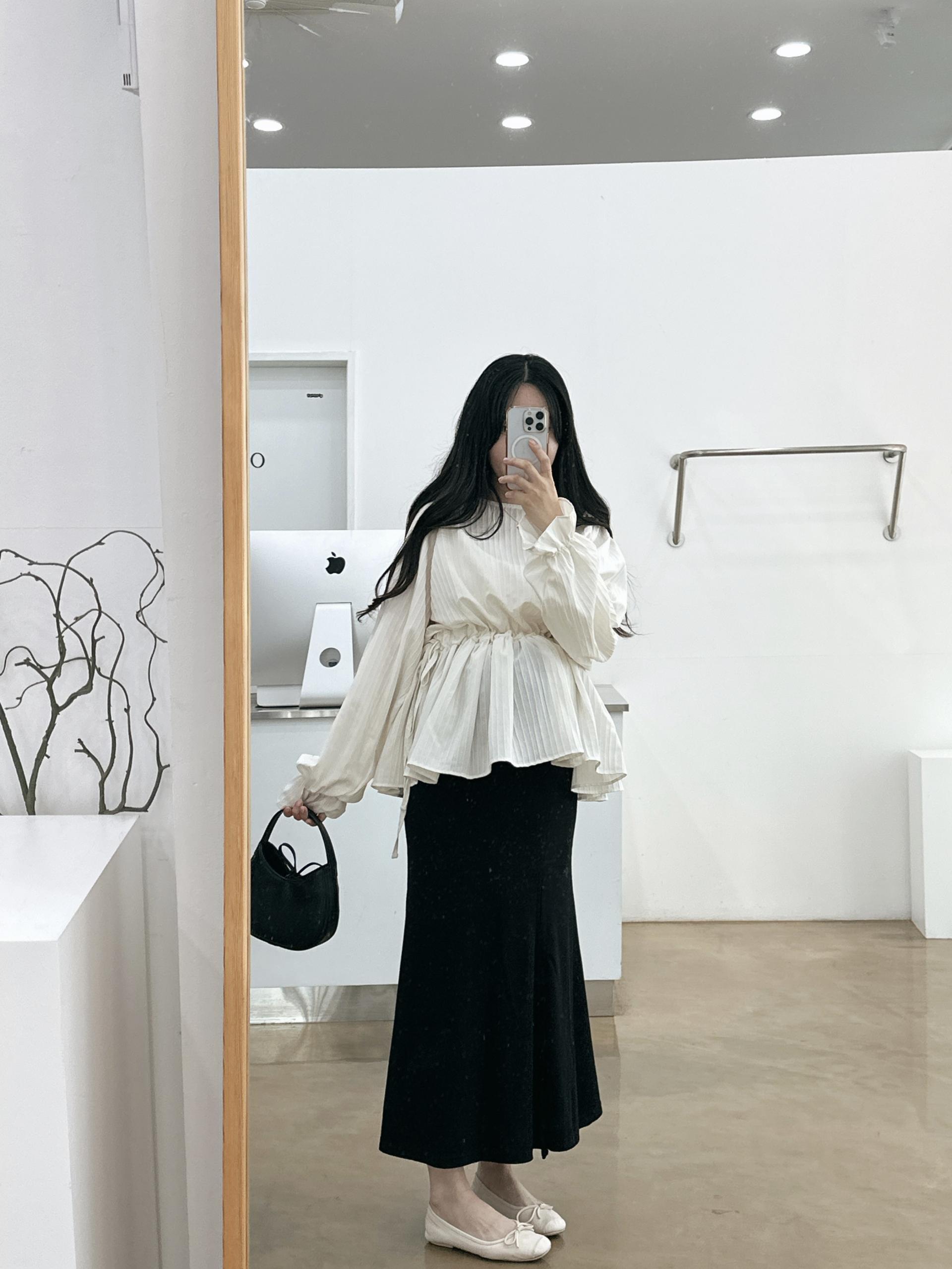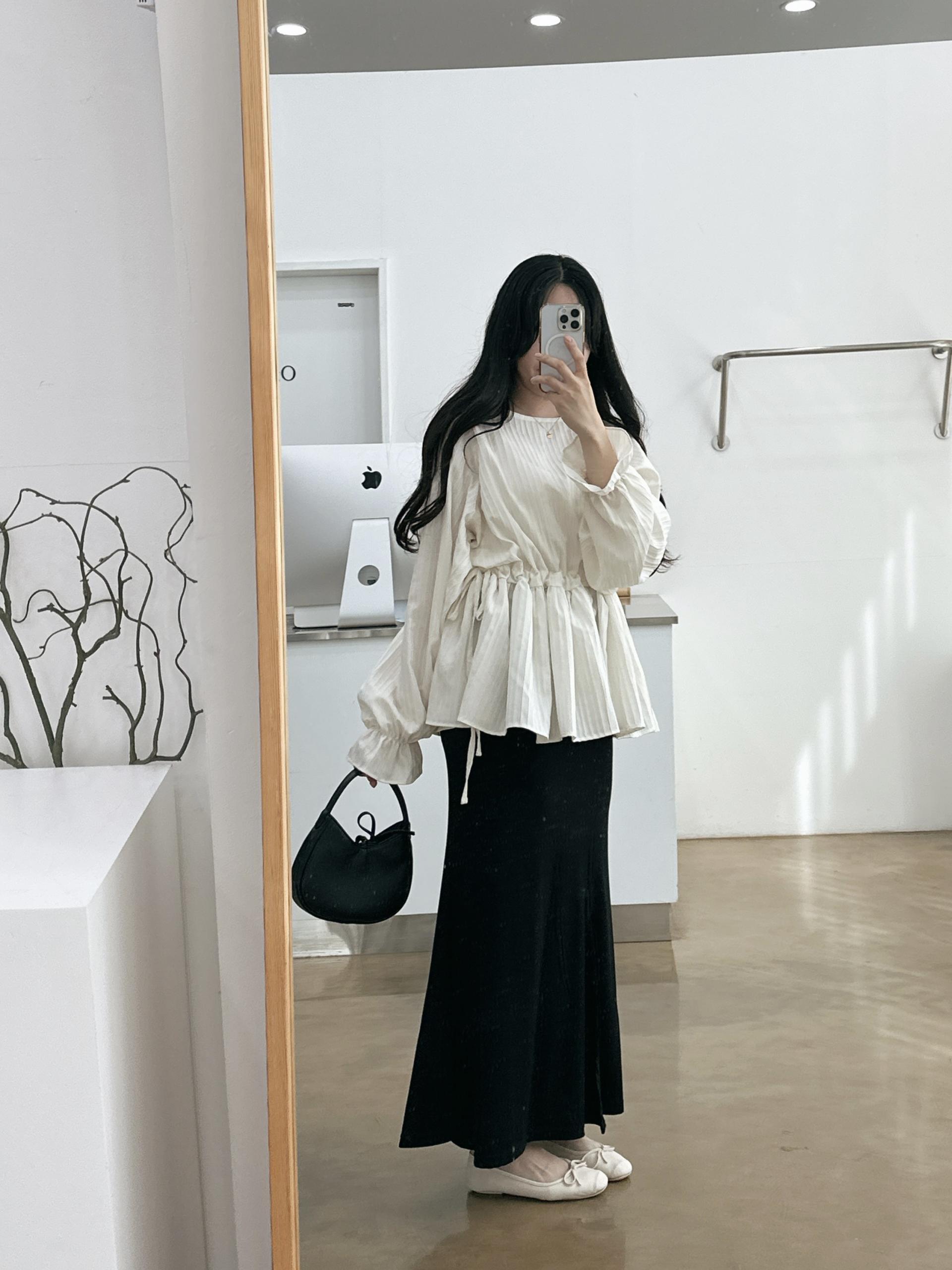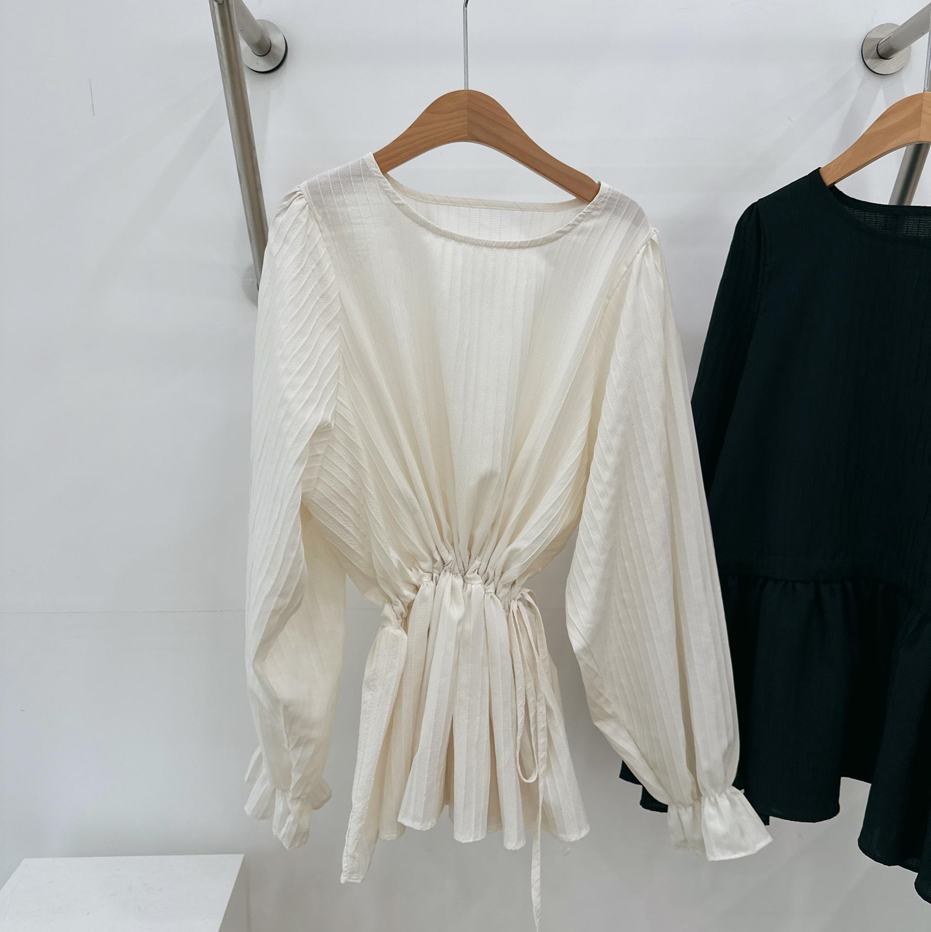 사이즈 좋은 허리스트링 블라우스입니다 러블리한느낌의 휘뚜루마뚜루 요기죠기 코디하기 좋은 블라우스! 추천드려요!