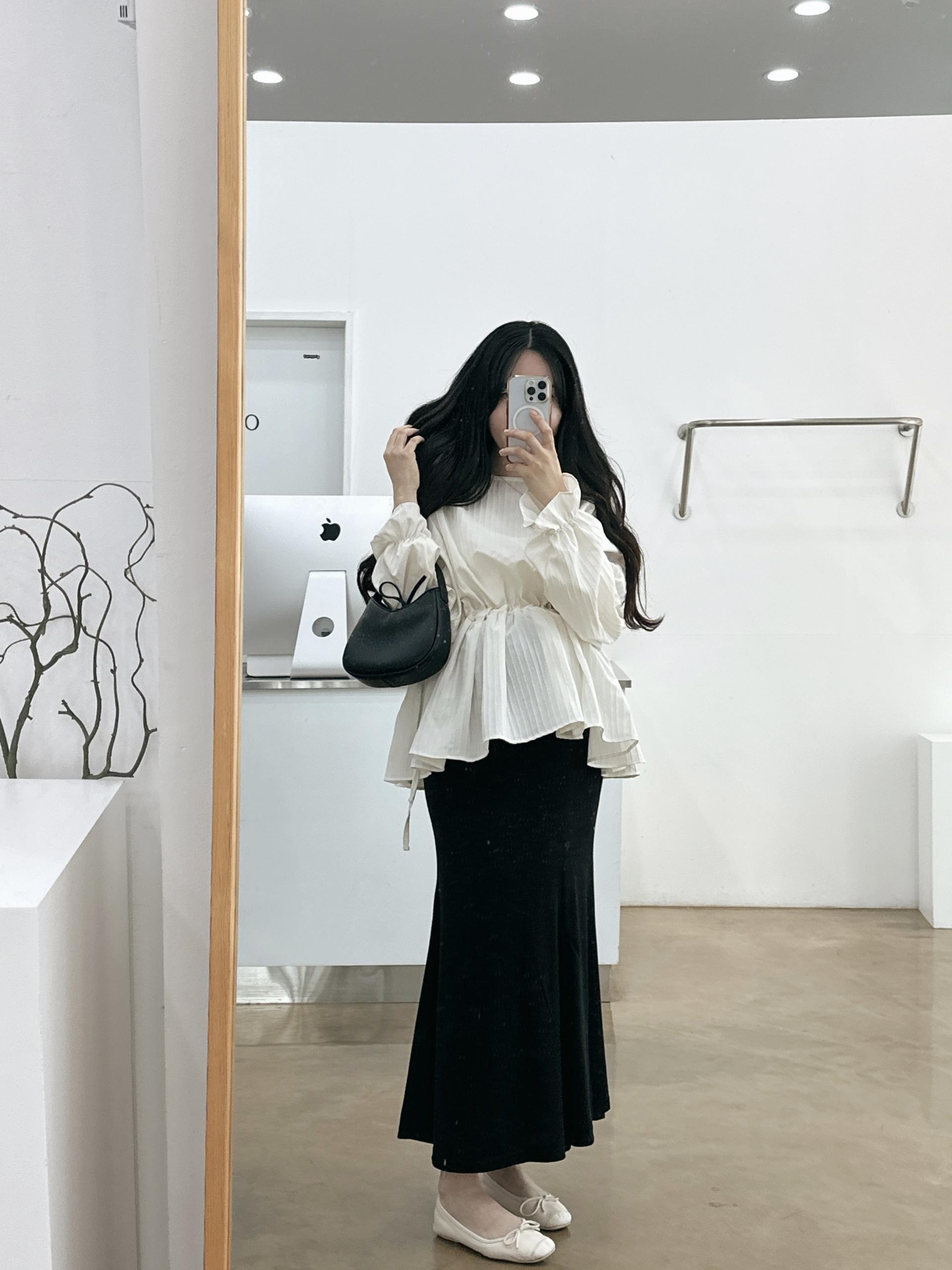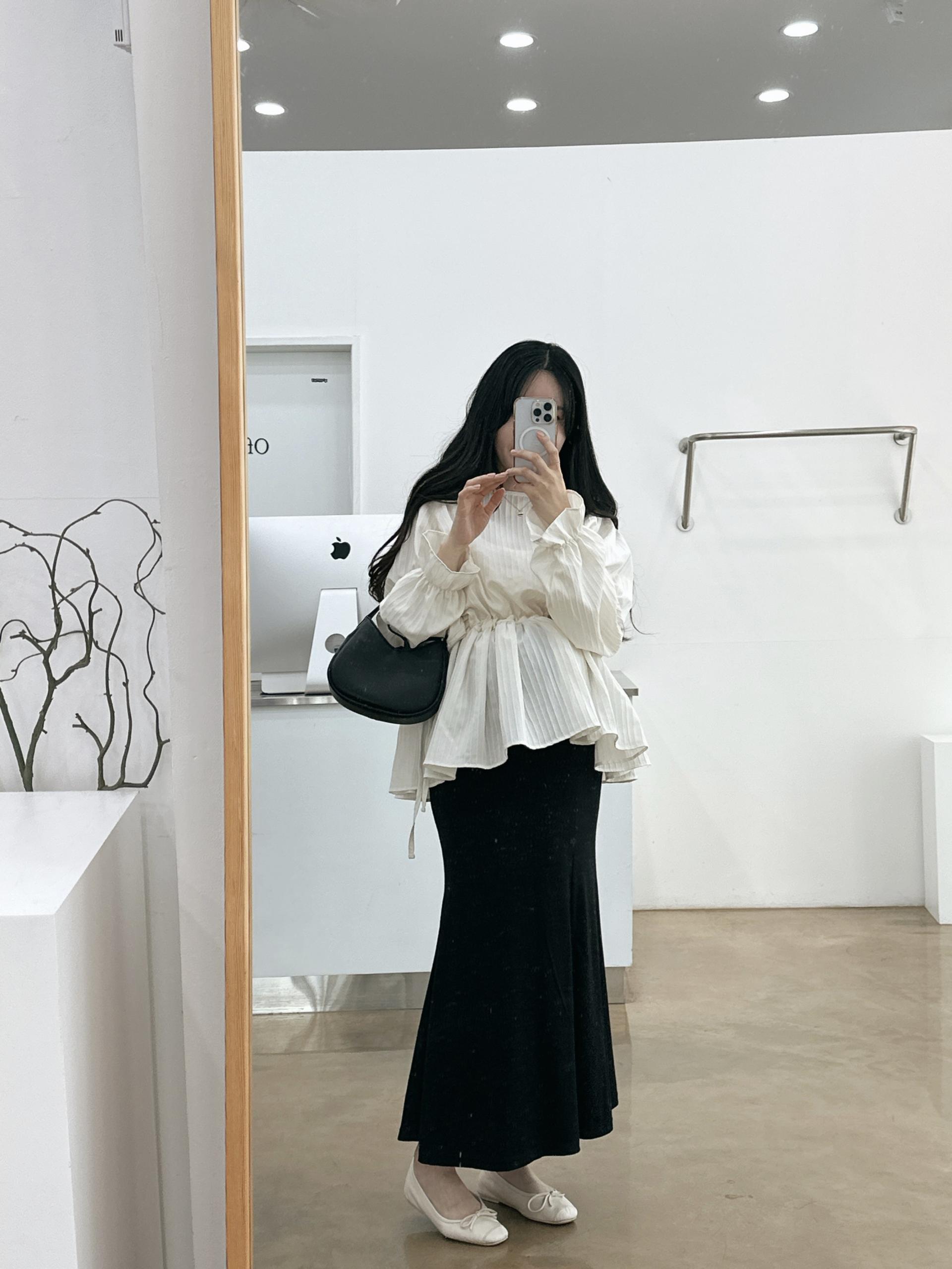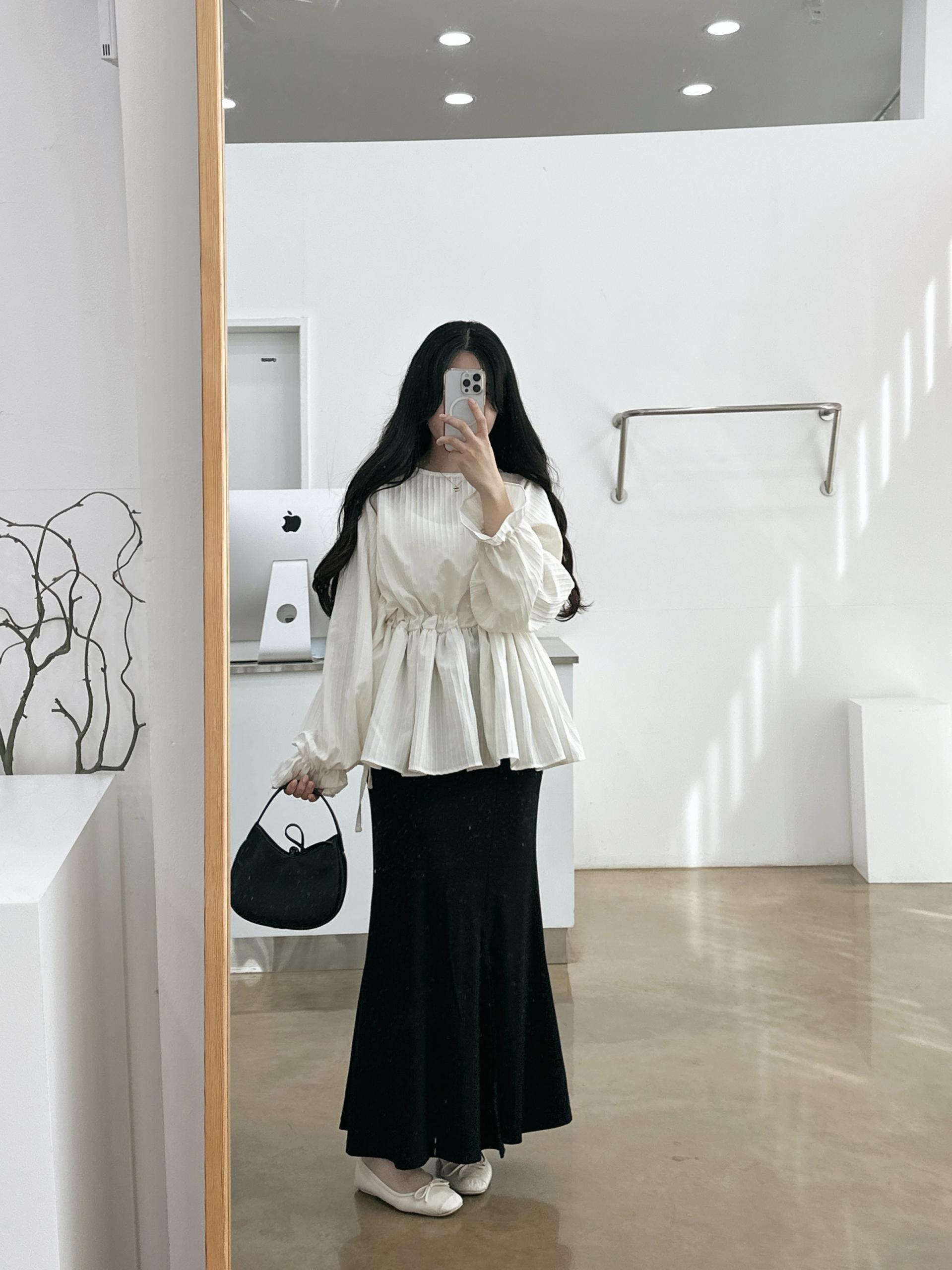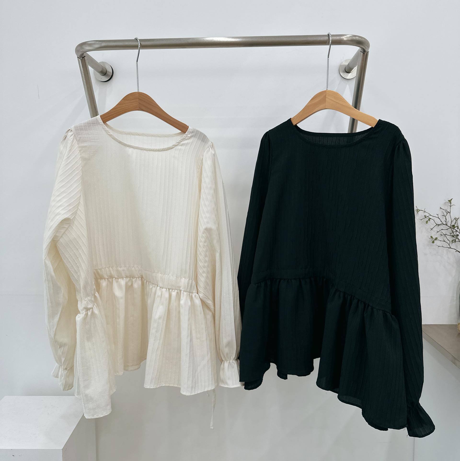 사이즈 좋은 허리스트링 블라우스입니다 러블리한느낌의 휘뚜루마뚜루 요기죠기 코디하기 좋은 블라우스! 추천드려요!
