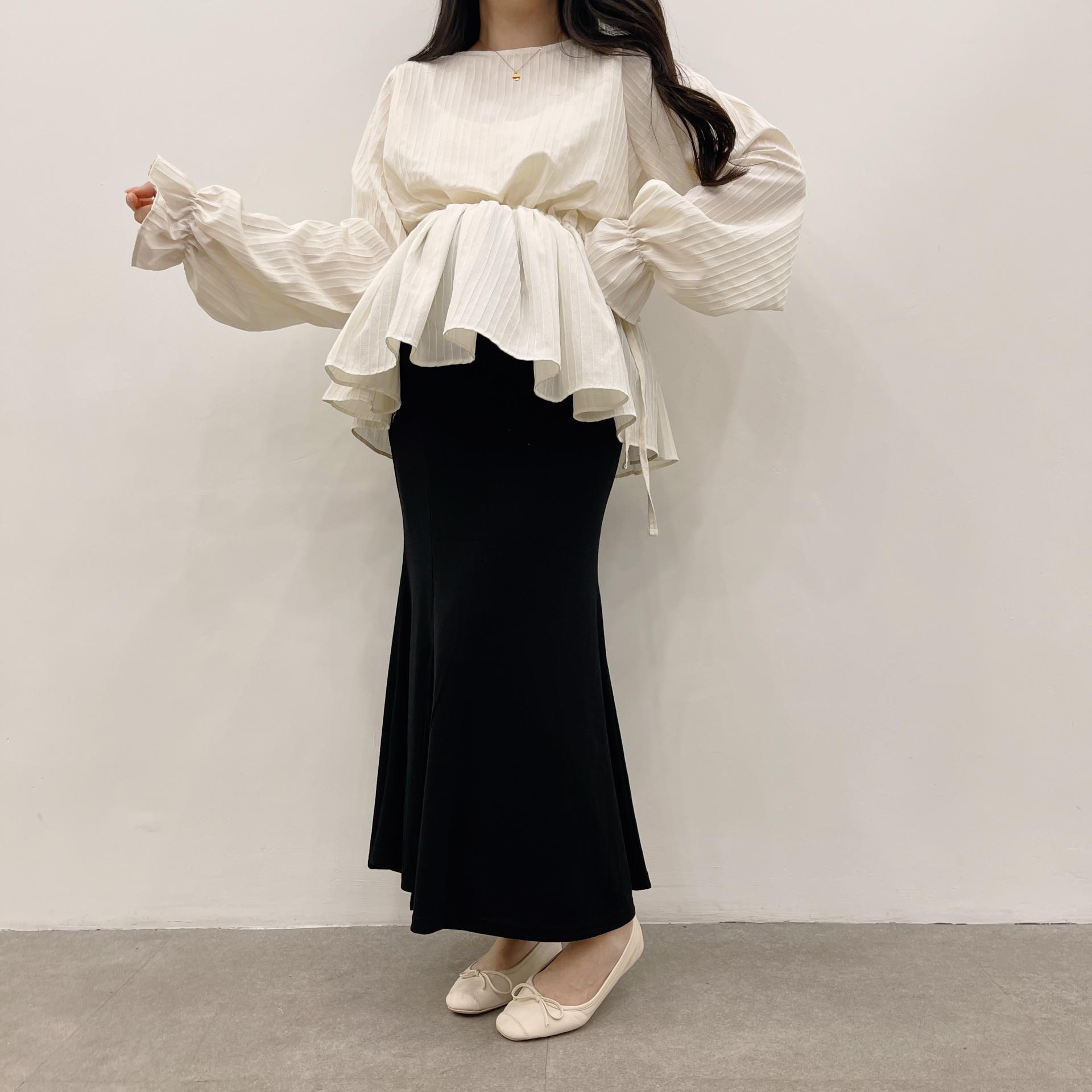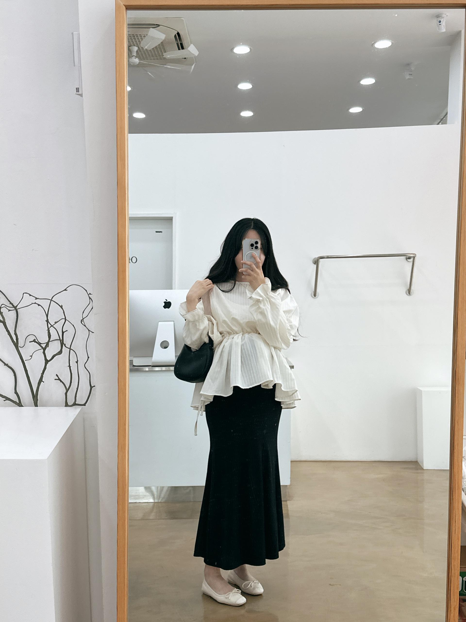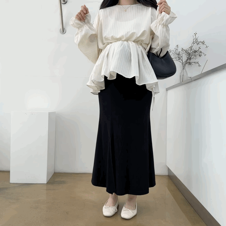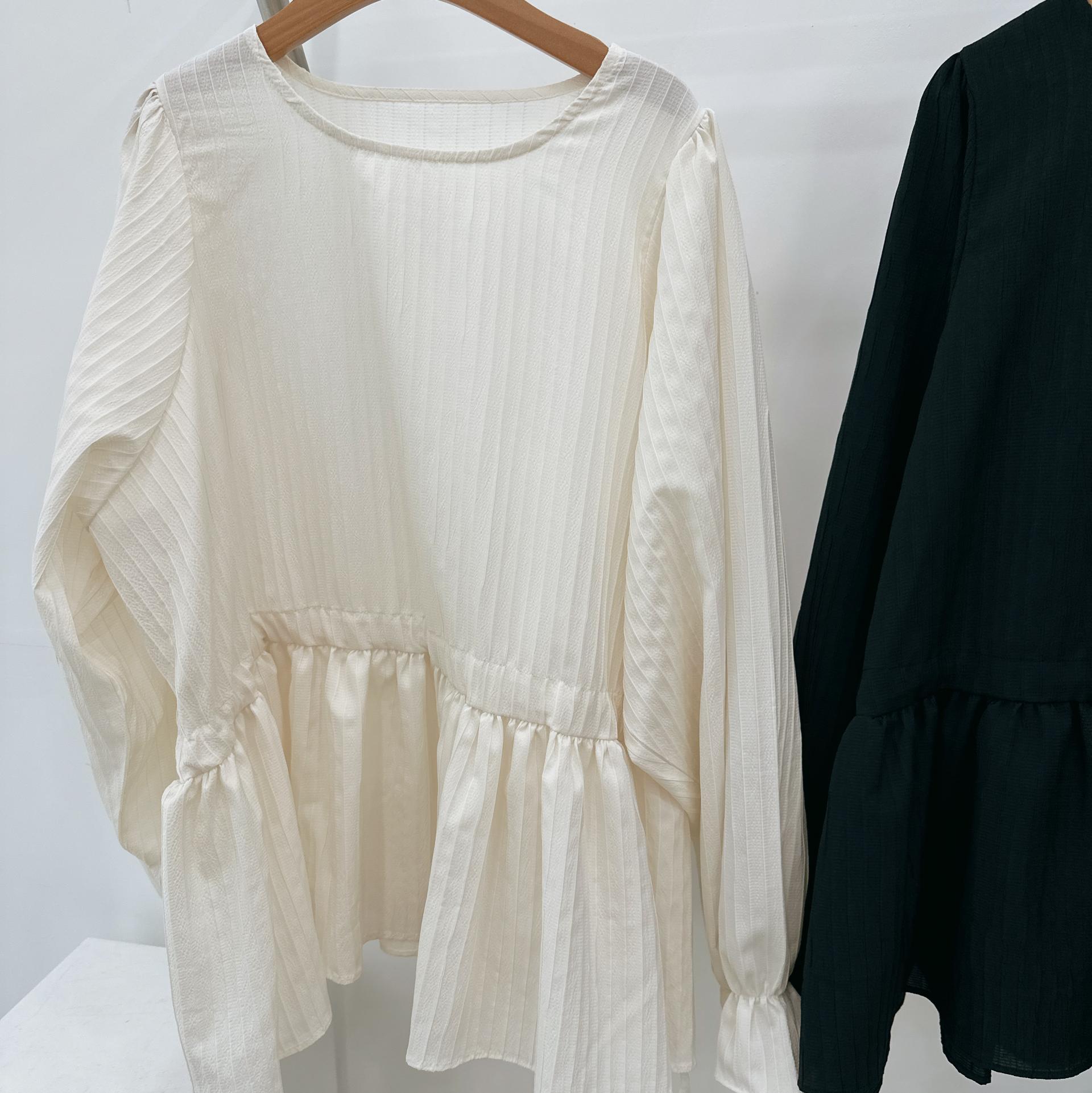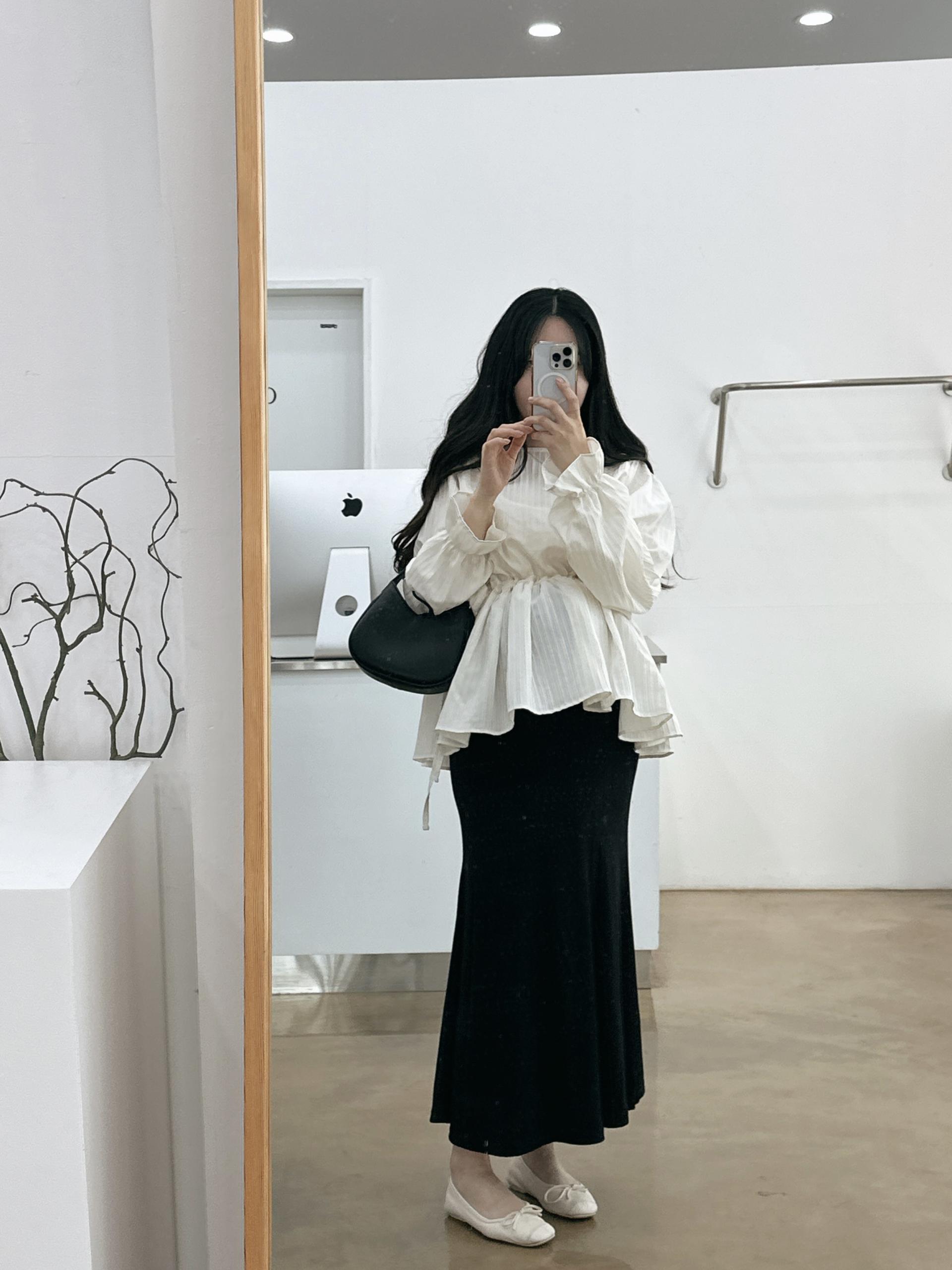 사이즈 좋은 허리스트링 블라우스입니다 러블리한느낌의 휘뚜루마뚜루 요기죠기 코디하기 좋은 블라우스! 추천드려요!