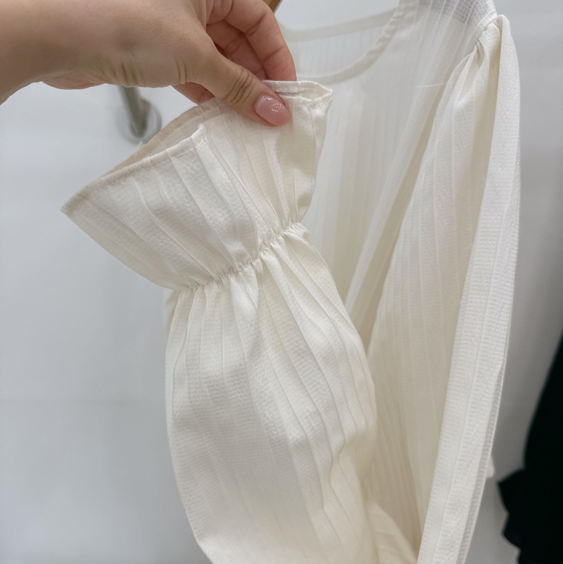 - 크림/아이보리/화이트 색상 등의 밝은 의류는 색상 특성상 재질에 관계없이 약간의 비침이 있어요. 스킨색 속옷이나 이너 착용 해주세요.