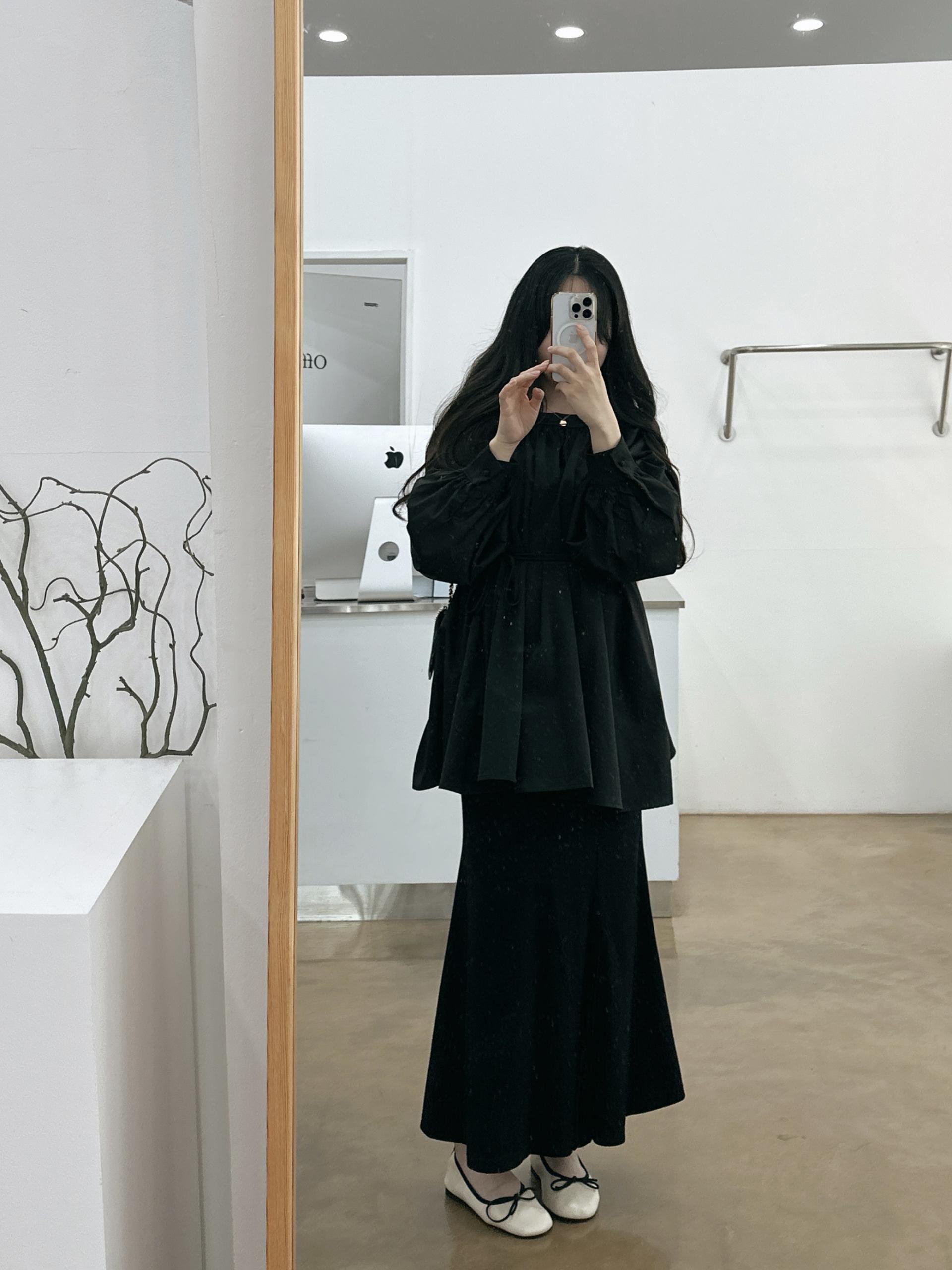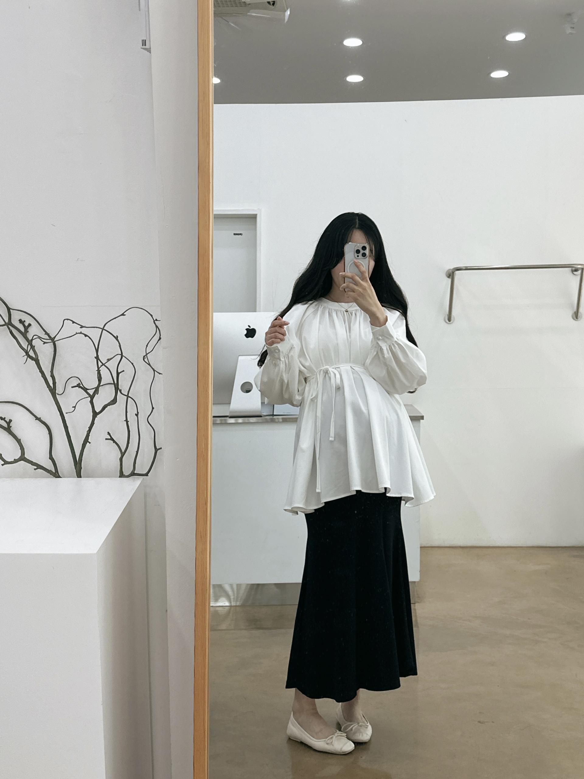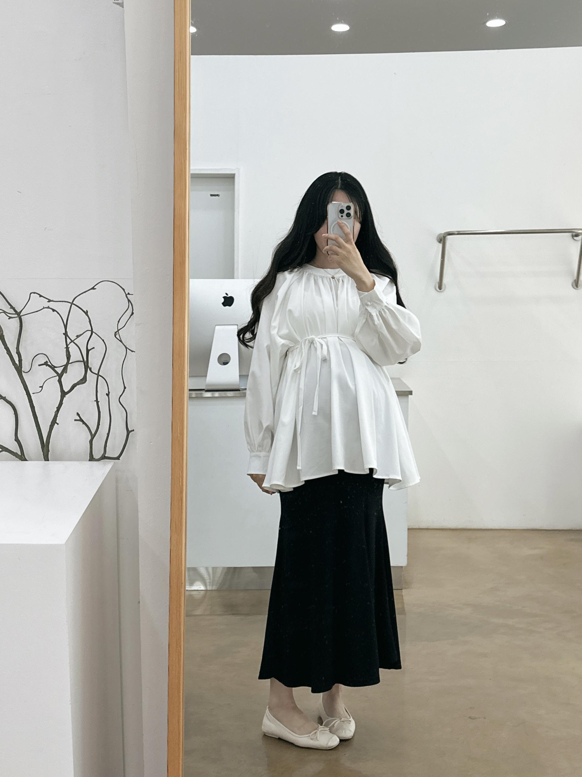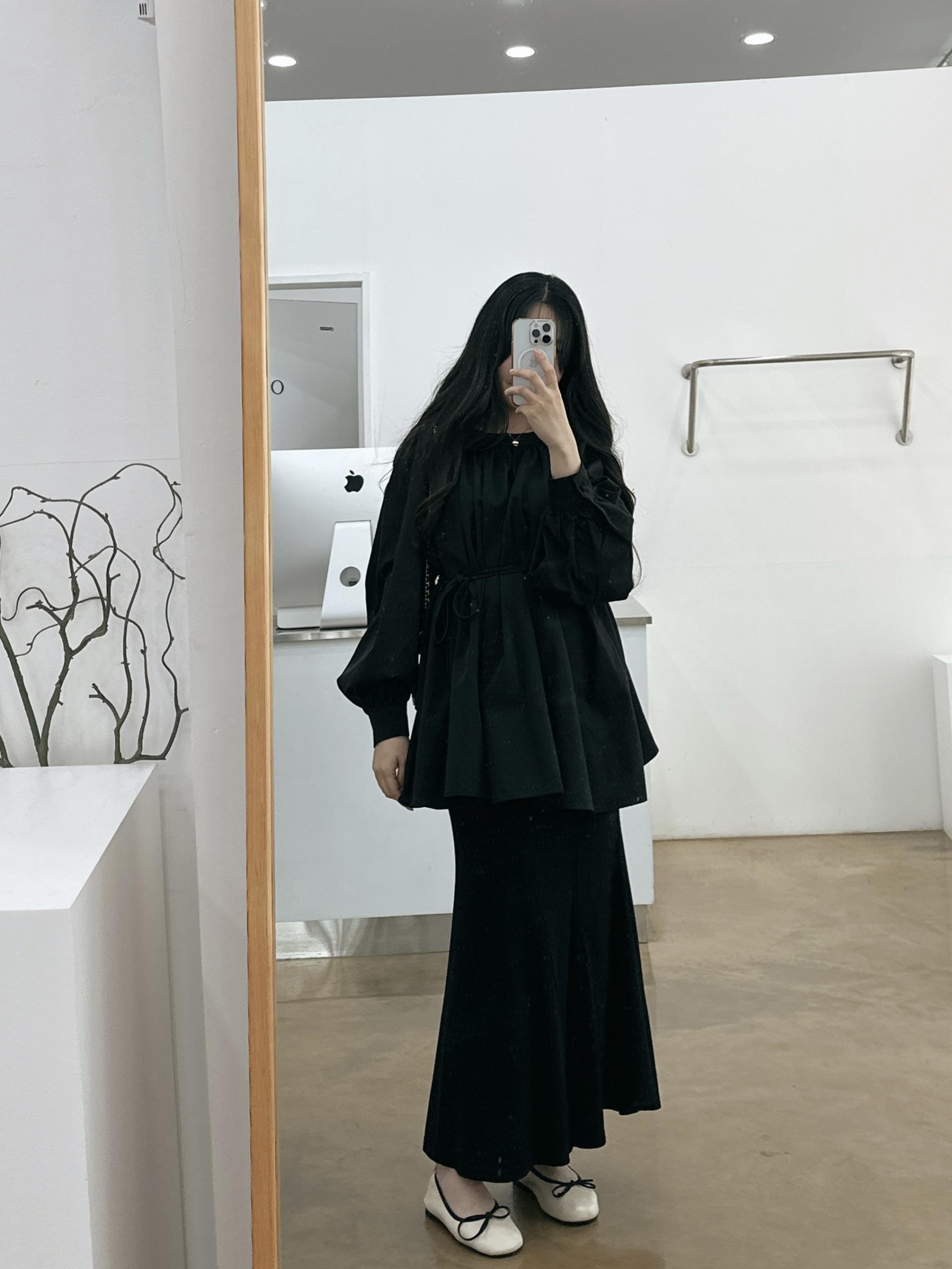 우아하면서 여성스럽게 입기 좋은, 배.힙덮기장의 플레어핏 풍성한 블라우스에요 끈묶어주시면 정말 세상날씬한예쁜핏 완성입니다:)