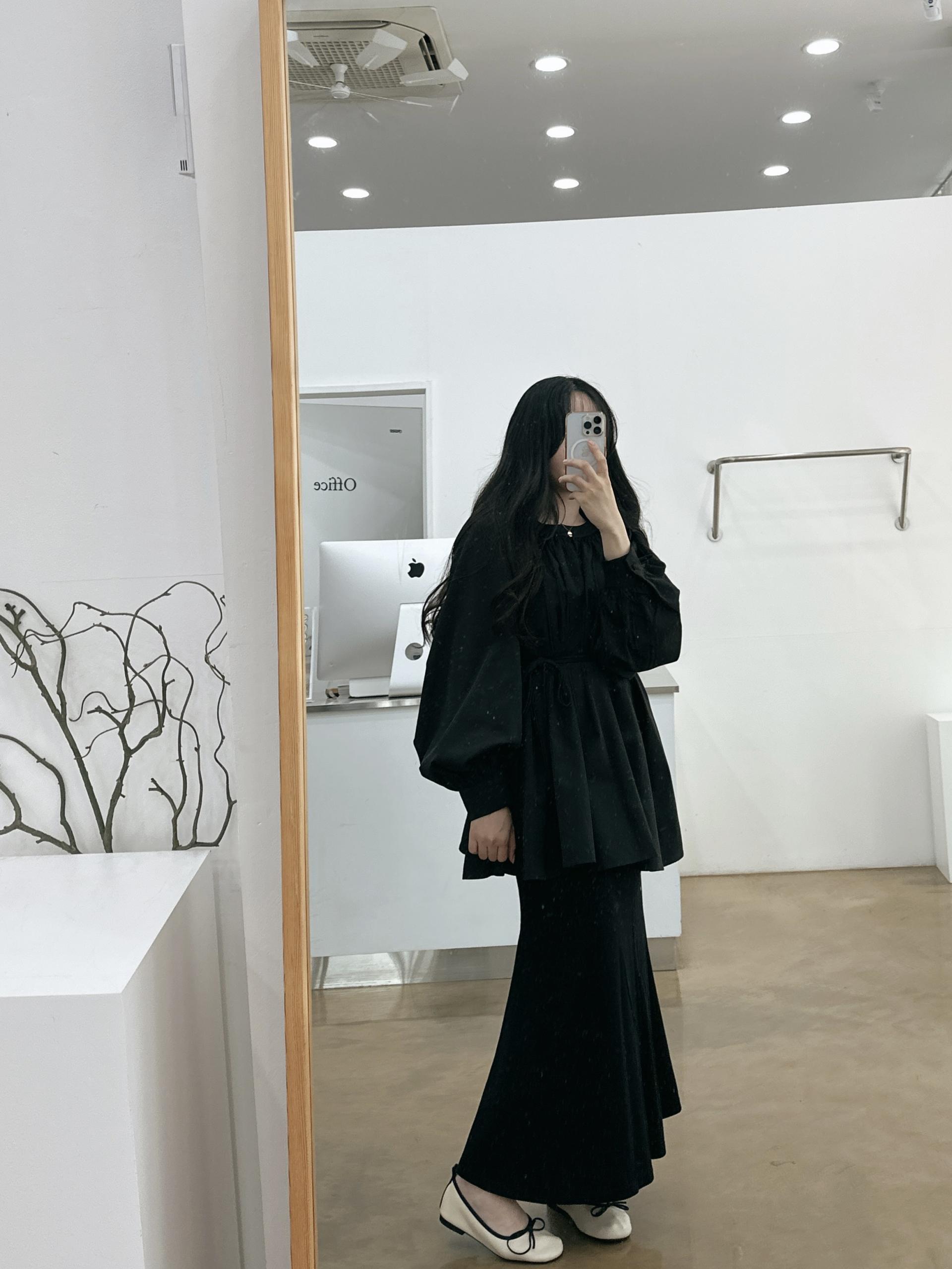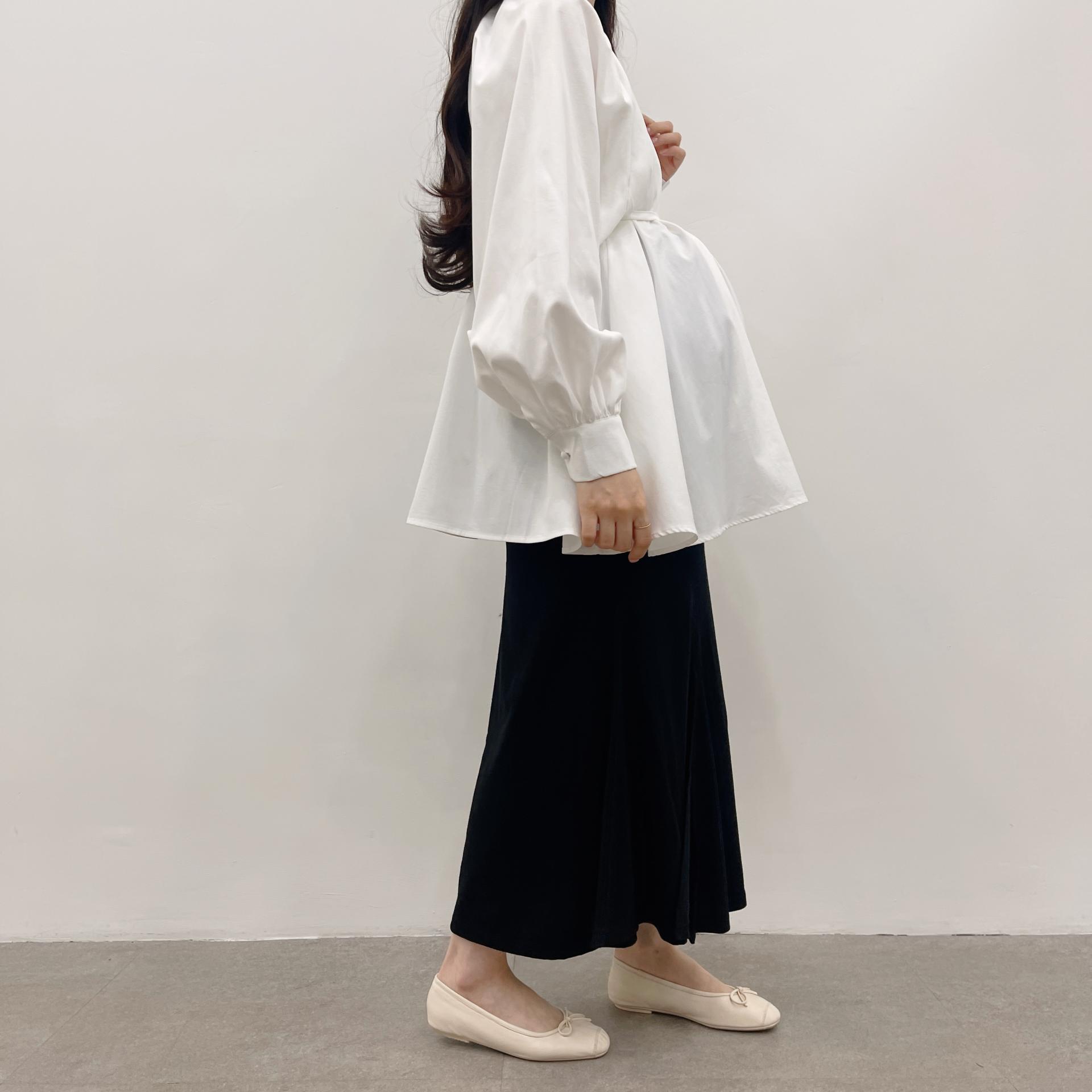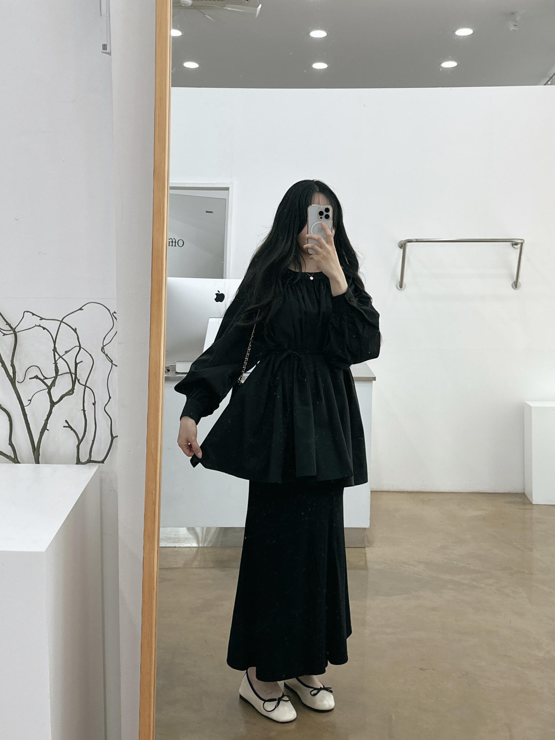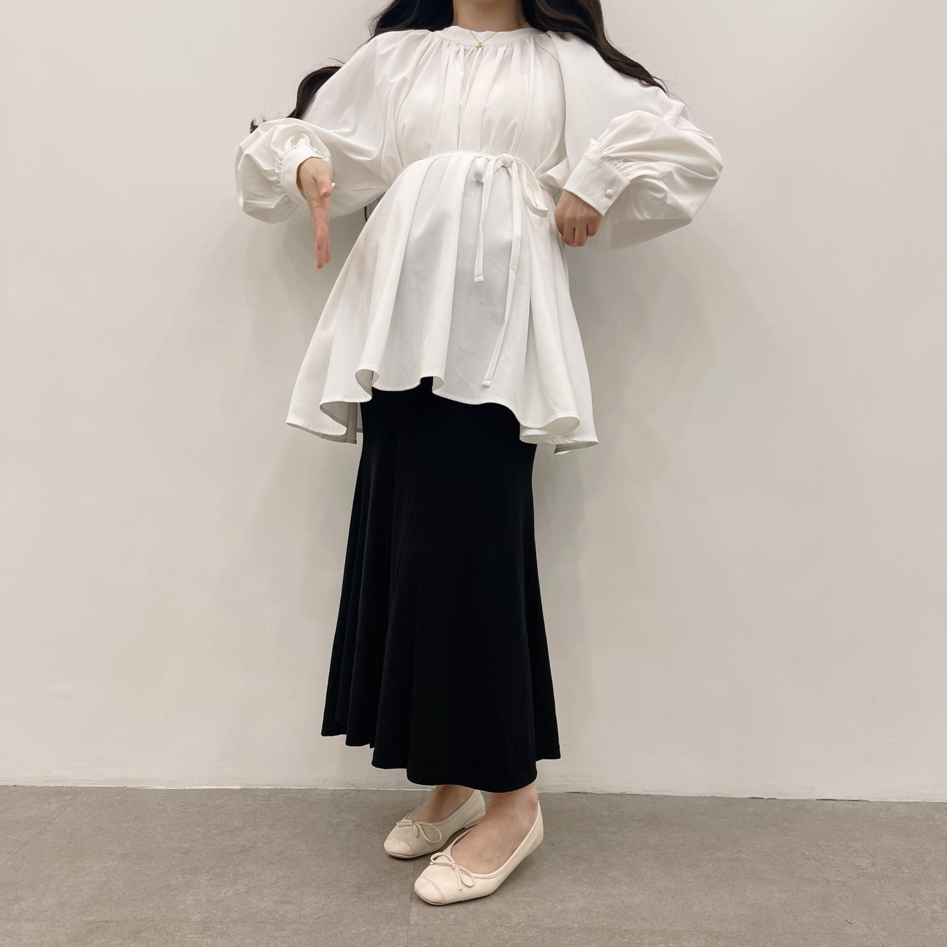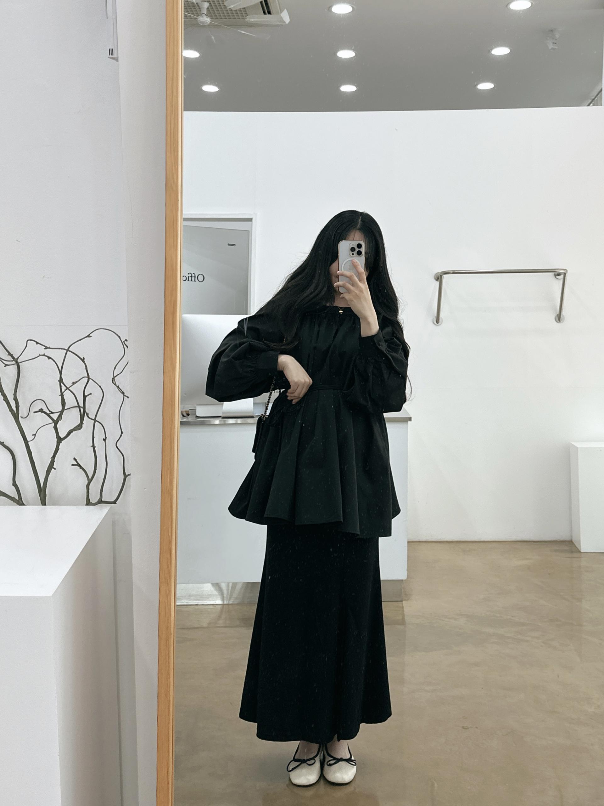 우아하면서 여성스럽게 입기 좋은, 배.힙덮기장의 플레어핏 풍성한 블라우스에요 끈묶어주시면 정말 세상날씬한예쁜핏 완성입니다:)