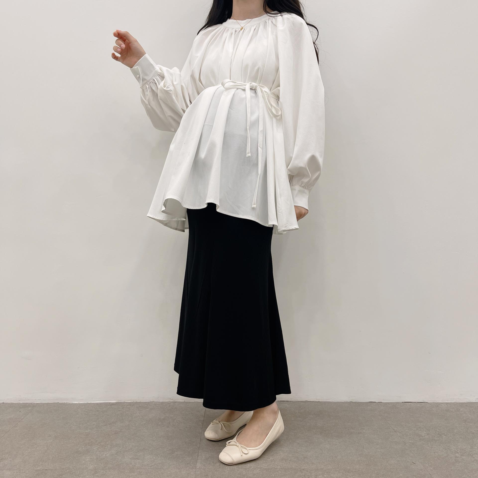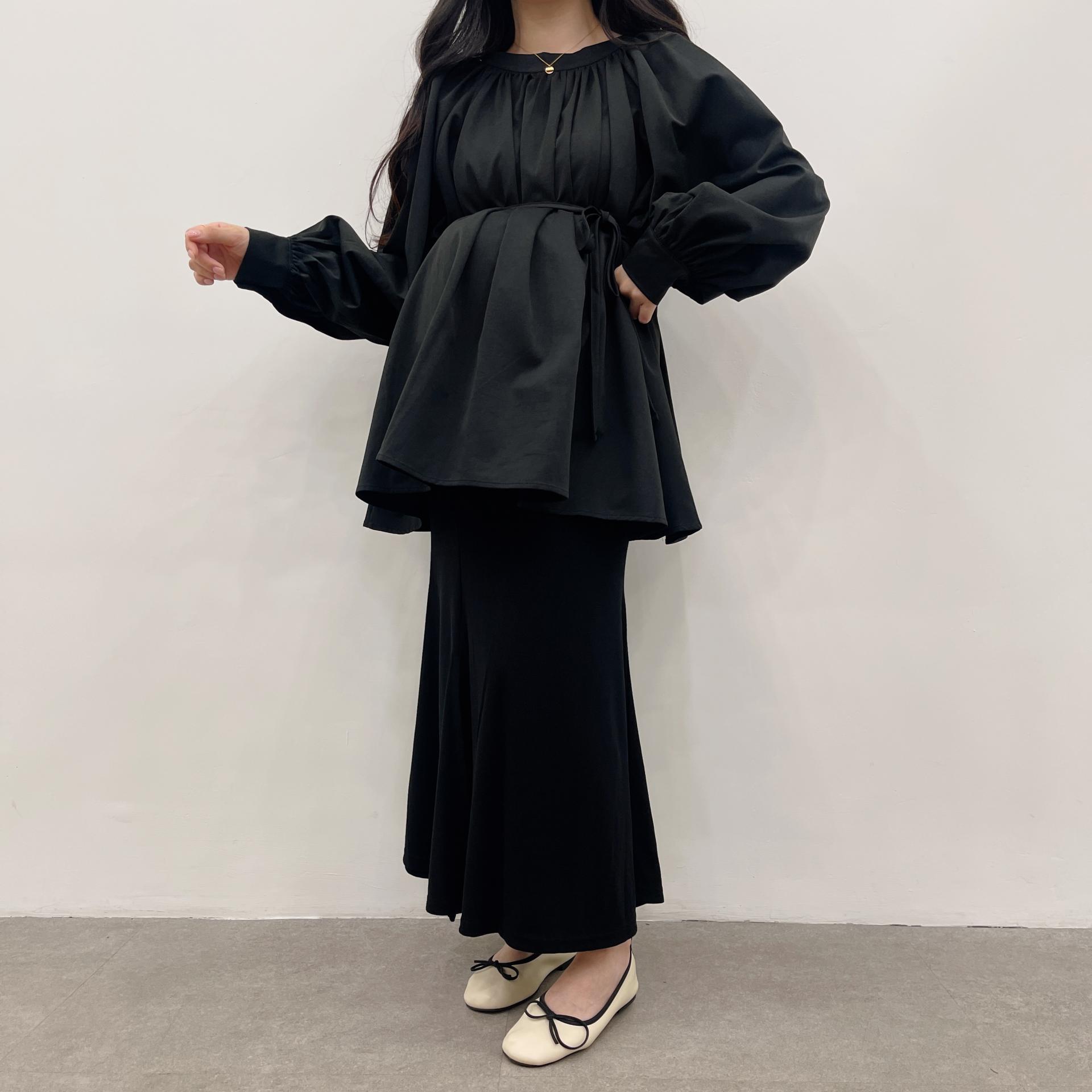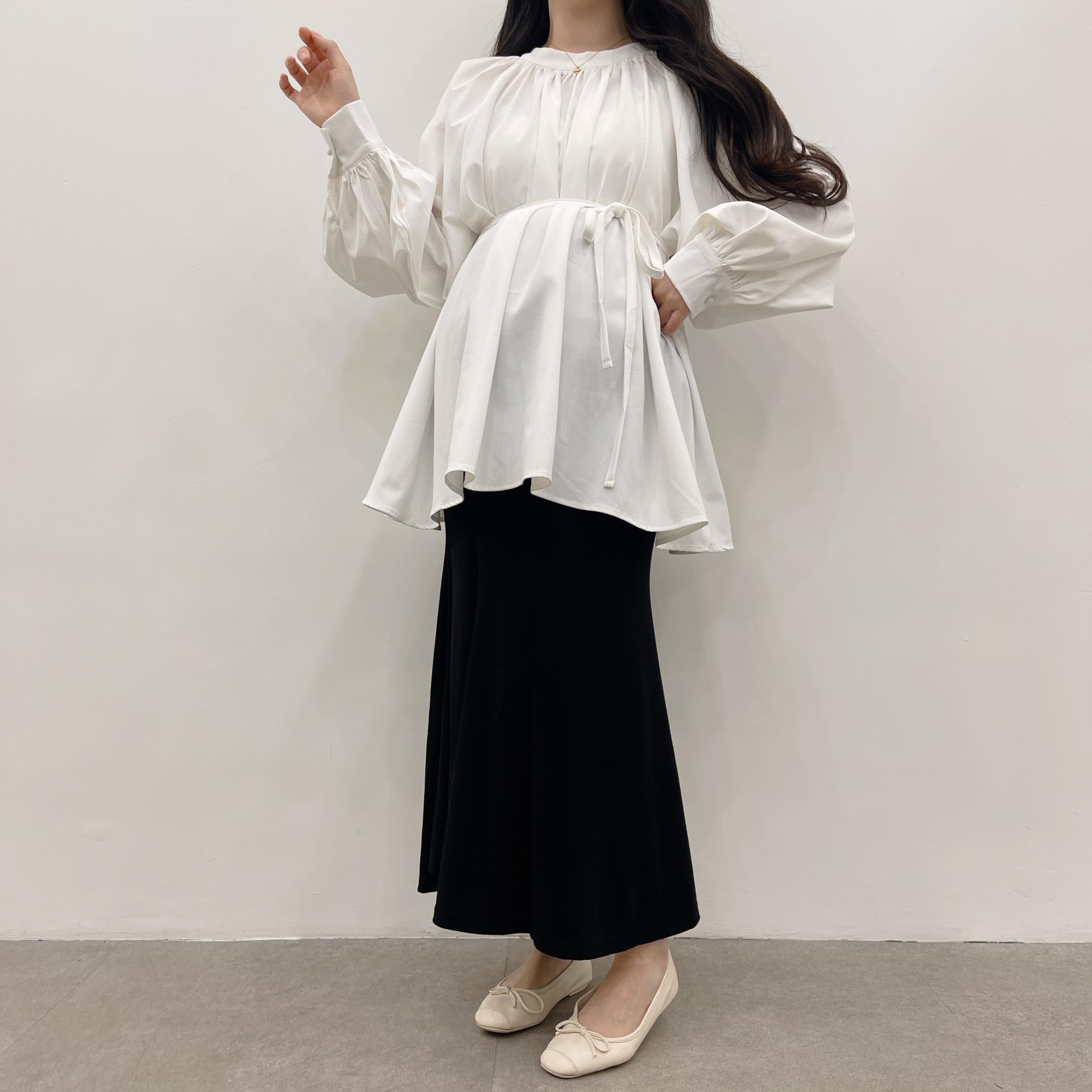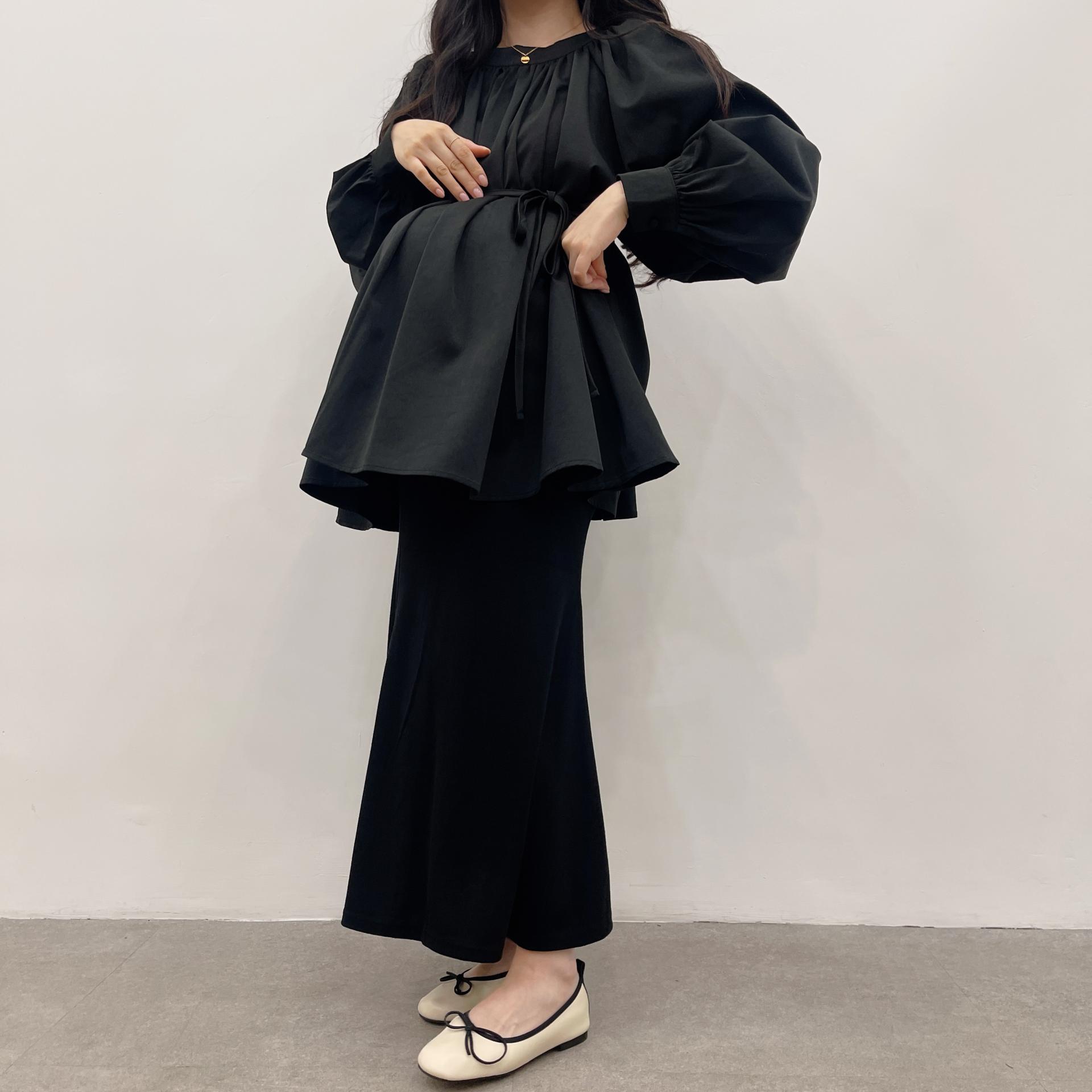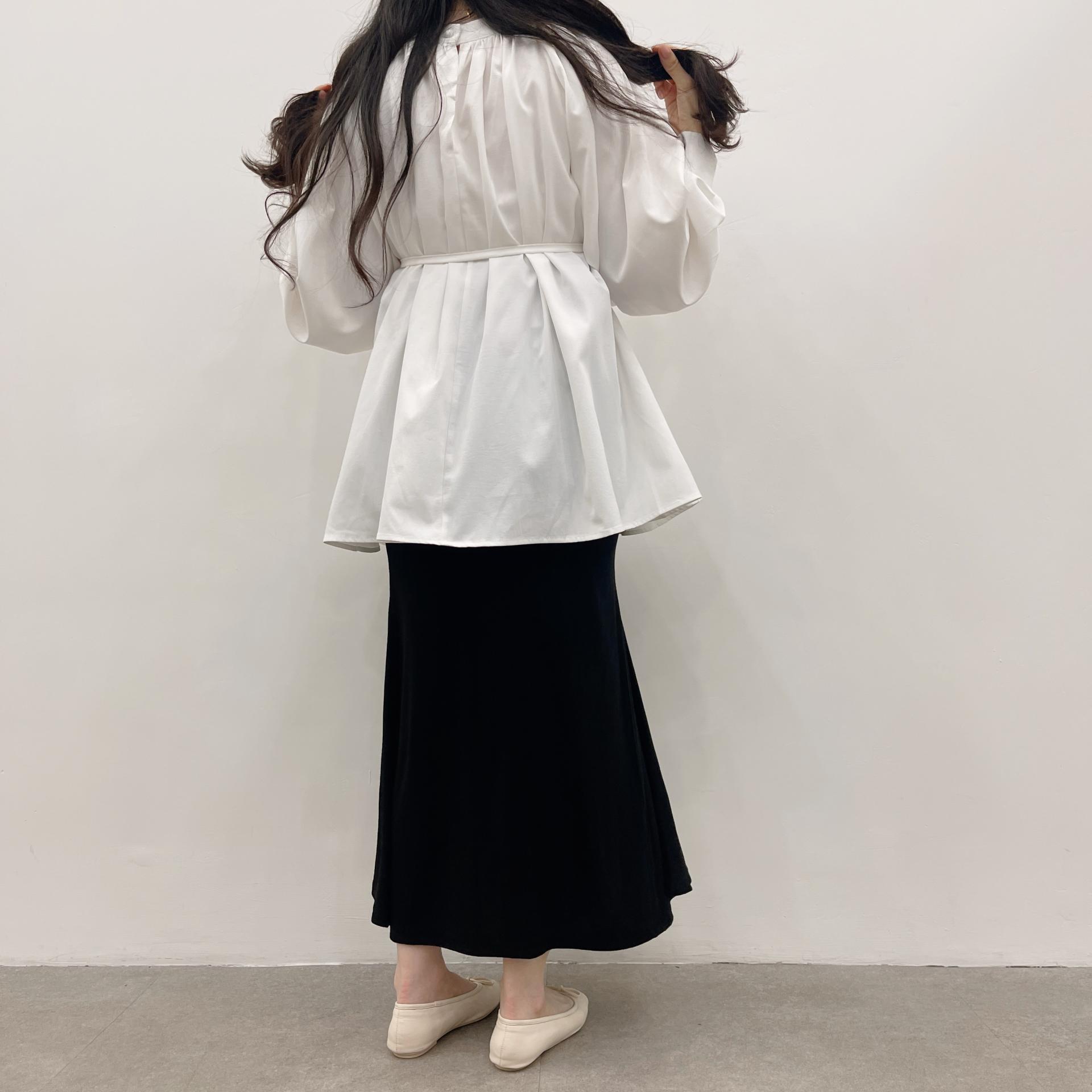 우아하면서 여성스럽게 입기 좋은, 배.힙덮기장의 플레어핏 풍성한 블라우스에요 끈묶어주시면 정말 세상날씬한예쁜핏 완성입니다:)