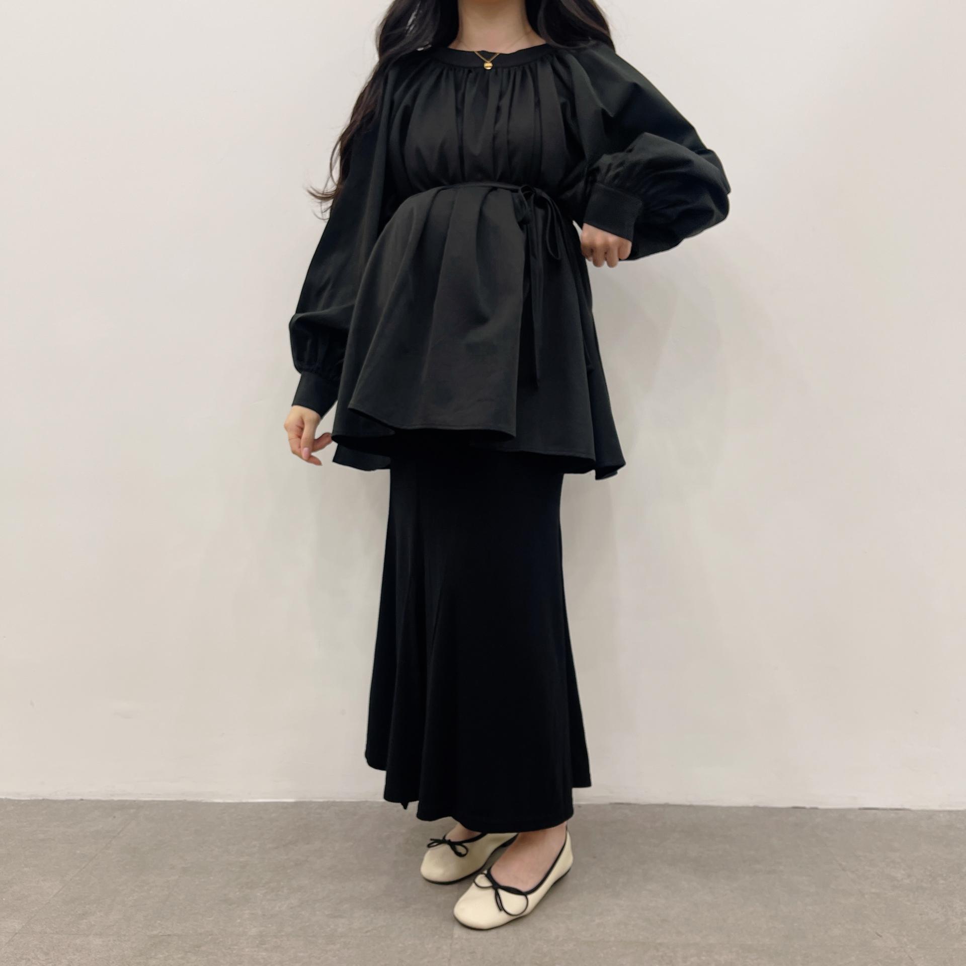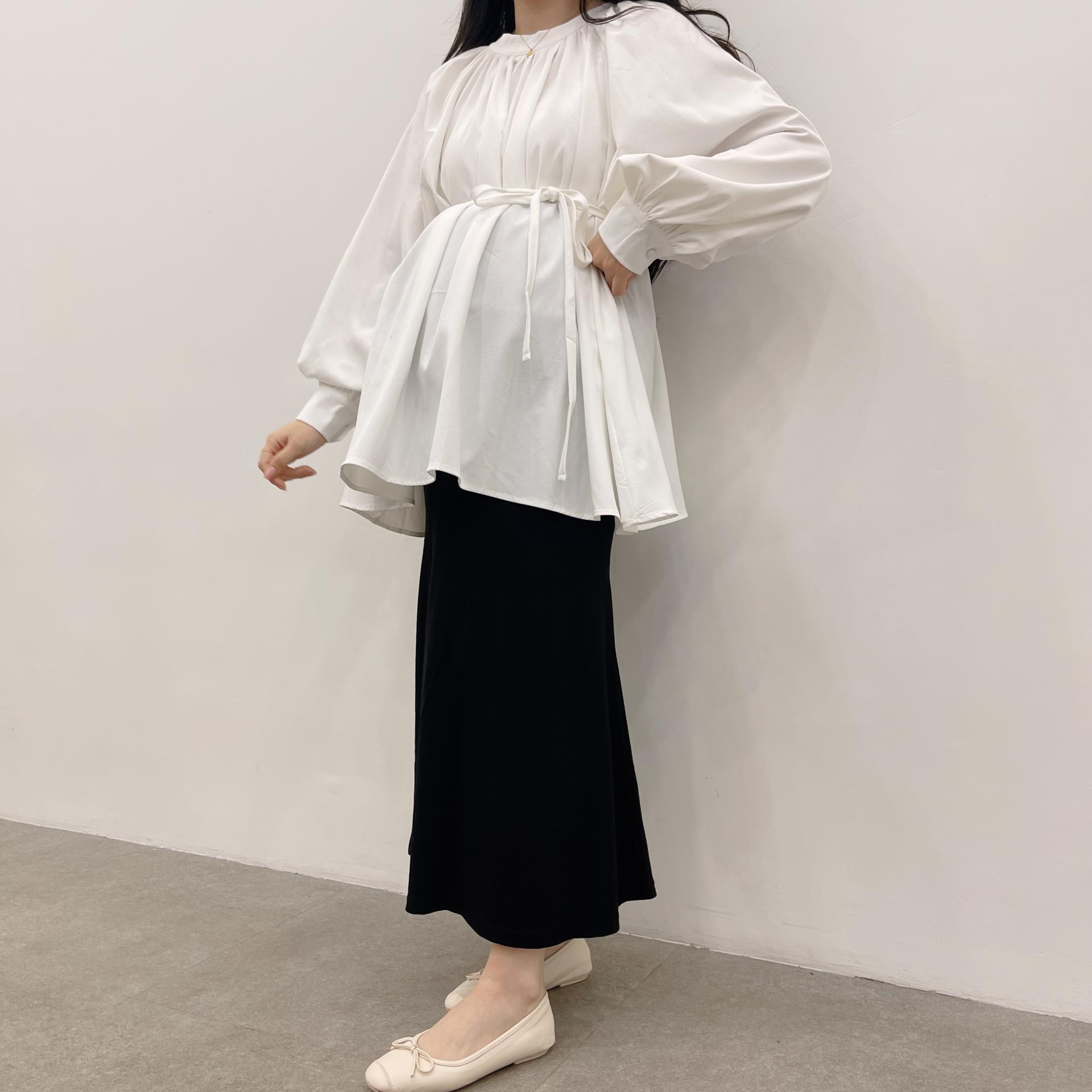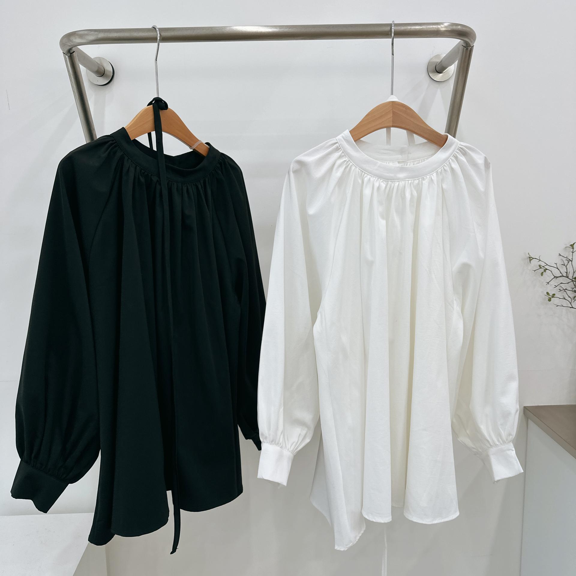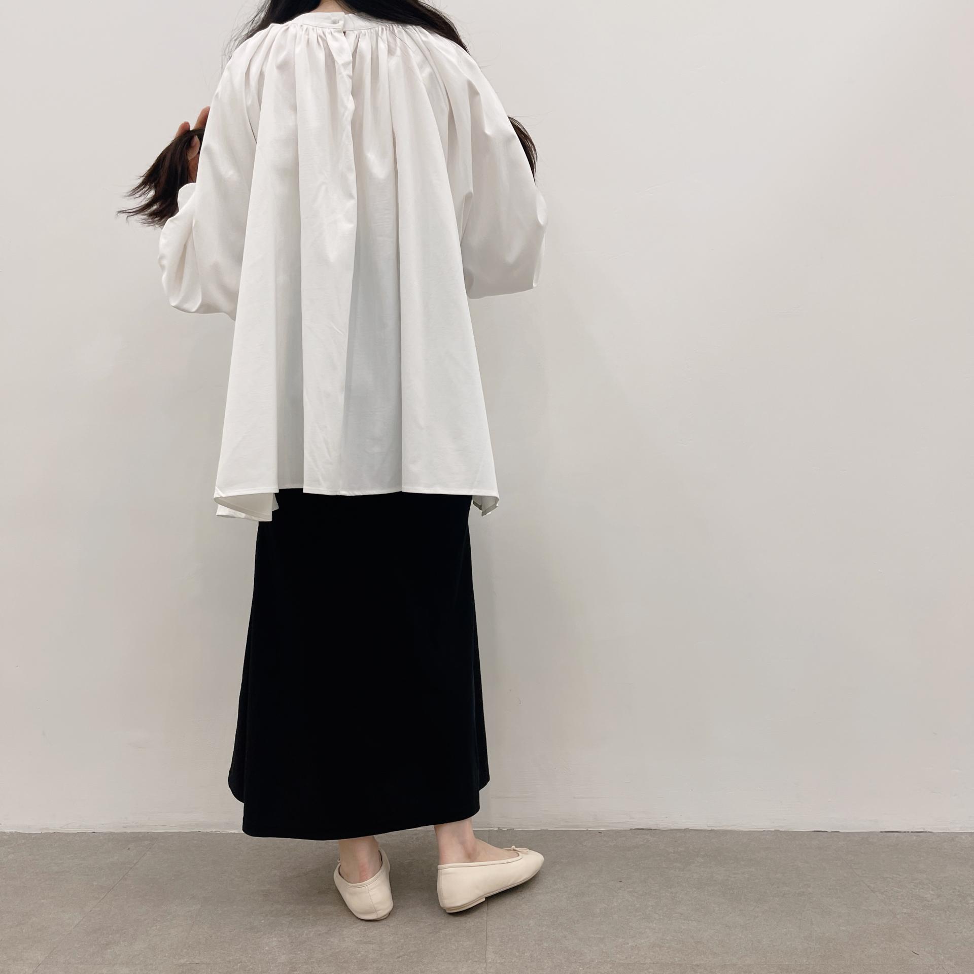 우아하면서 여성스럽게 입기 좋은, 배.힙덮기장의 플레어핏 풍성한 블라우스에요 끈묶어주시면 정말 세상날씬한예쁜핏 완성입니다:)