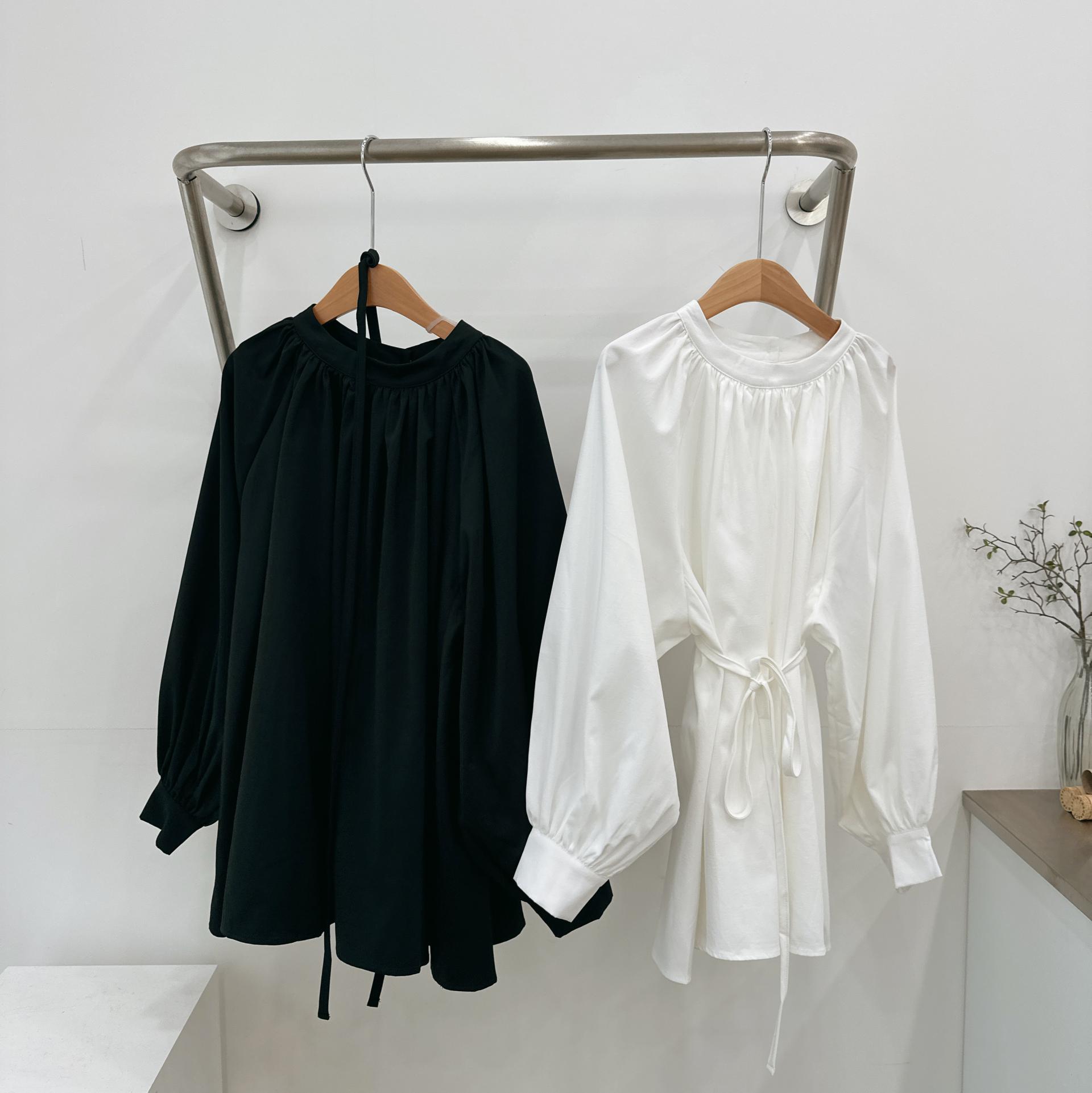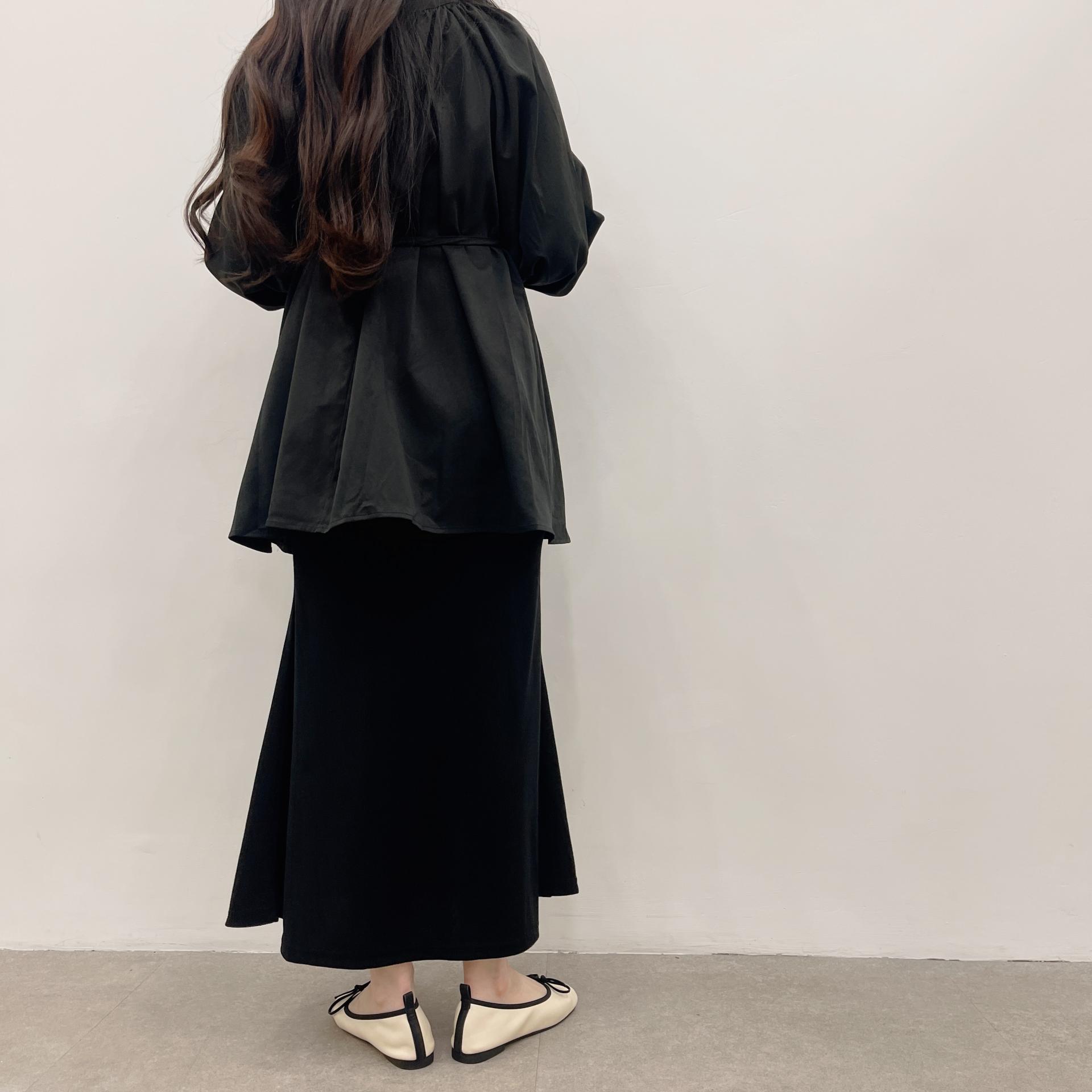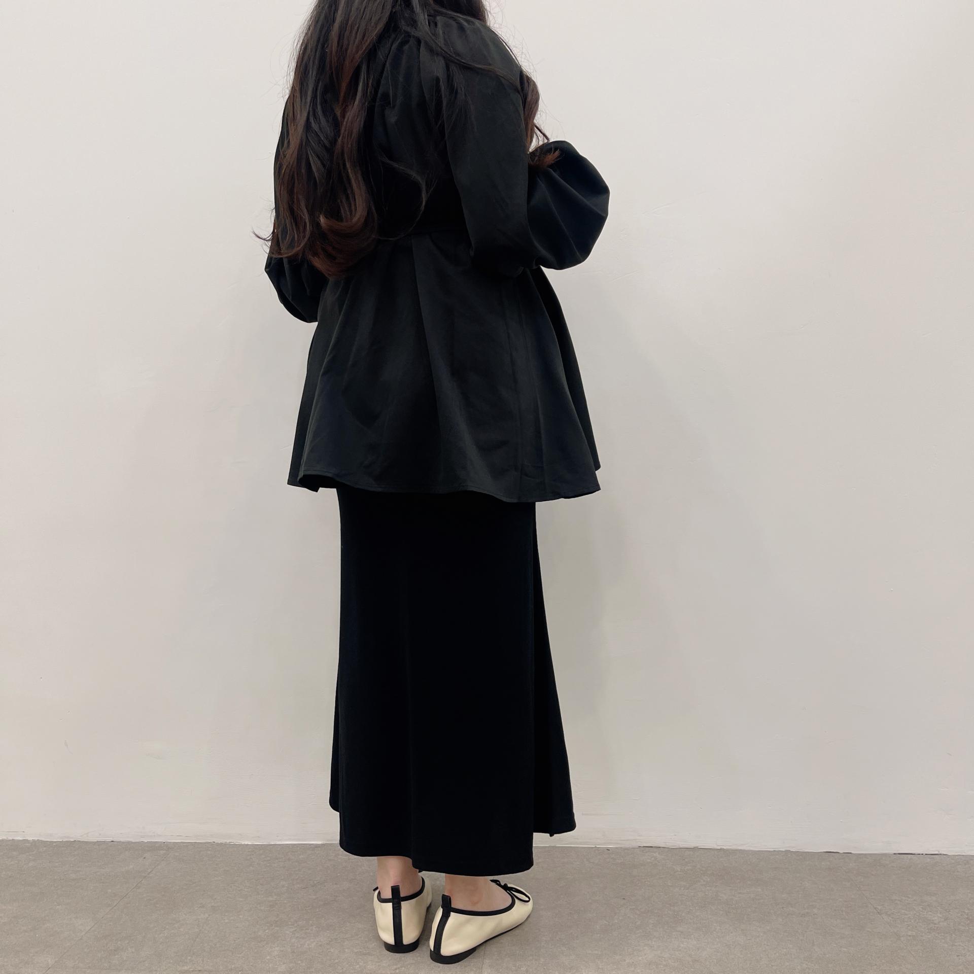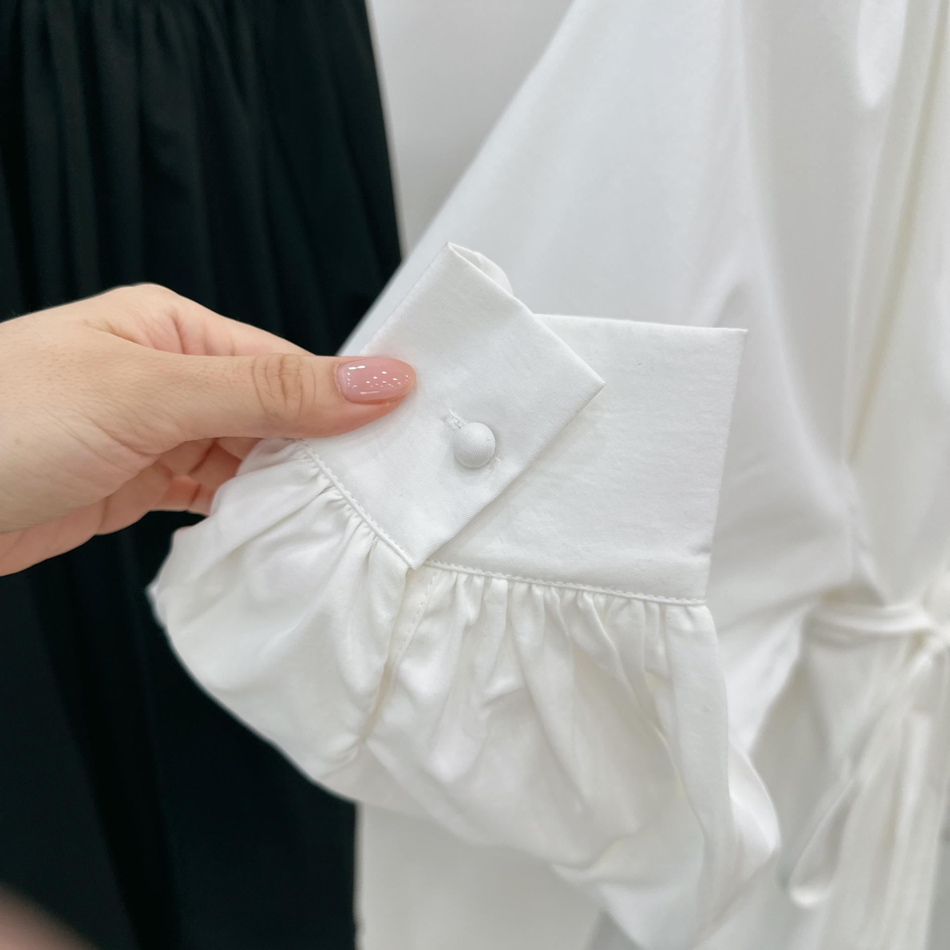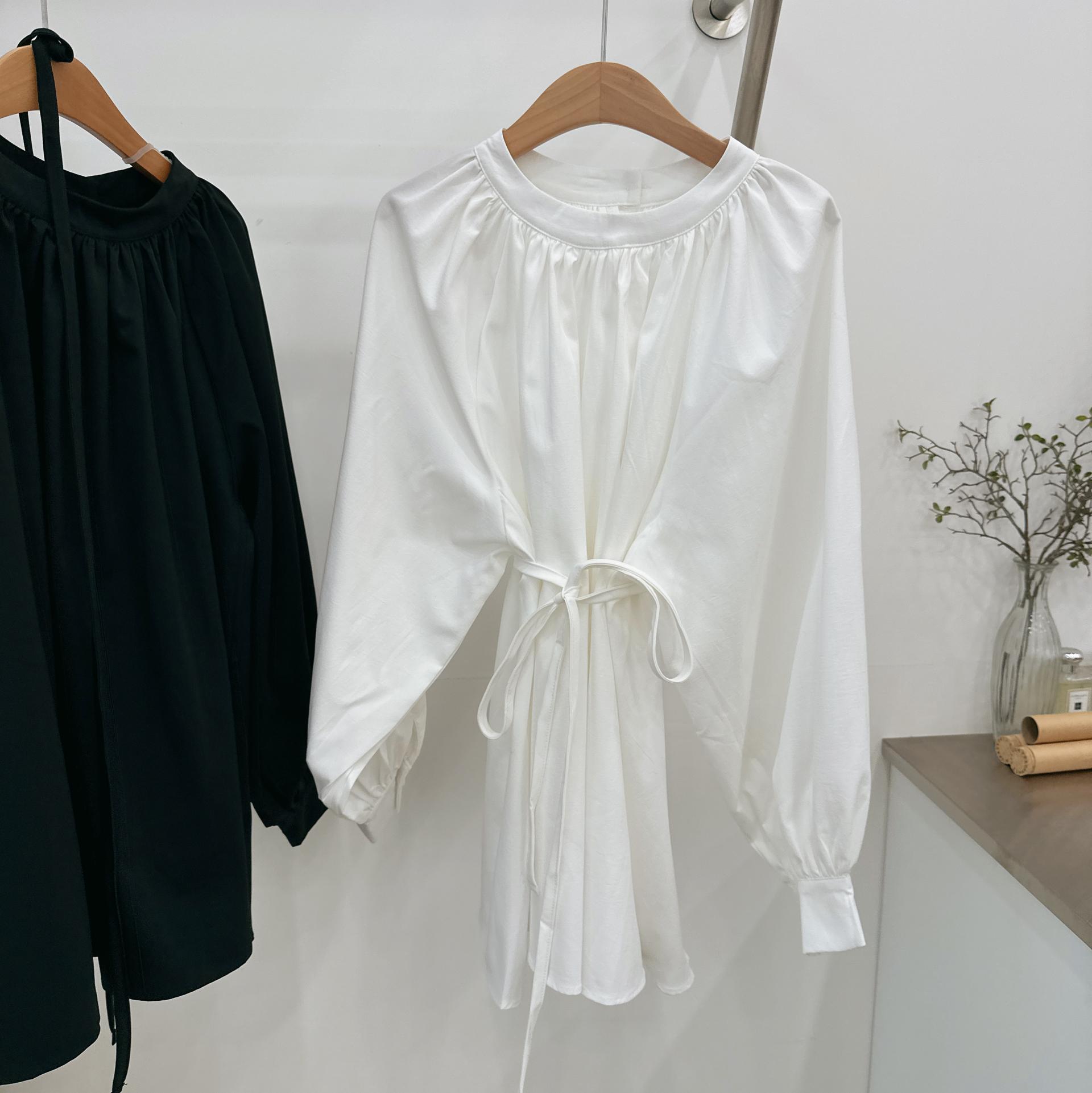 우아하면서 여성스럽게 입기 좋은, 배.힙덮기장의 플레어핏 풍성한 블라우스에요 끈묶어주시면 정말 세상날씬한예쁜핏 완성입니다:)