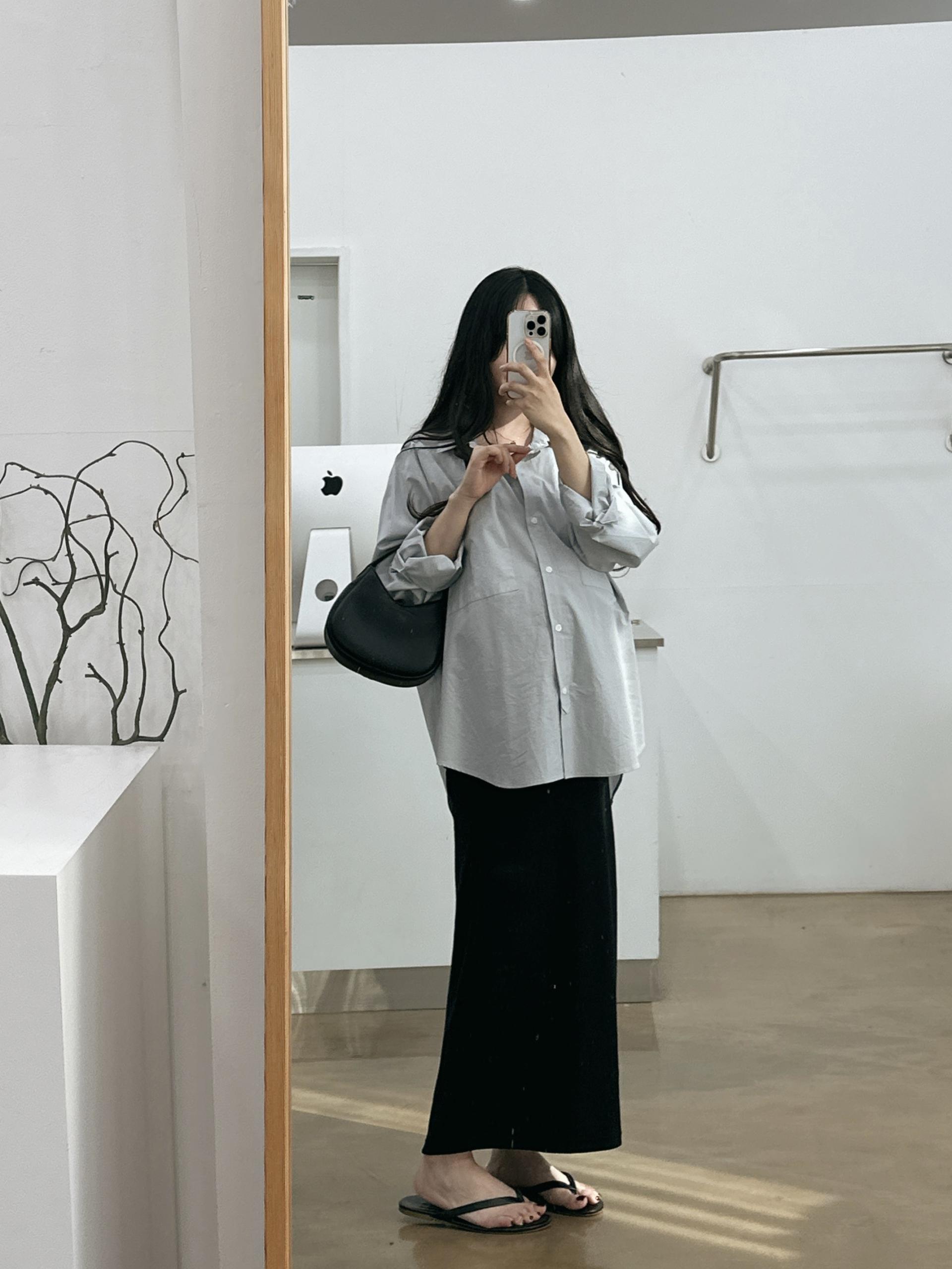 단독으로 스커트나 팬츠류와 착용하셨을 때 편안한 느낌을 주는 오버셔츠에요