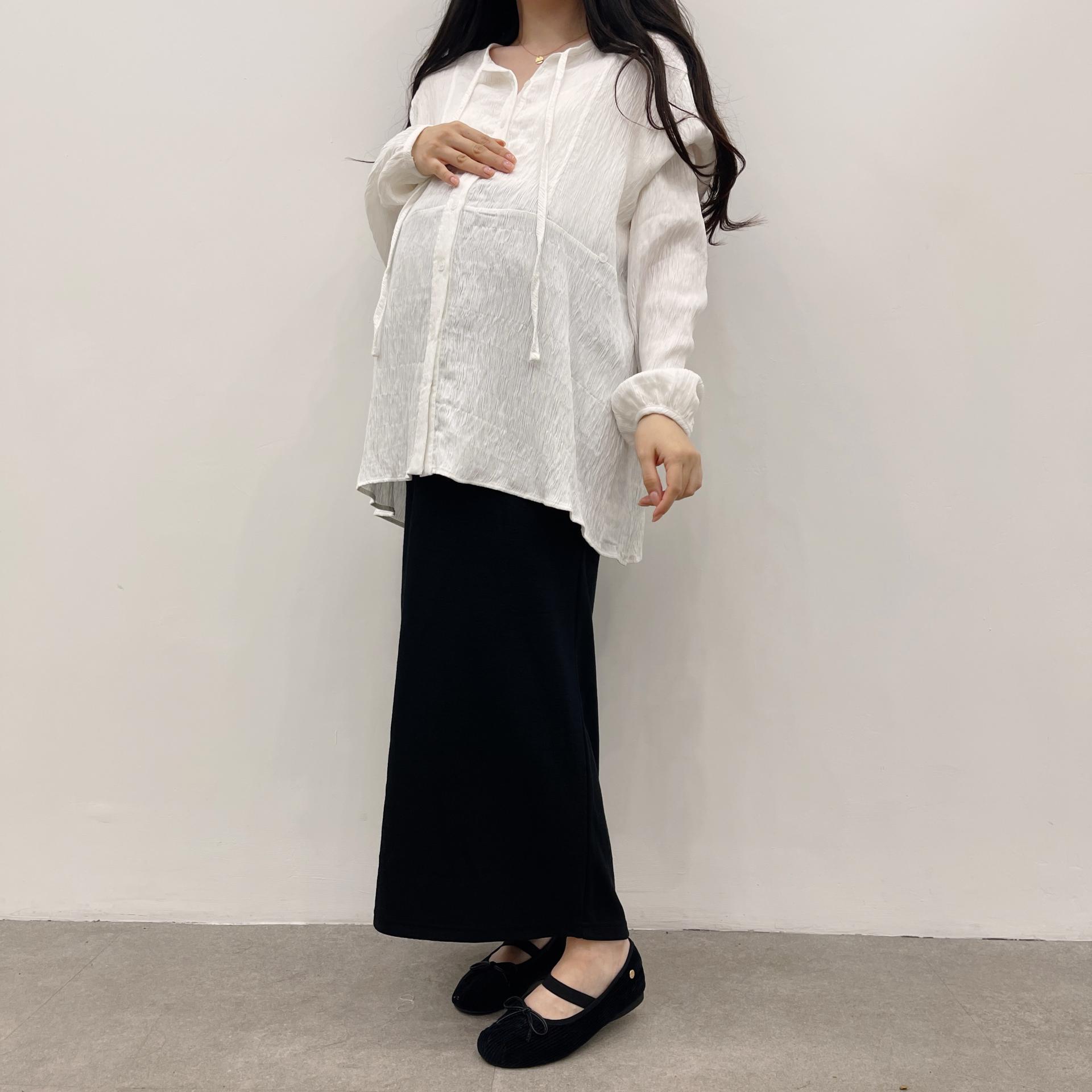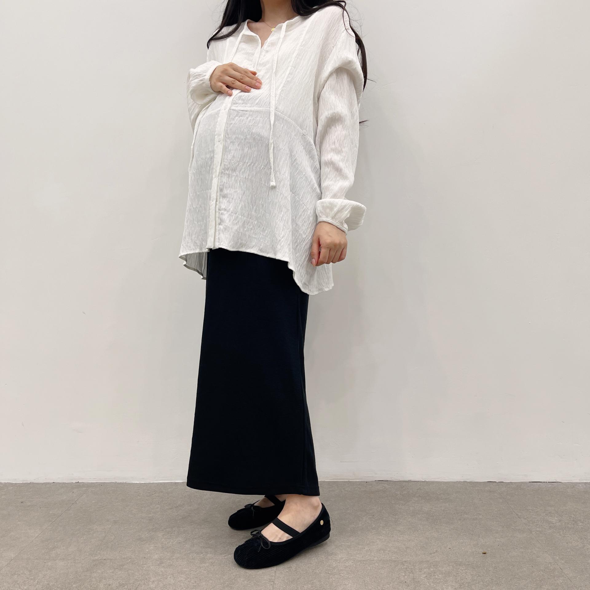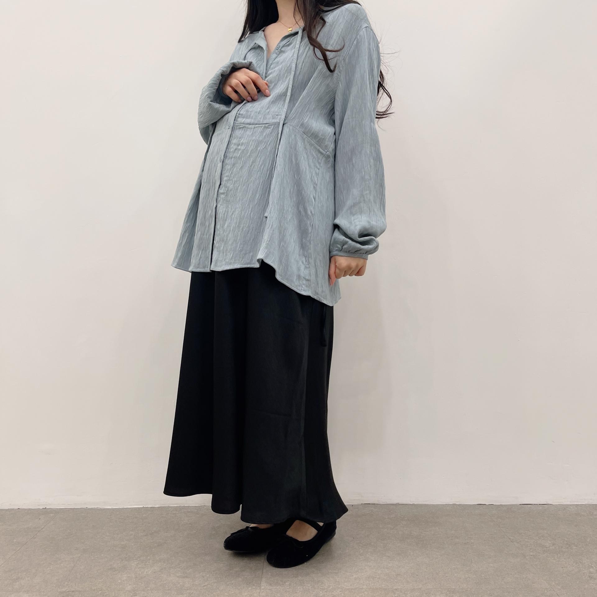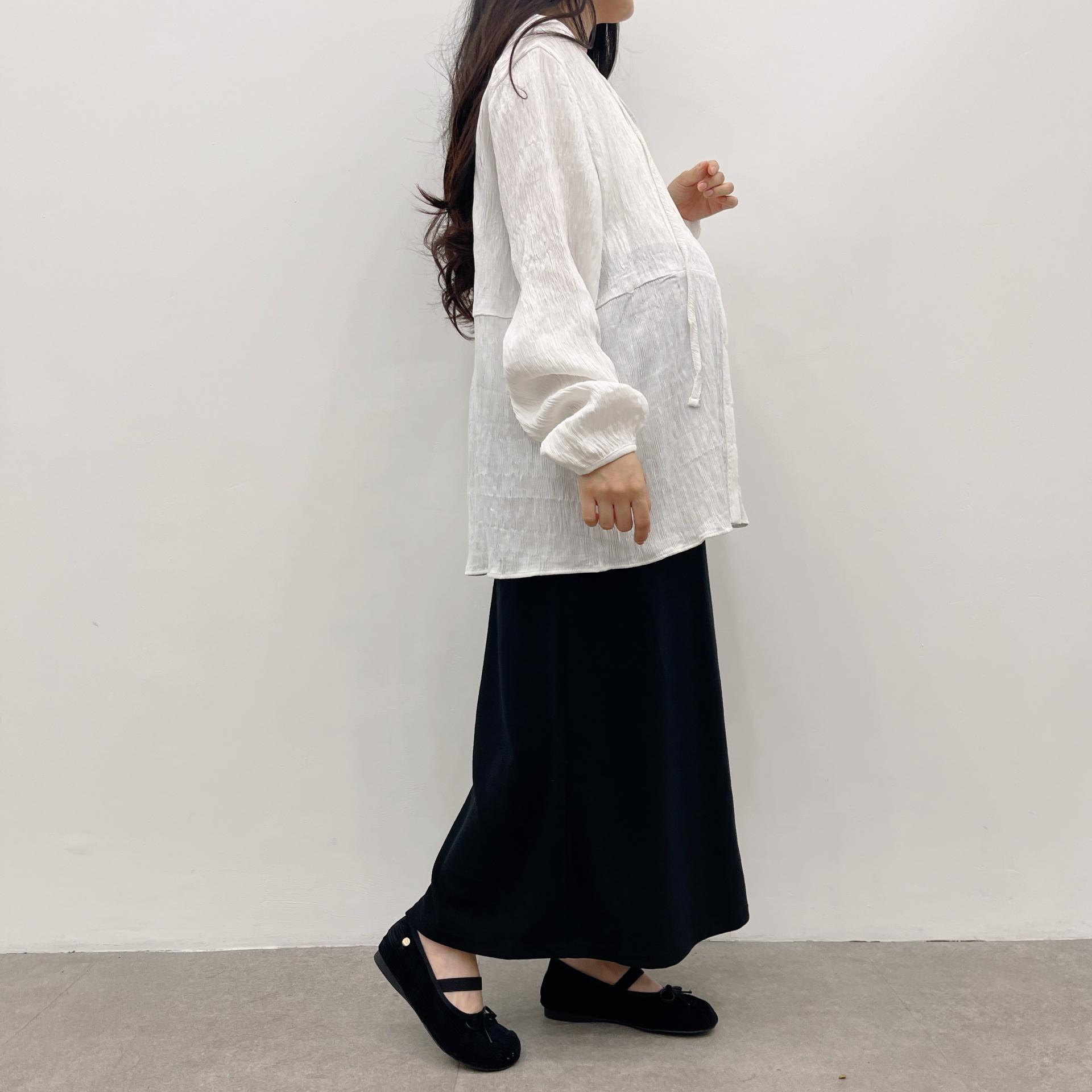 사이즈 좋은 링클주름원단의 배/힙덮기장의 블라우스입니다