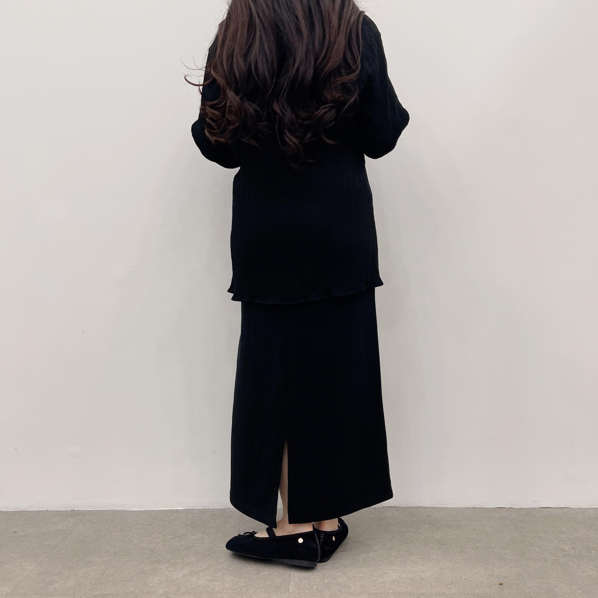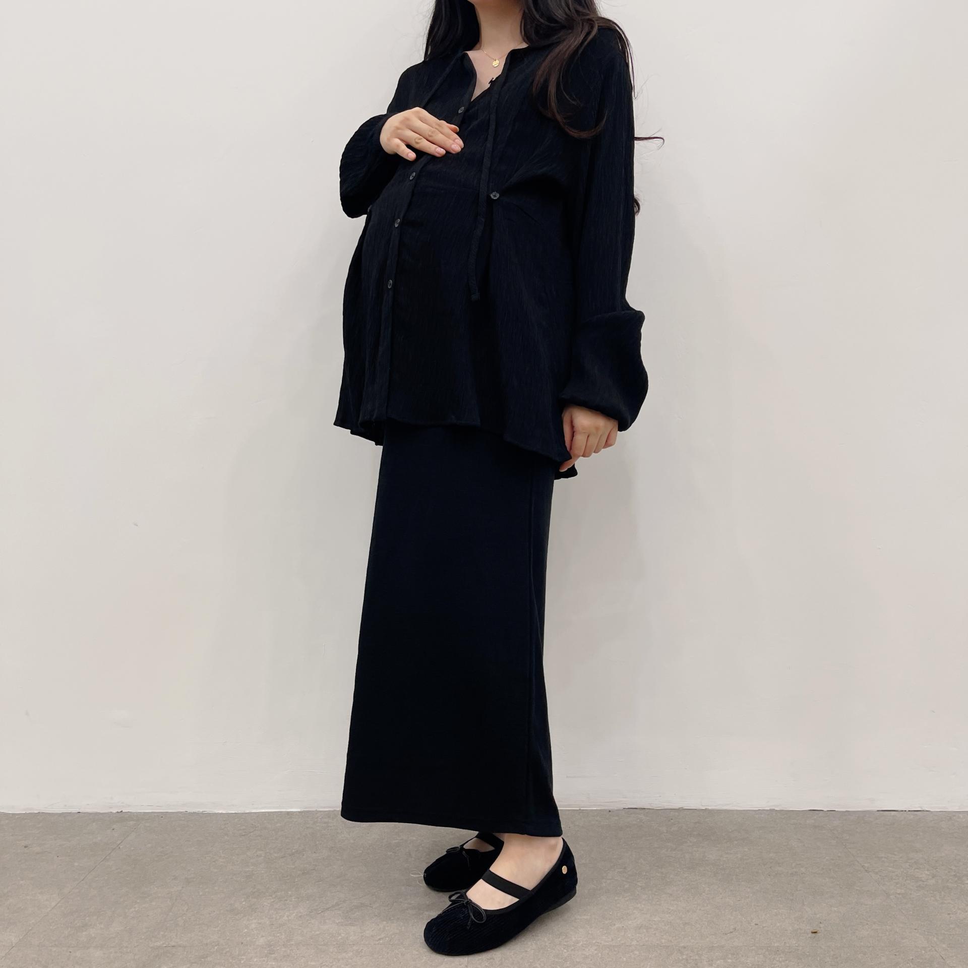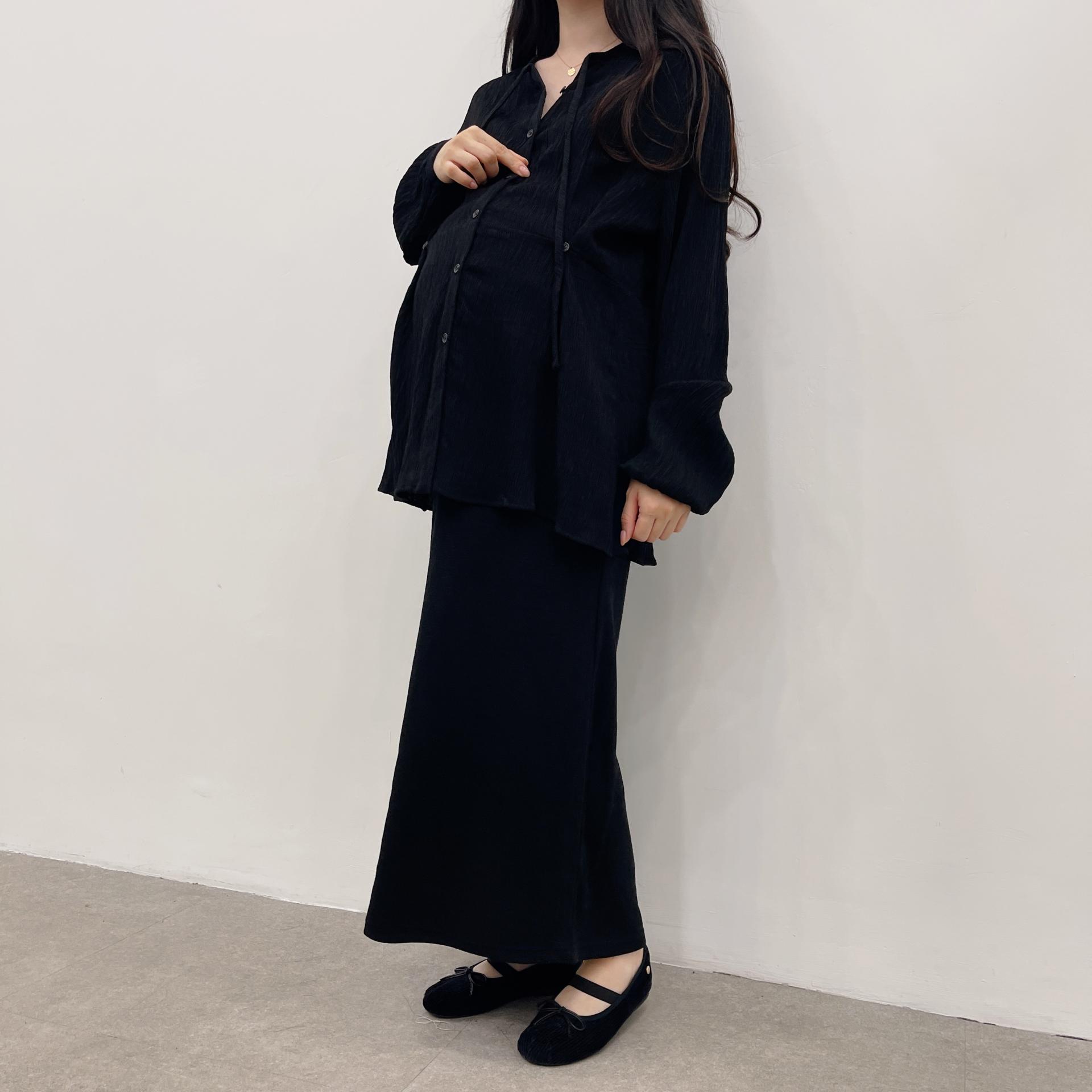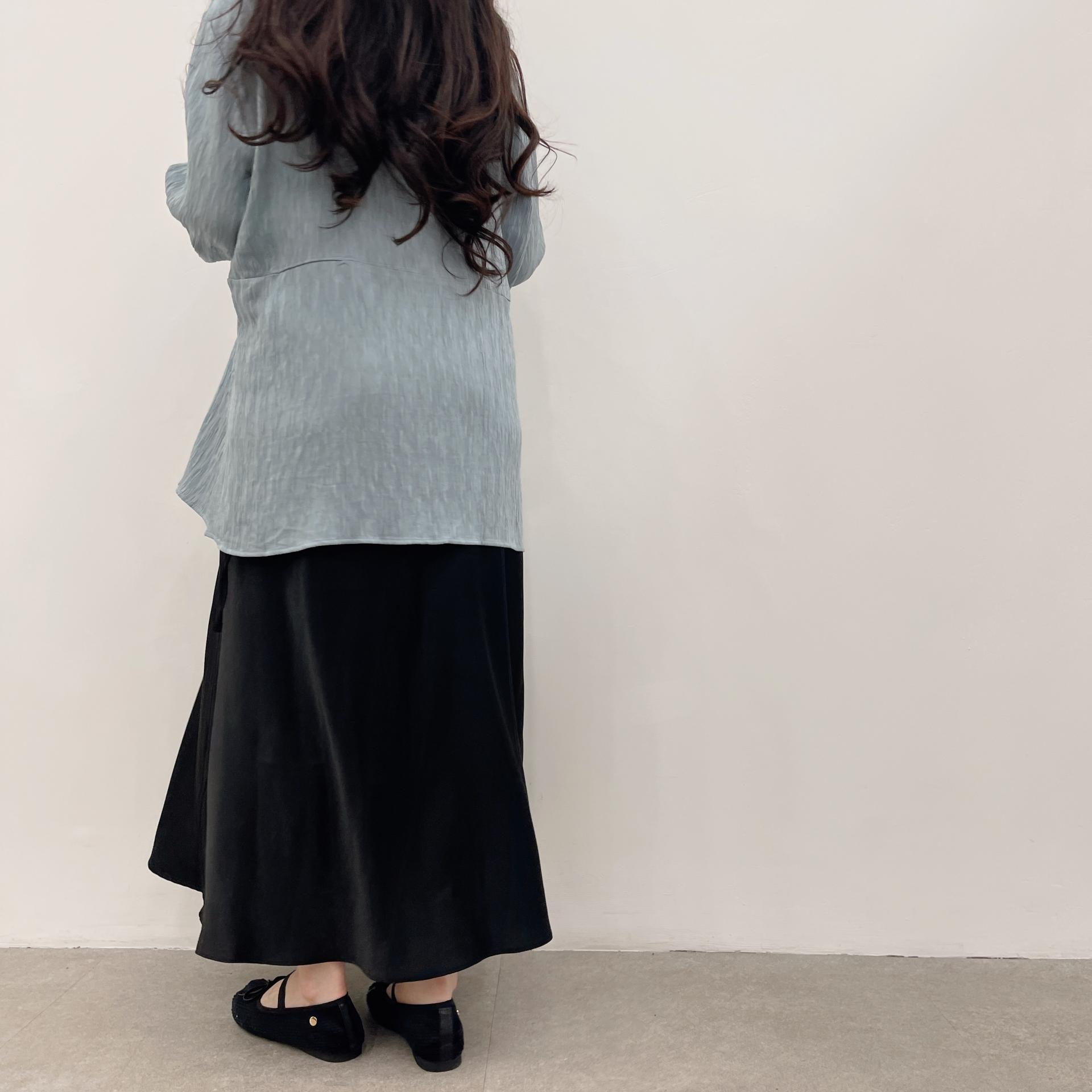 사이즈 좋은 링클주름원단의 배/힙덮기장의 블라우스입니다