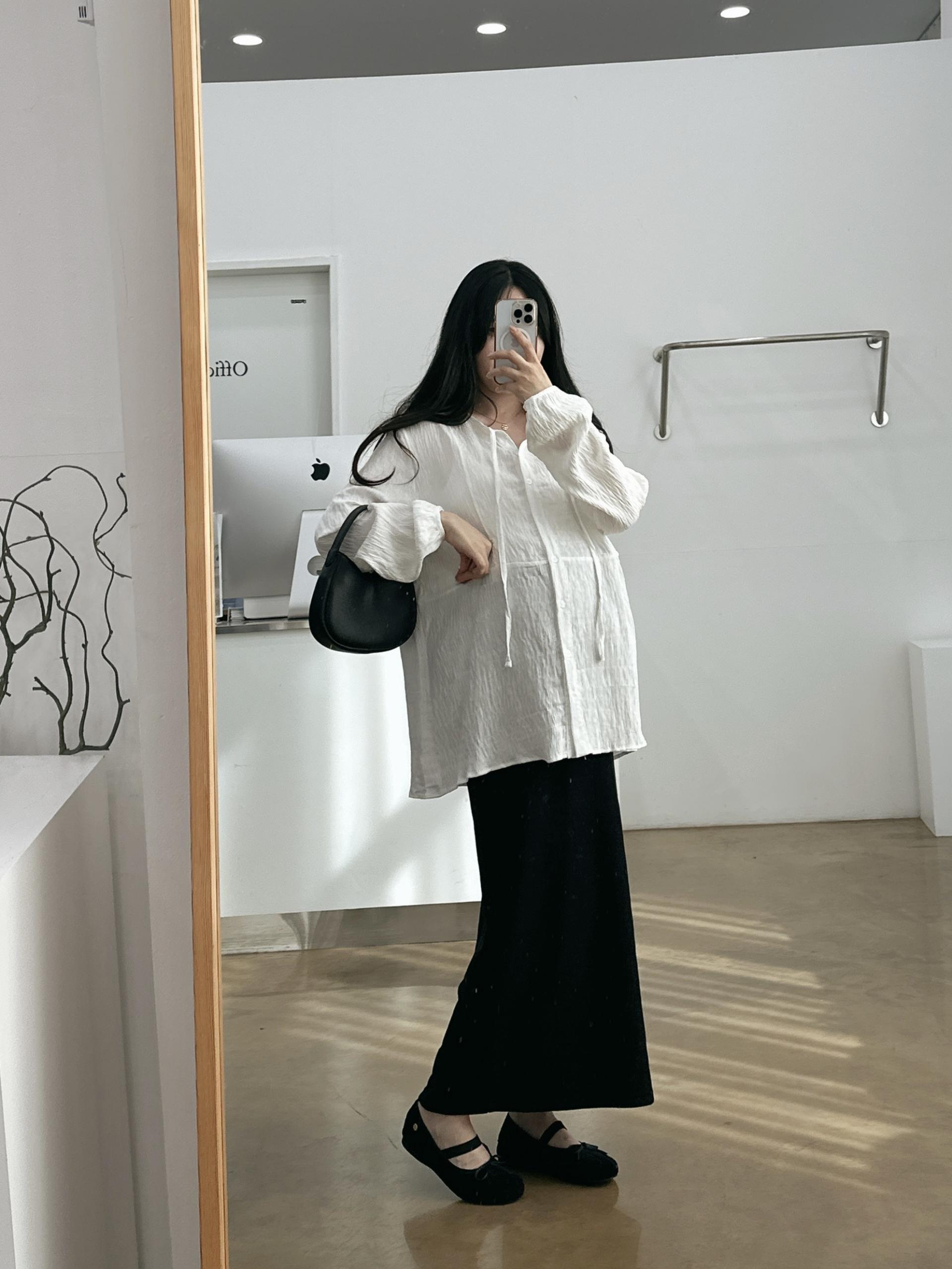 - 크림/아이보리/화이트 색상 등의 밝은 의류는 색상 특성상 재질에 관계없이 약간의 비침이 있어요. 스킨색 속옷이나 이너 착용 해주세요.
