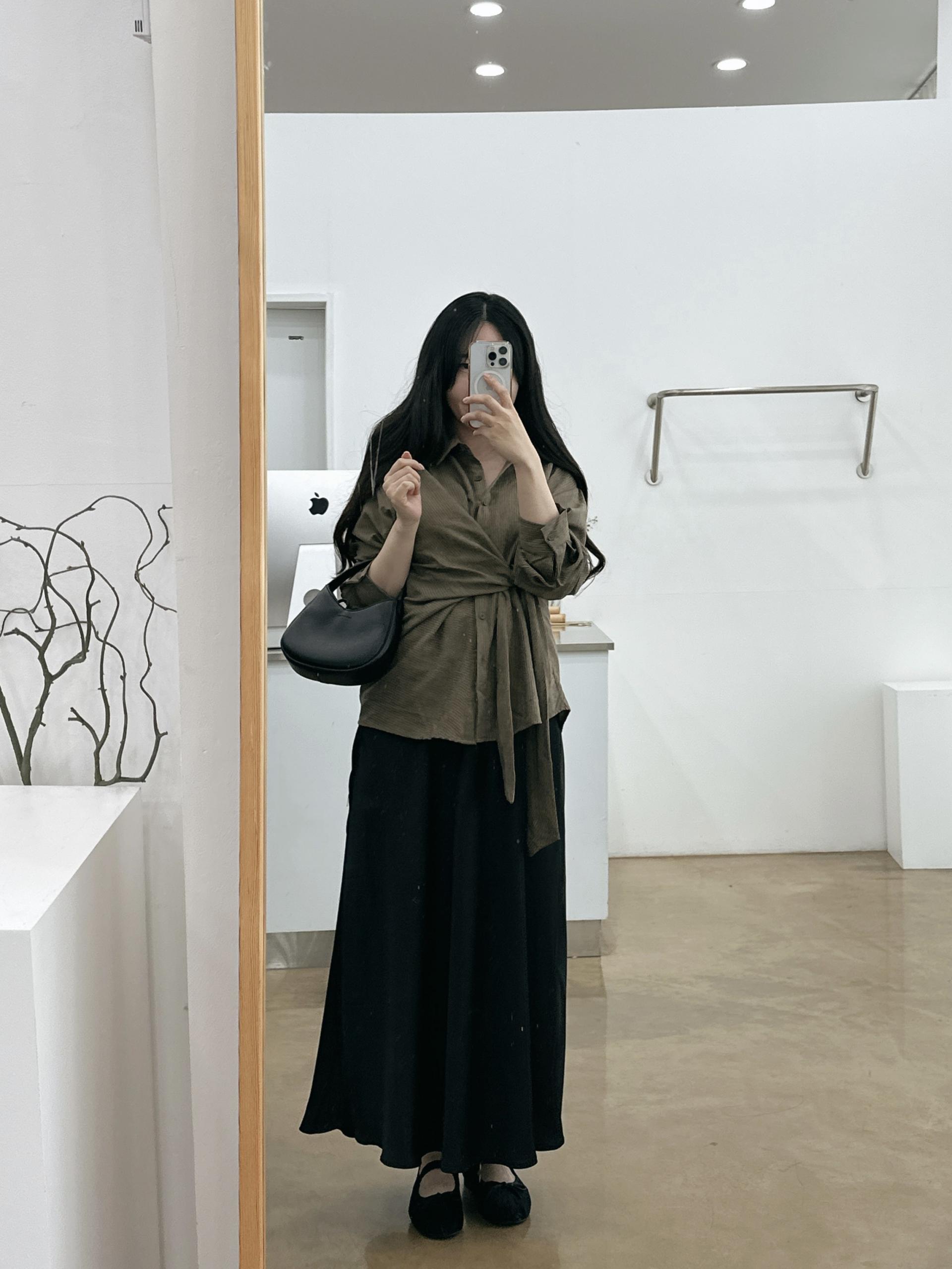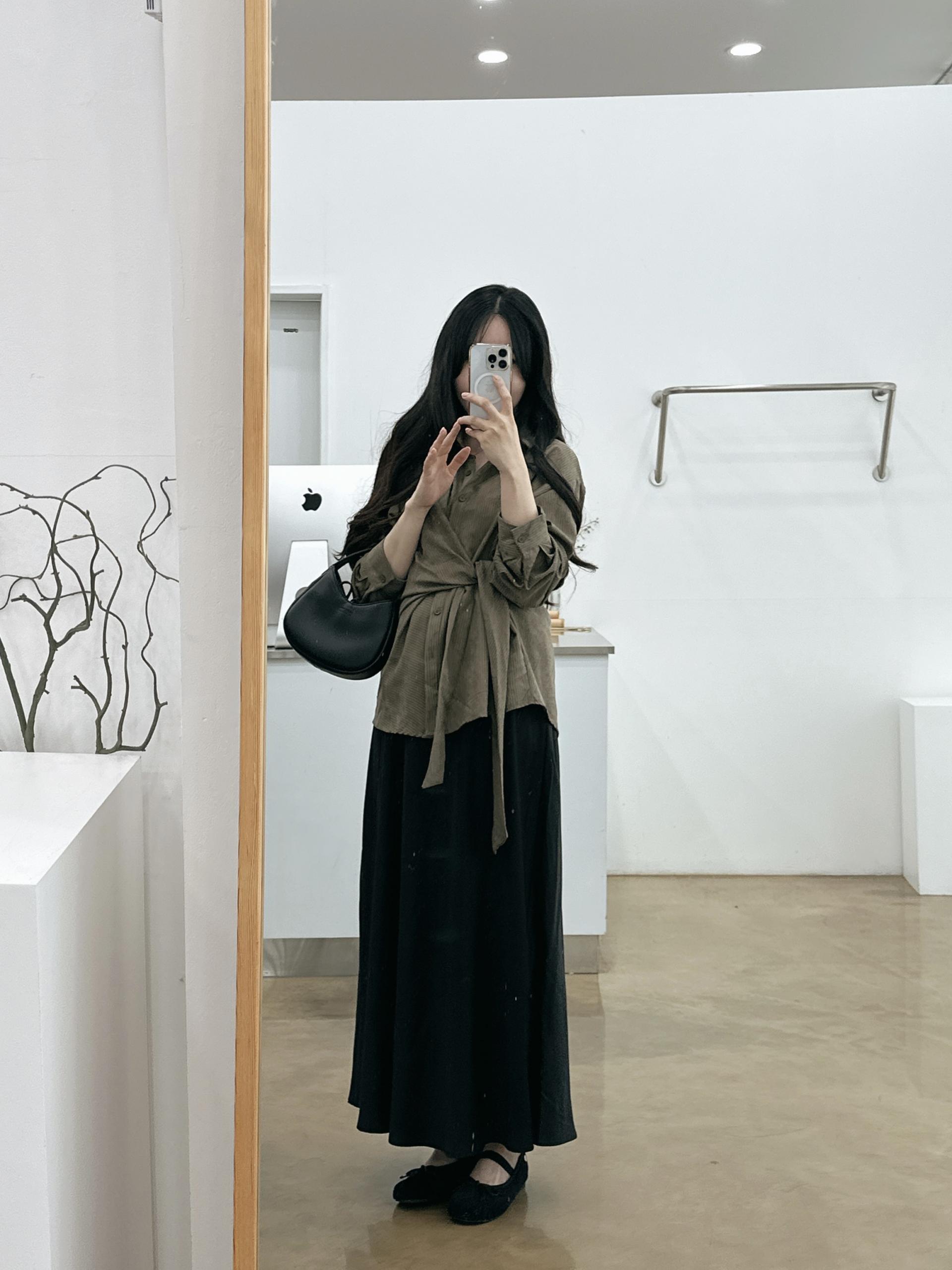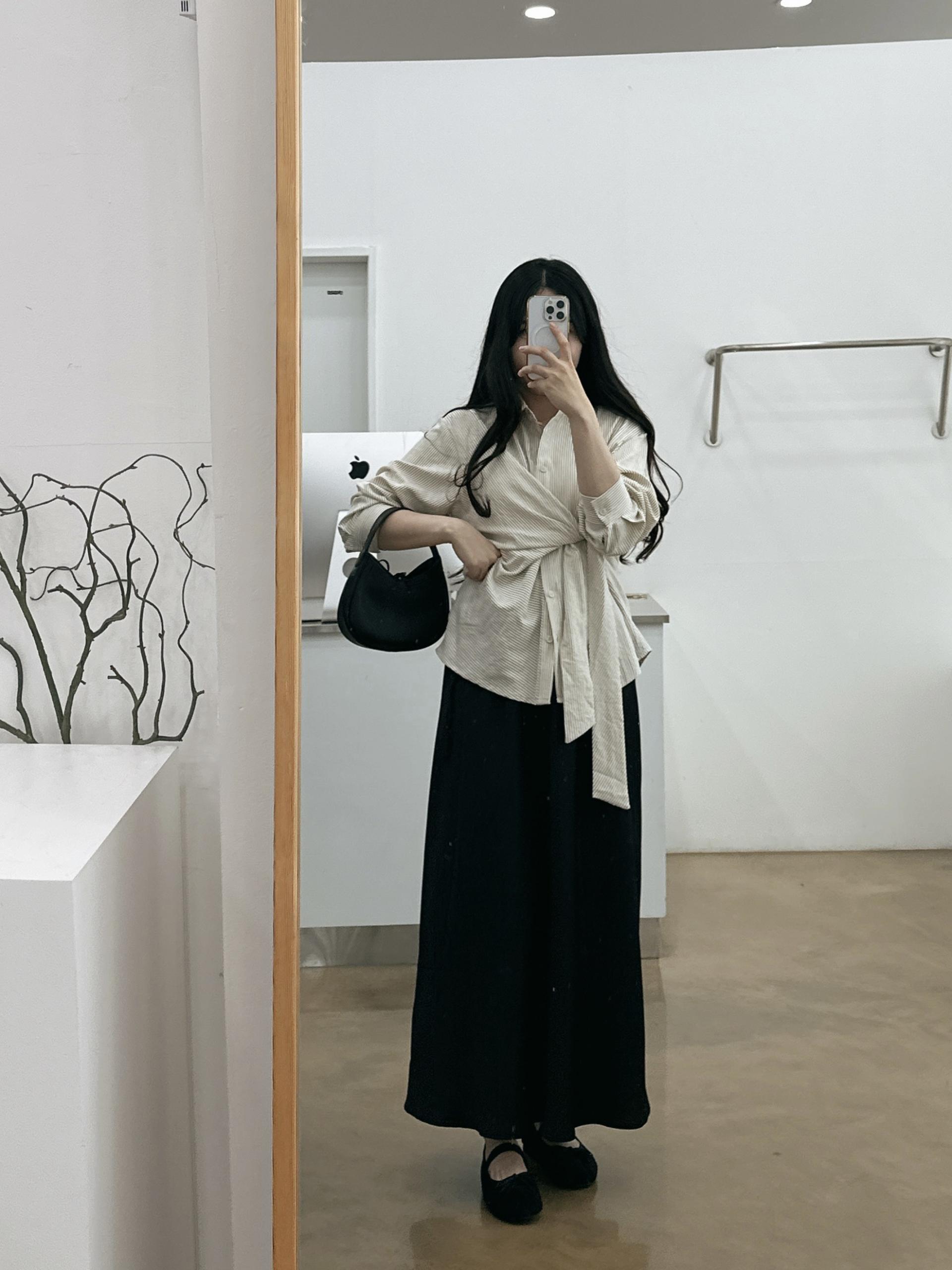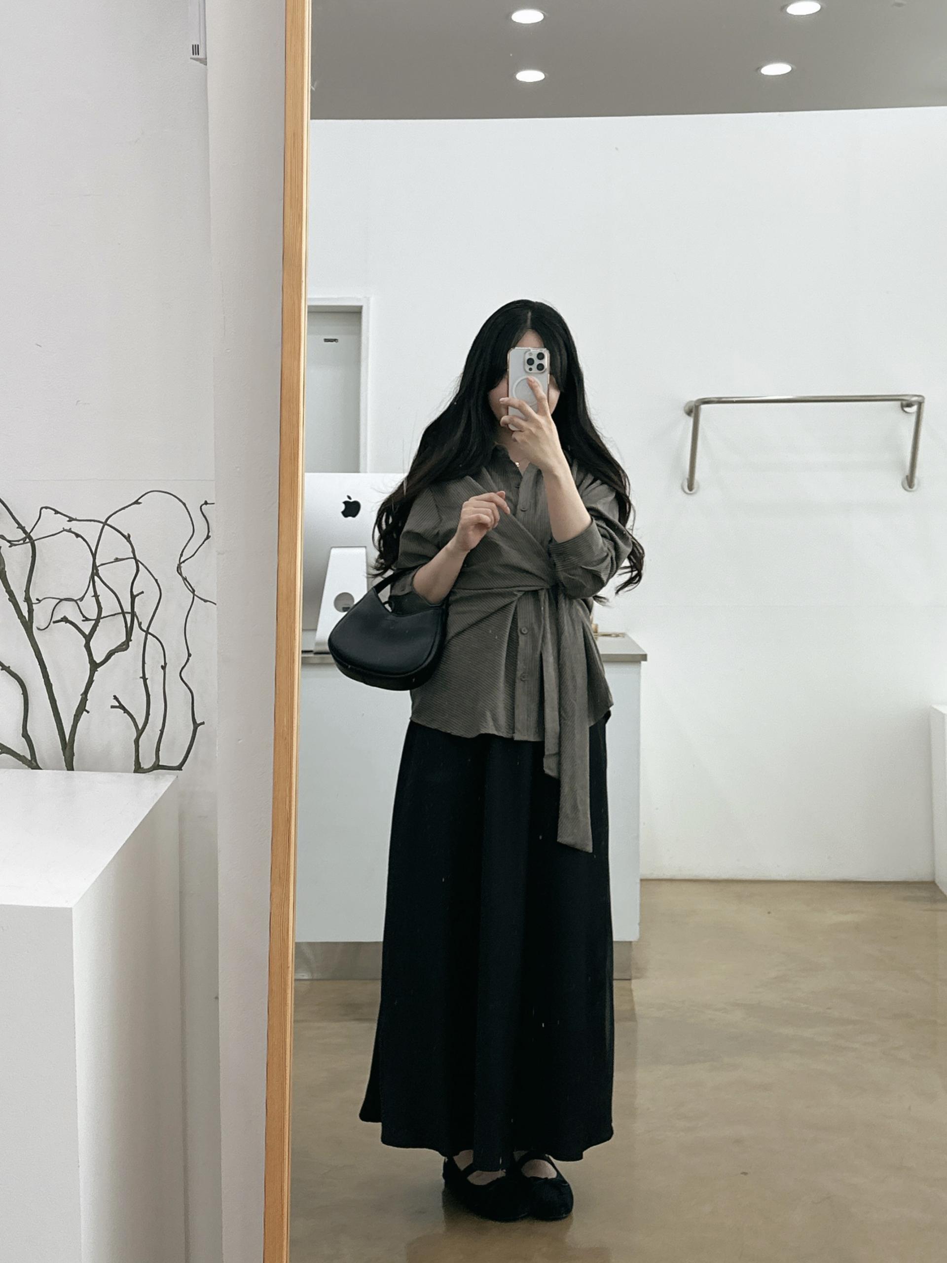 허리선을 강조해서 좀 더 날씬해보이게 만들어주고, 셔츠만의 단정함으로