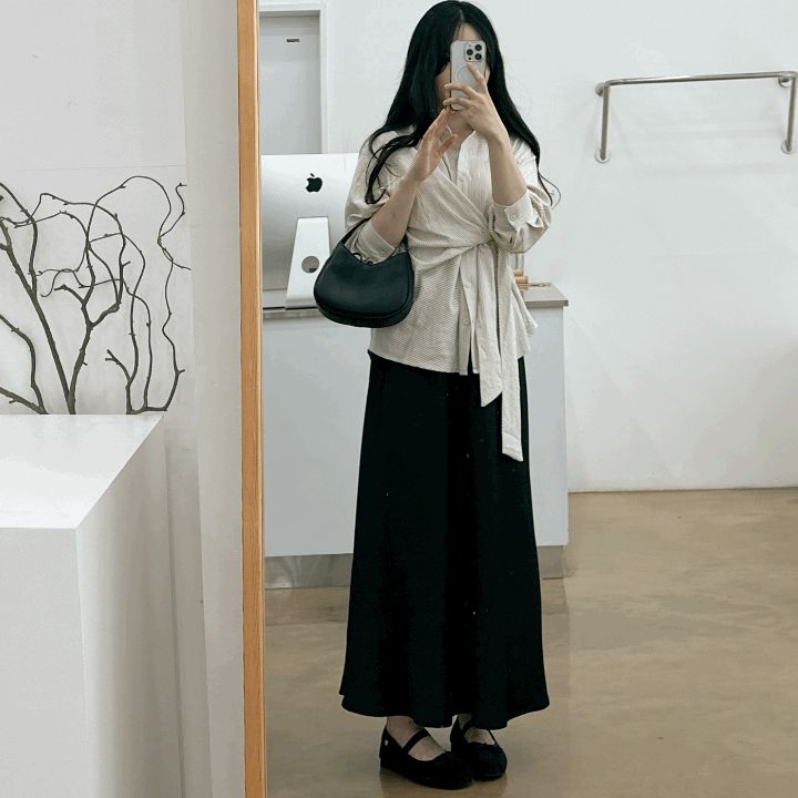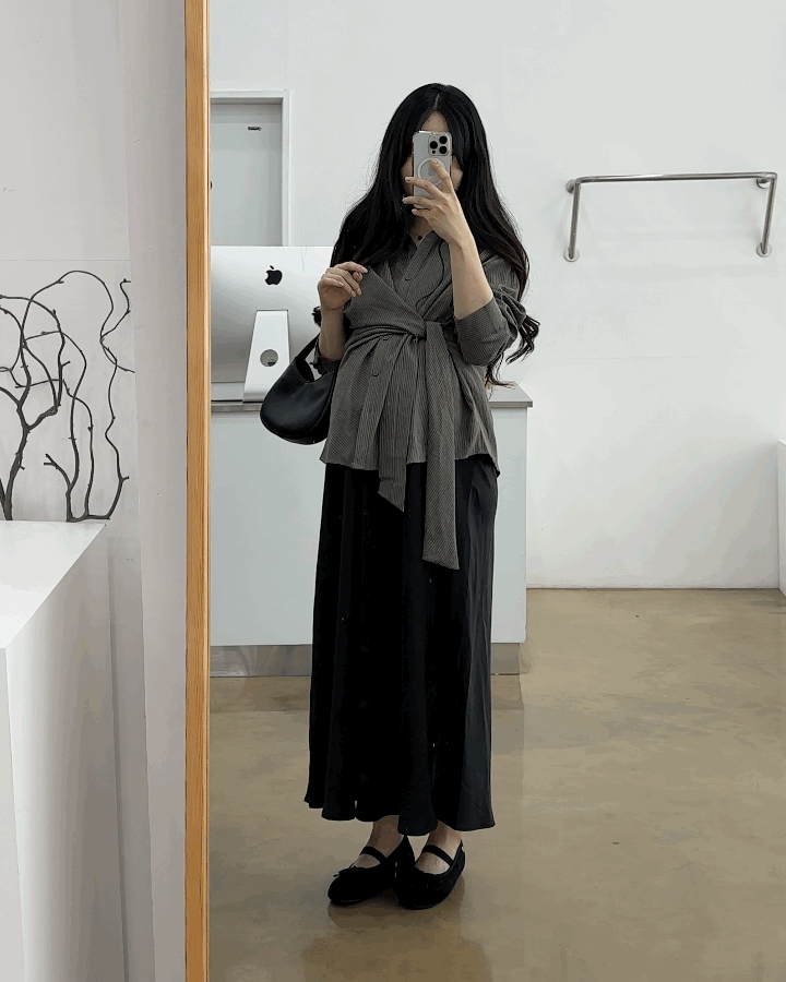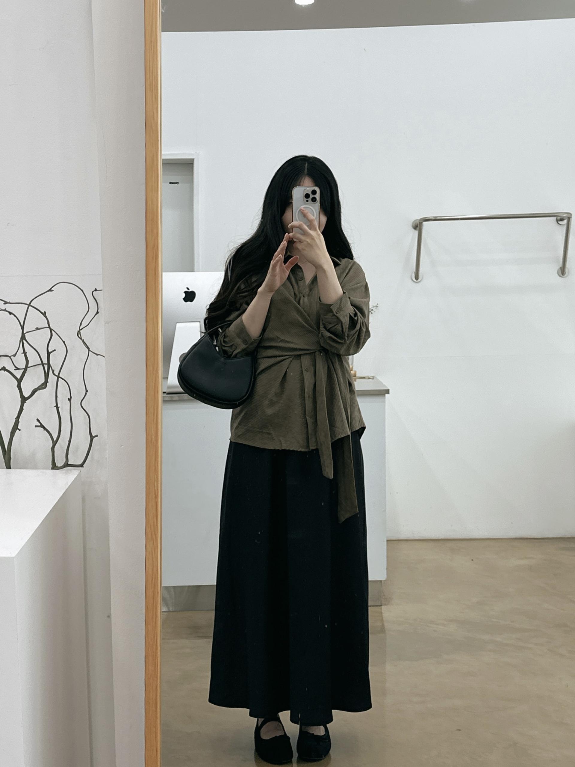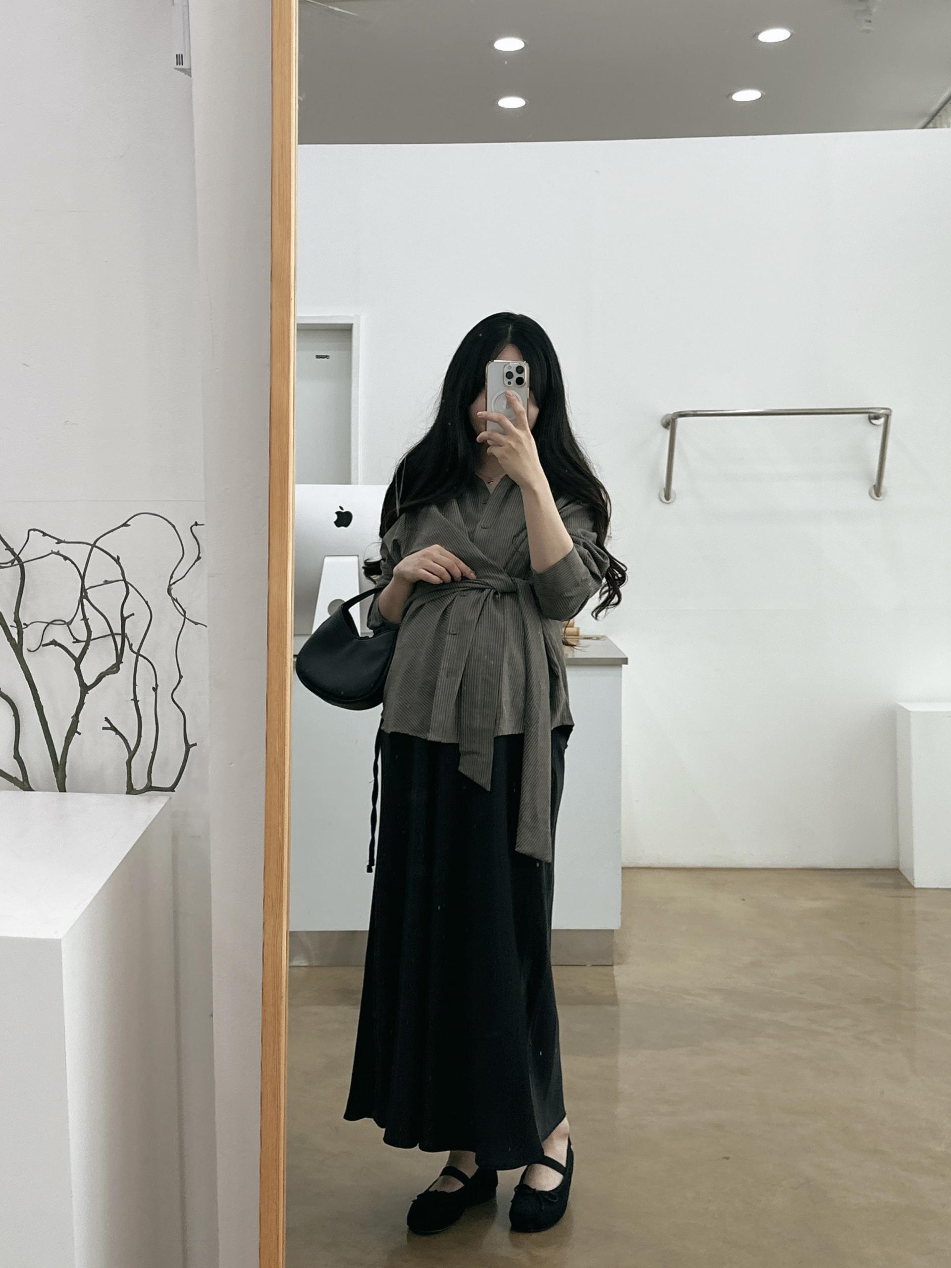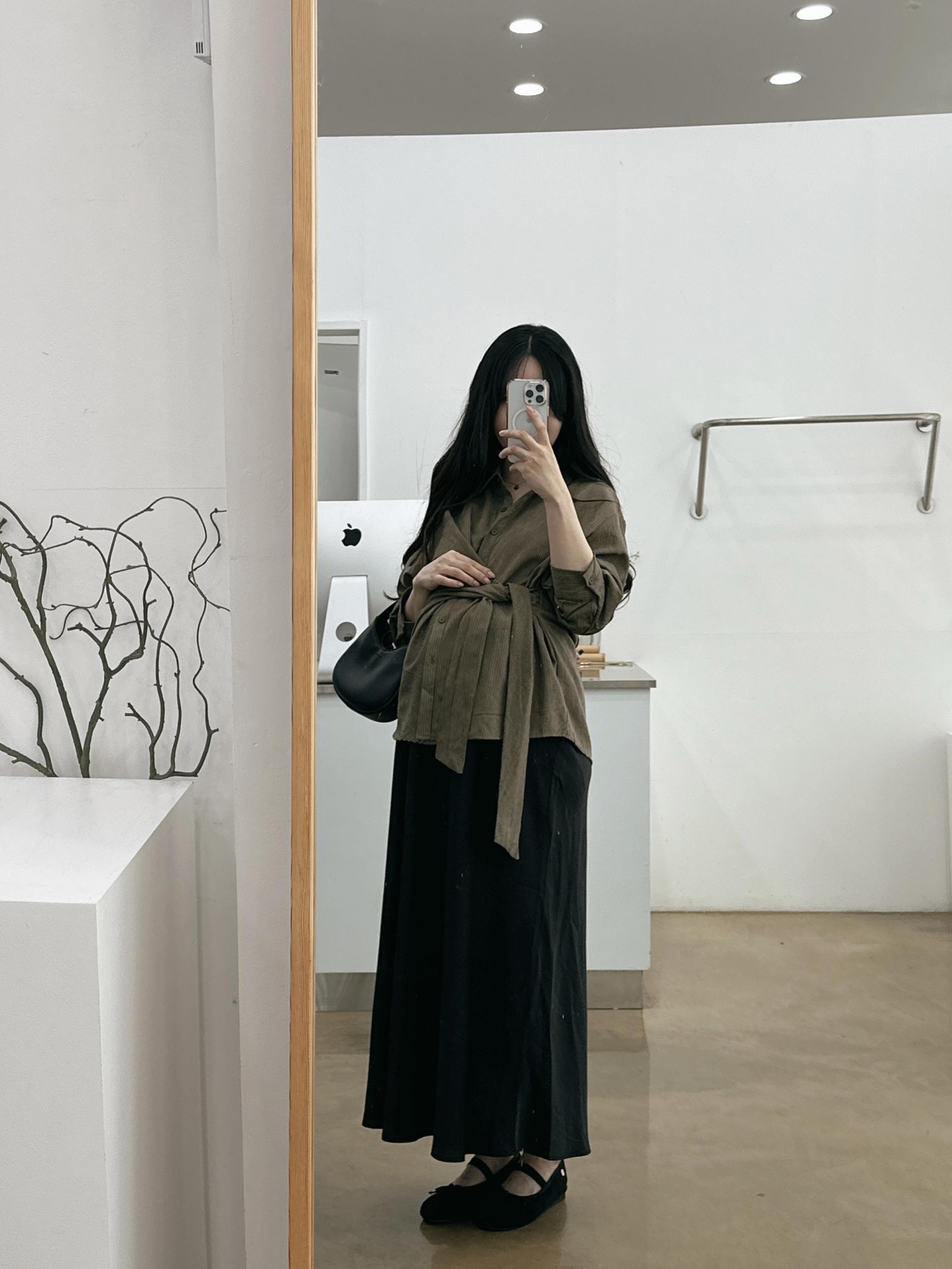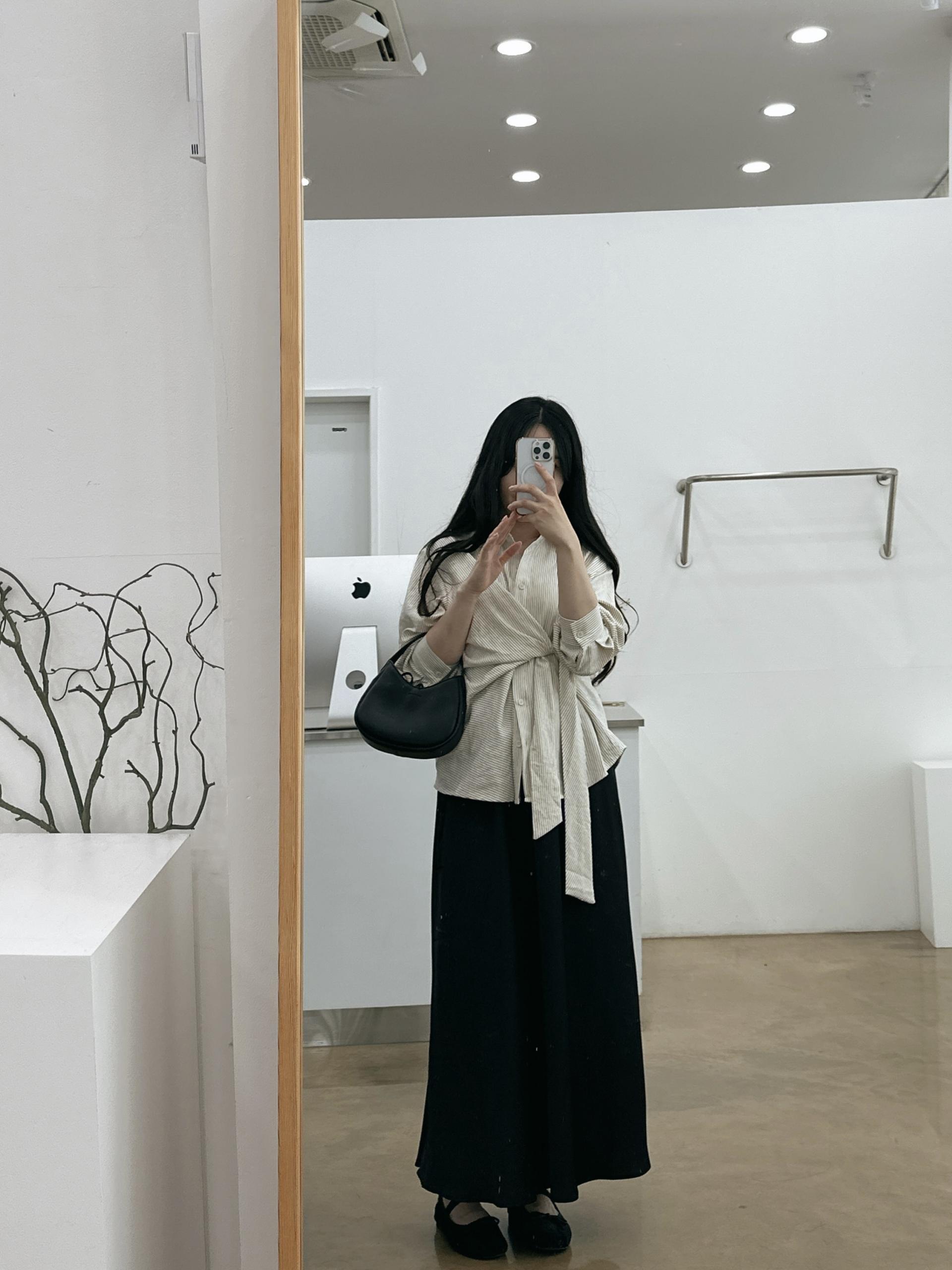 허리선을 강조해서 좀 더 날씬해보이게 만들어주고, 셔츠만의 단정함으로