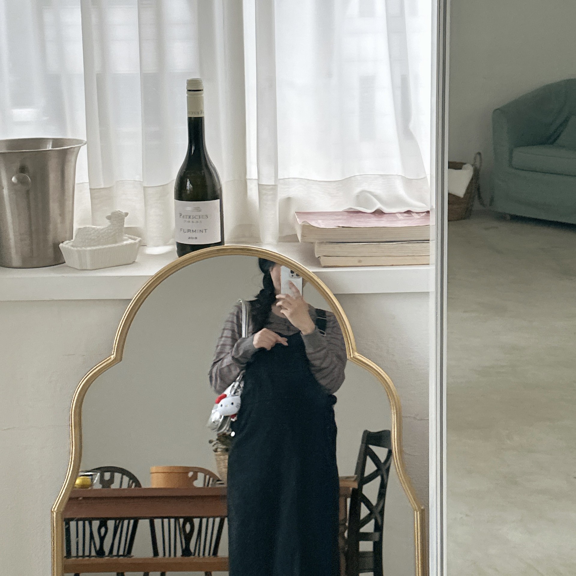 하우멜빵원피스(블랙)+모에단가라니트가디건(버건디)
