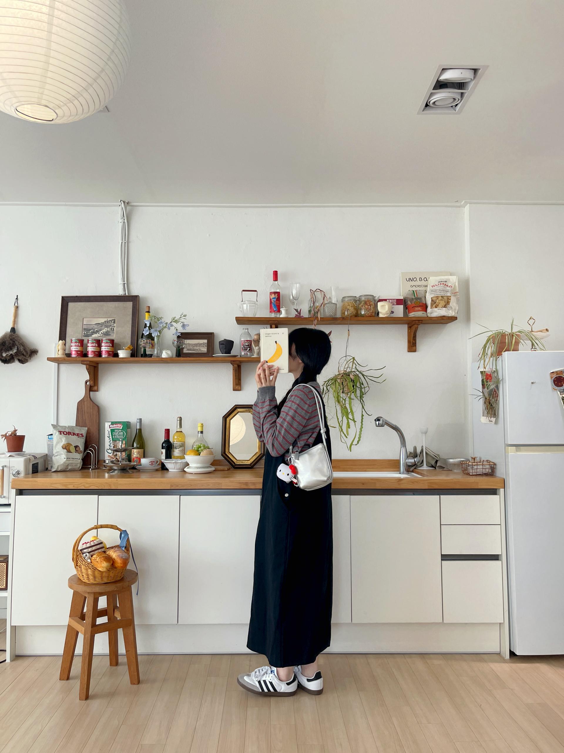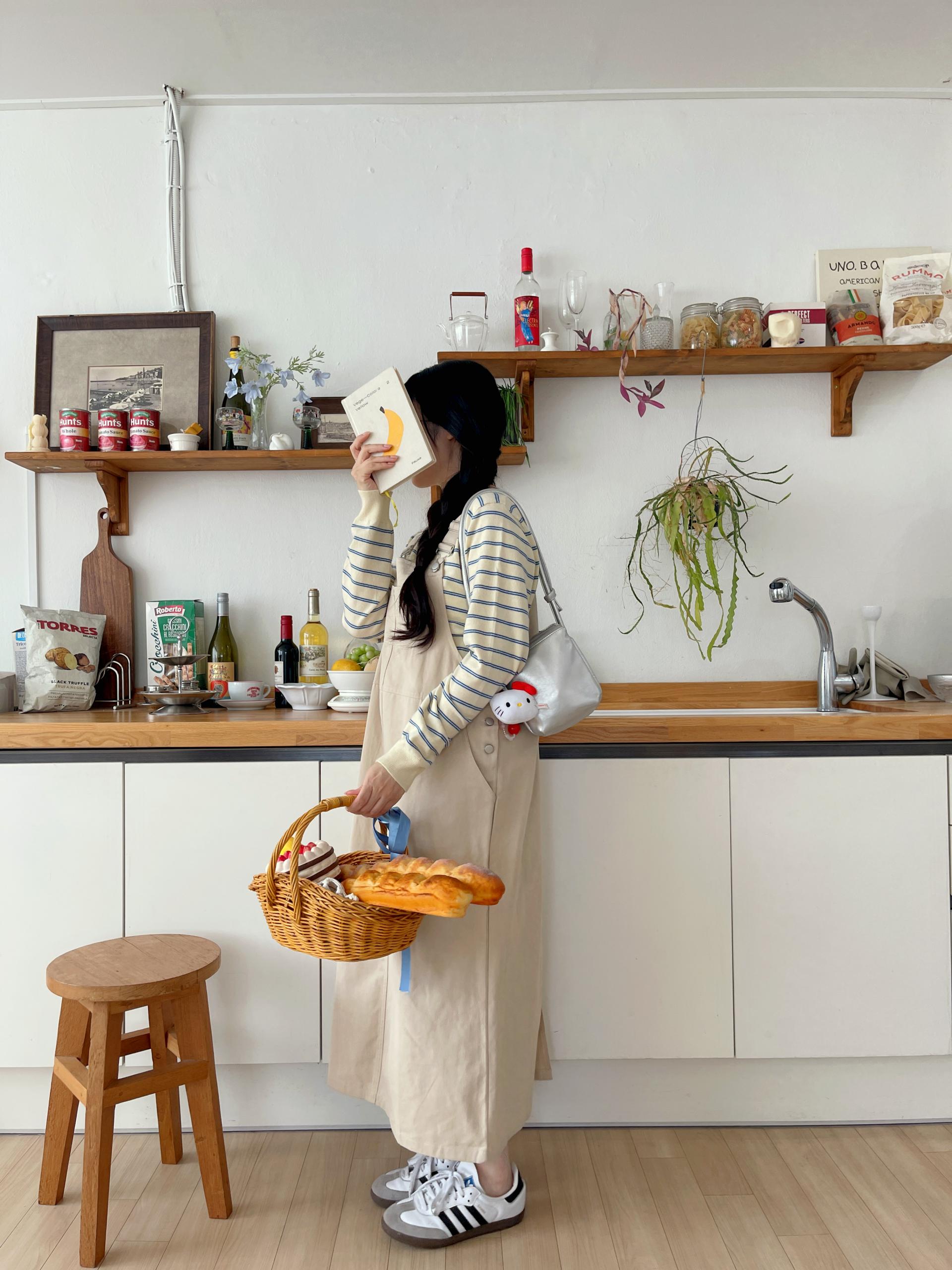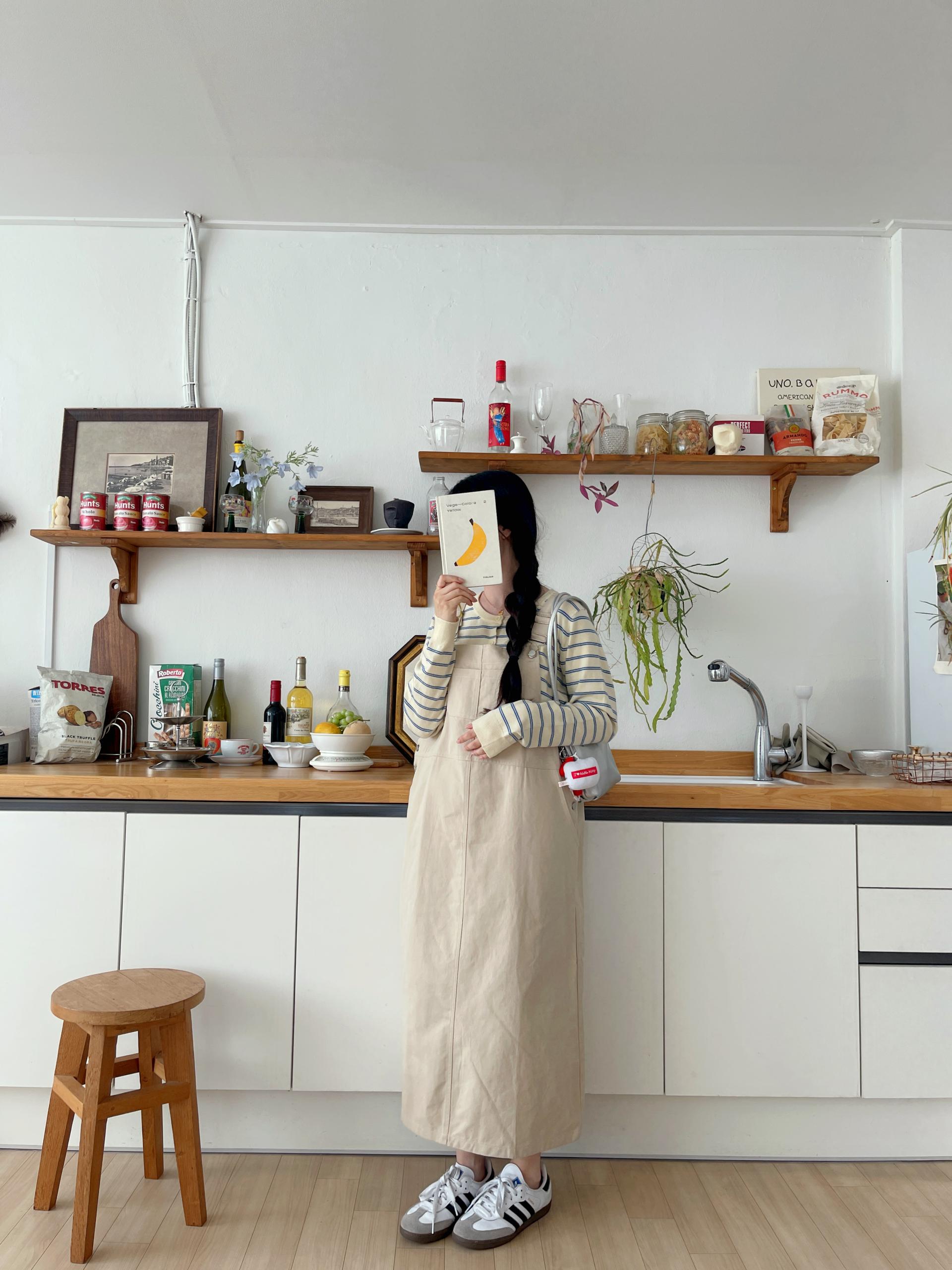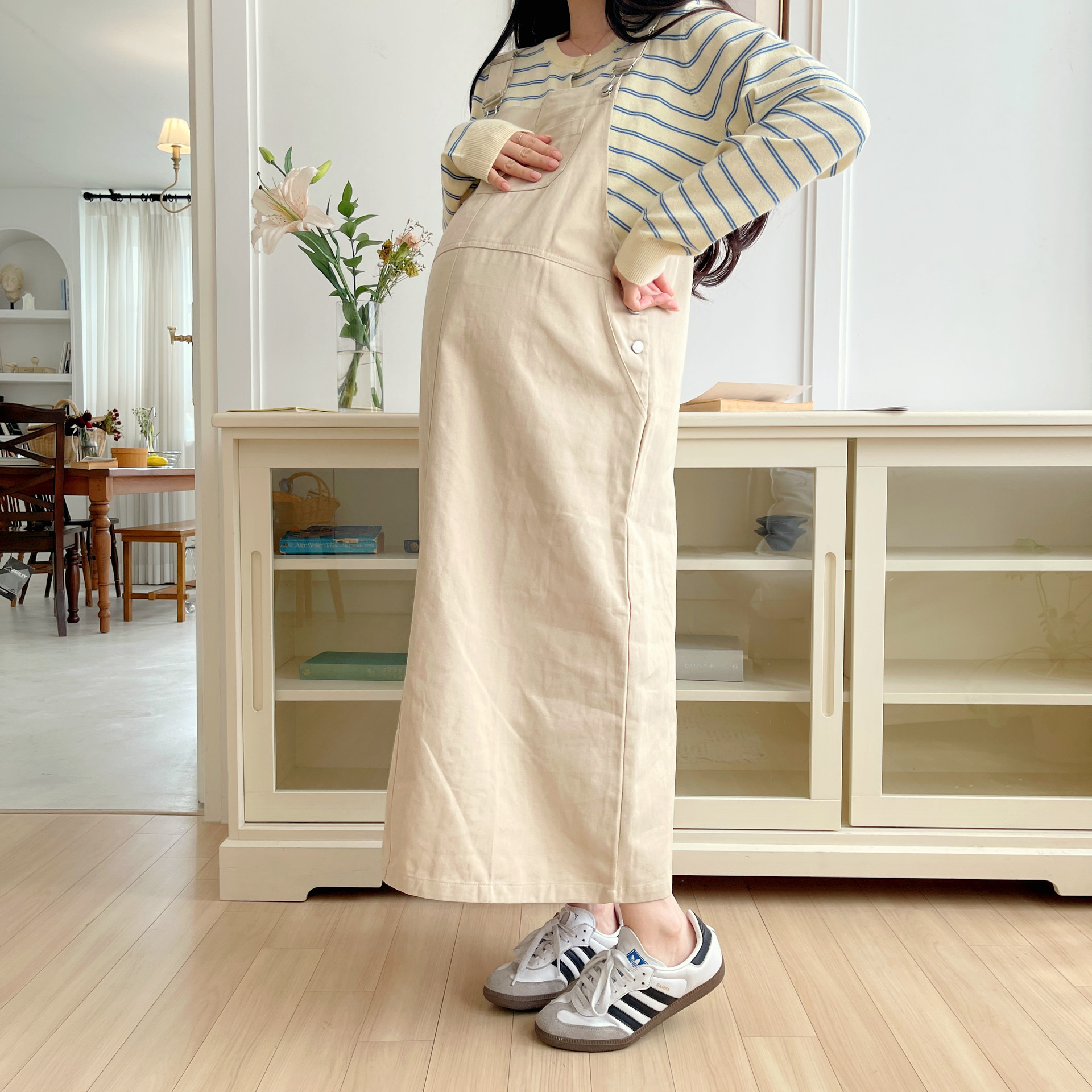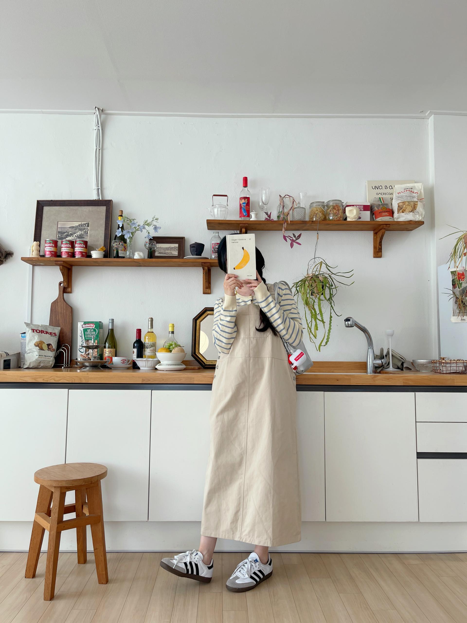 하우멜빵원피스(베이지)+모에단가라니트가디건(버터)