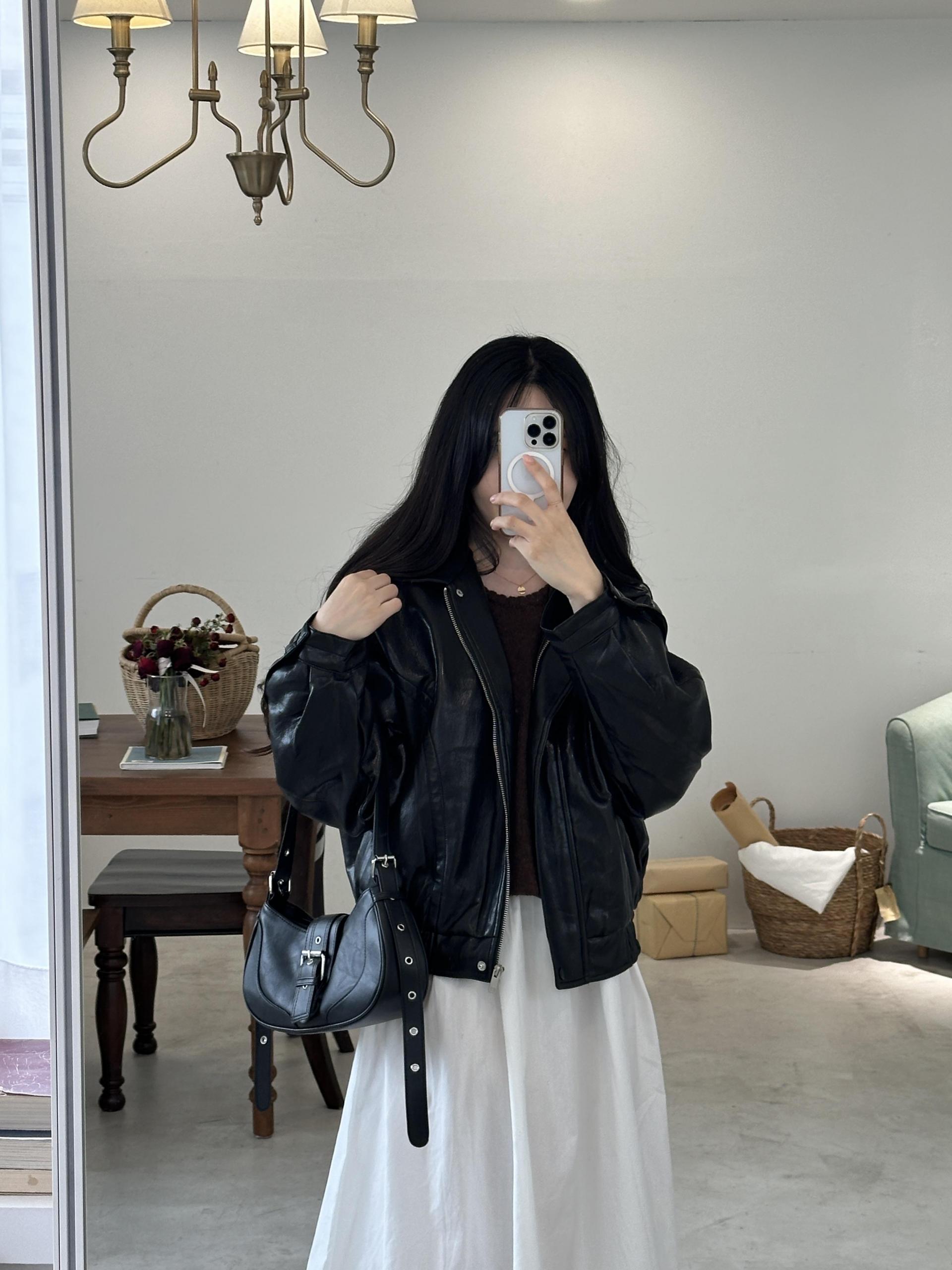 폴리우레탄과 레이온을 혼방한, 유연하고 은은한광택으로 무드넘치는 레더자켓 입니다