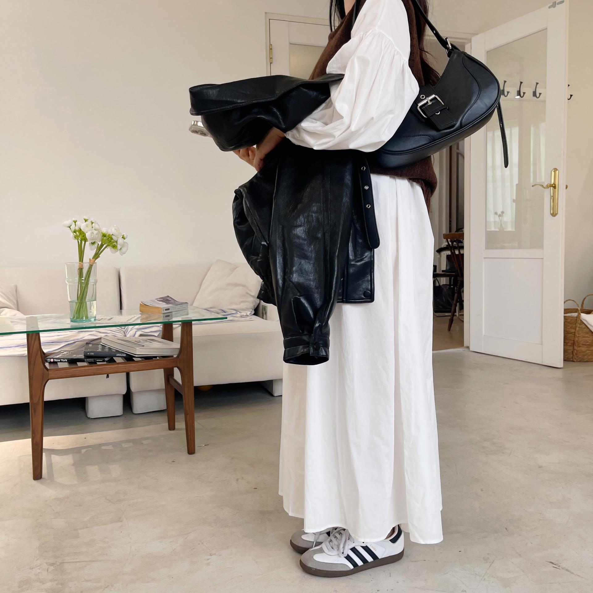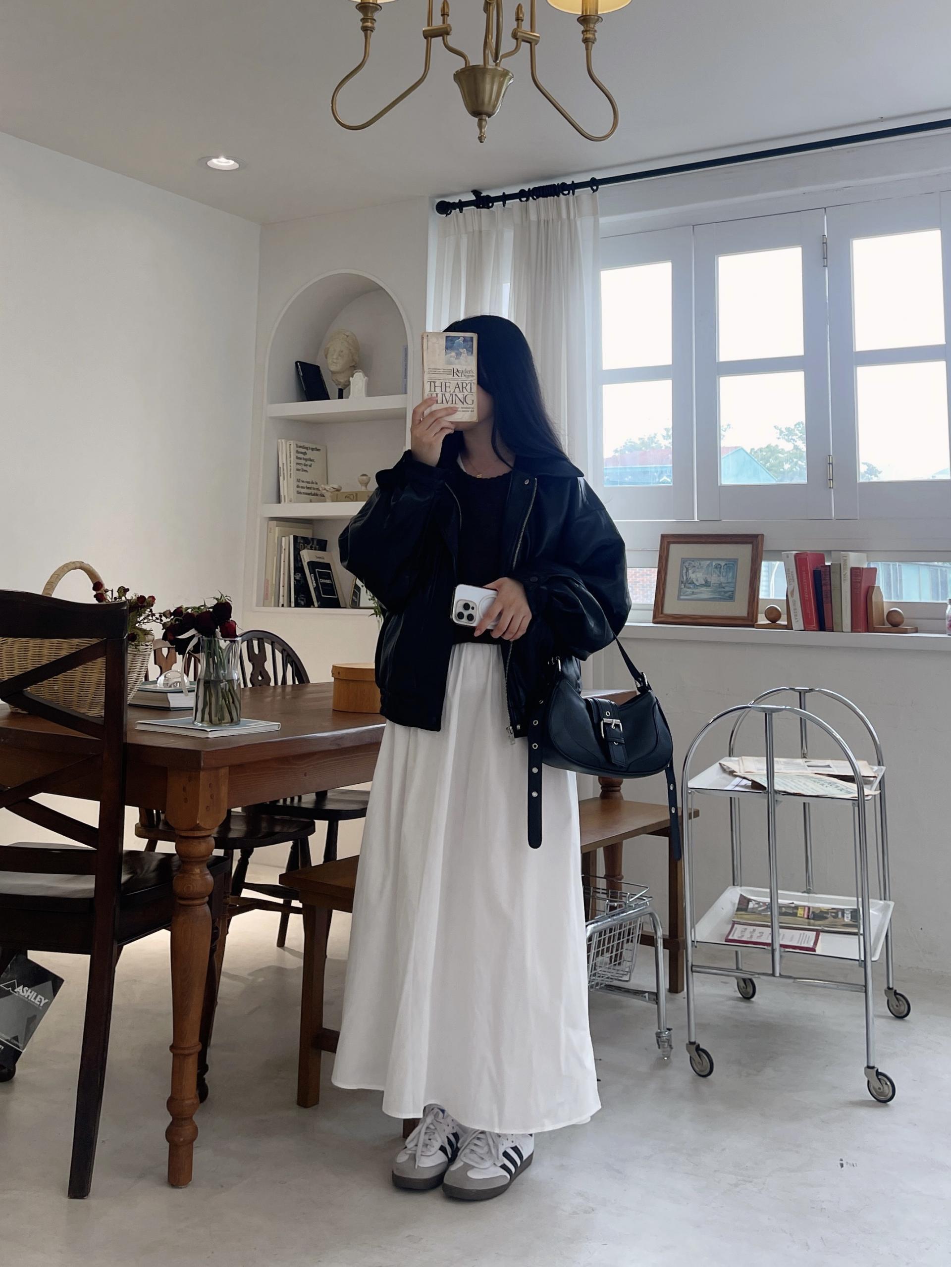 코디상품 : 박시핏벌룬원피스(화이트) / 알파카니트조끼 브라운)