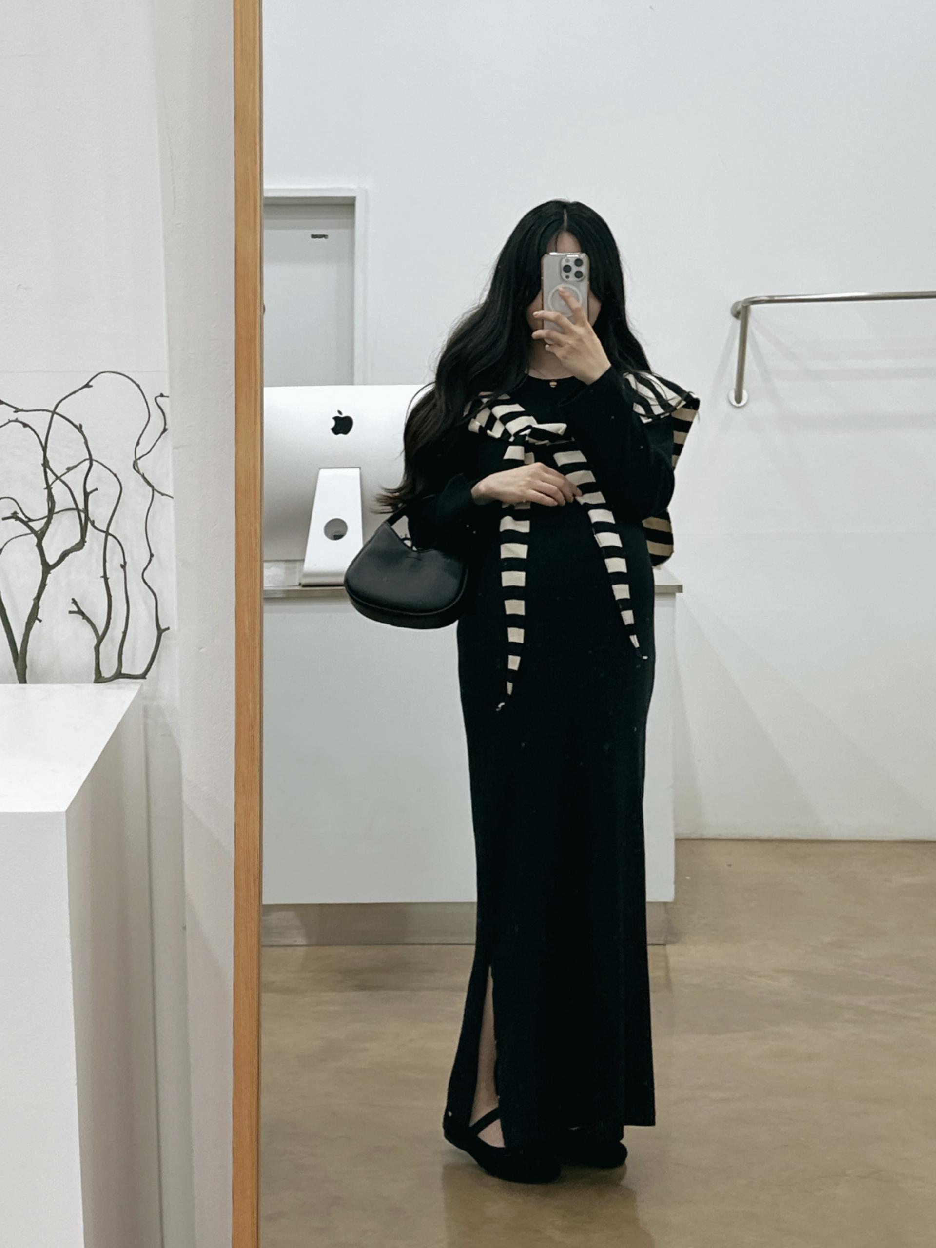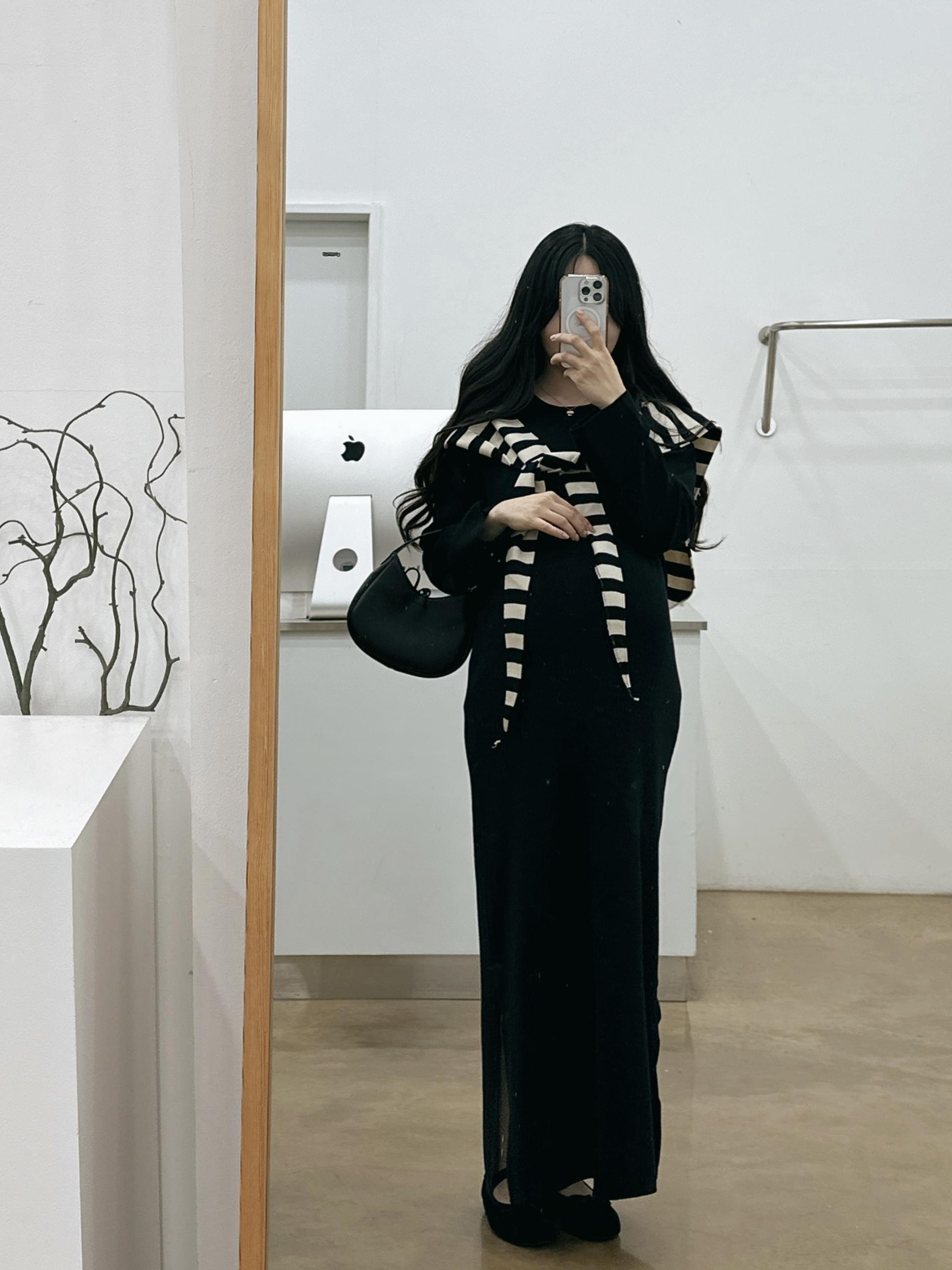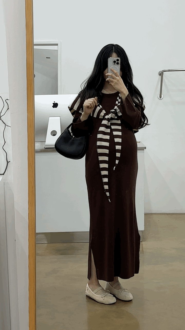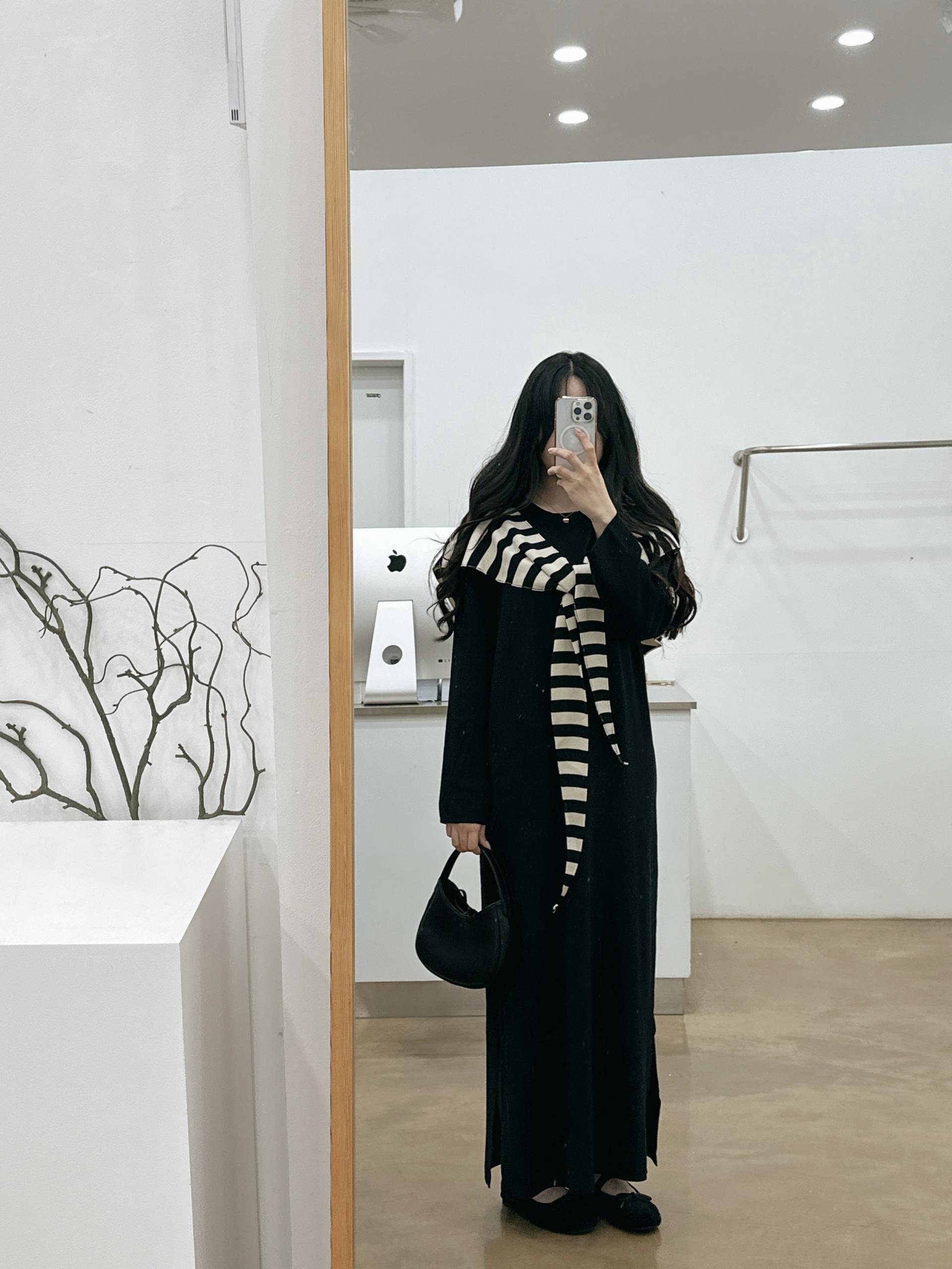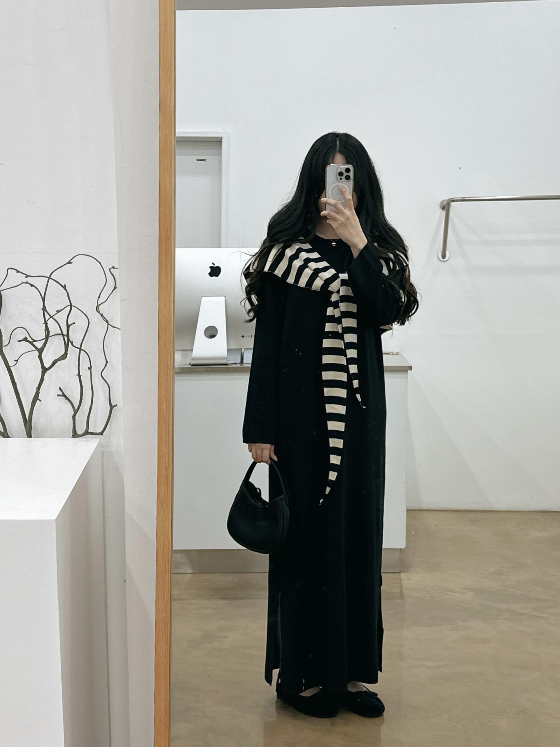 힙을 좀 가리고 싶다면 숄을 좀 더 뒤로 넘겨서 해보세요!! :)