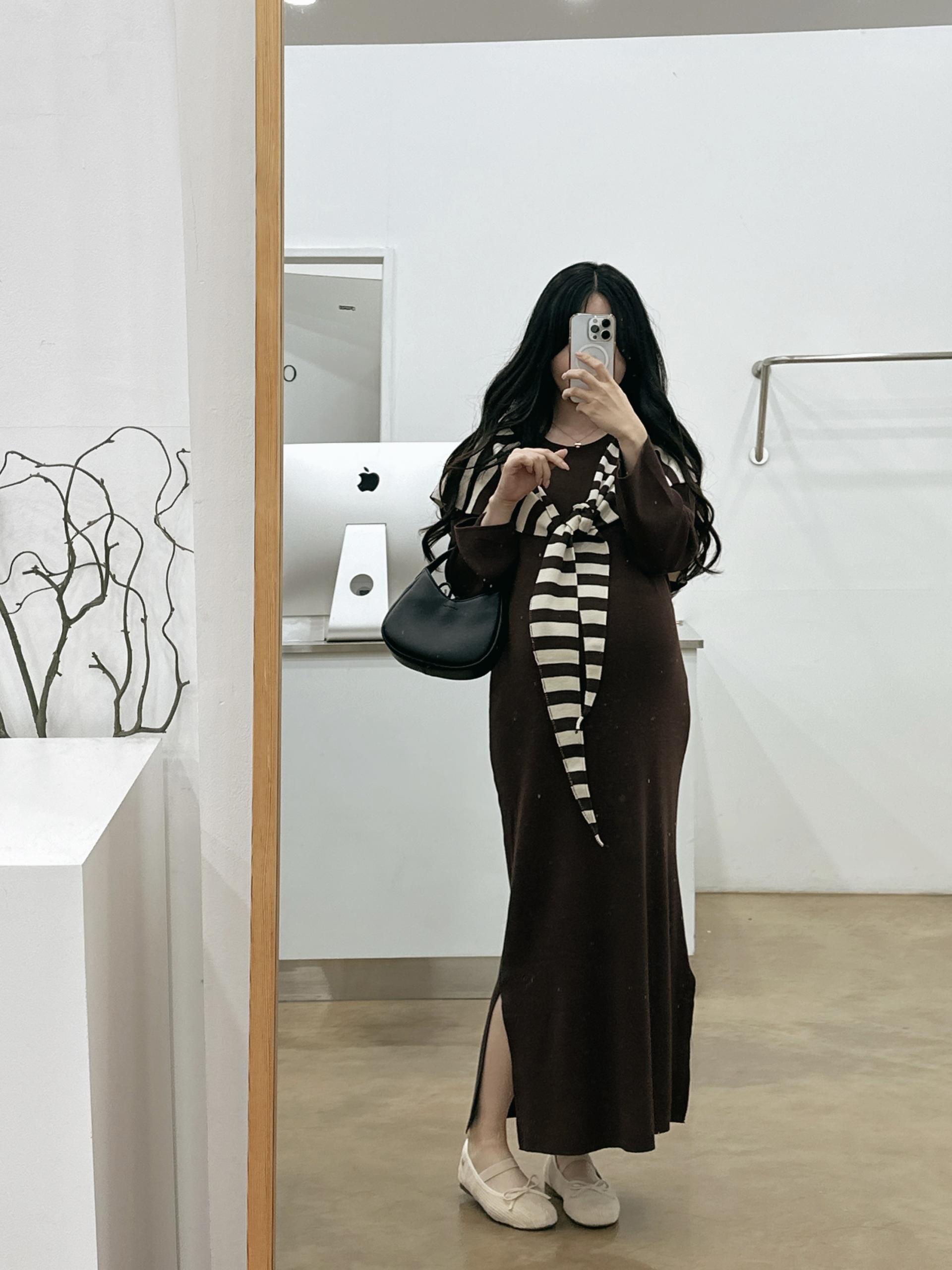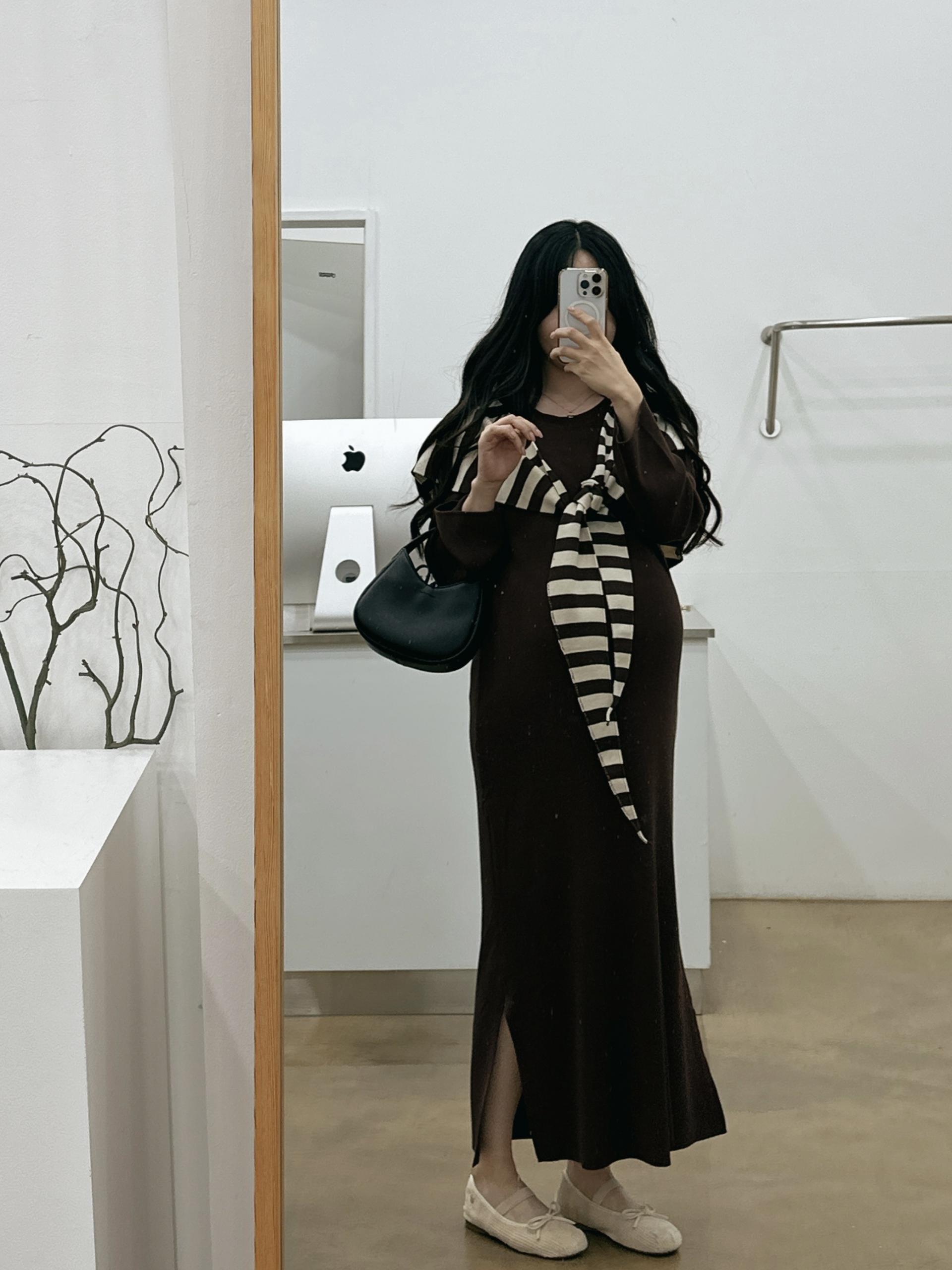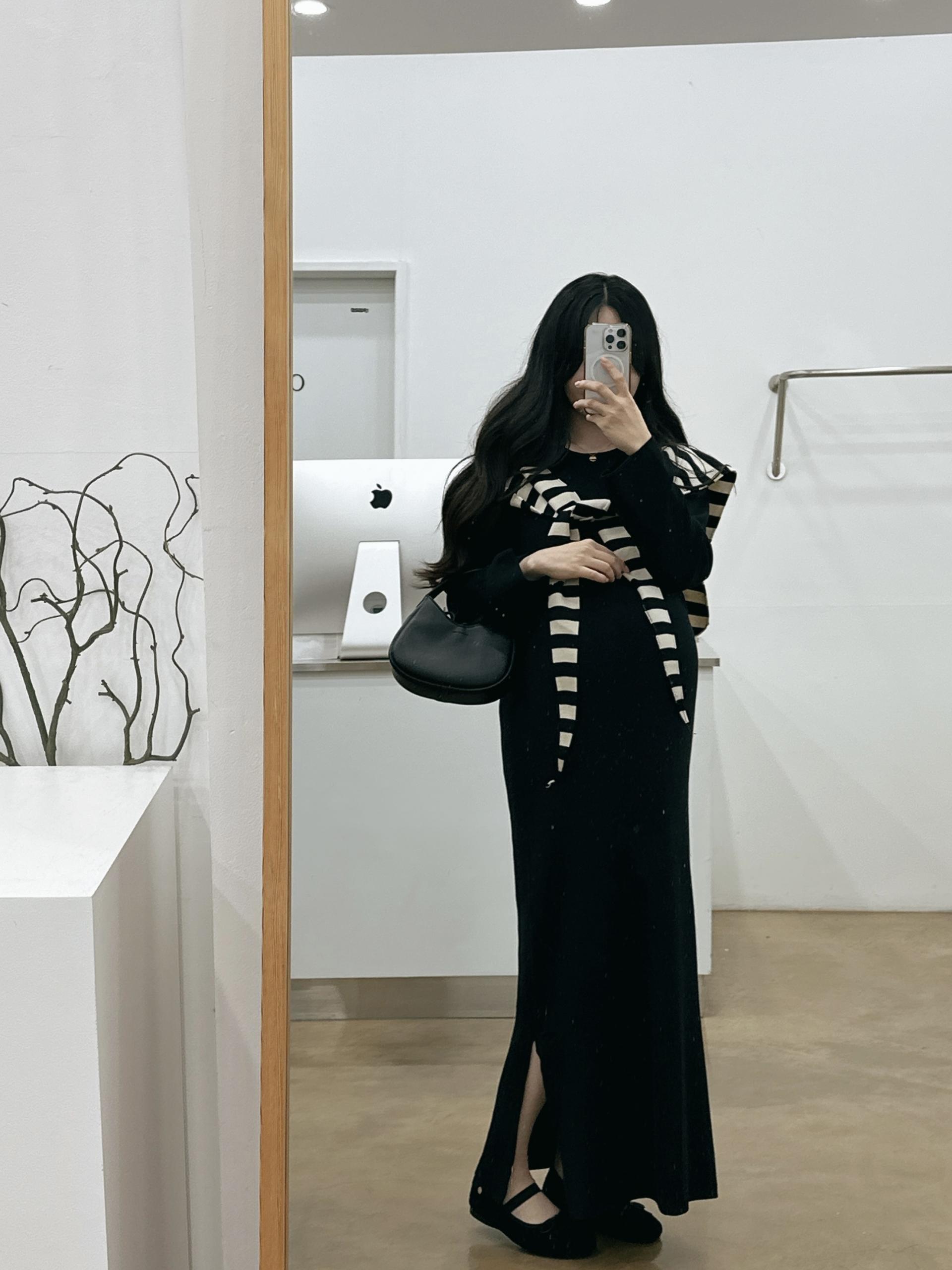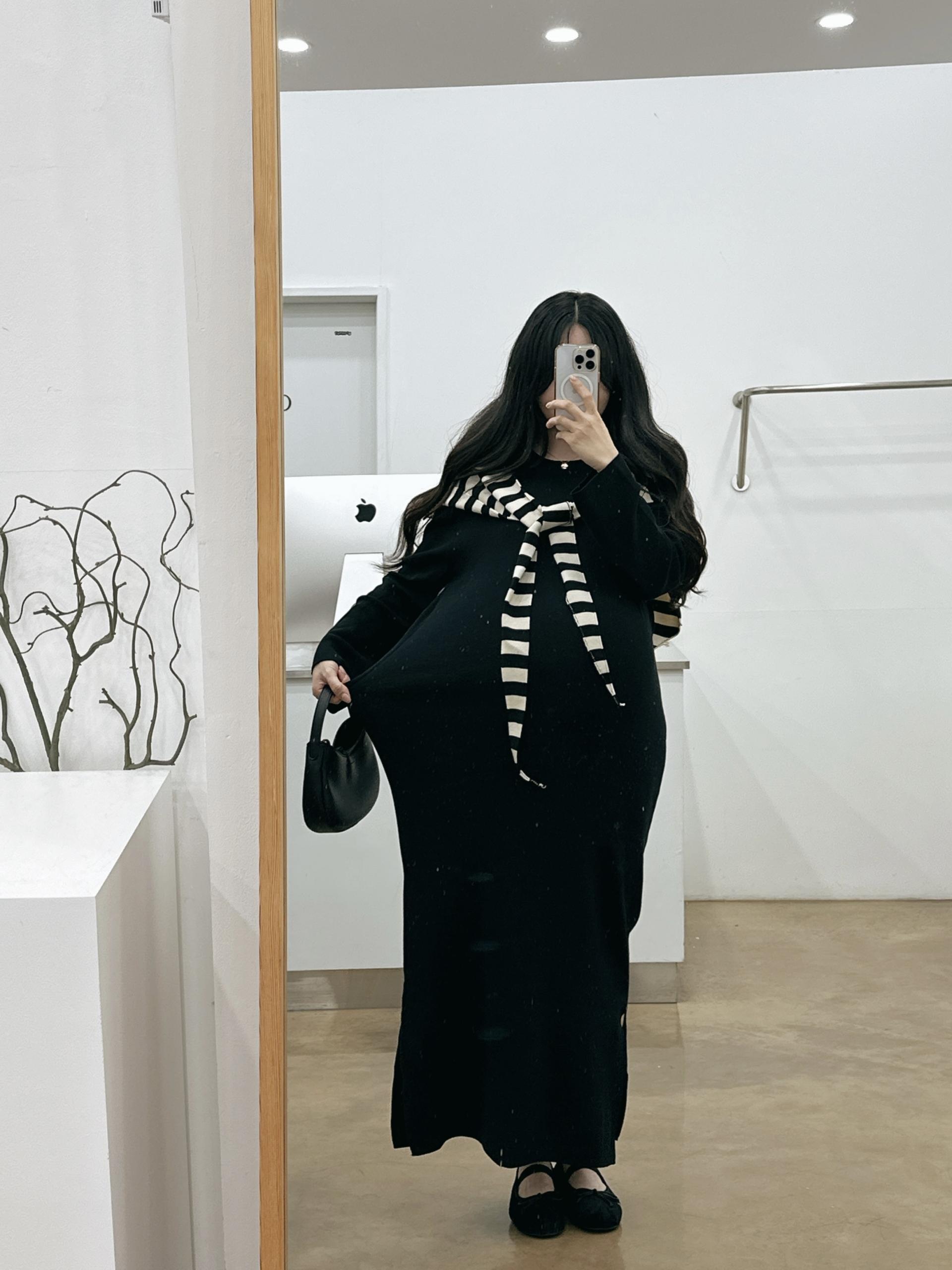 힙을 좀 가리고 싶다면 숄을 좀 더 뒤로 넘겨서 해보세요!! :)