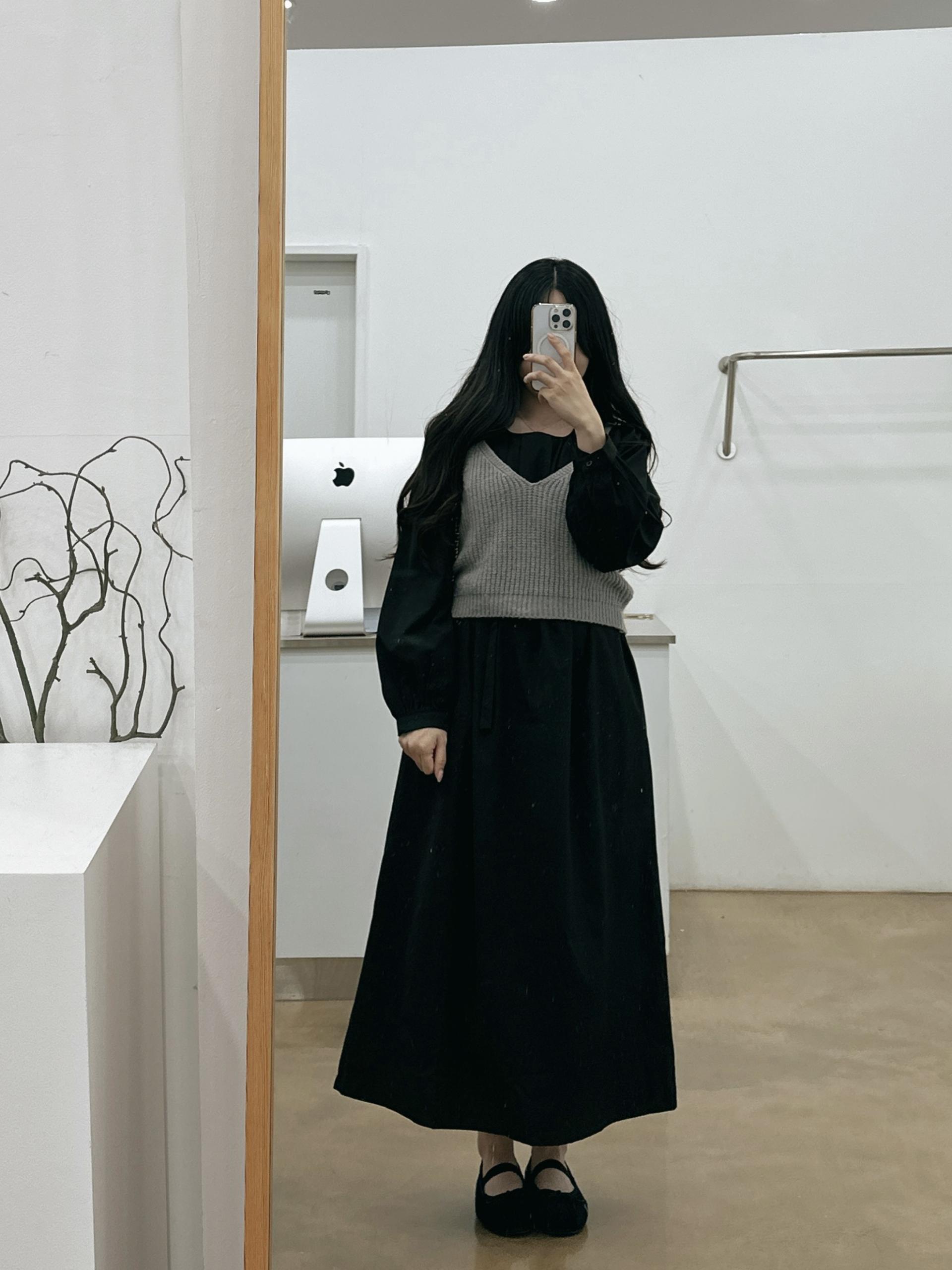 블랙(+코디원피스 : 라운드셔츠원피스)