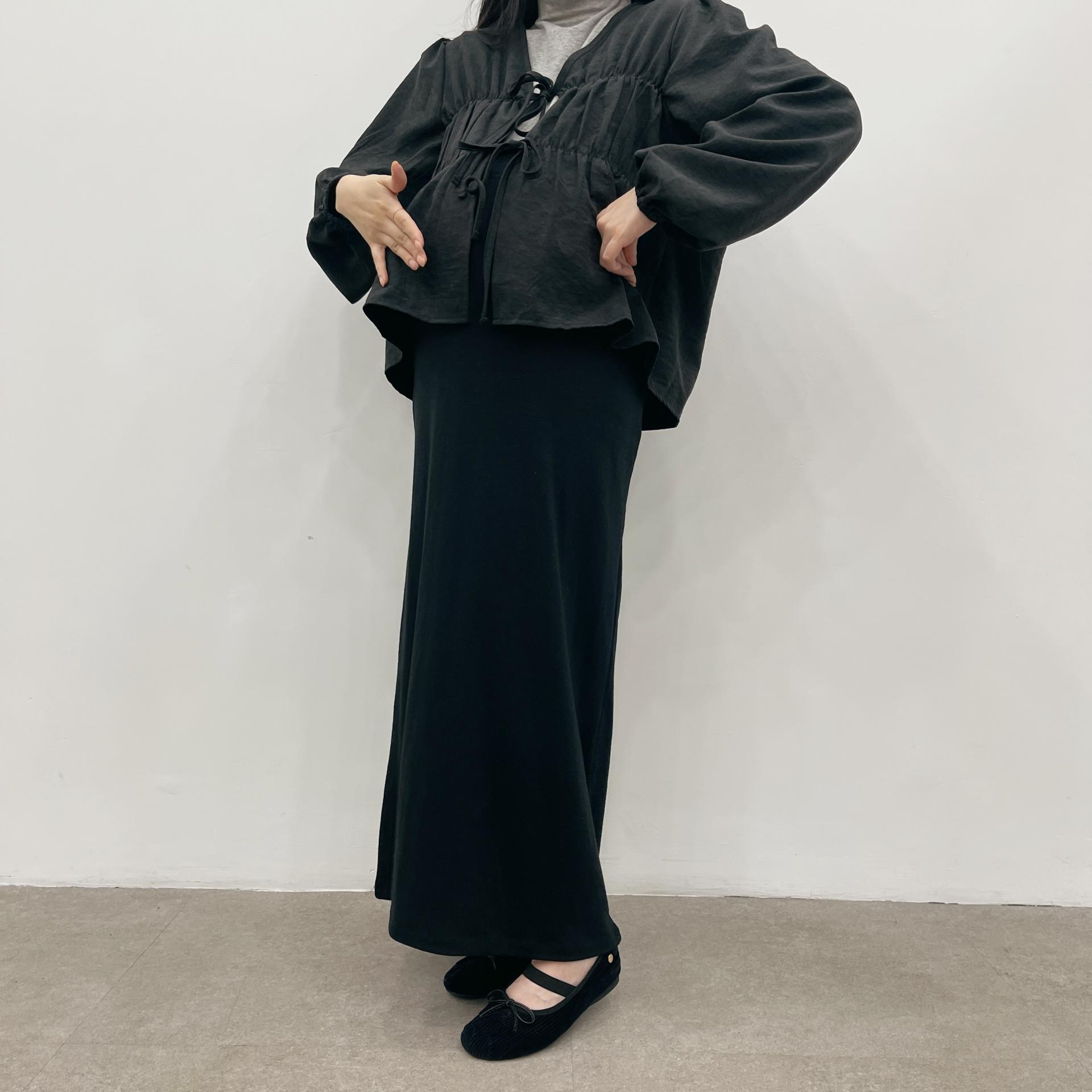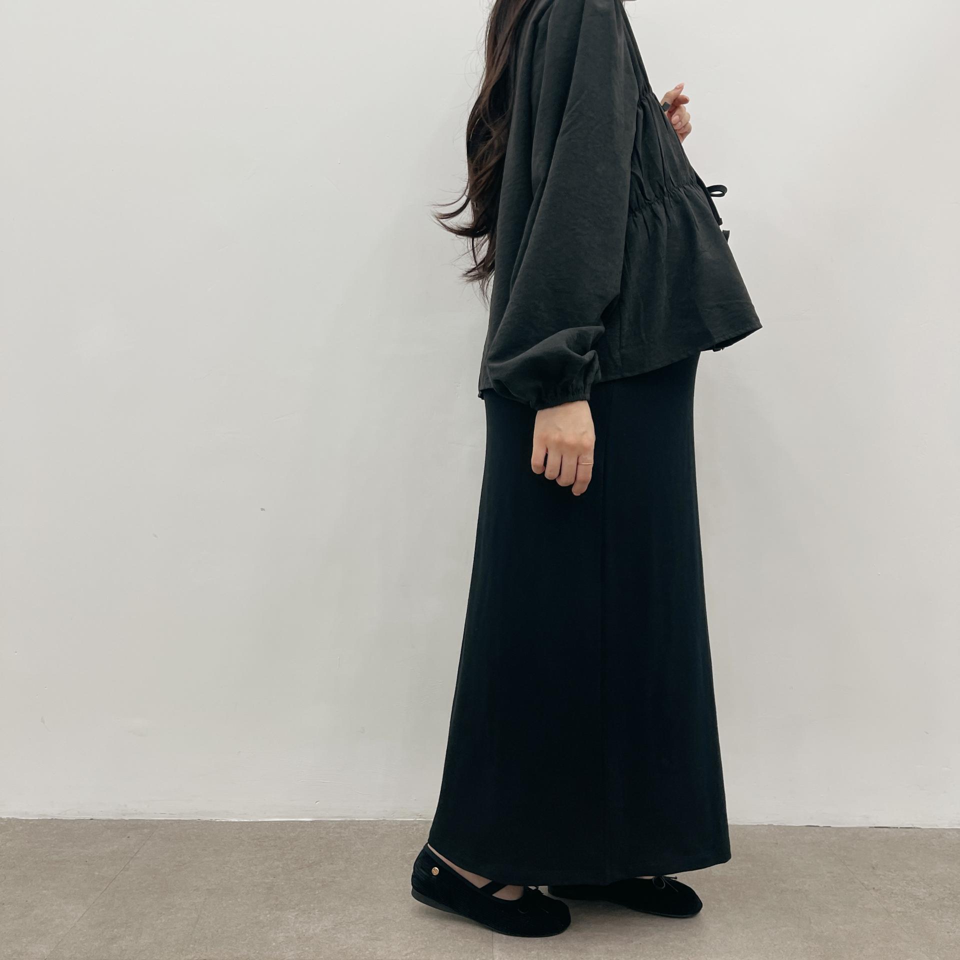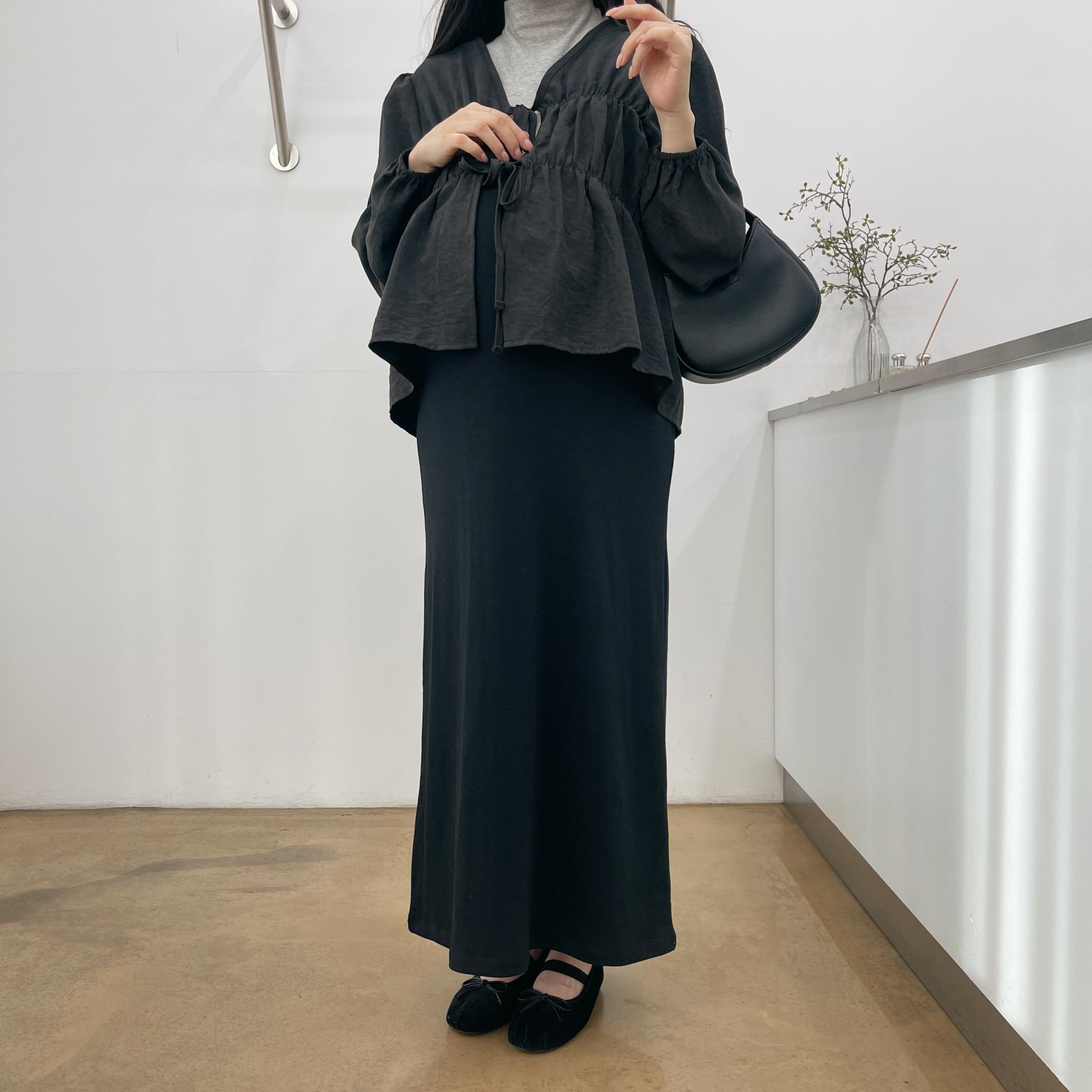 커버리본가디건(블랙)+치즈반목티(그레이)+어텀맥시롱스커트(블랙)