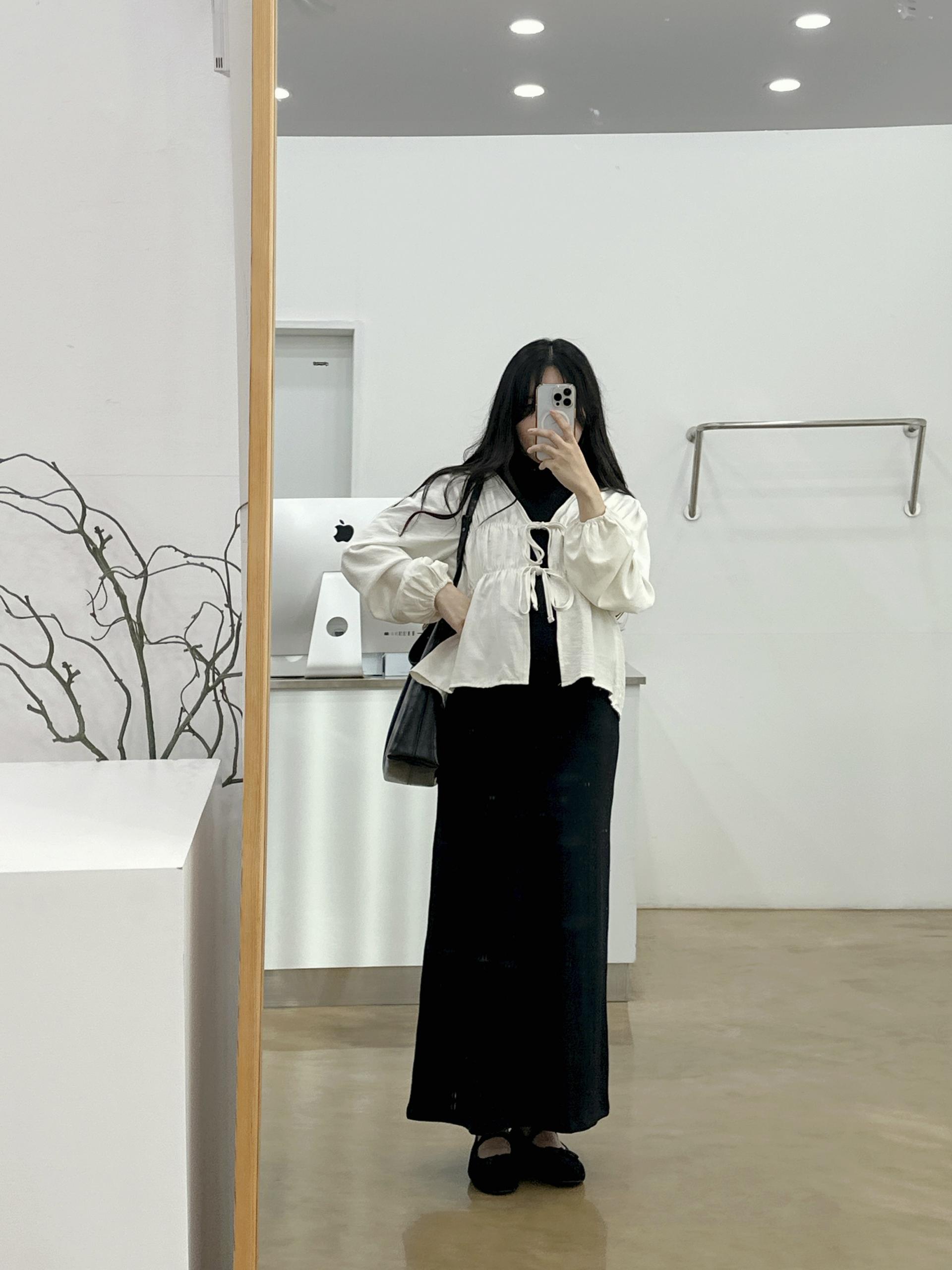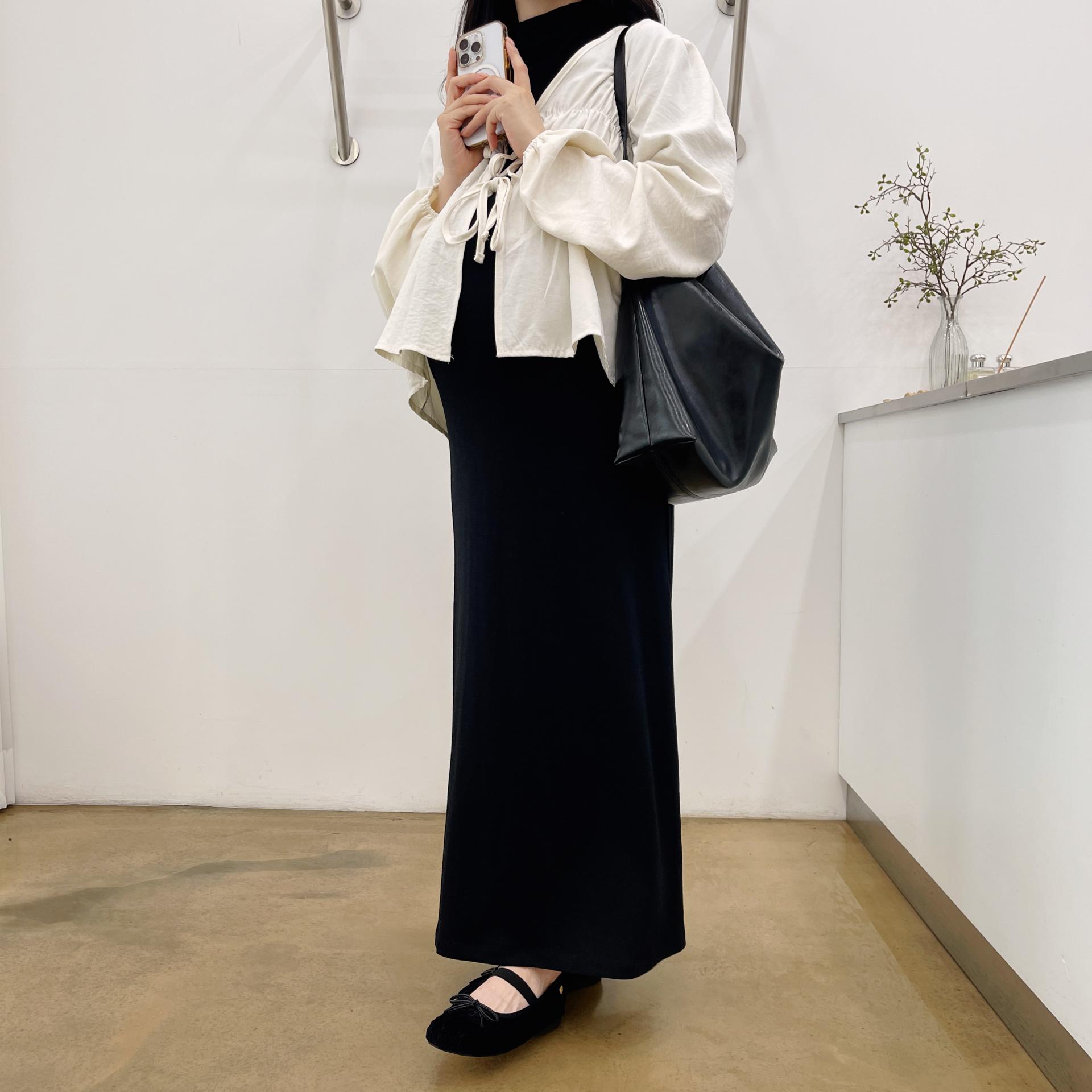 커버리본가디건(크림)+치즈반목티(블랙)+어텀맥시롱스커트(블랙)