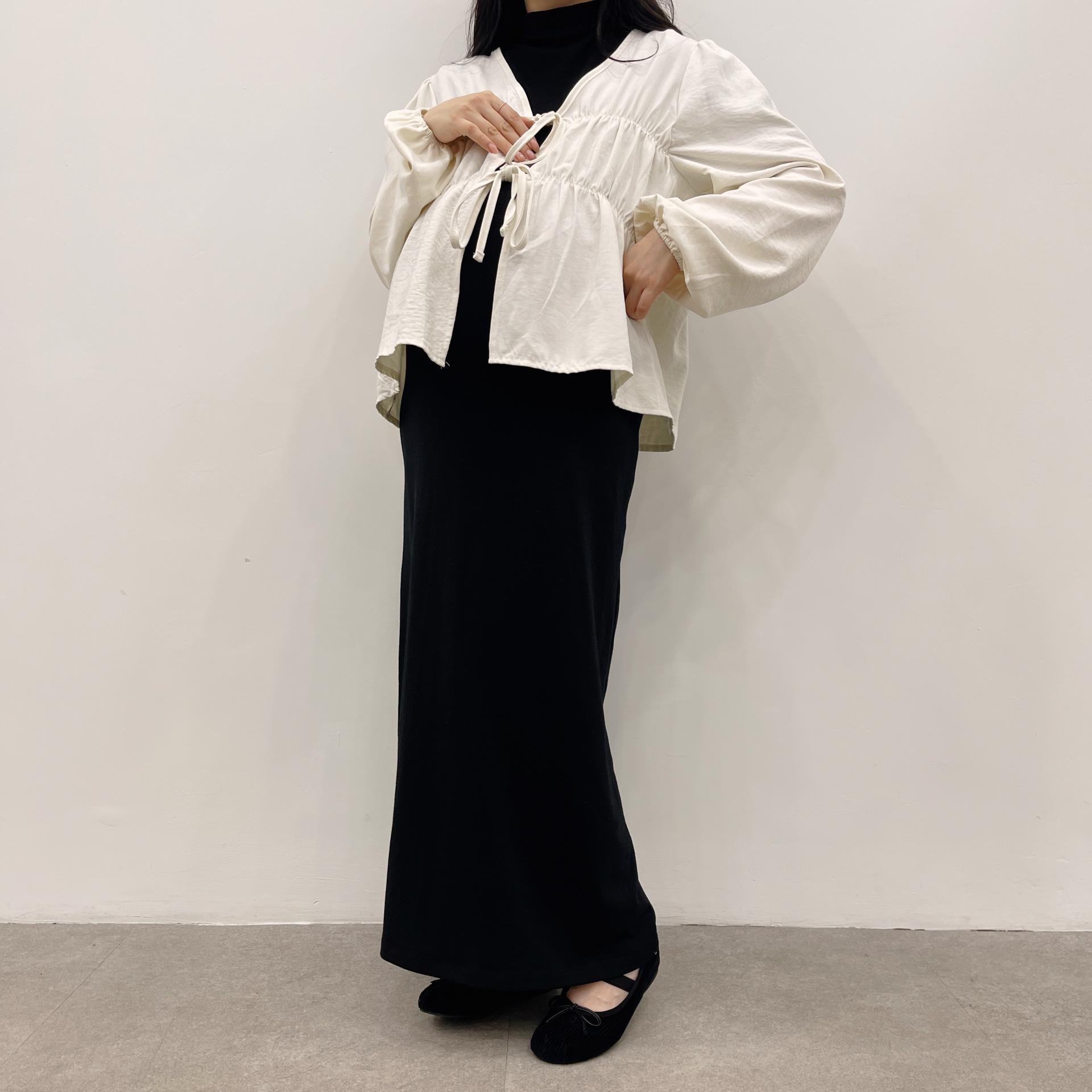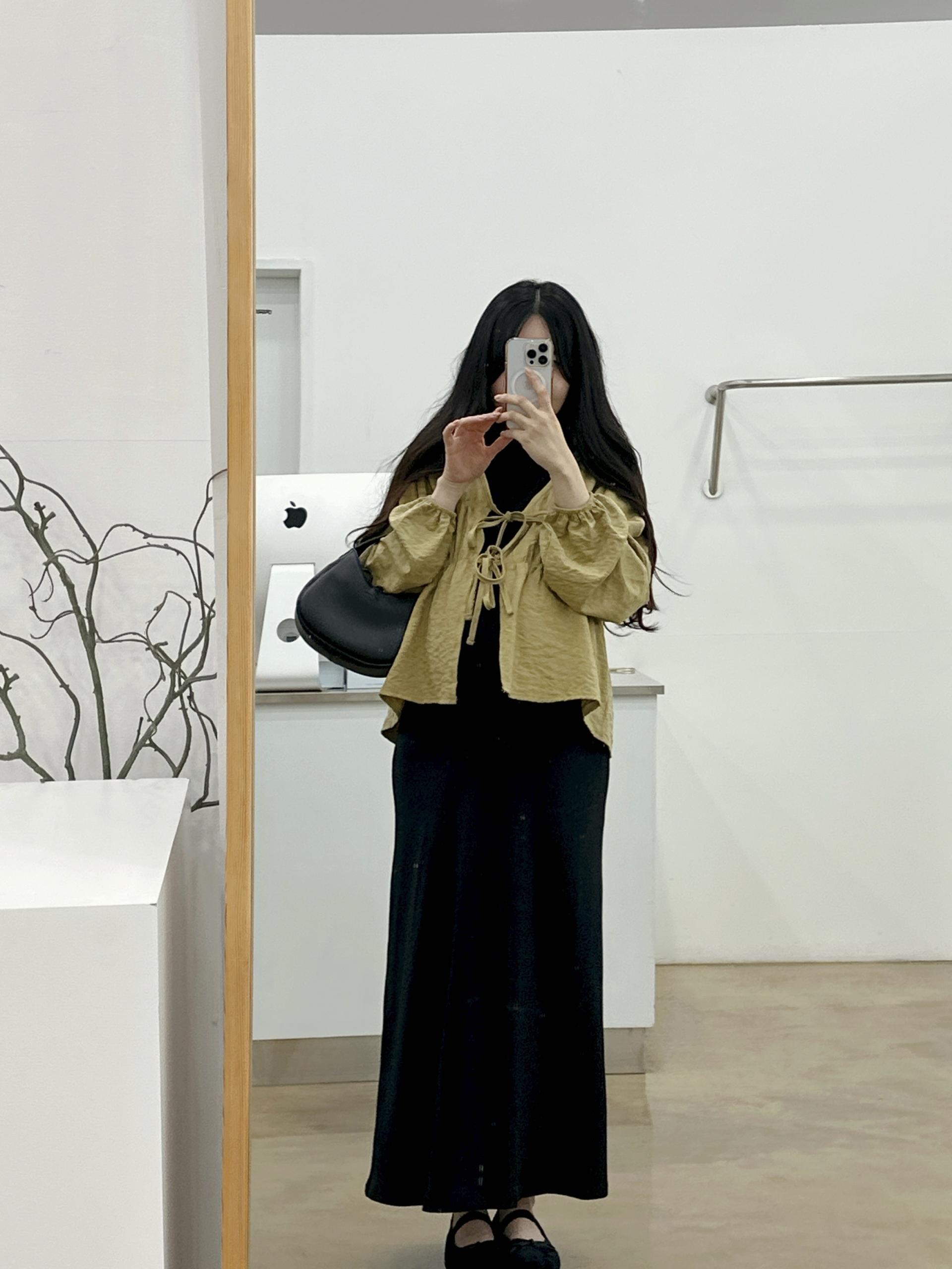 앞 리본으로 벌어짐 없이 입는 가디건이에요