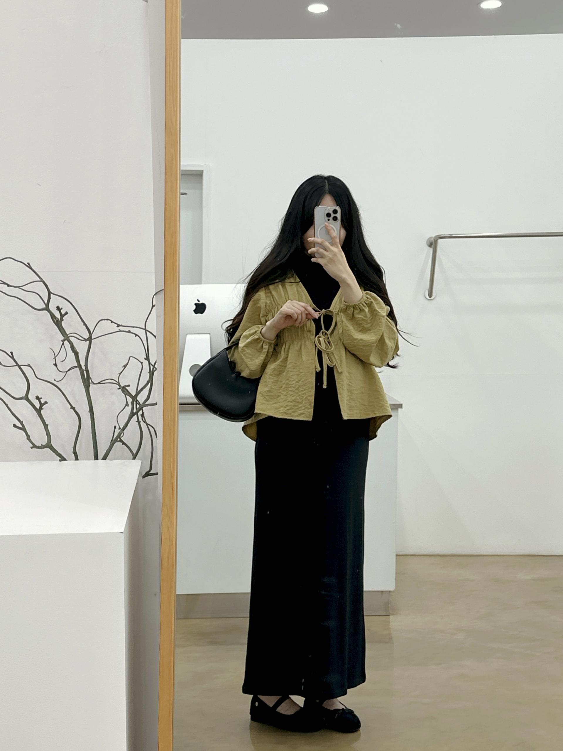 어깨 살짝 있는 퍼프가 핏을 더 예쁘게 해줘요!