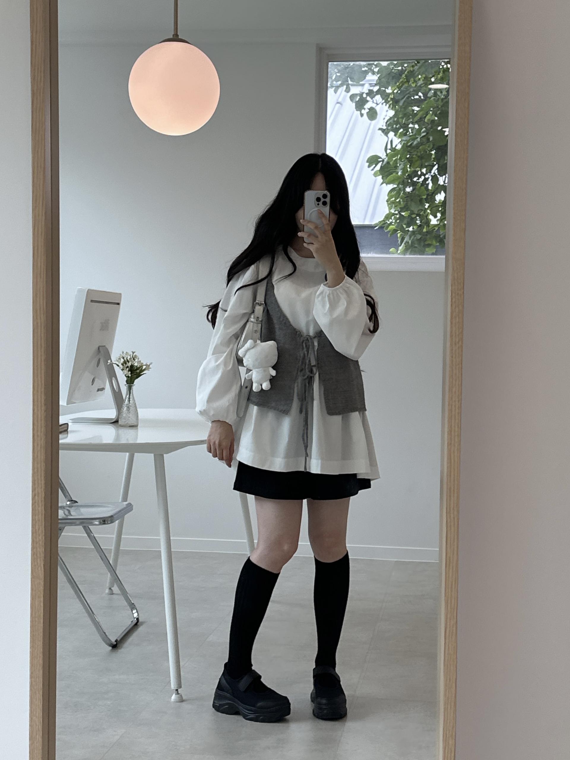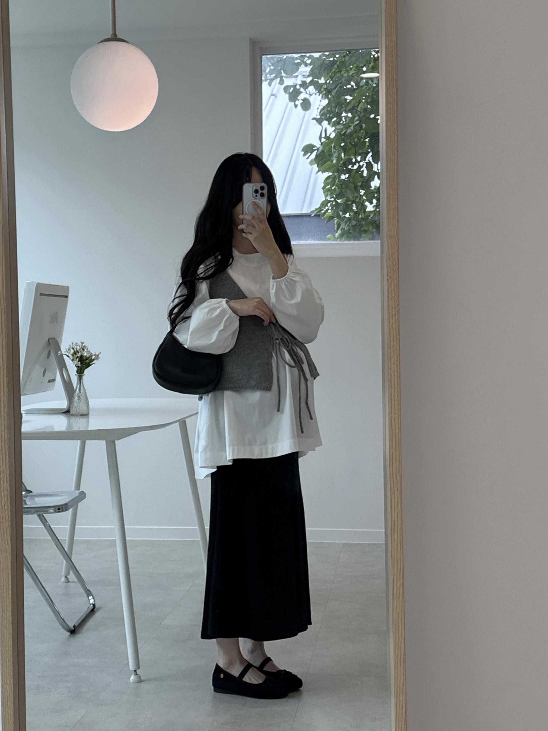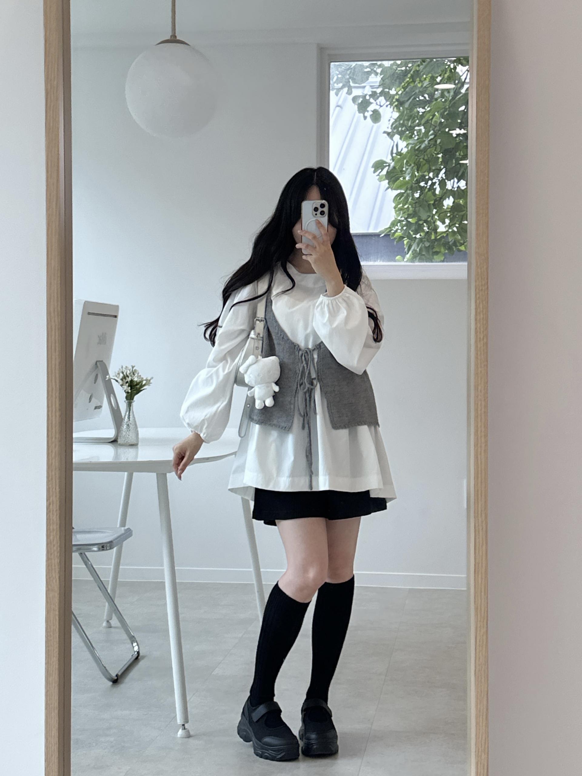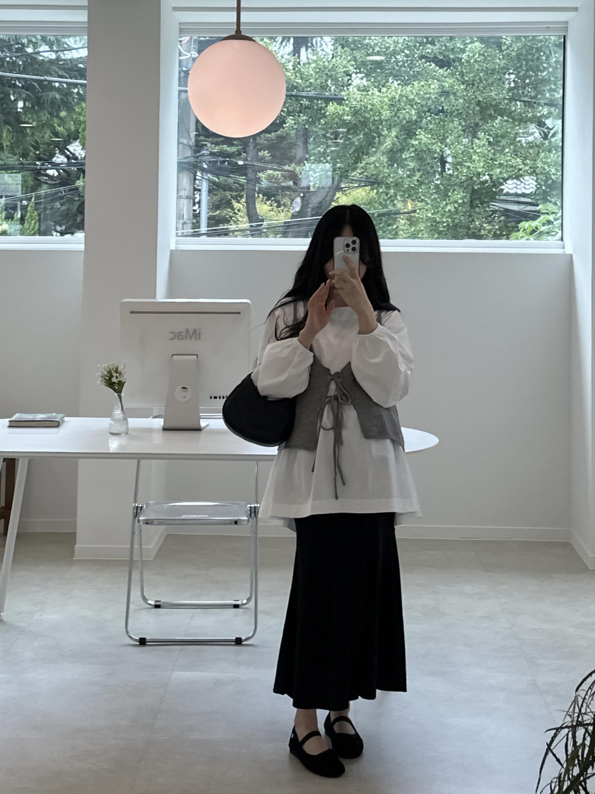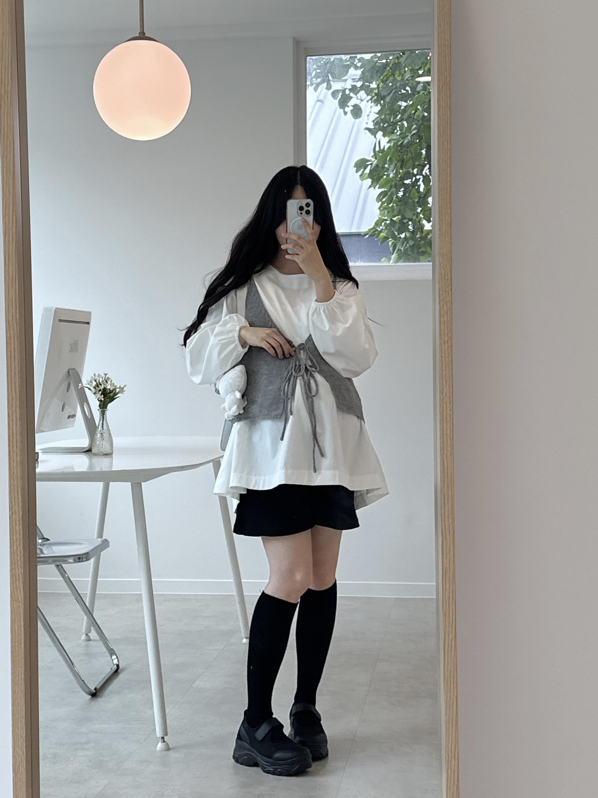 랜드블라우스(화이트) + 덴리본니트뷔스티에(그레이)