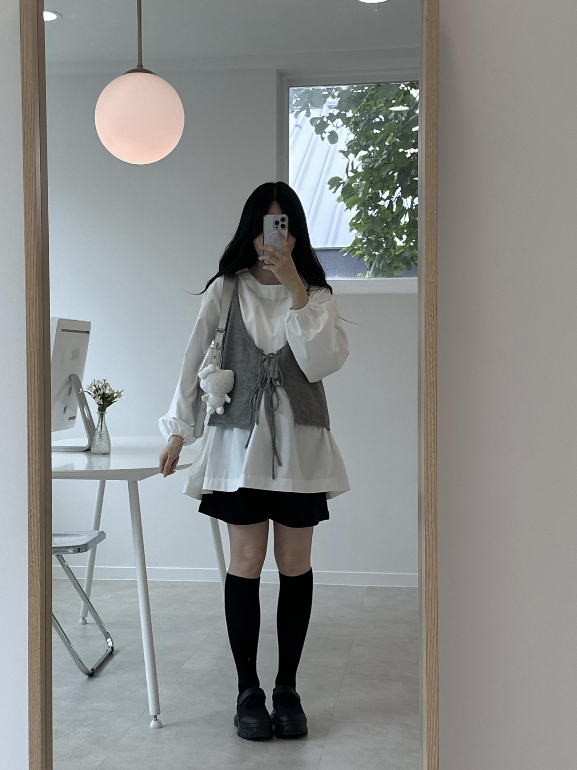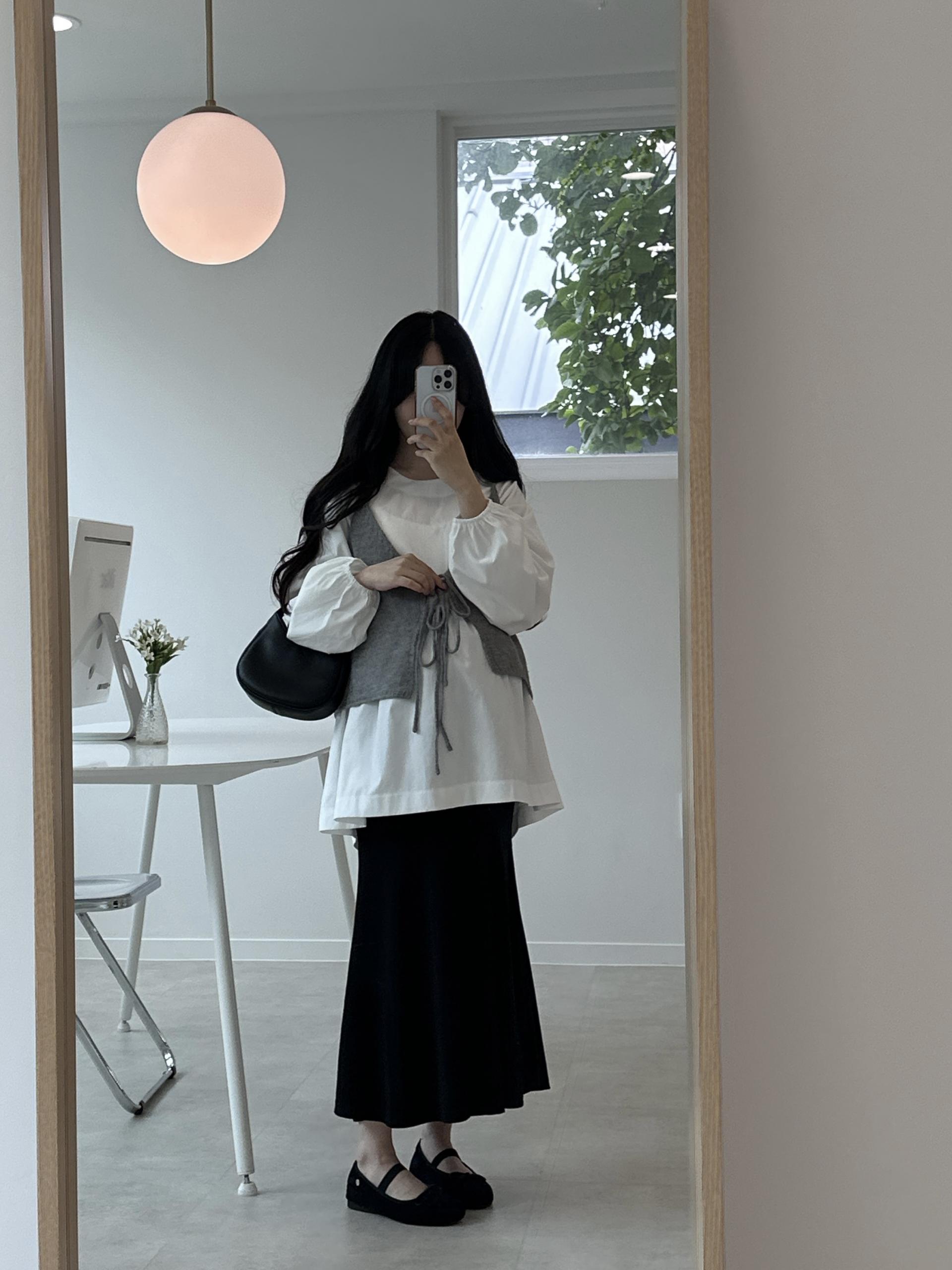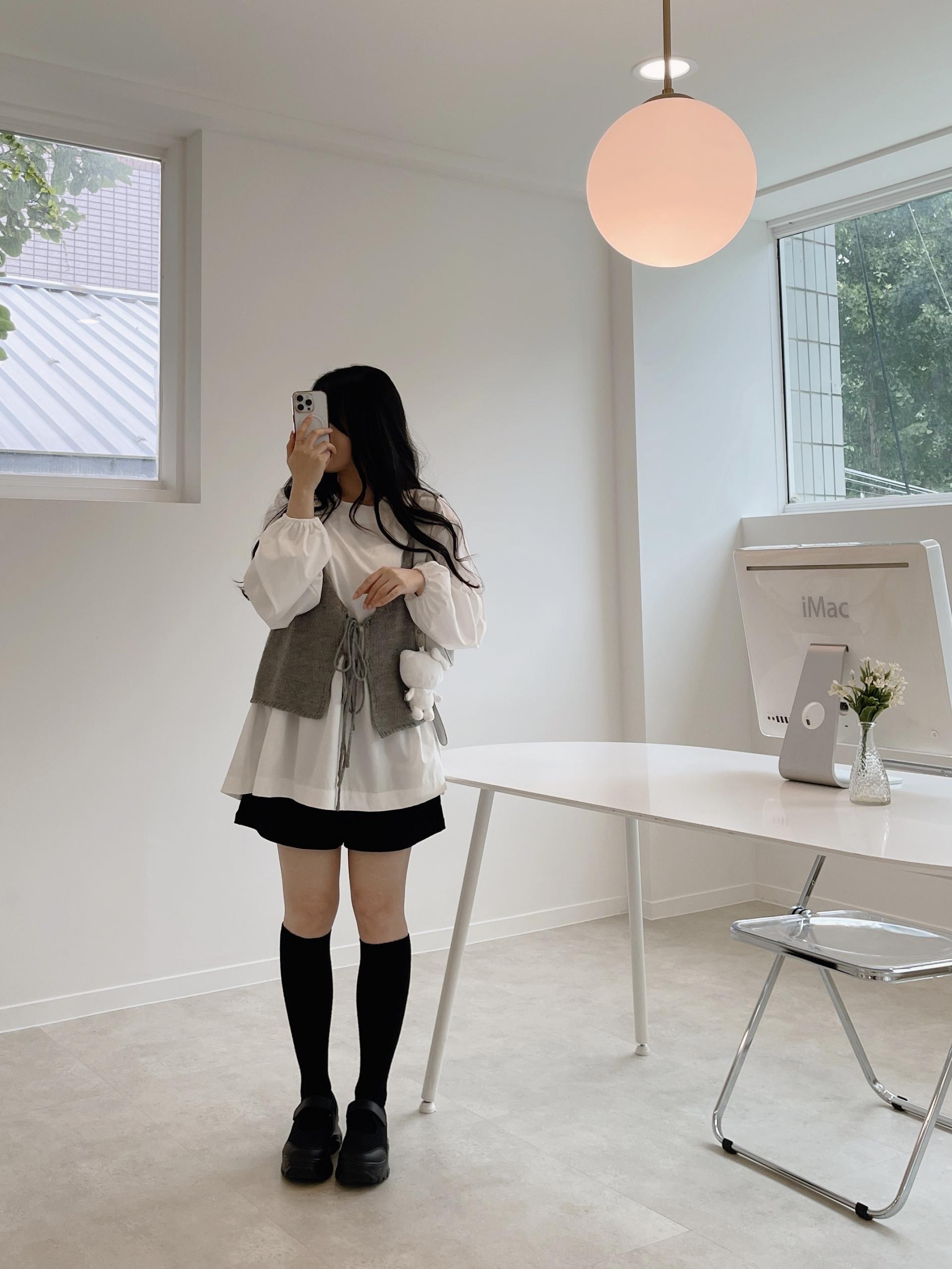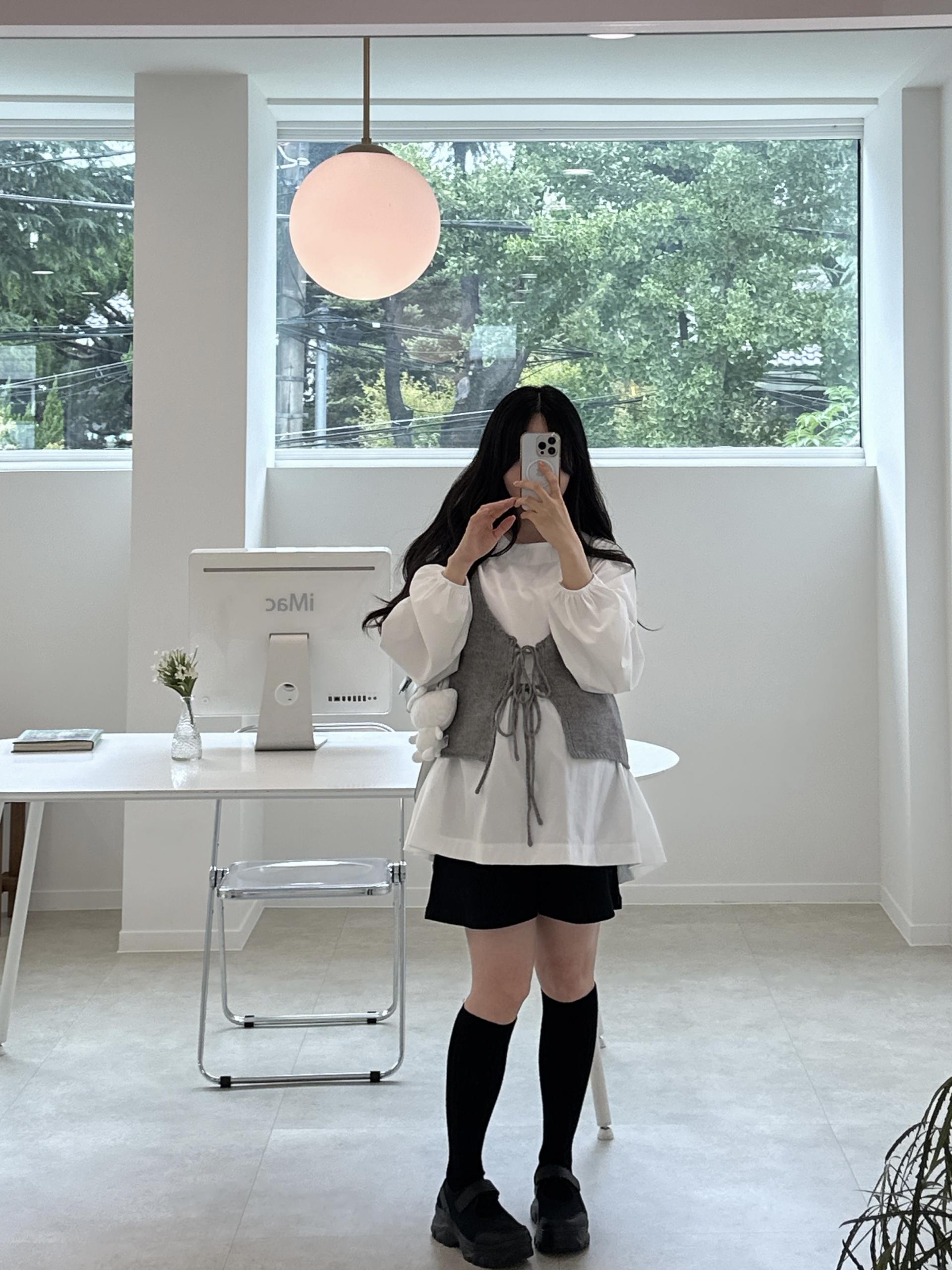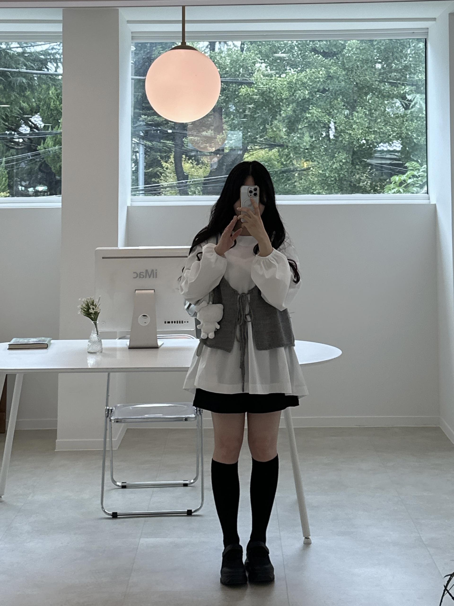 랜드블라우스(화이트) + 덴리본니트뷔스티에(그레이)
