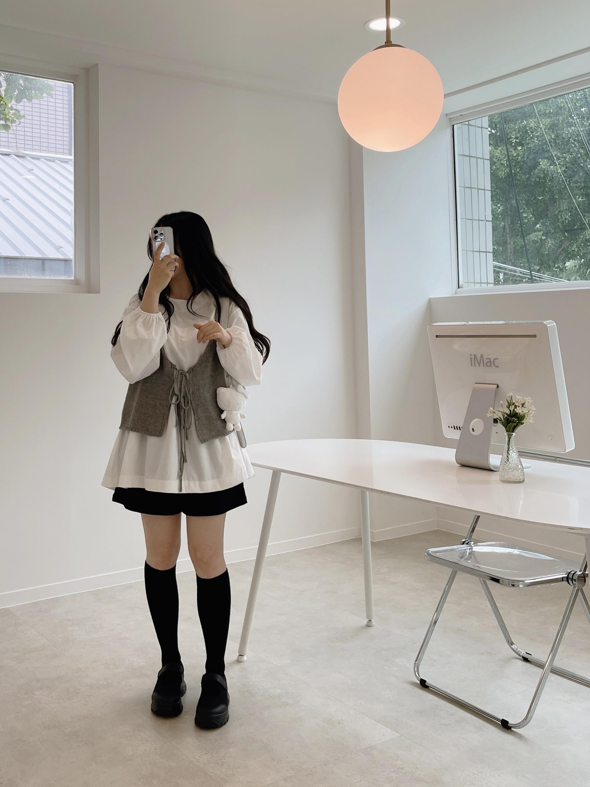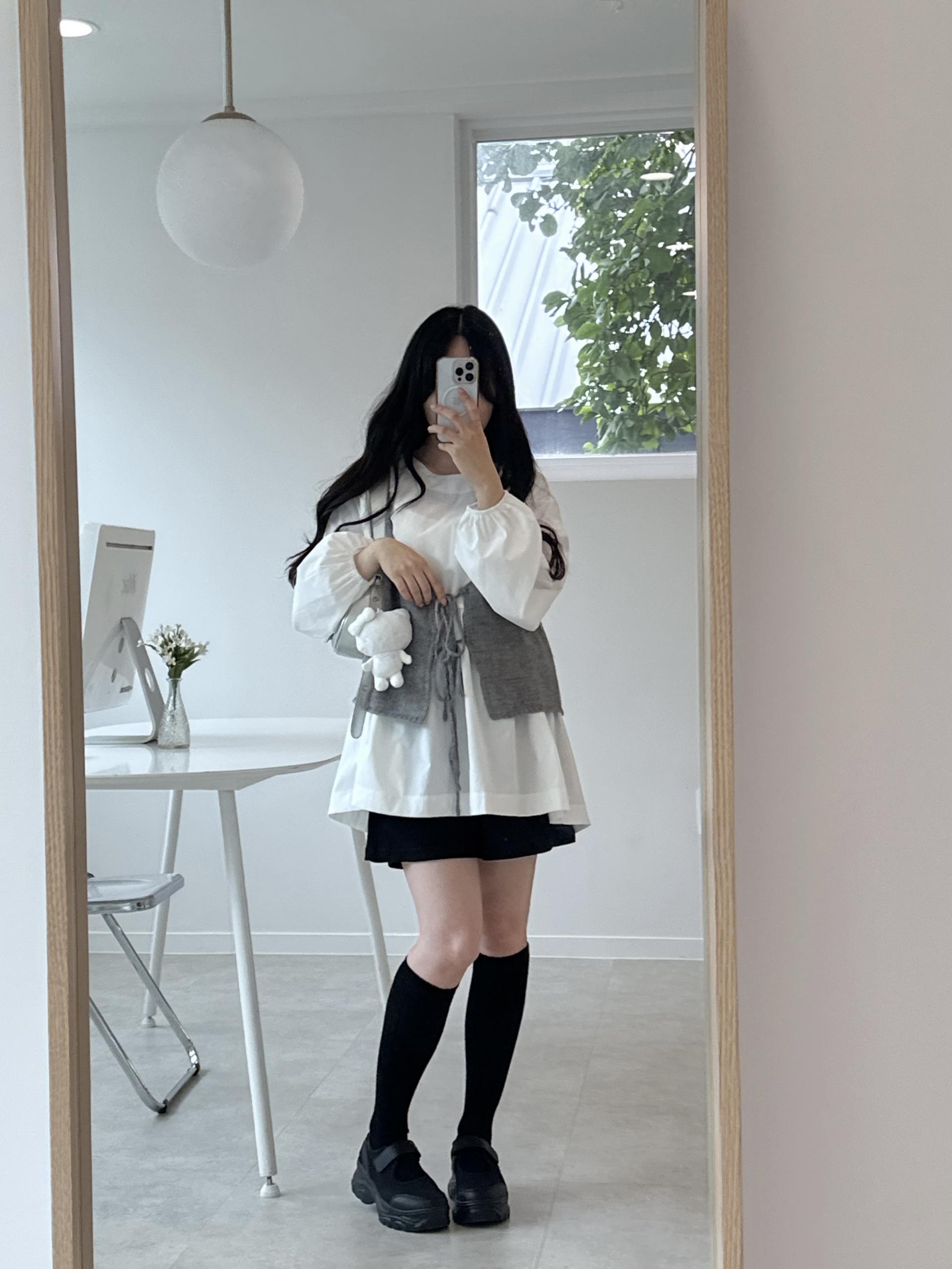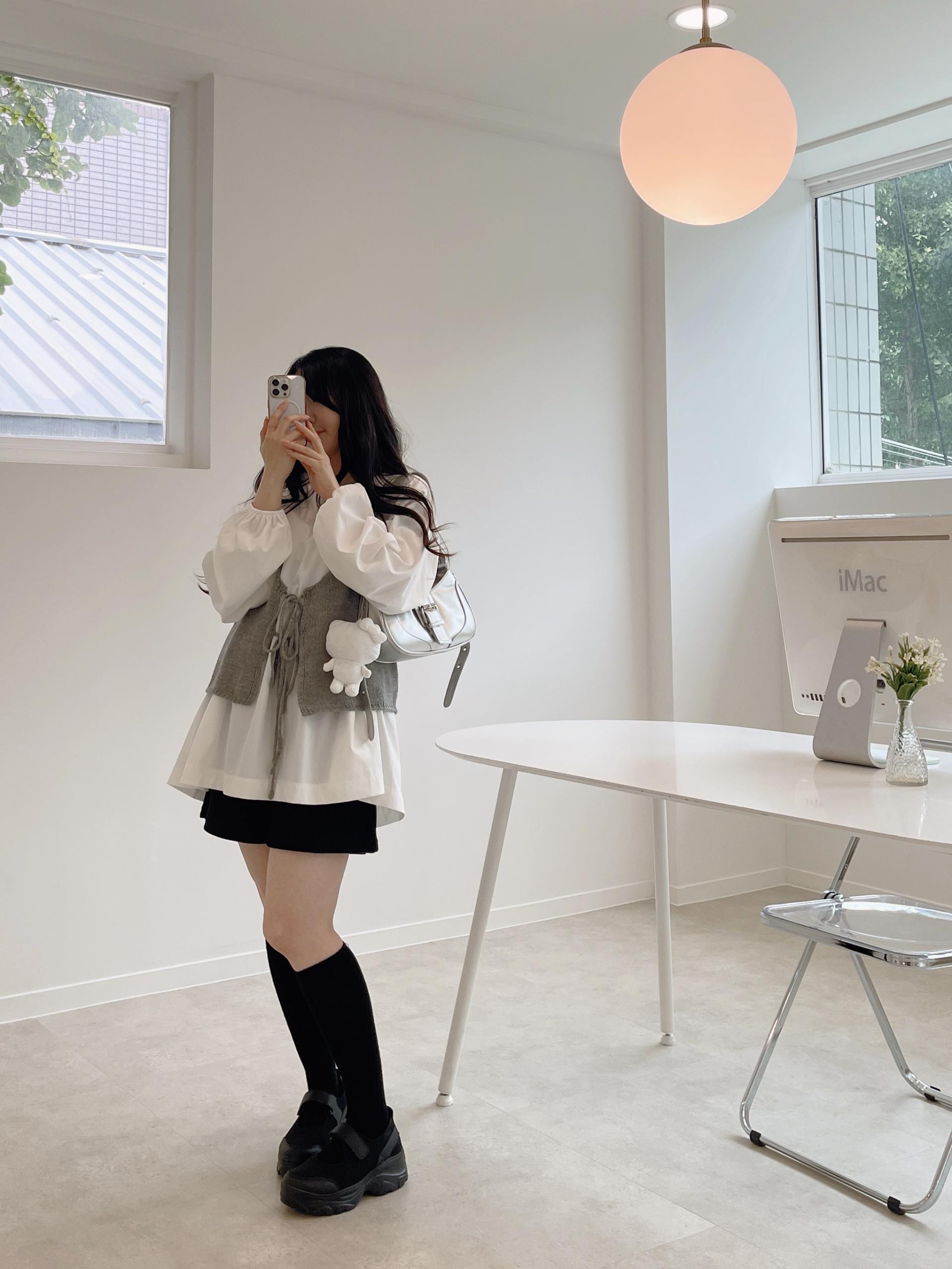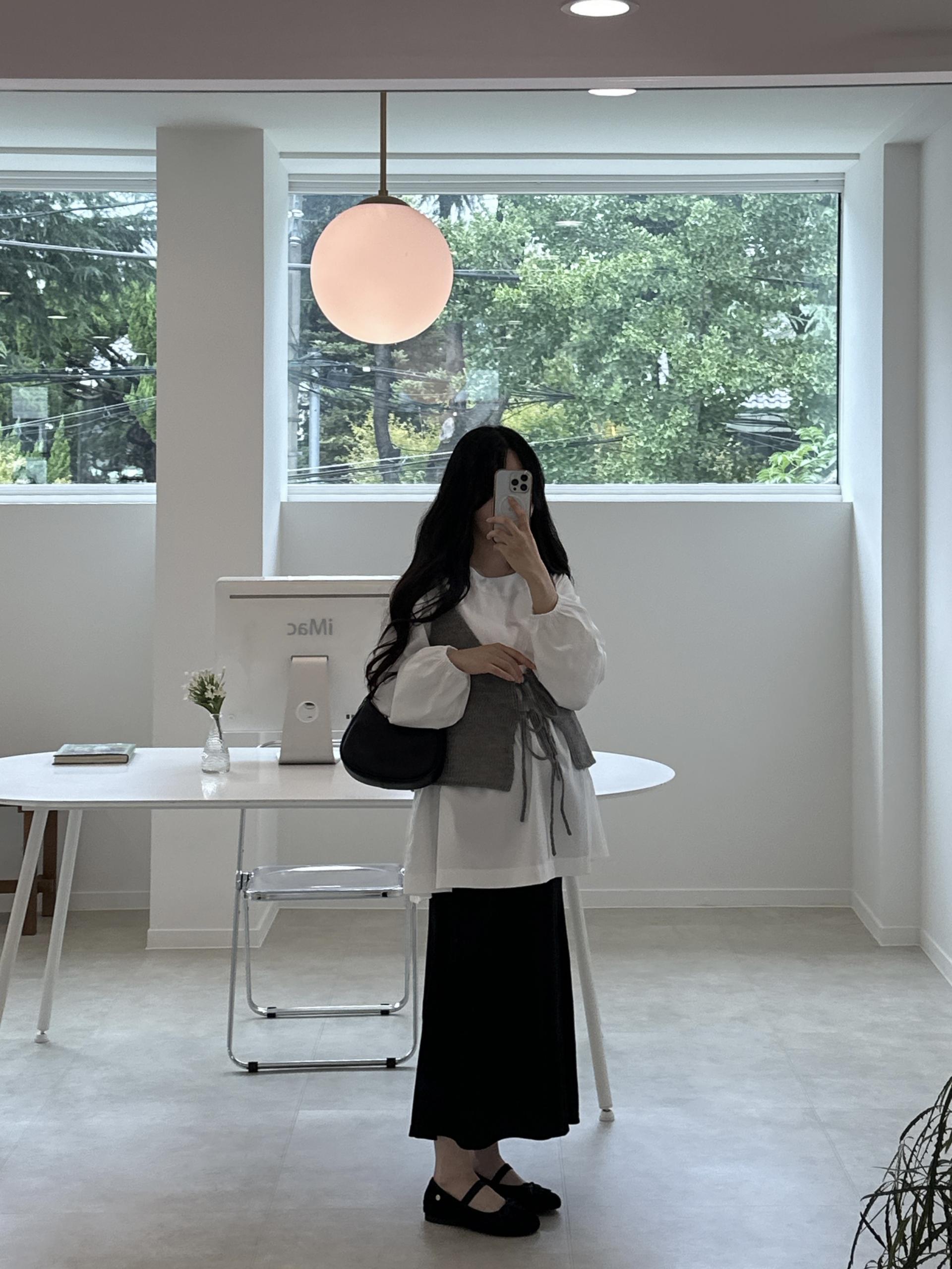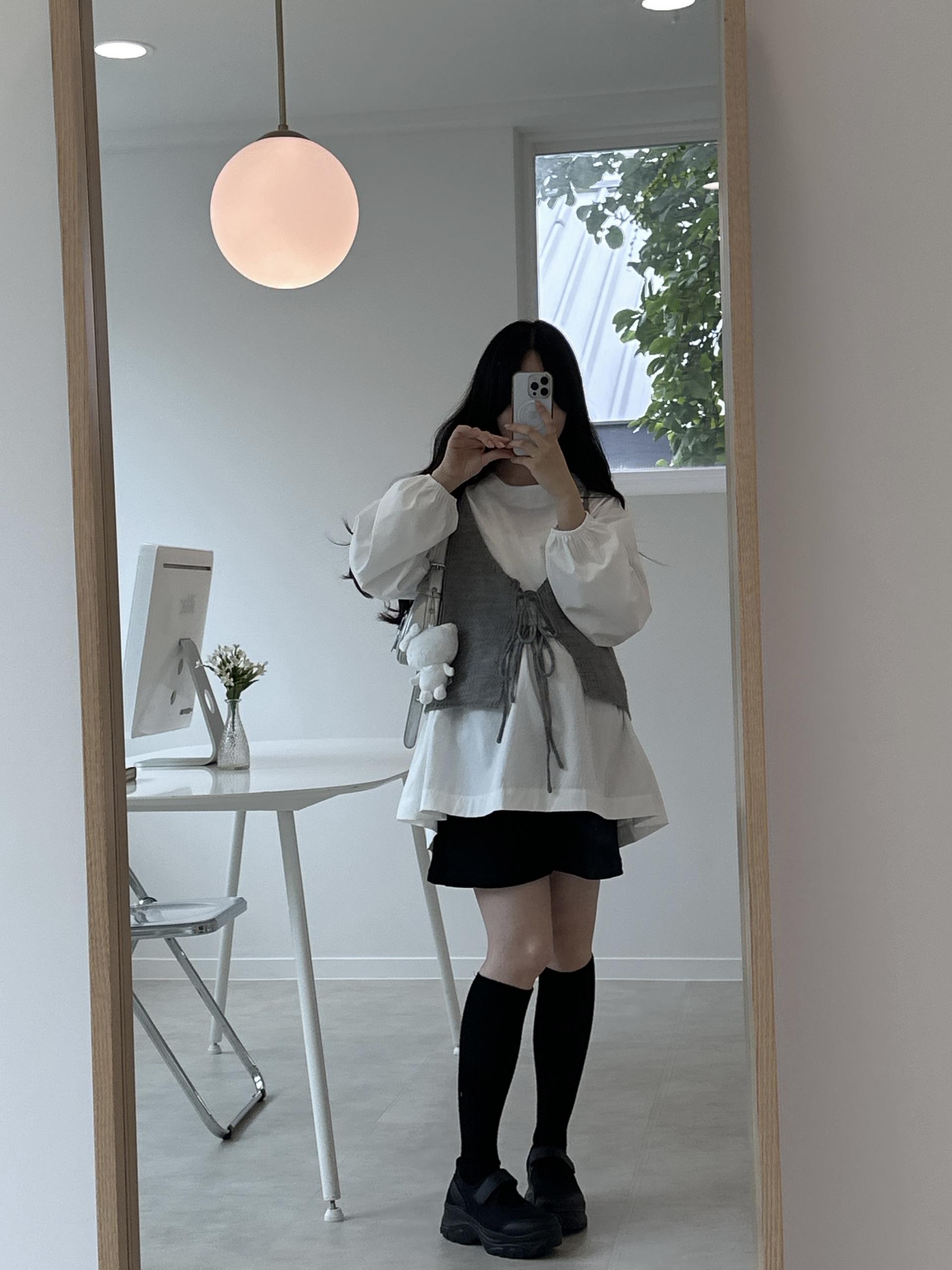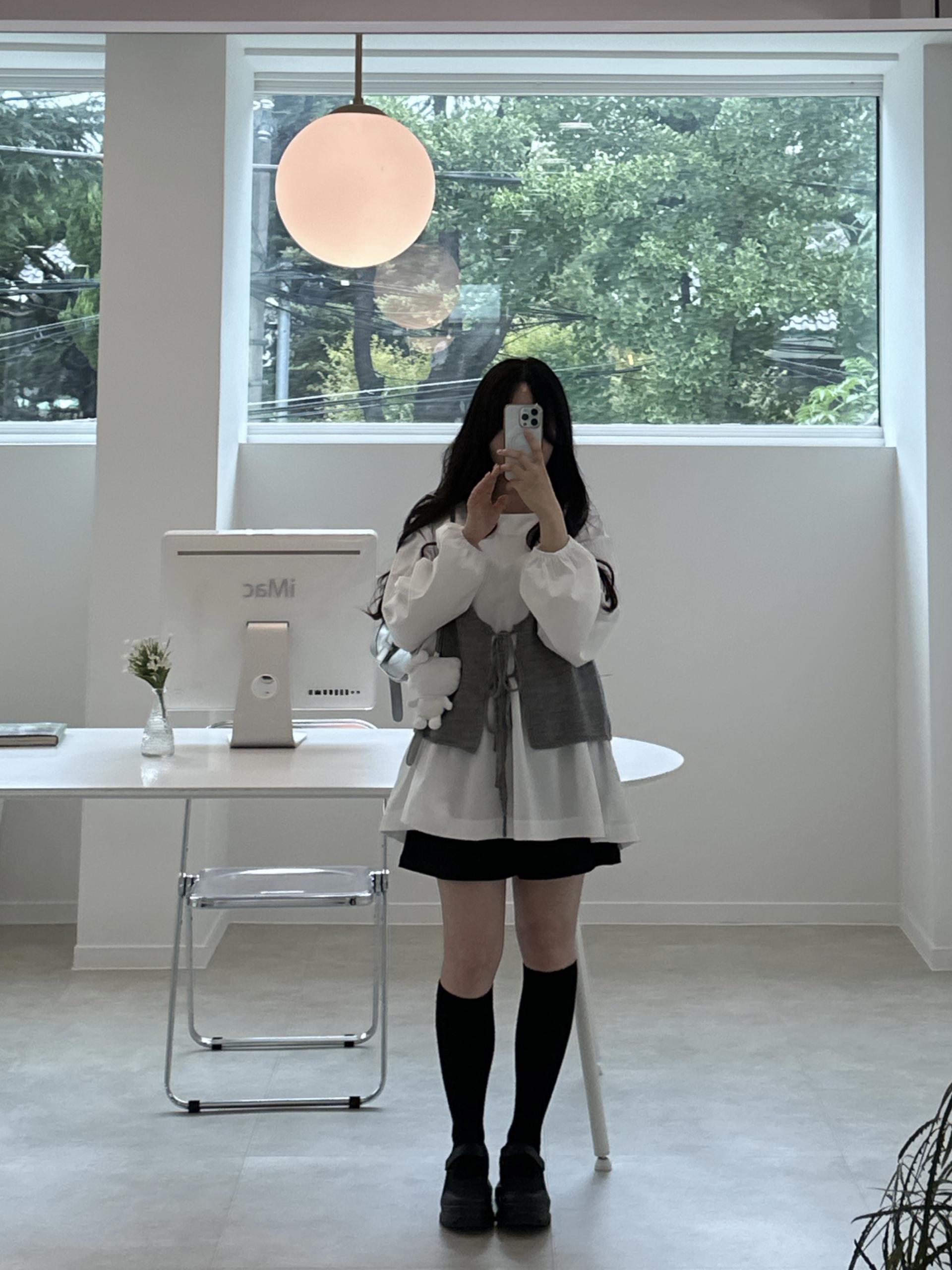 랜드블라우스(화이트) + 덴리본니트뷔스티에(그레이)