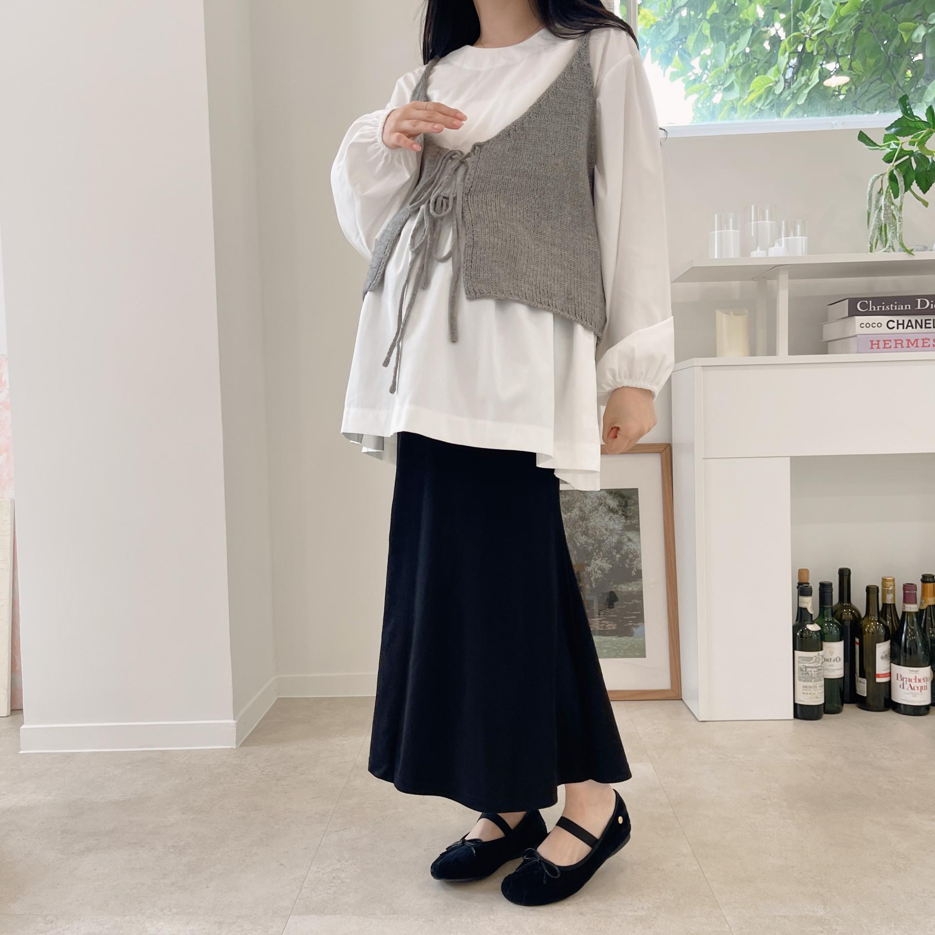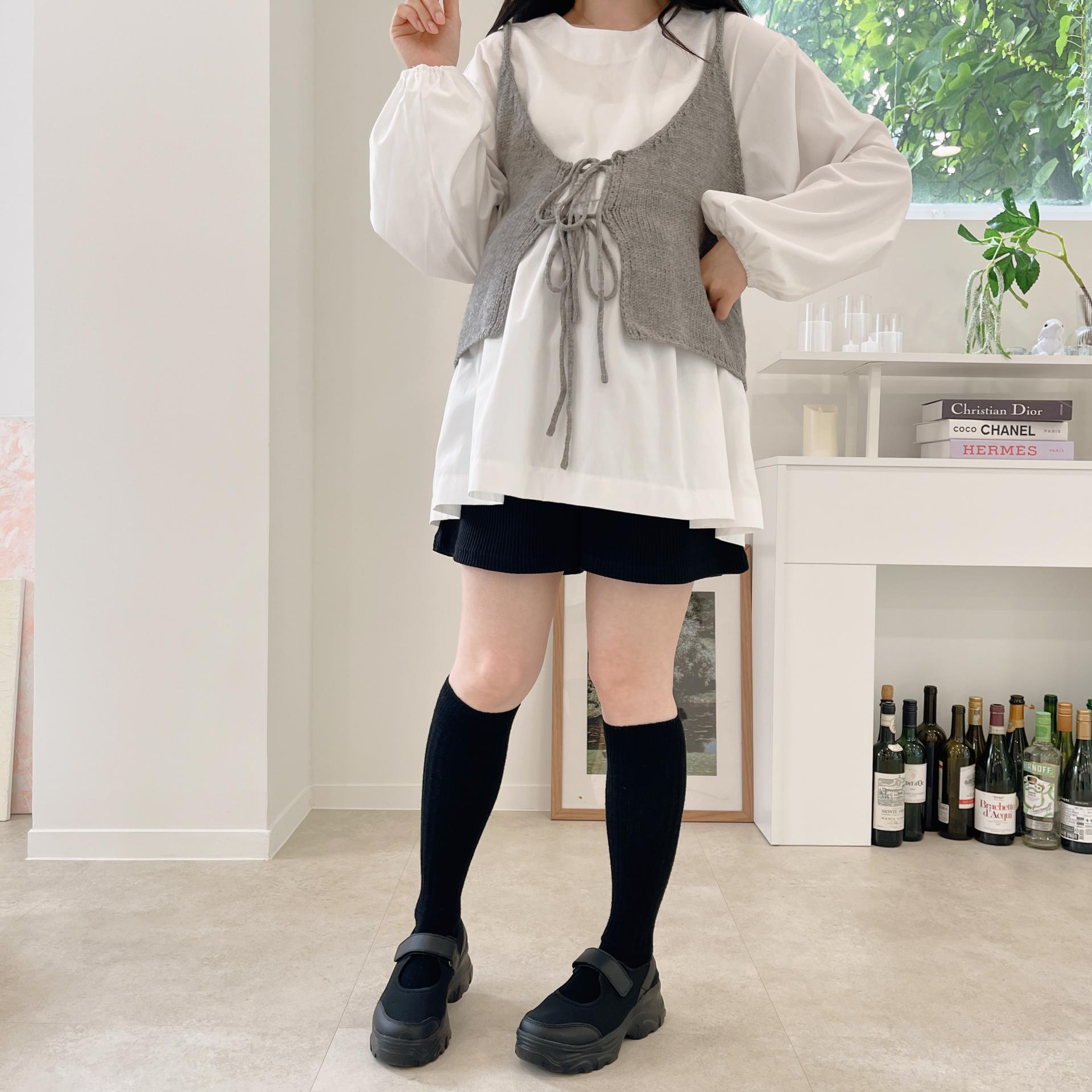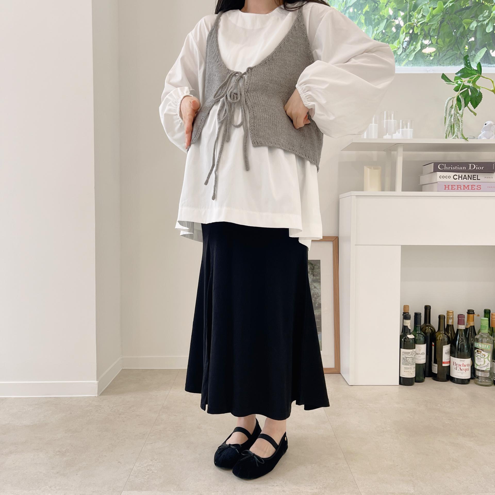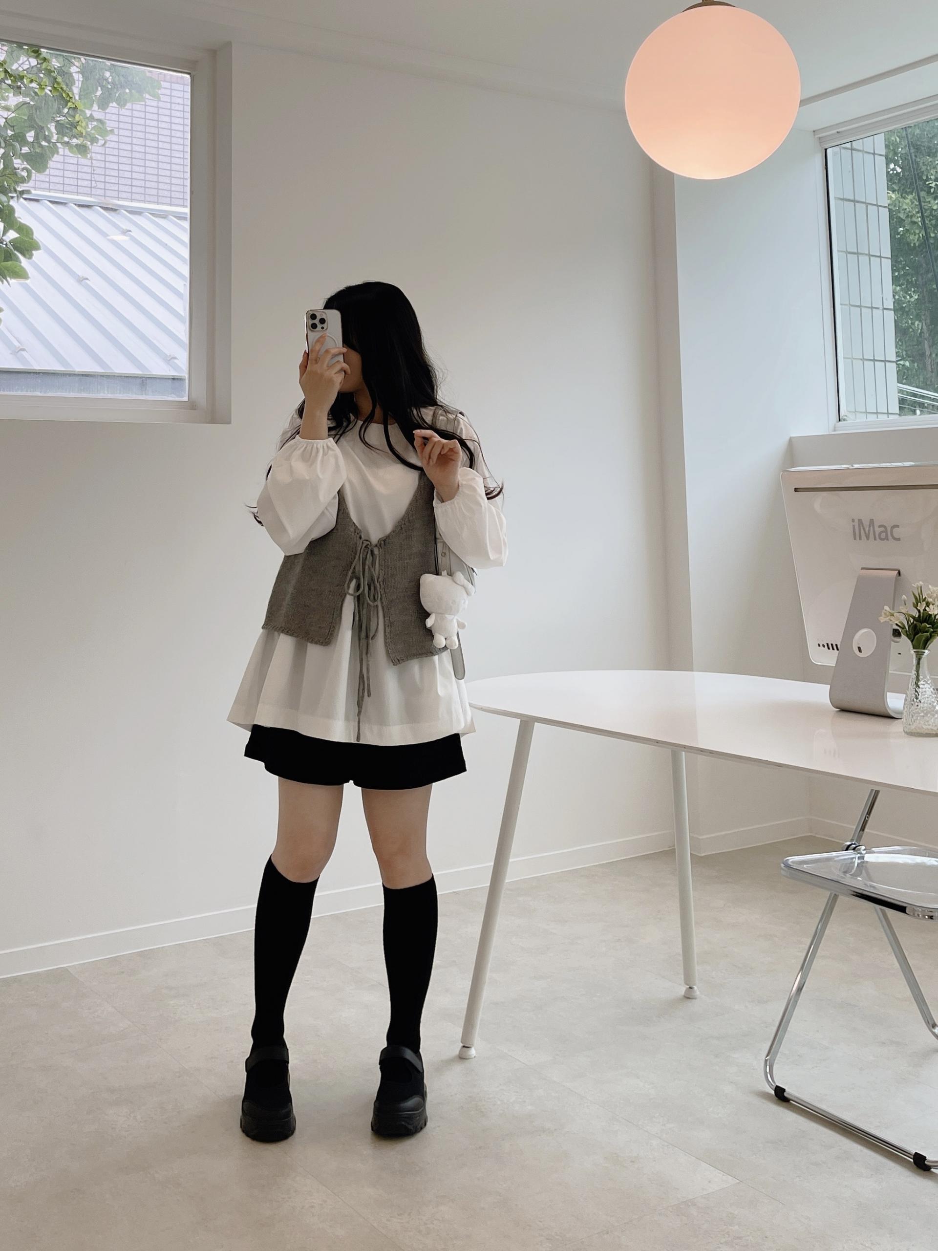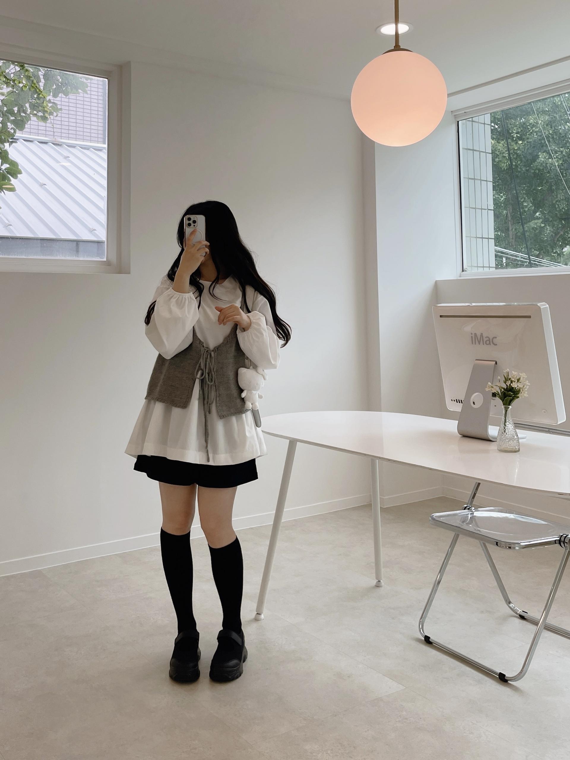 랜드블라우스(화이트) + 덴리본니트뷔스티에(그레이)