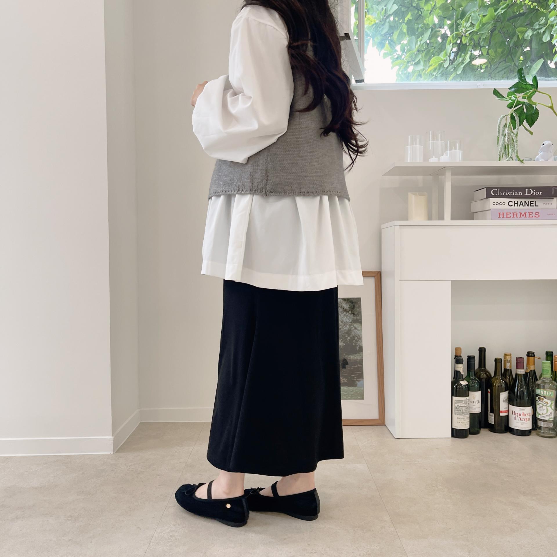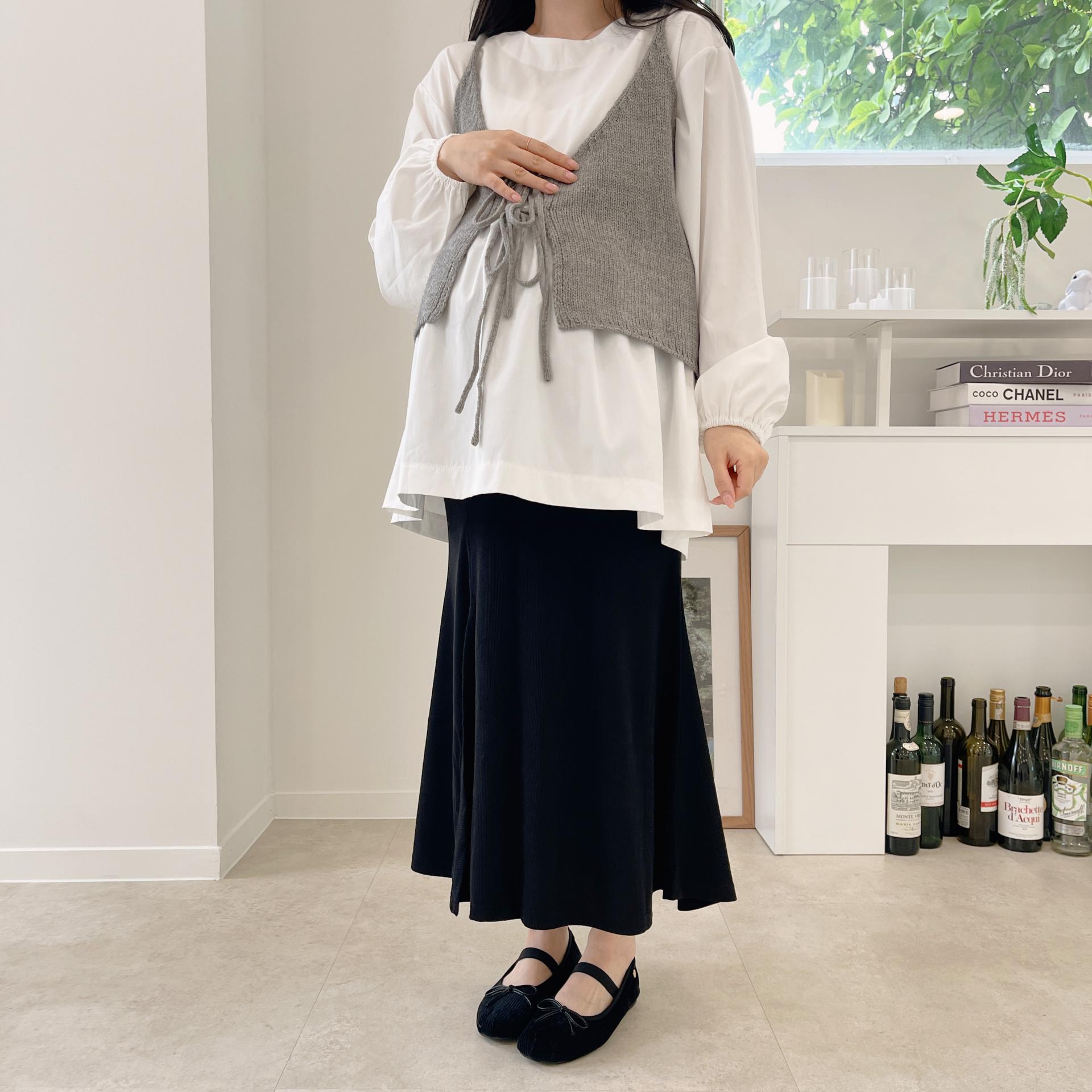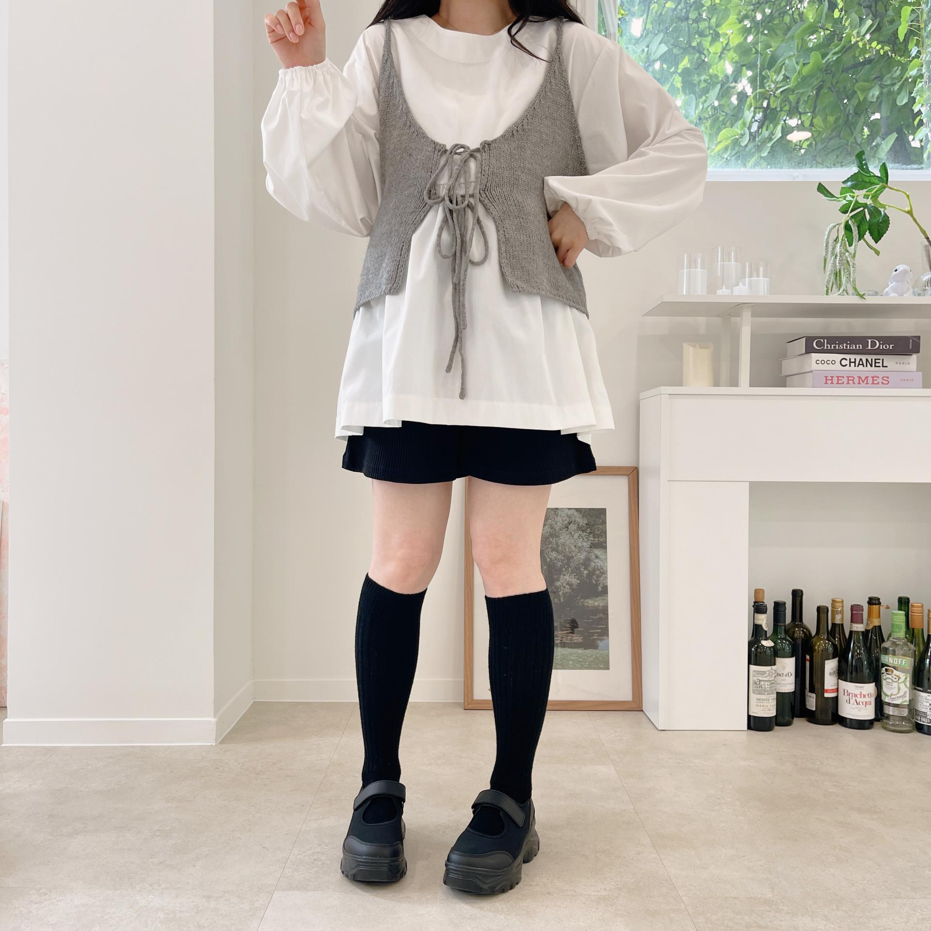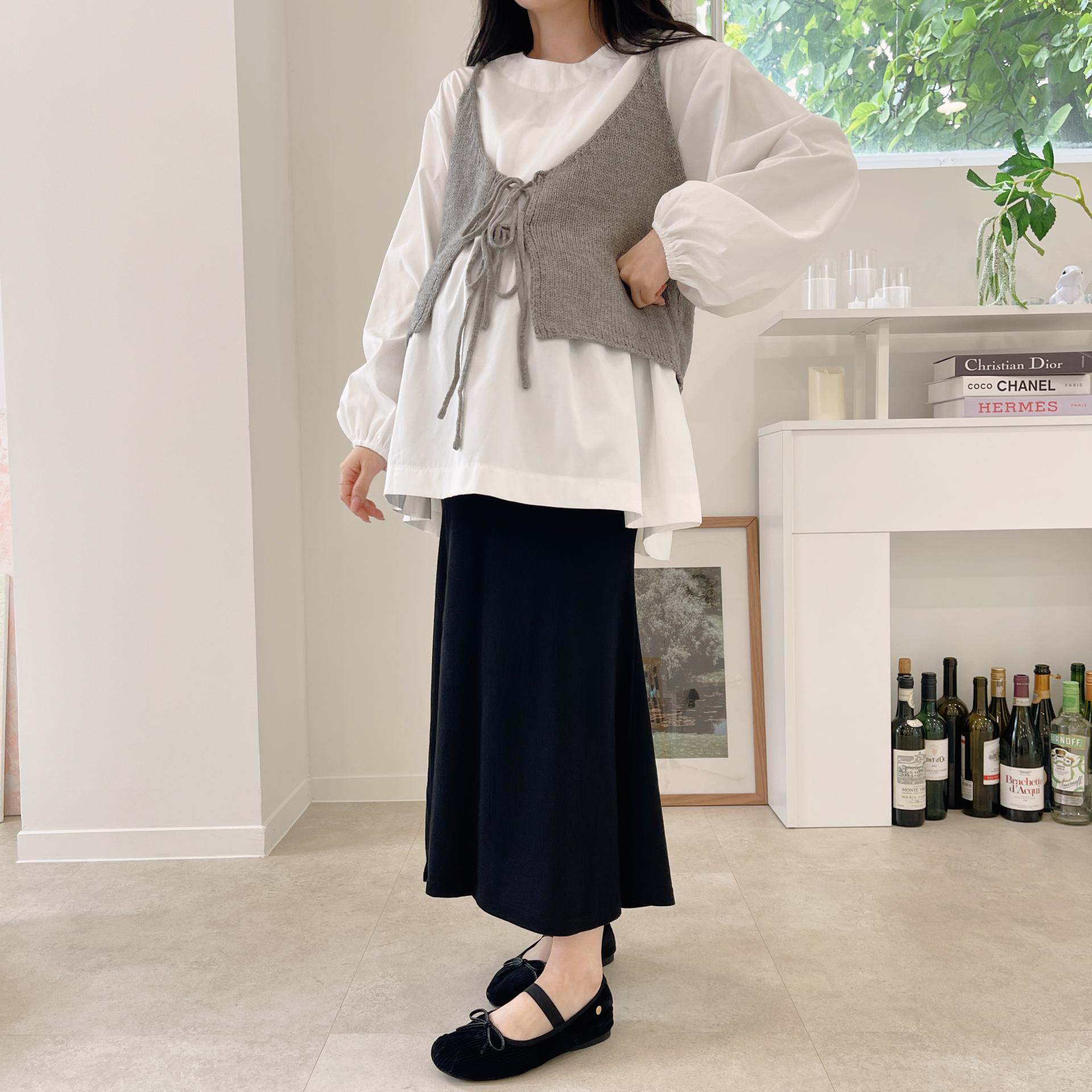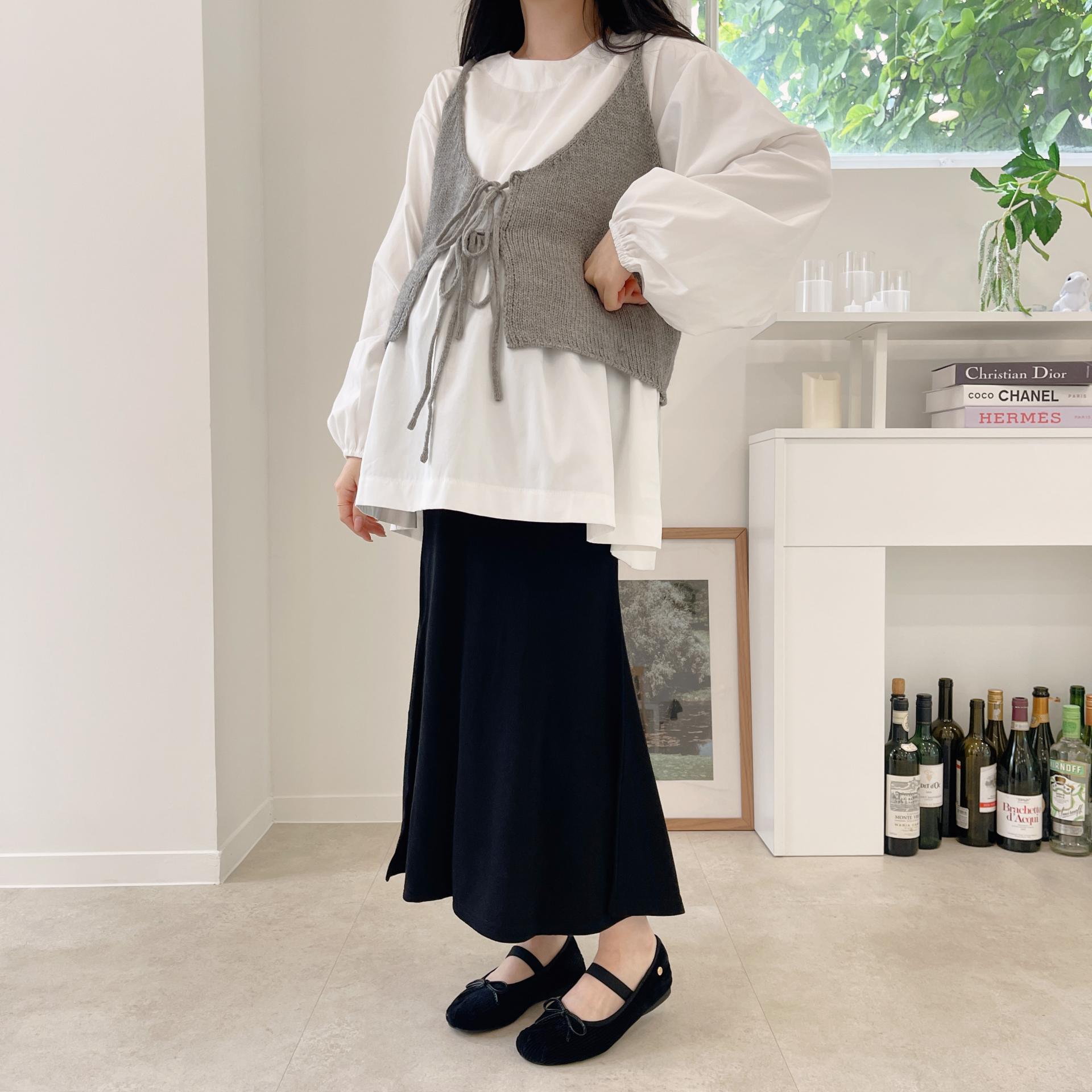 랜드블라우스(화이트) + 덴리본니트뷔스티에(그레이)