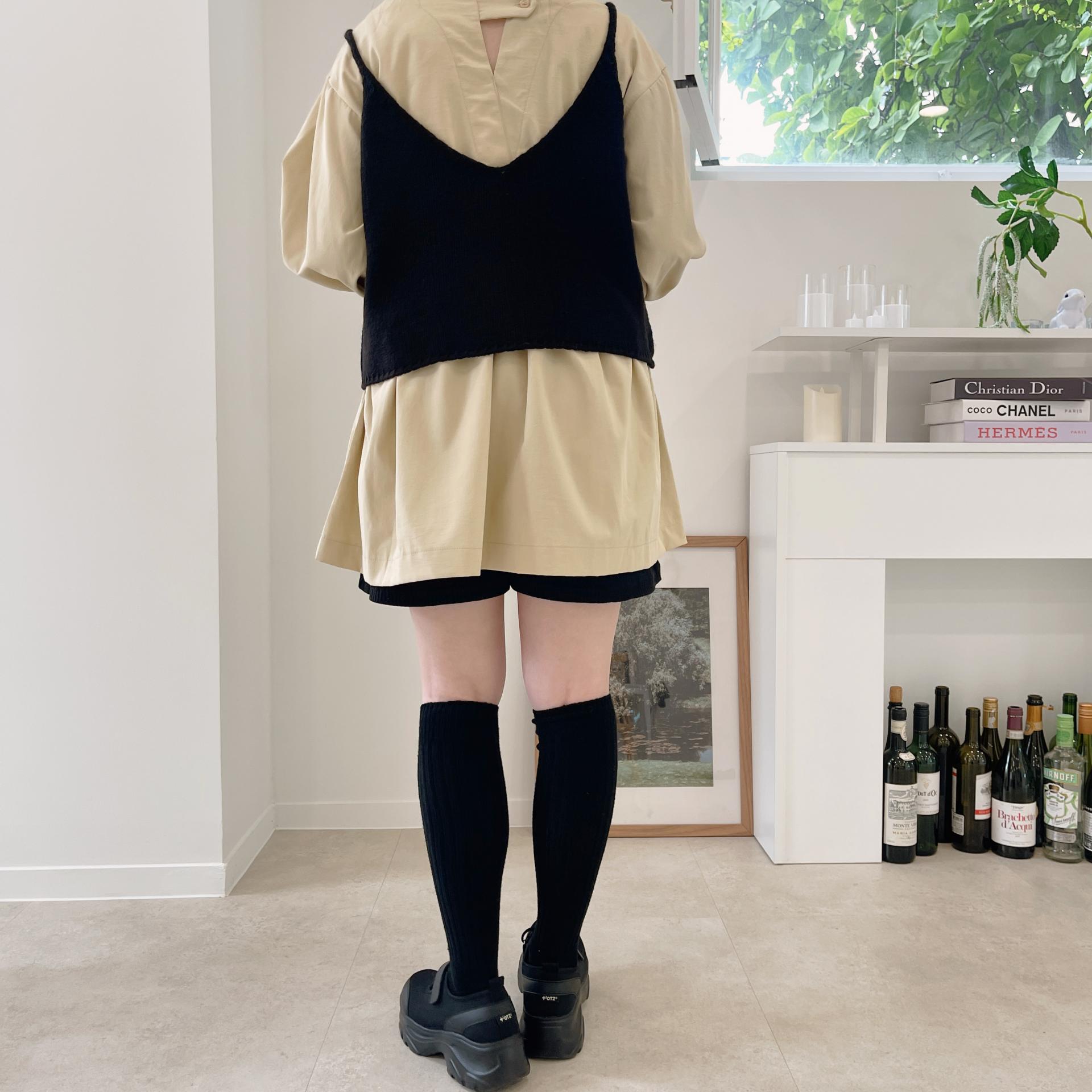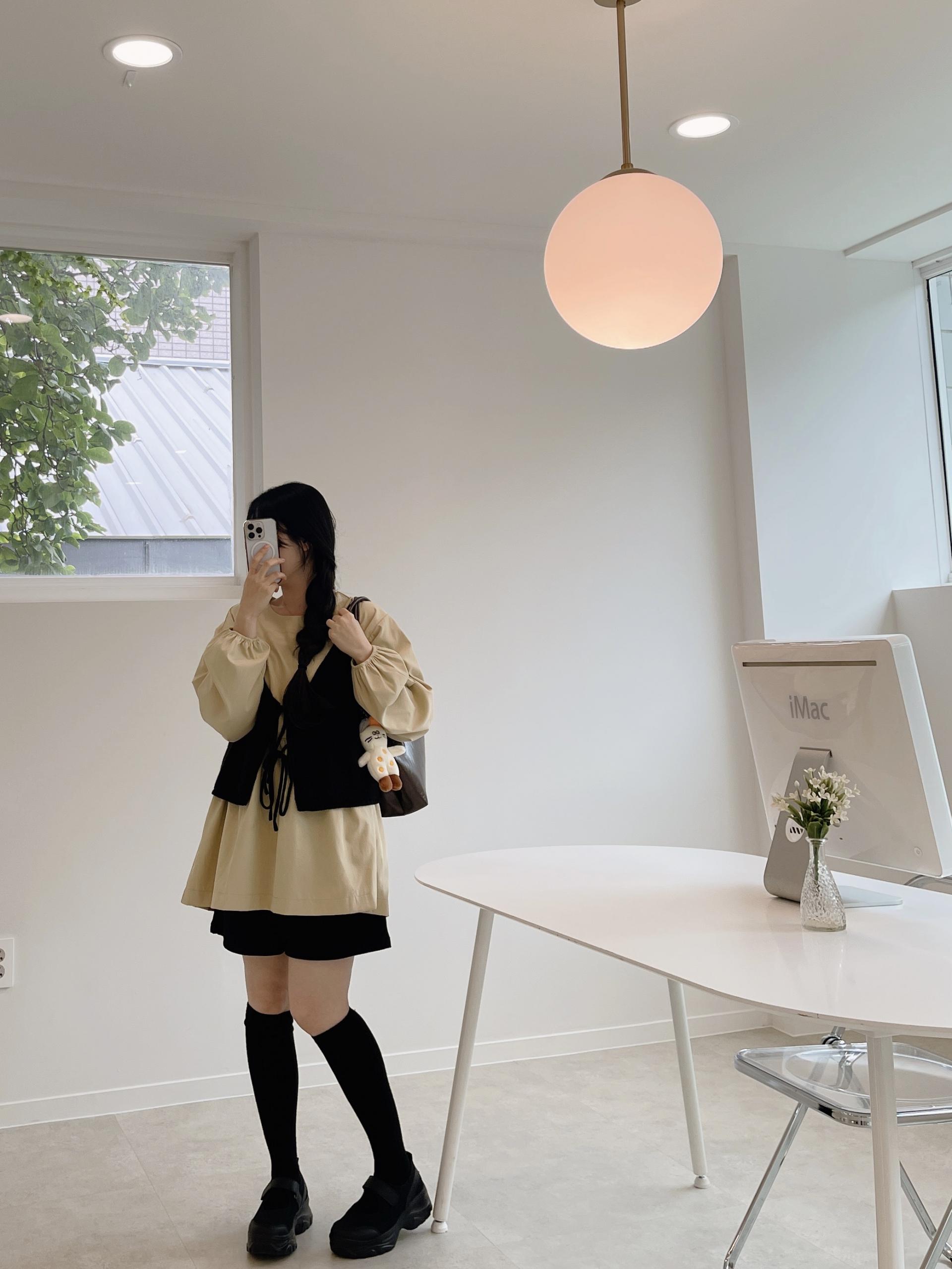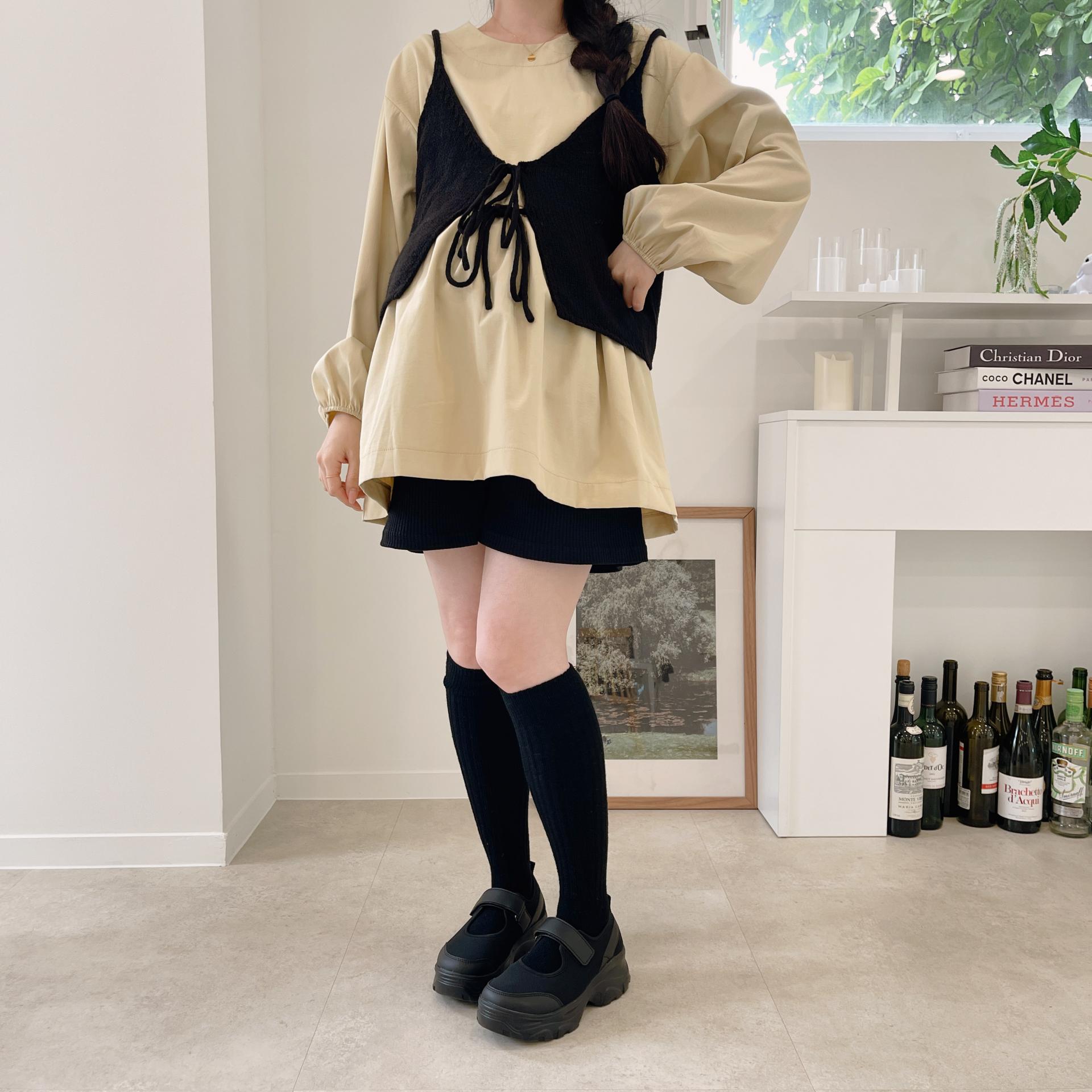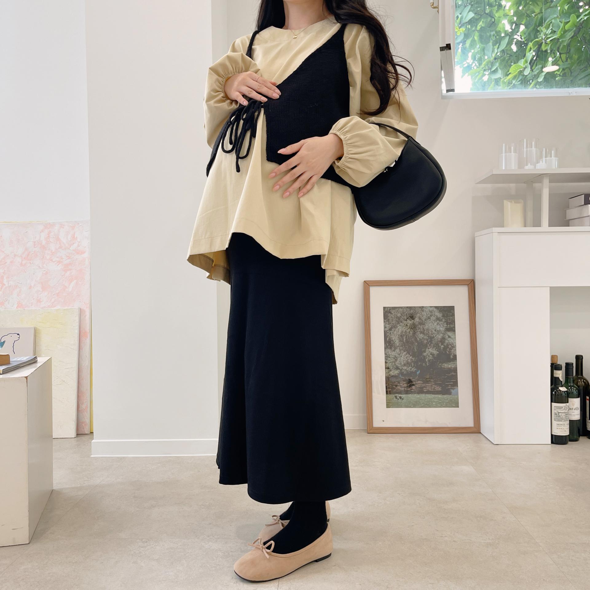 랜드블라우스(베이지) + 덴리본니트뷔스티에(블랙)