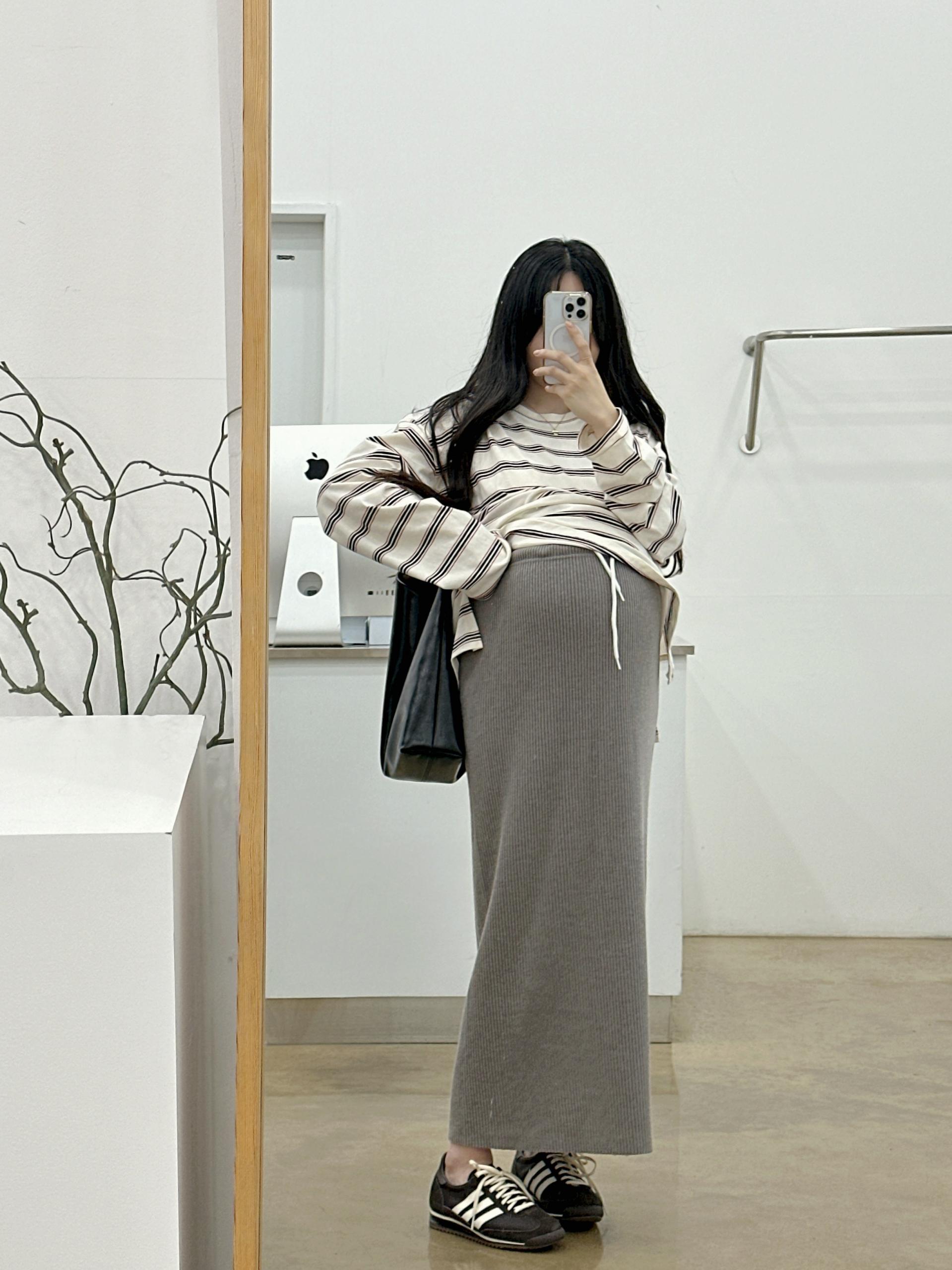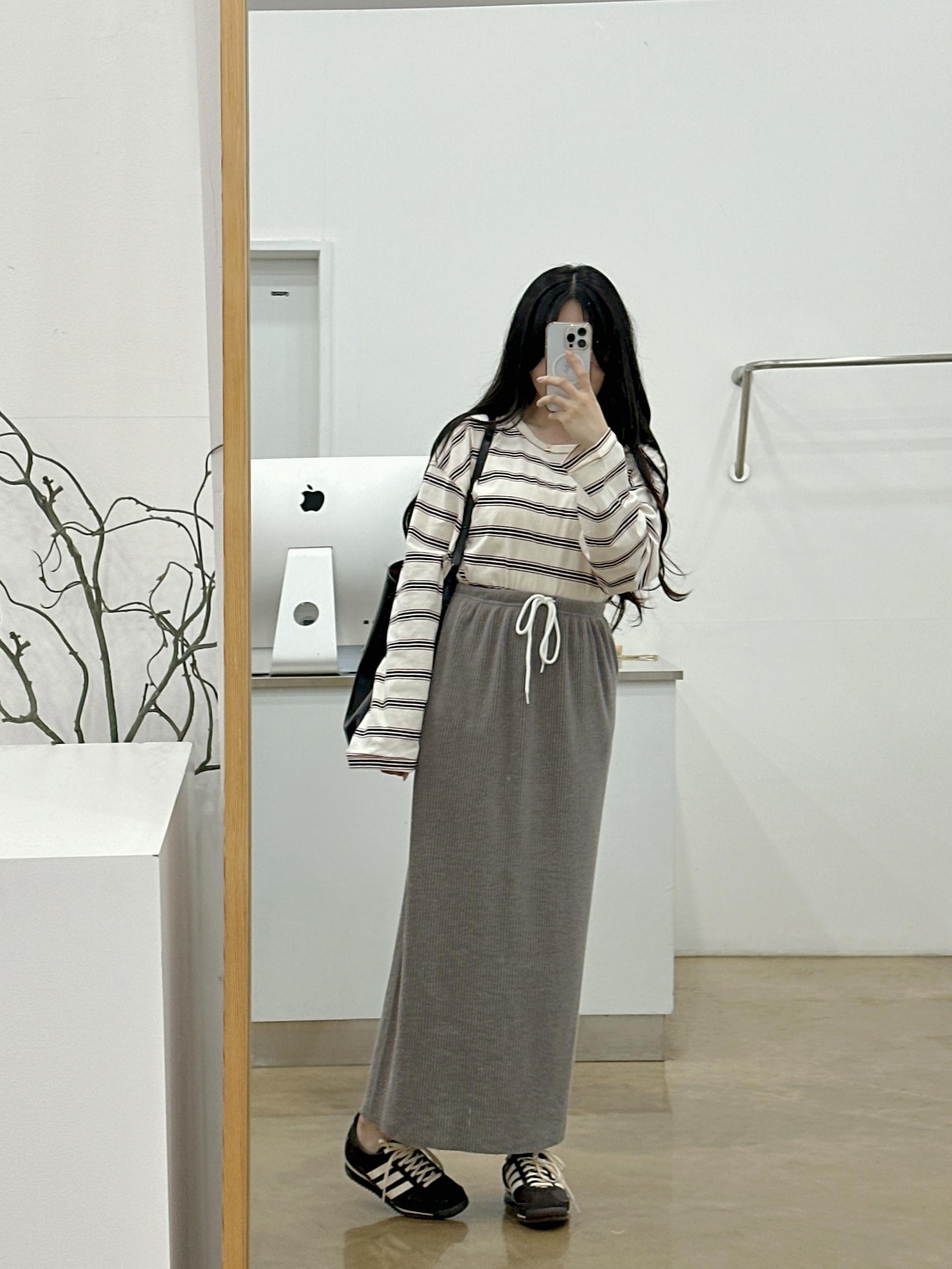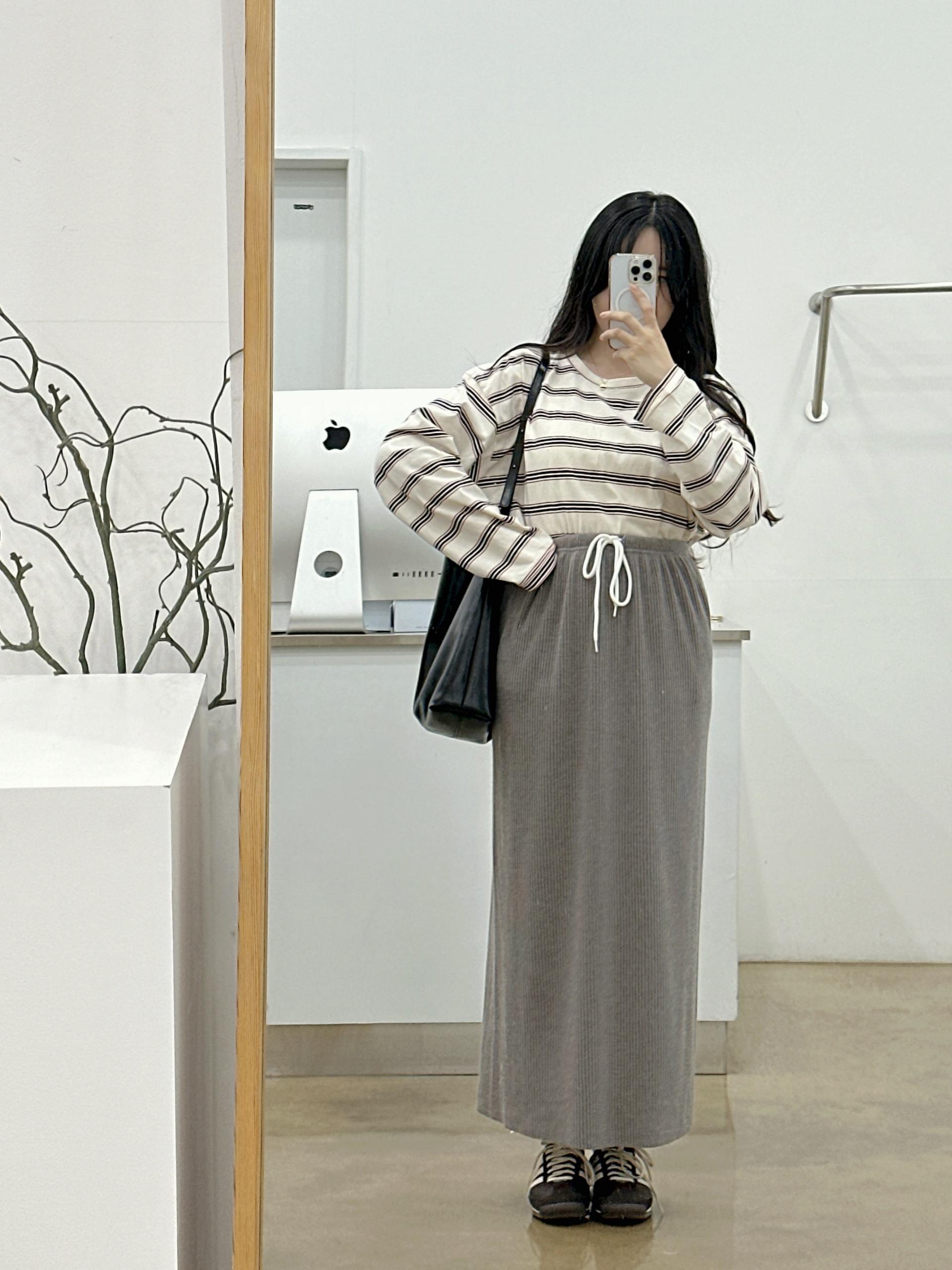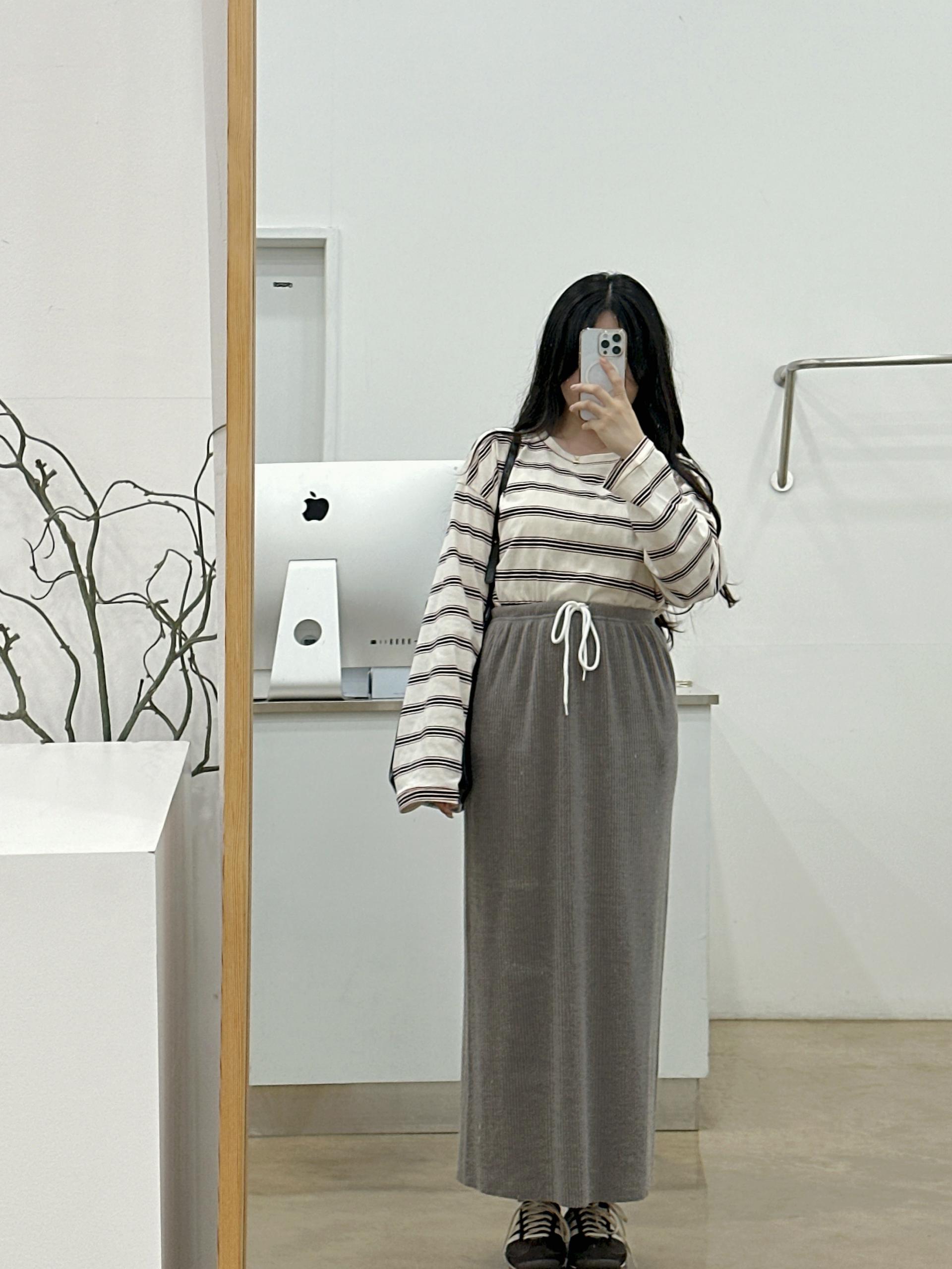 밸런스 단가라오버T(아이보리) + 니트스트링스커트(그레이)