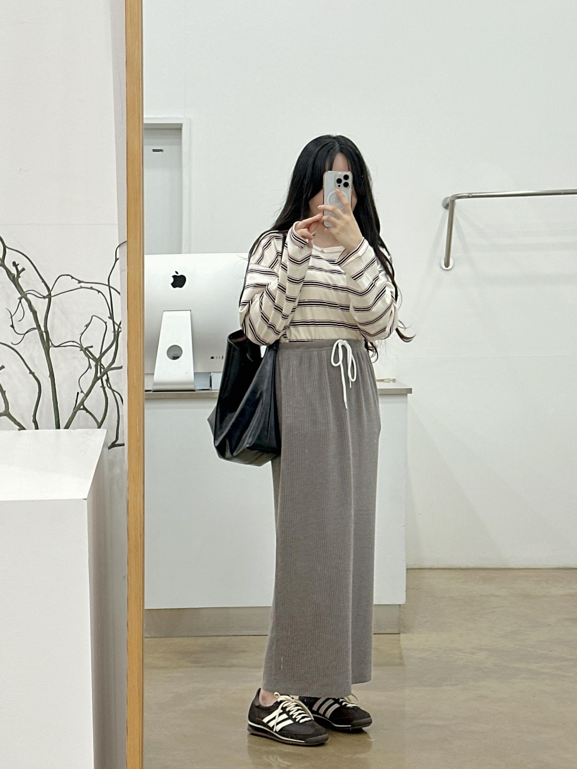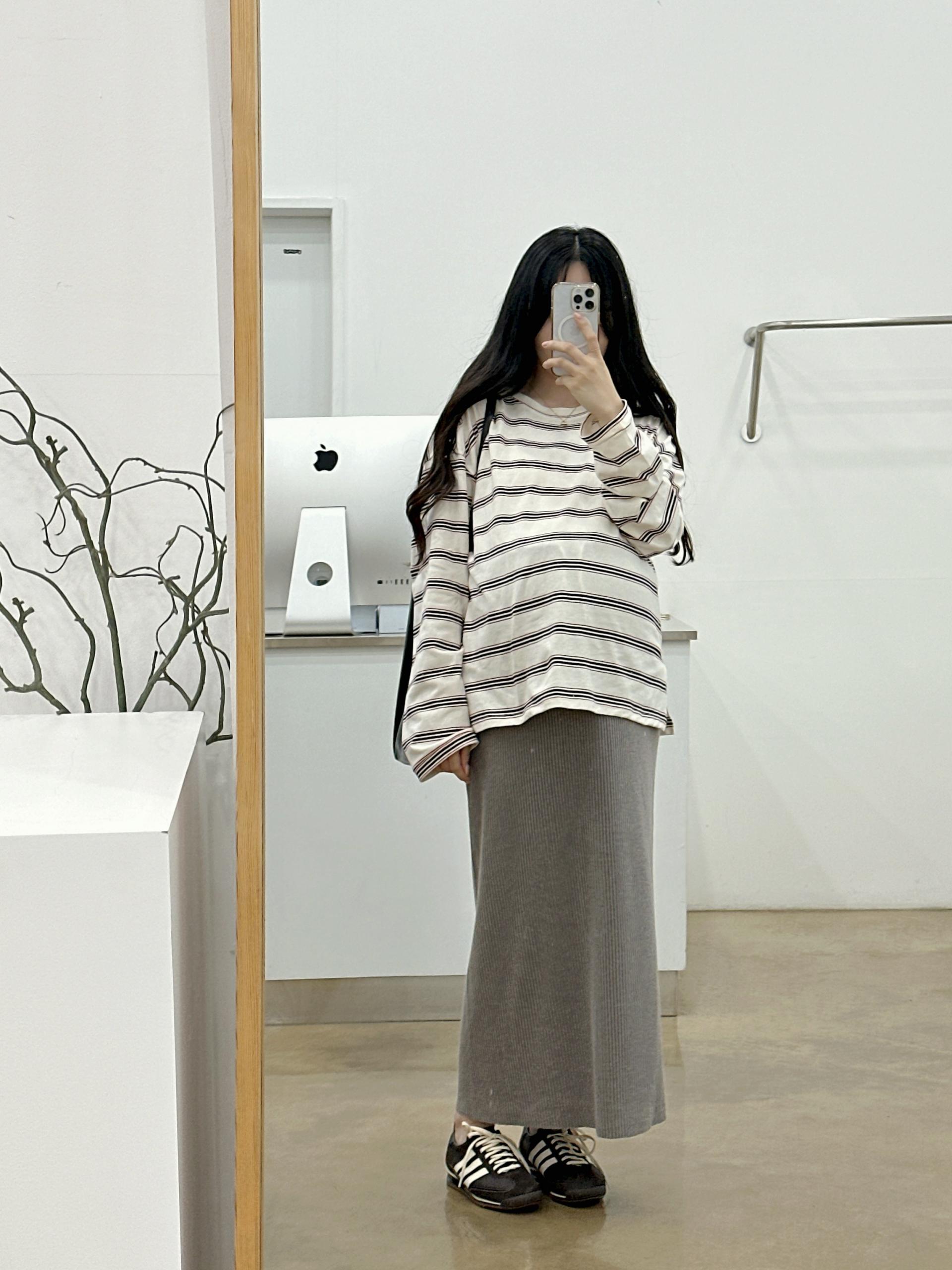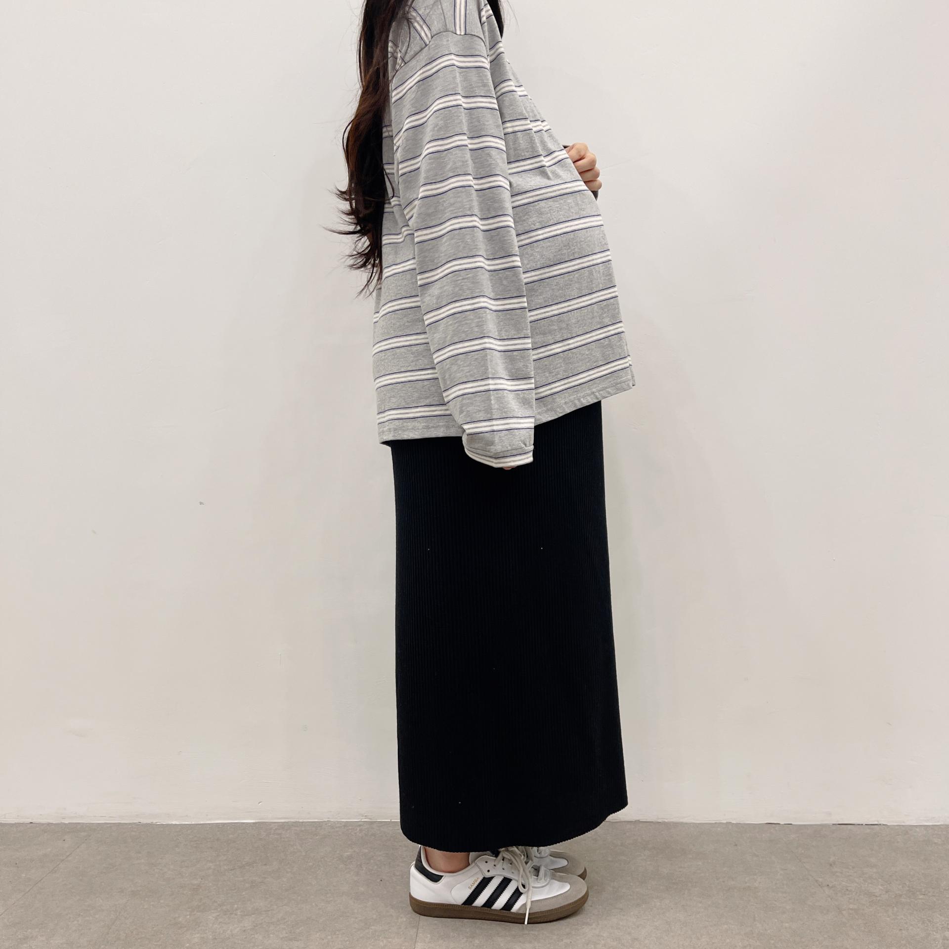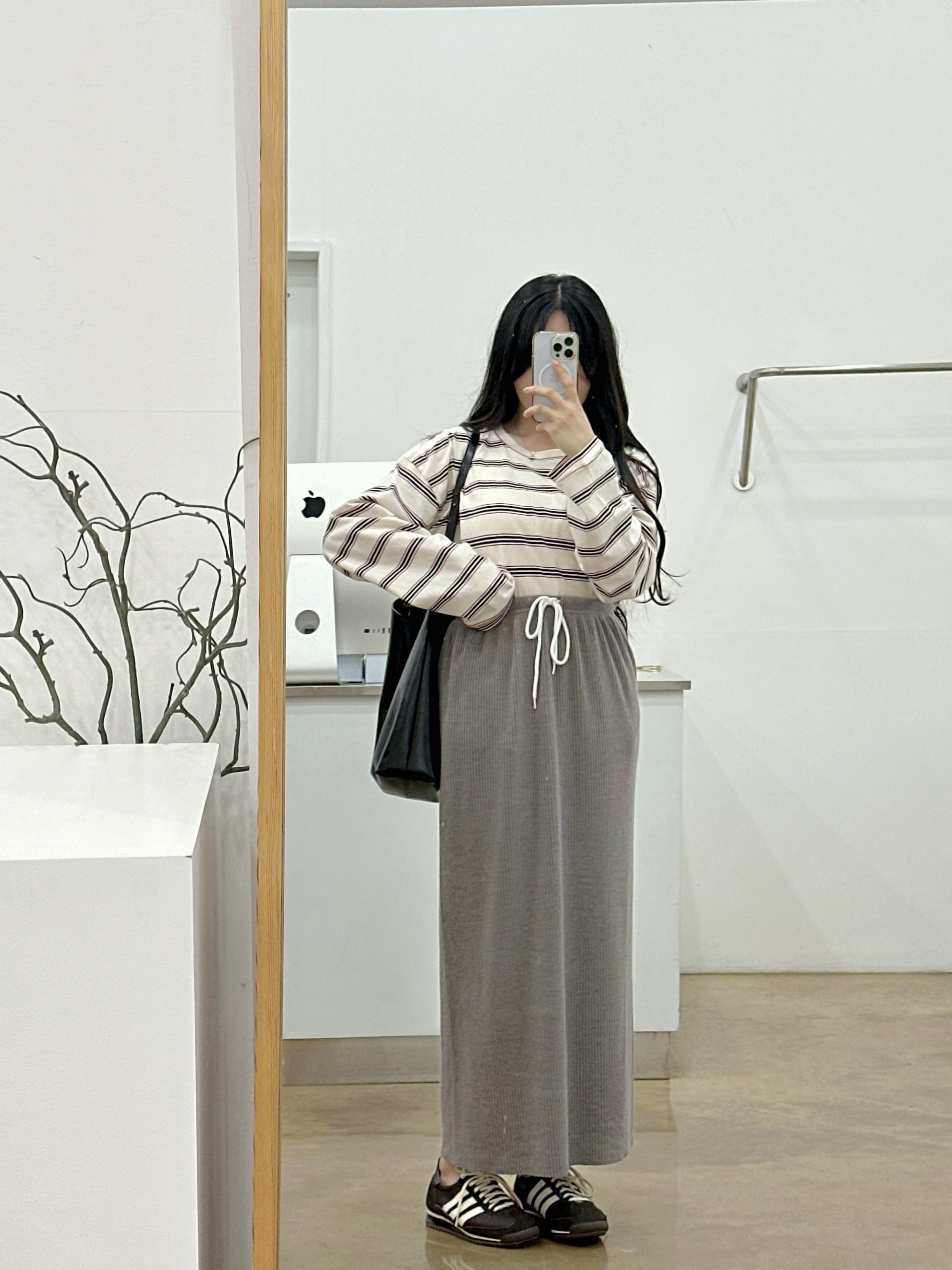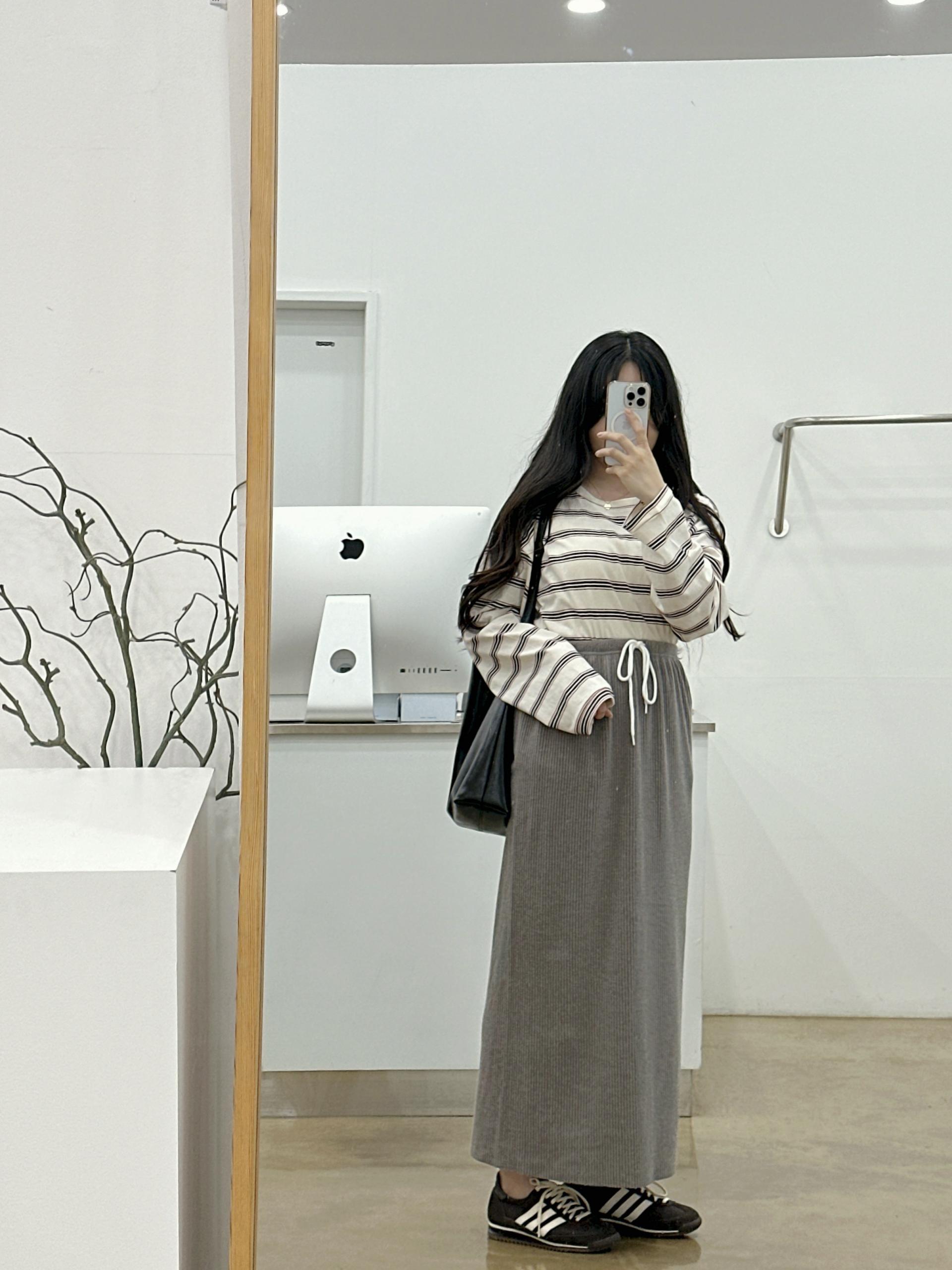 밸런스 단가라오버T(아이보리) + 니트스트링스커트(그레이)