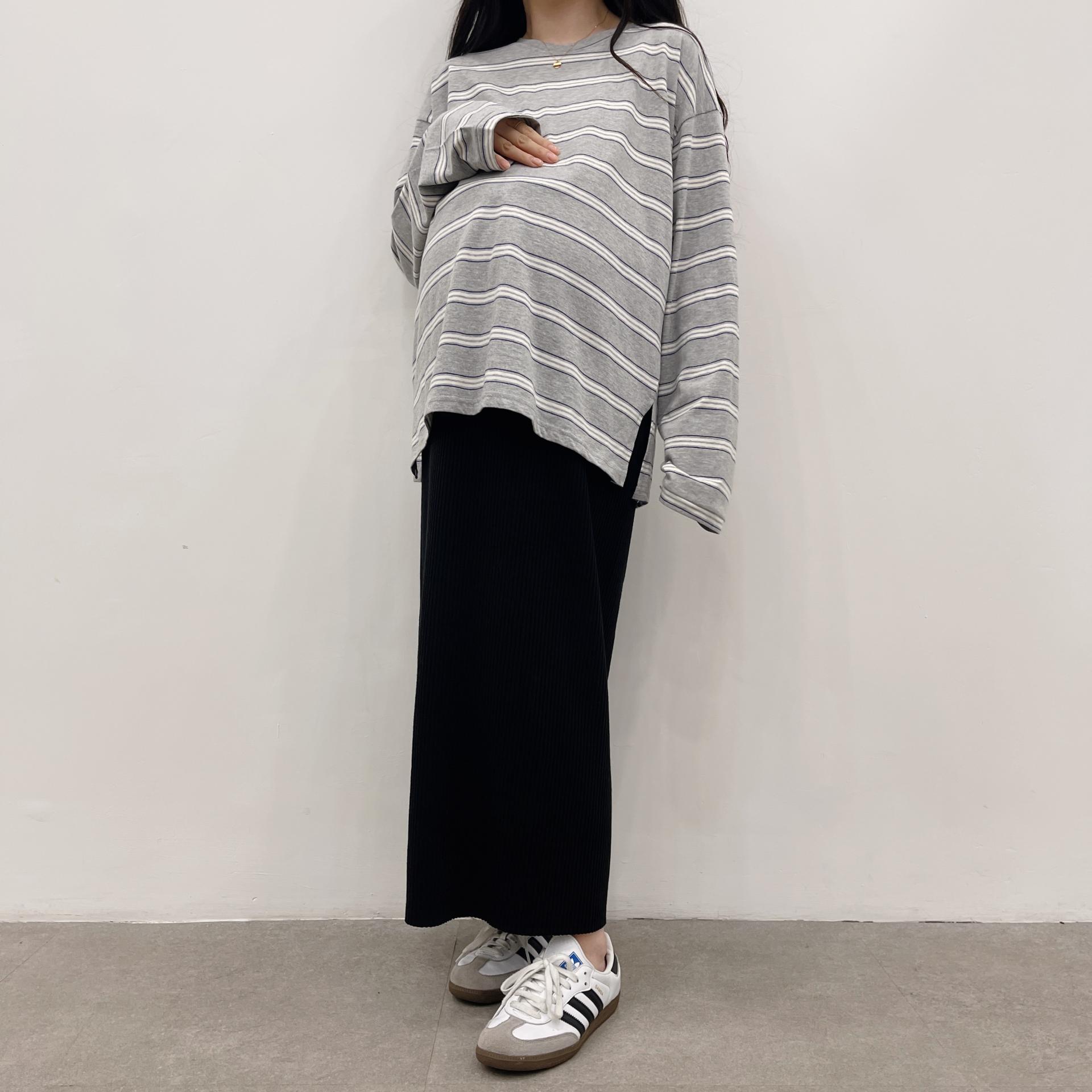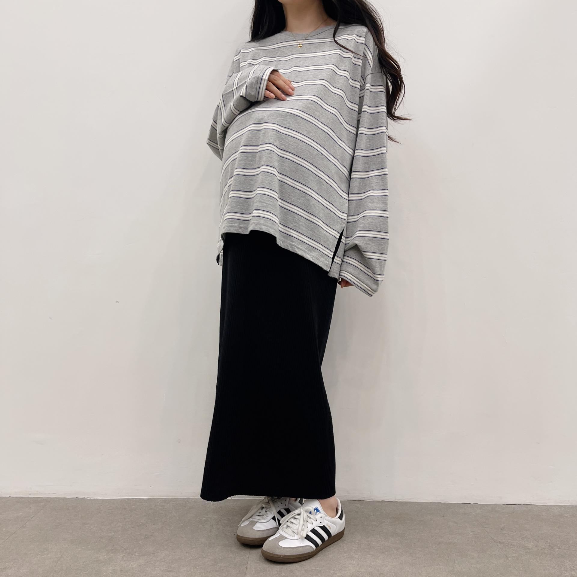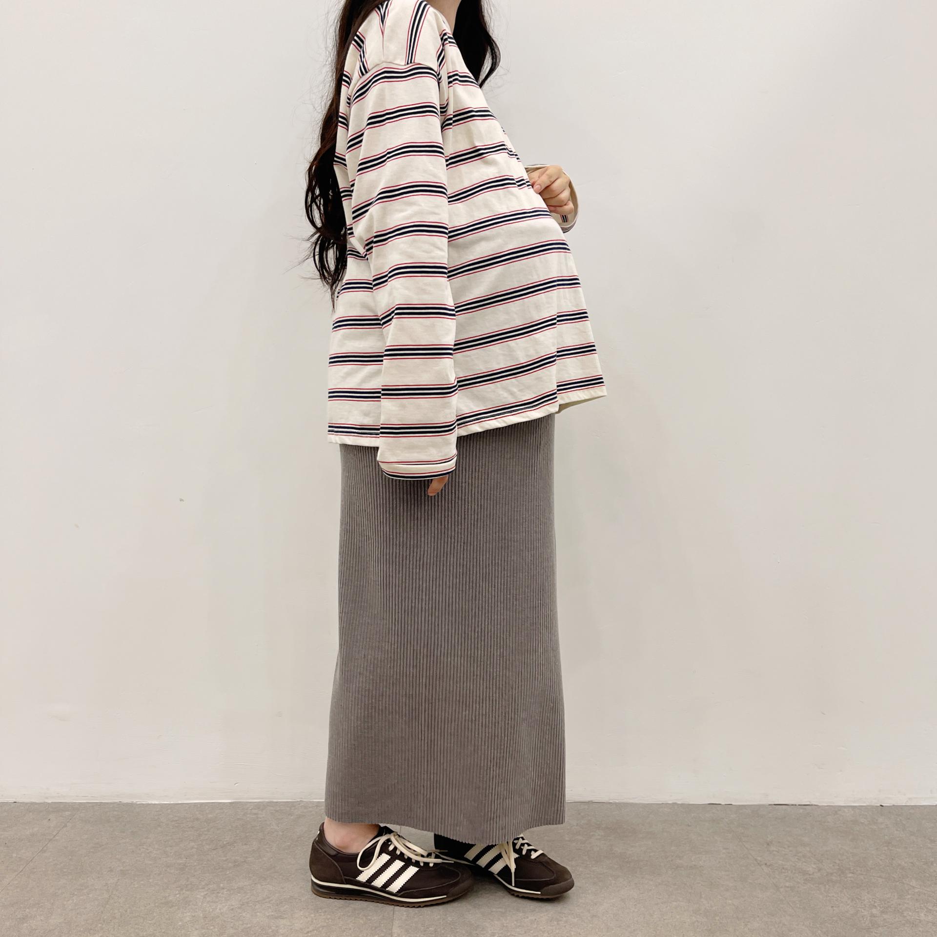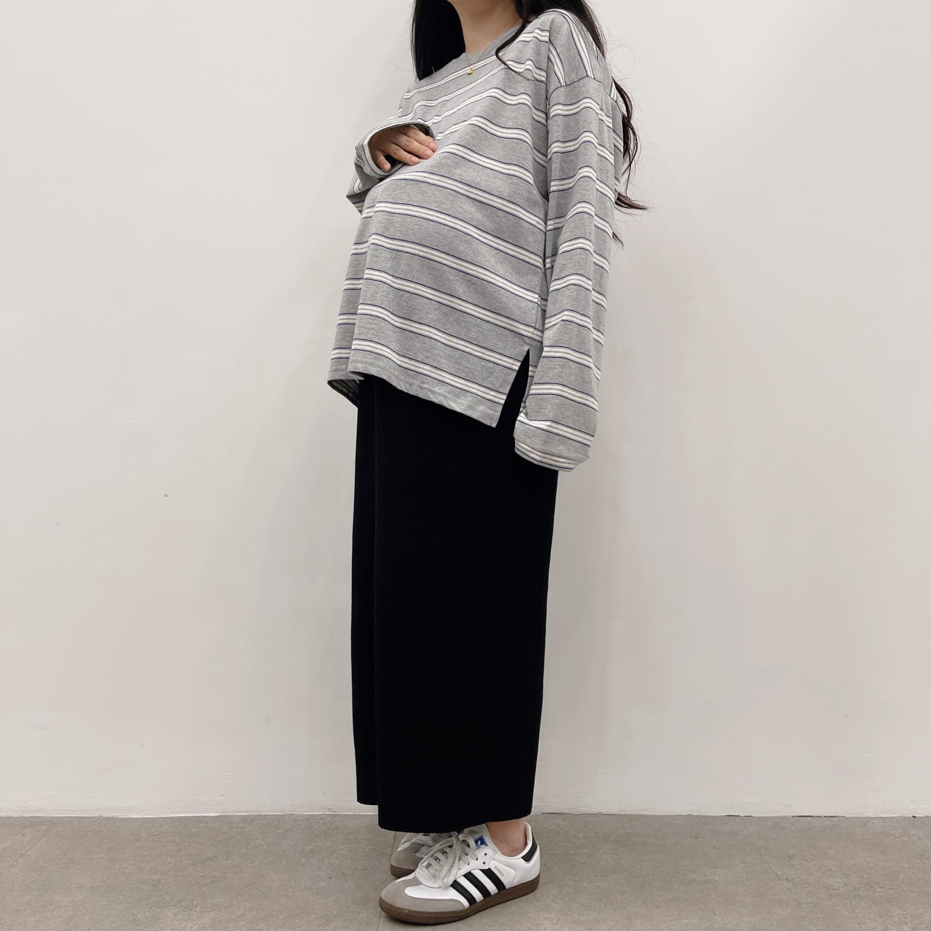 밸런스 단가라오버T(아이보리) + 니트스트링스커트(그레이)