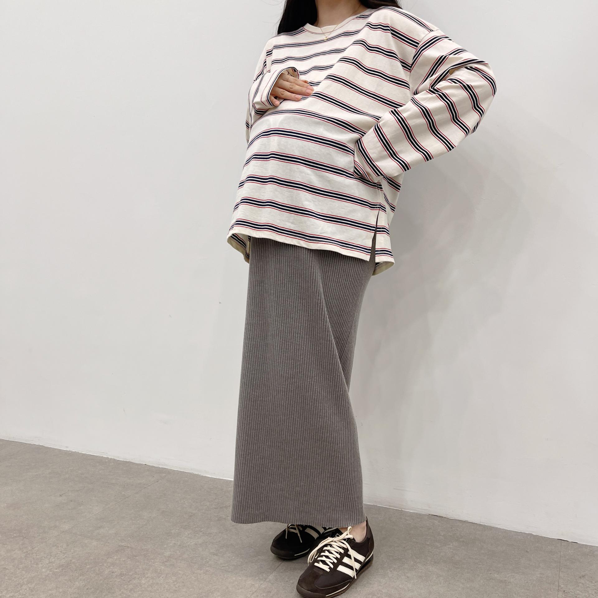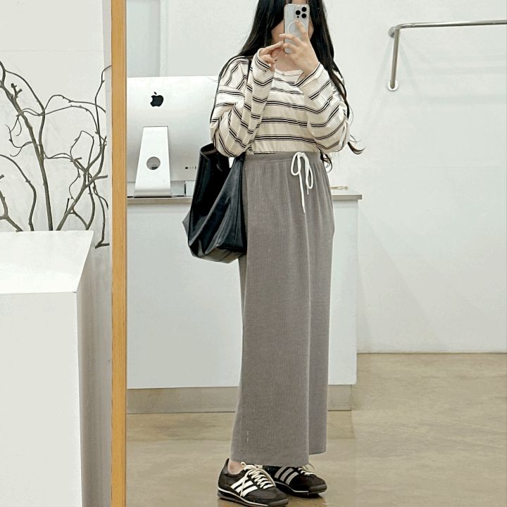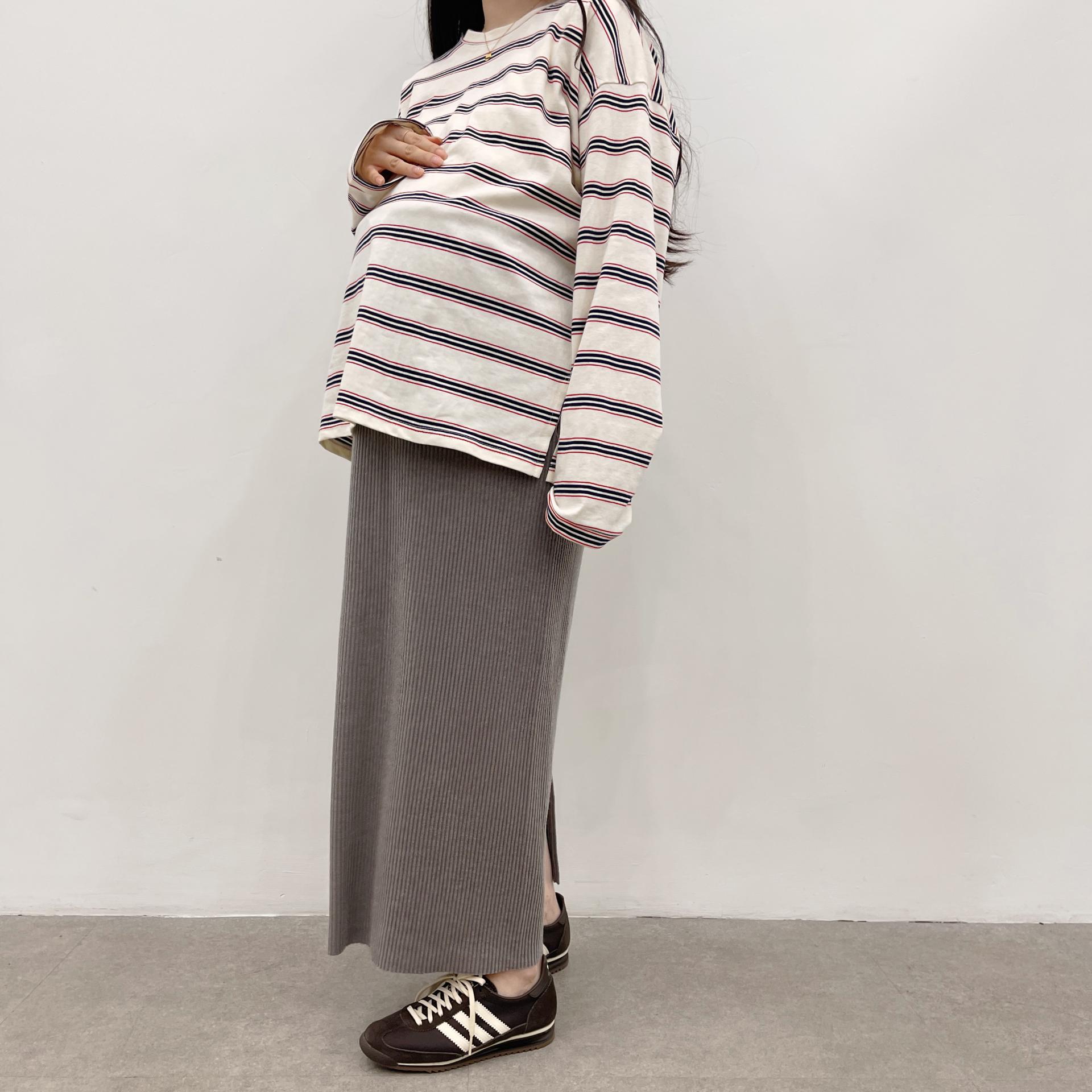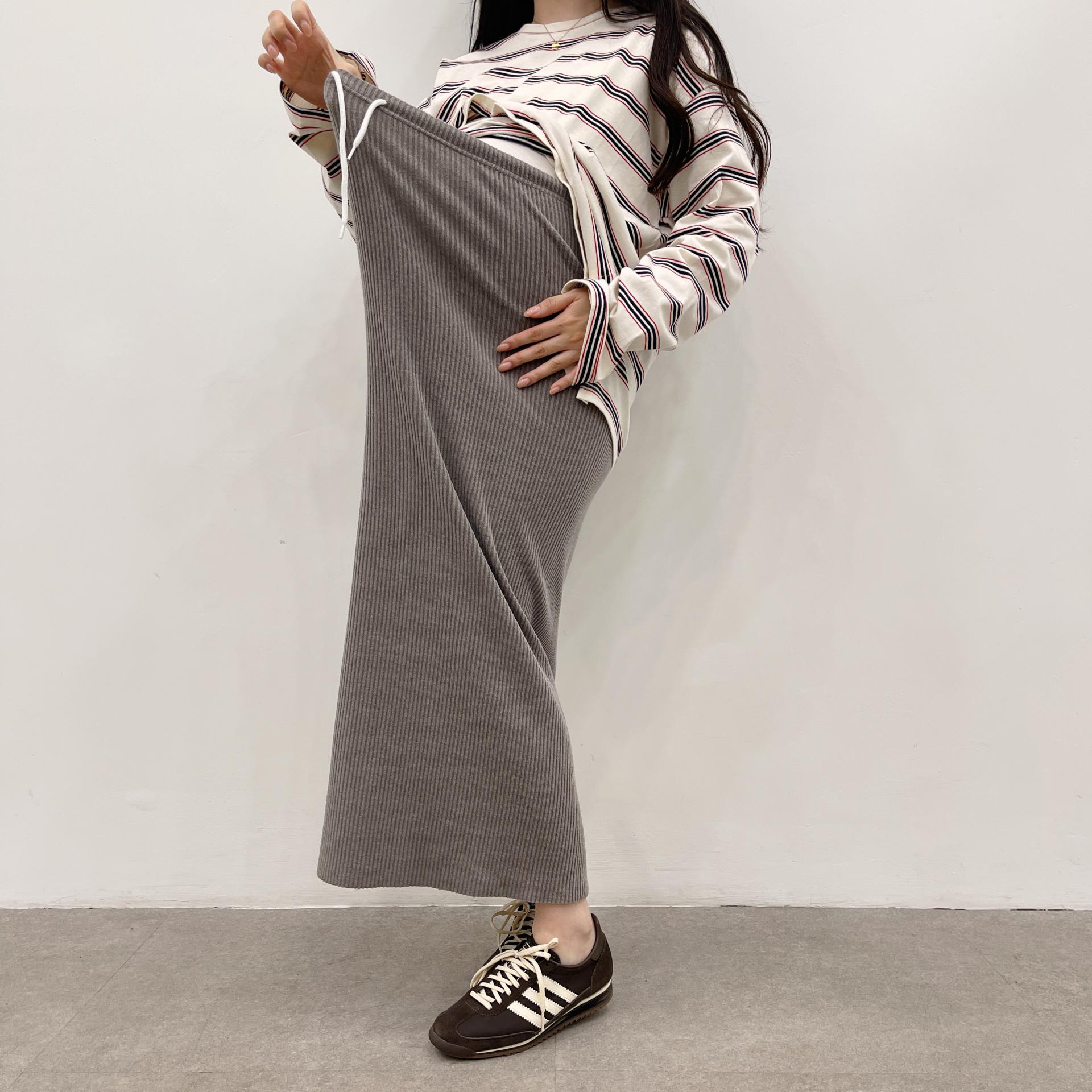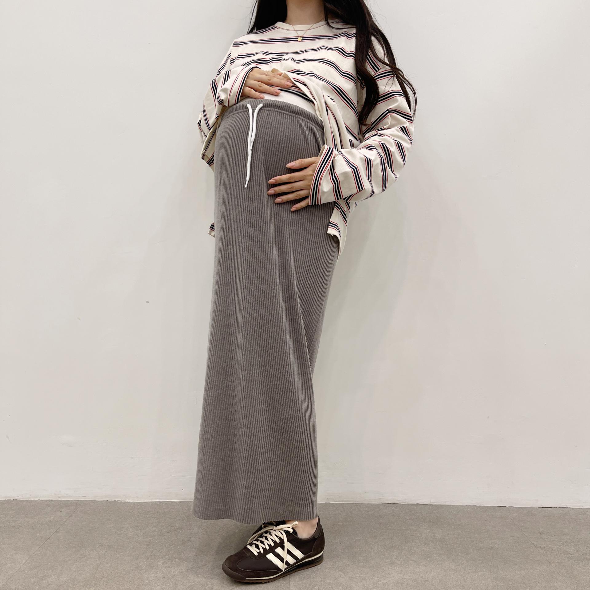 밸런스 단가라오버T(아이보리) + 니트스트링스커트(그레이)