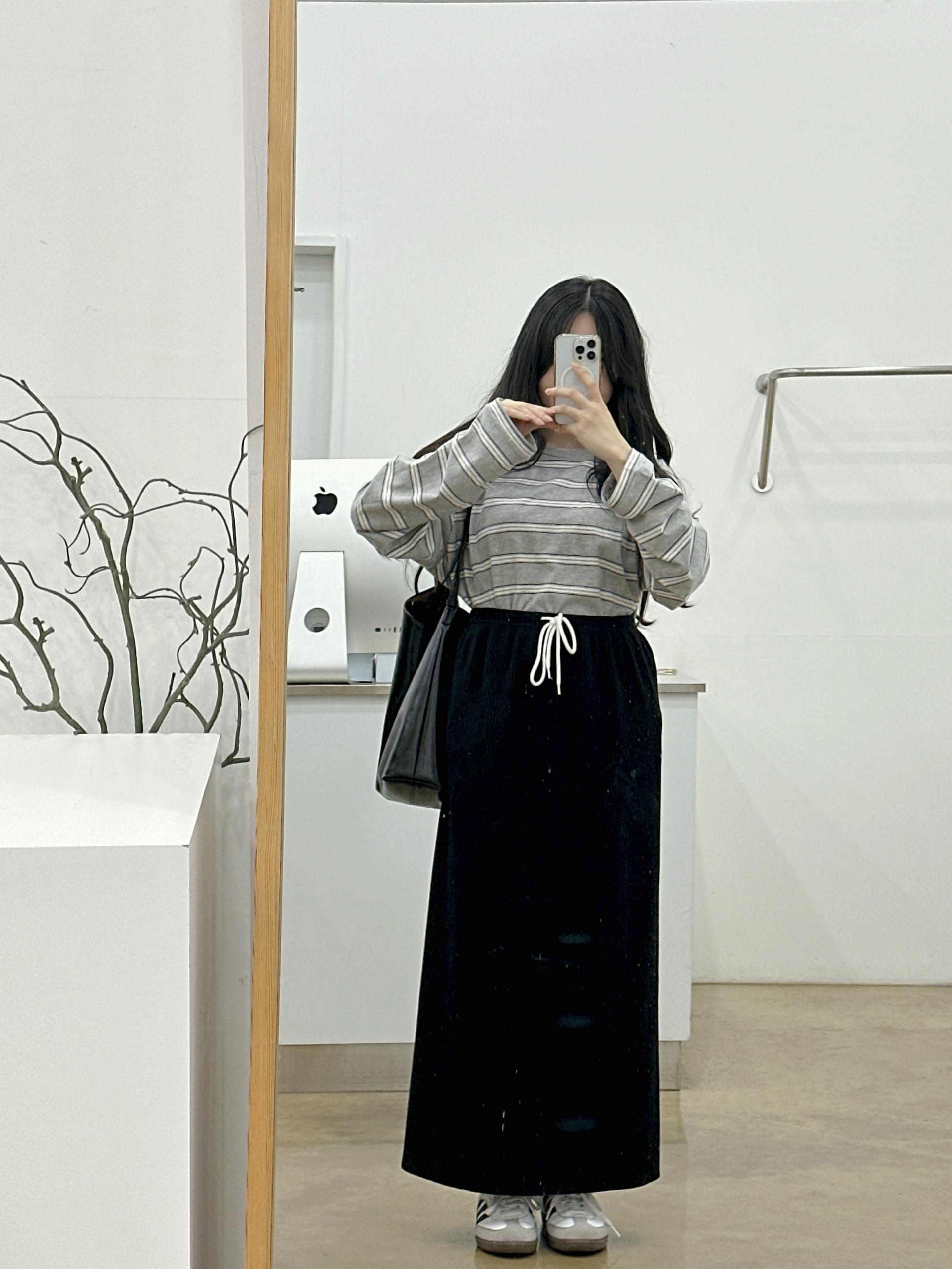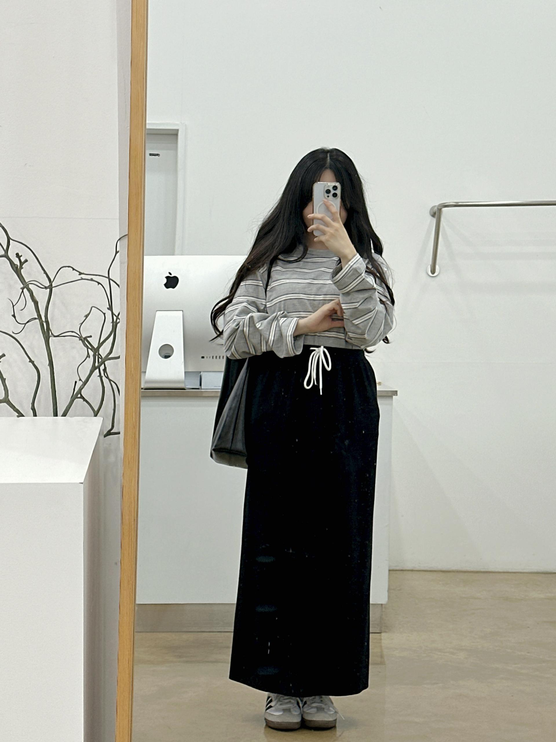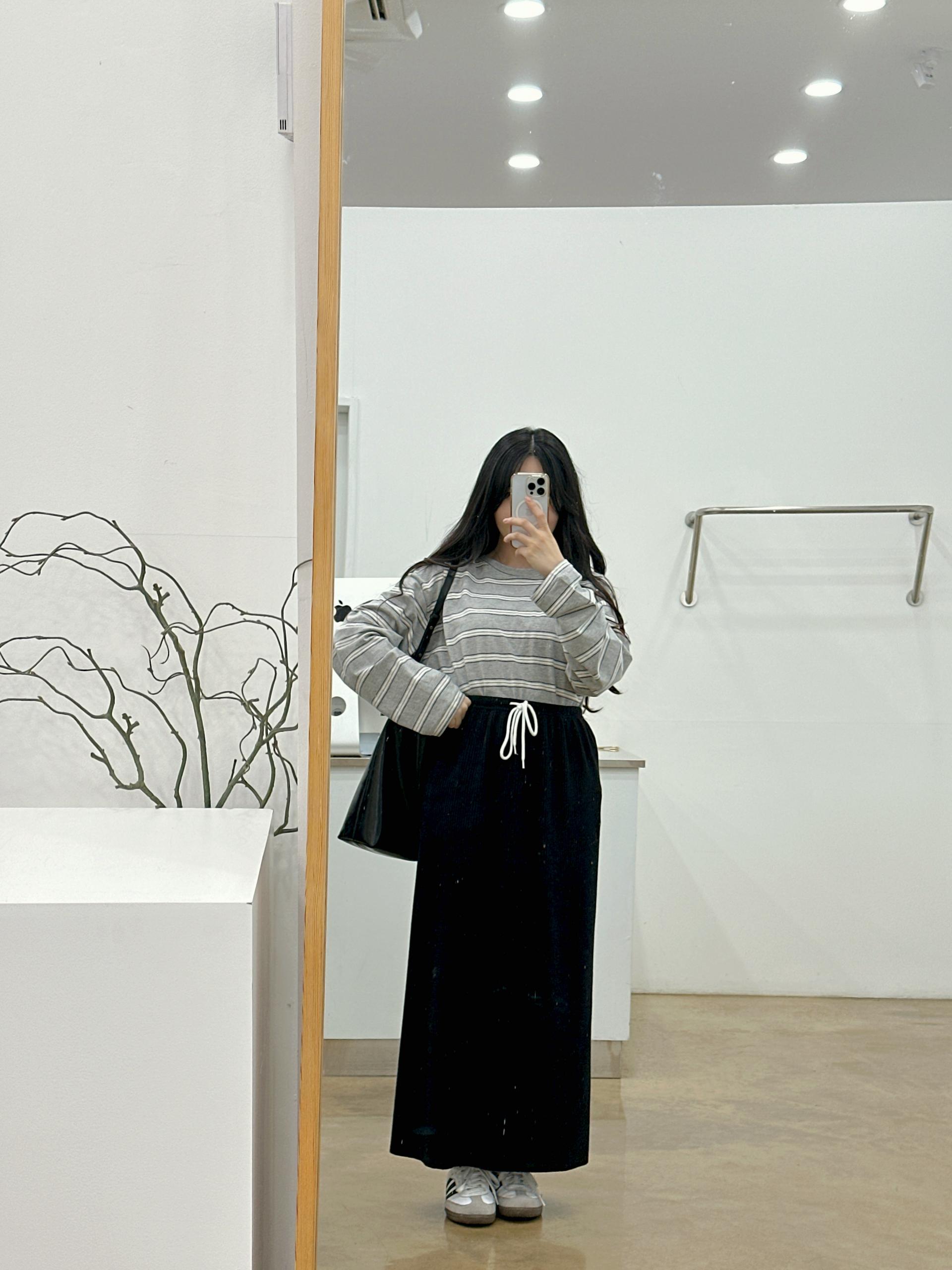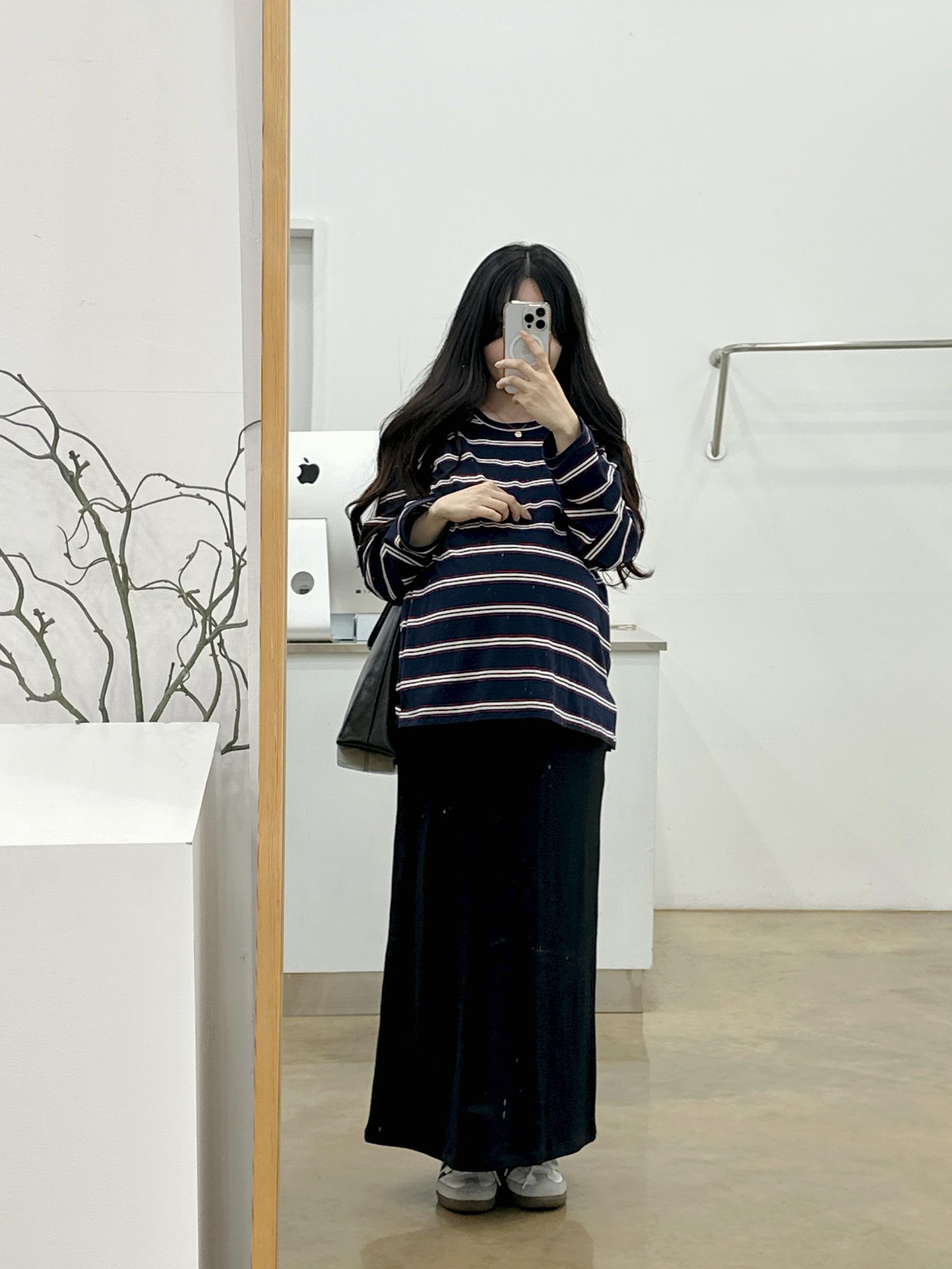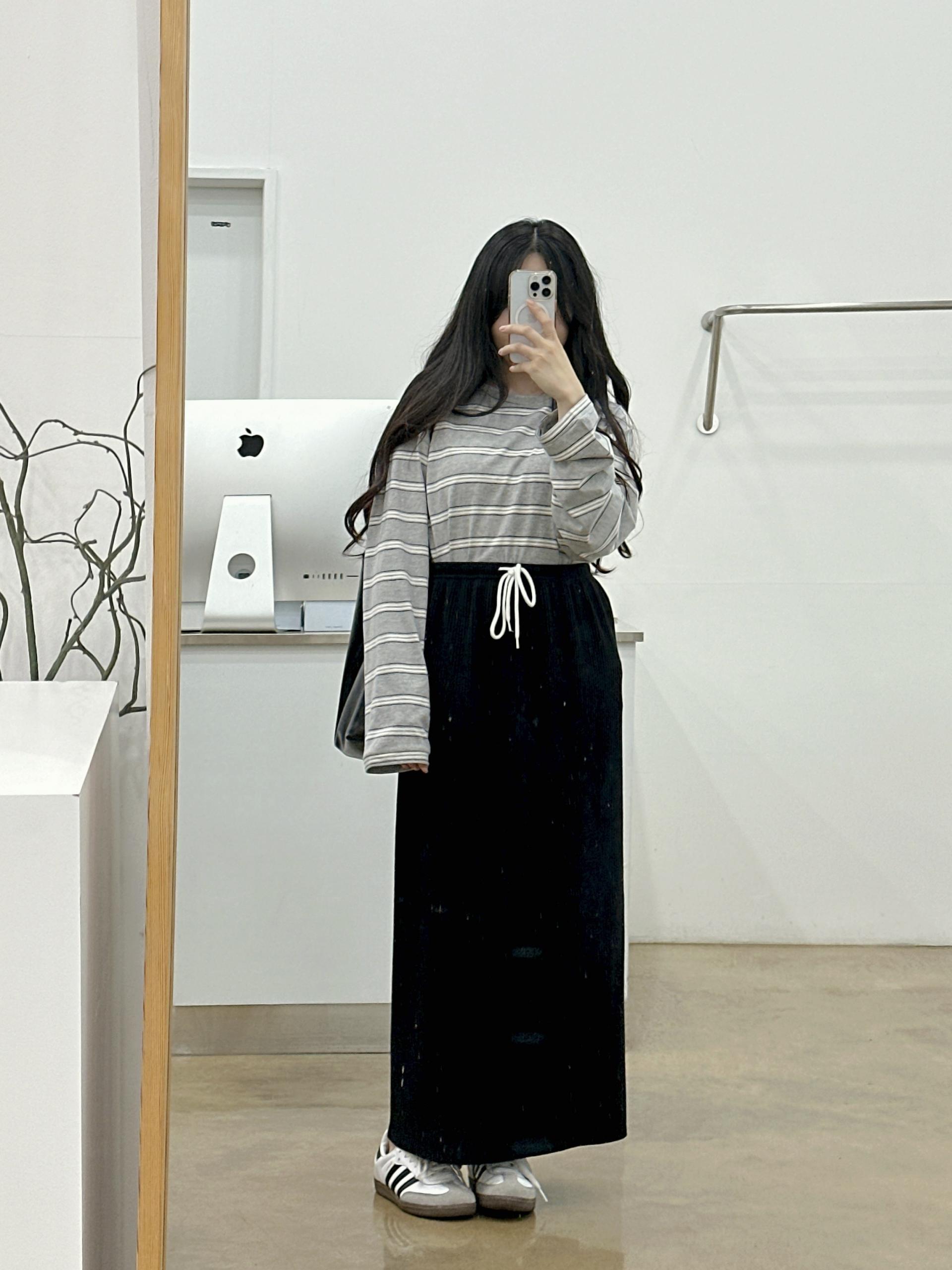 밸런스 단가라오버T(네이비) + 어텀 맥시롱 스트링스커트(블랙)