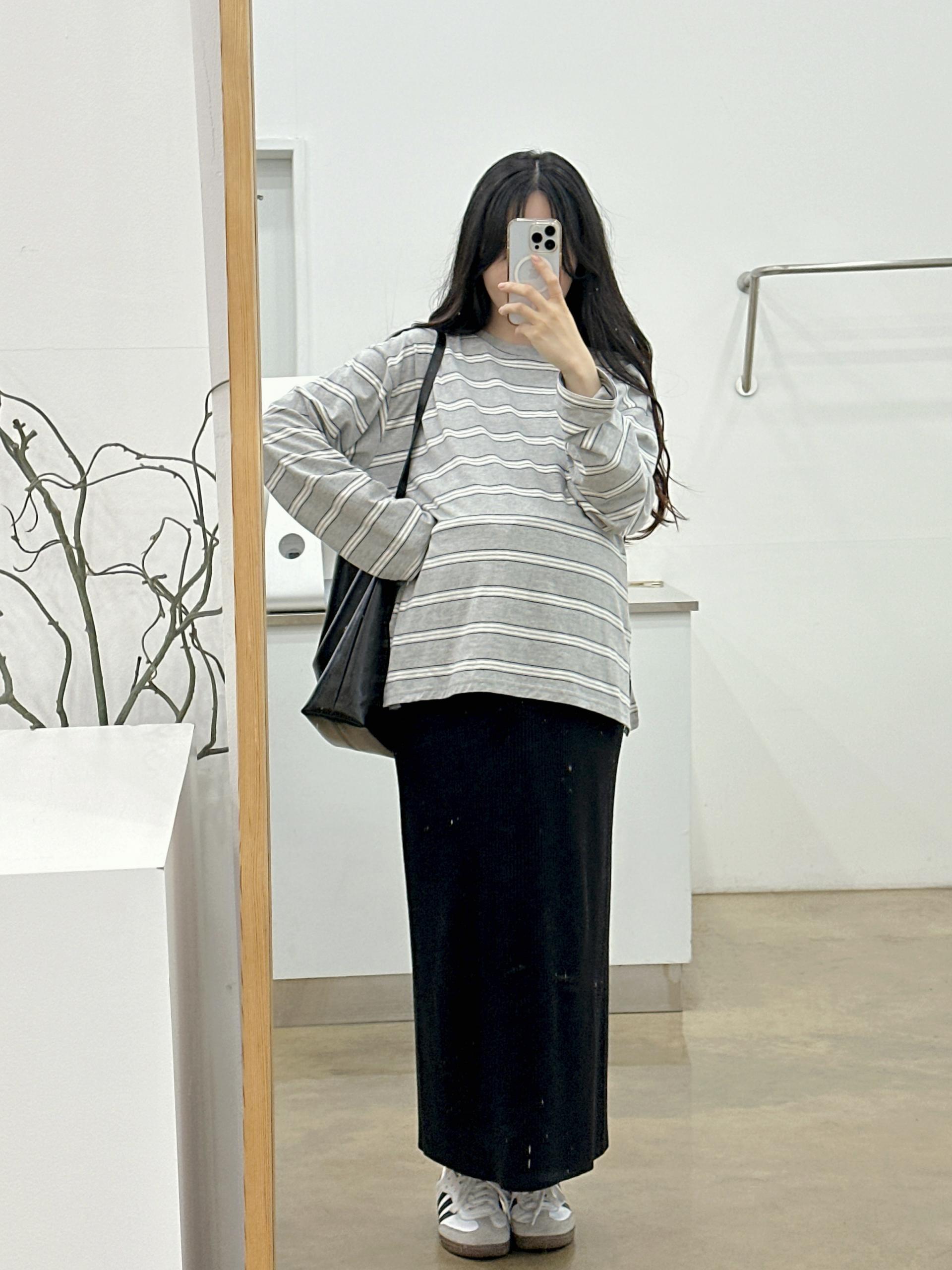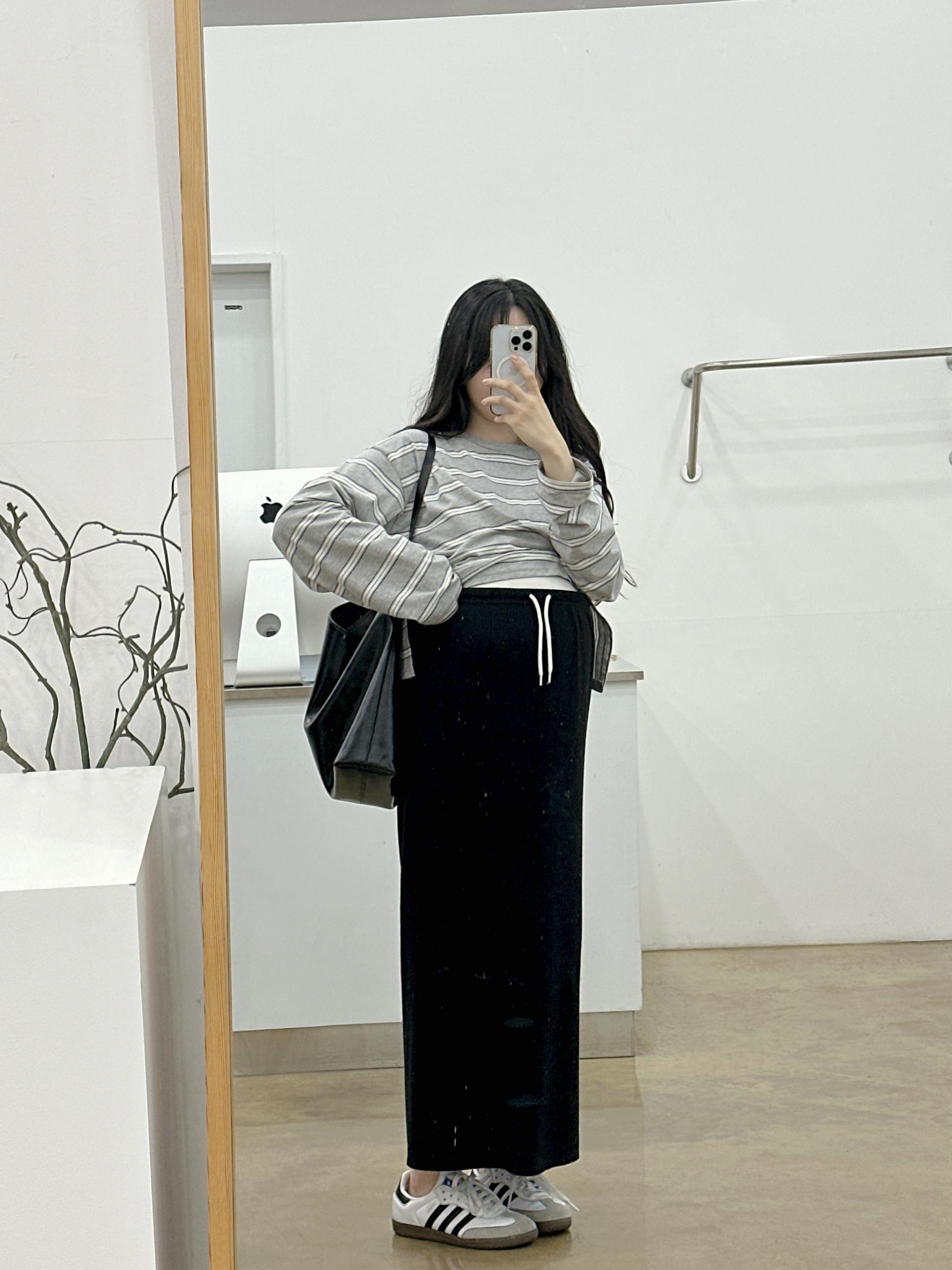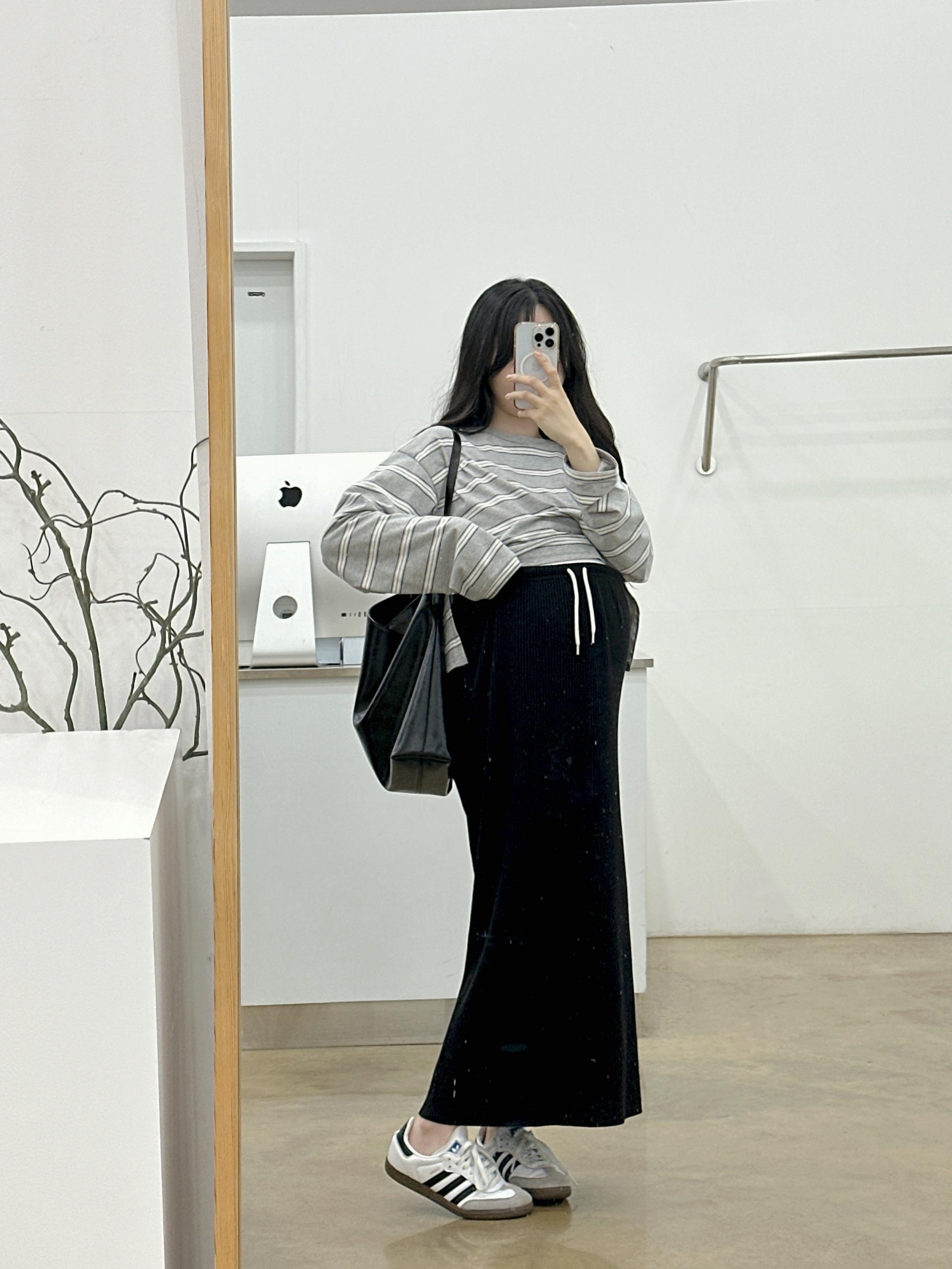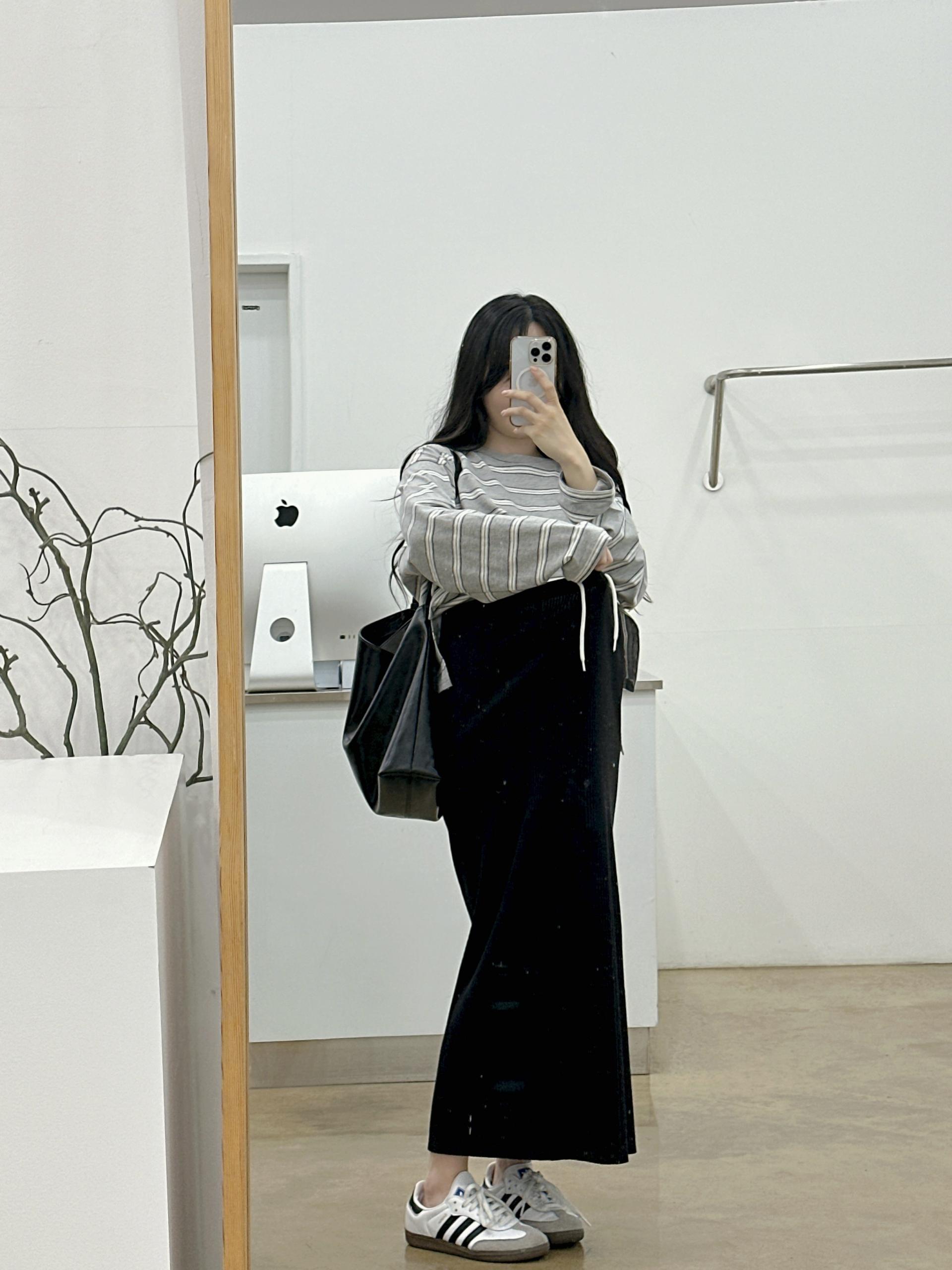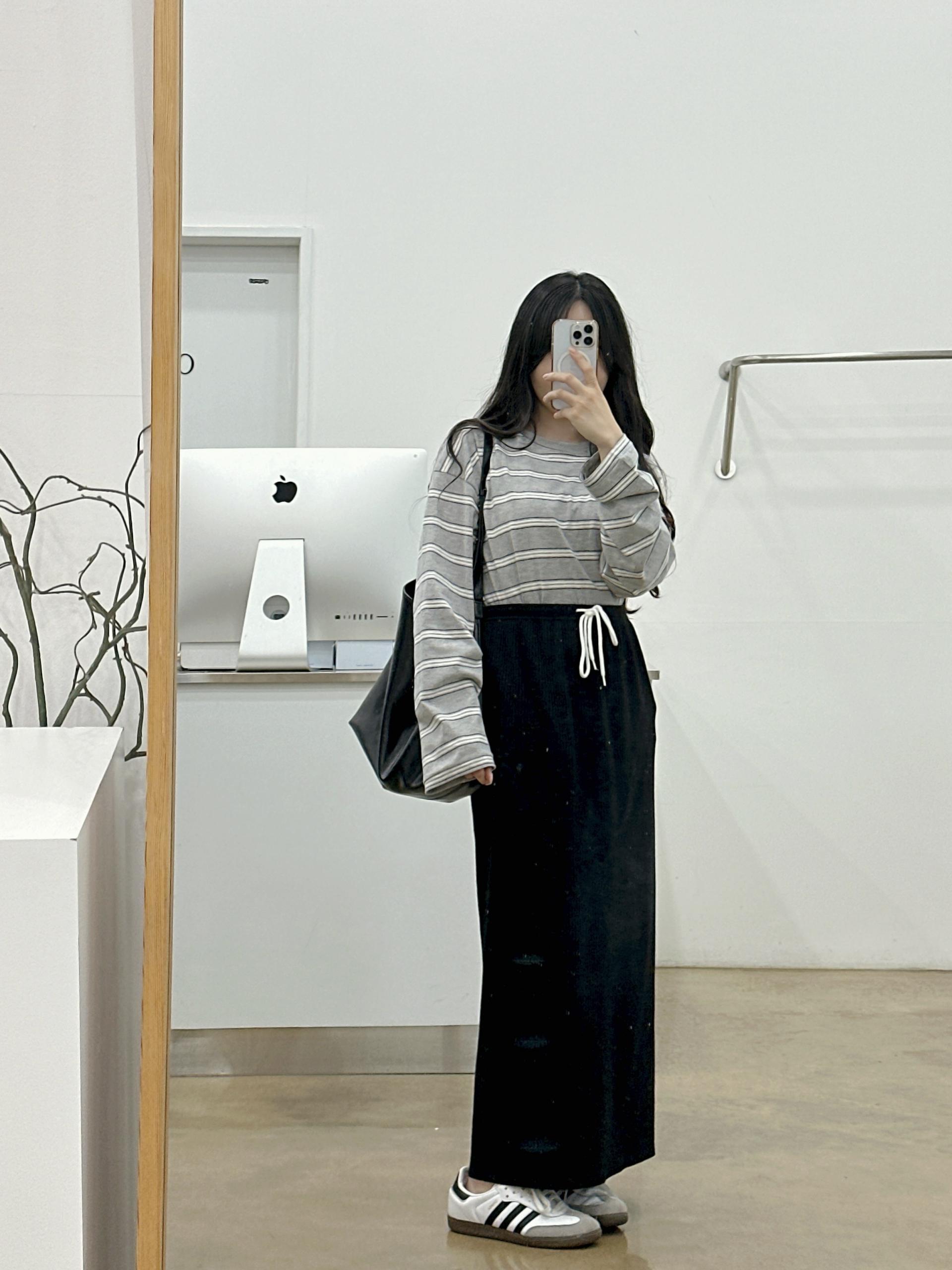 밸런스 단가라오버T(네이비) + 어텀 맥시롱 스트링스커트(블랙)