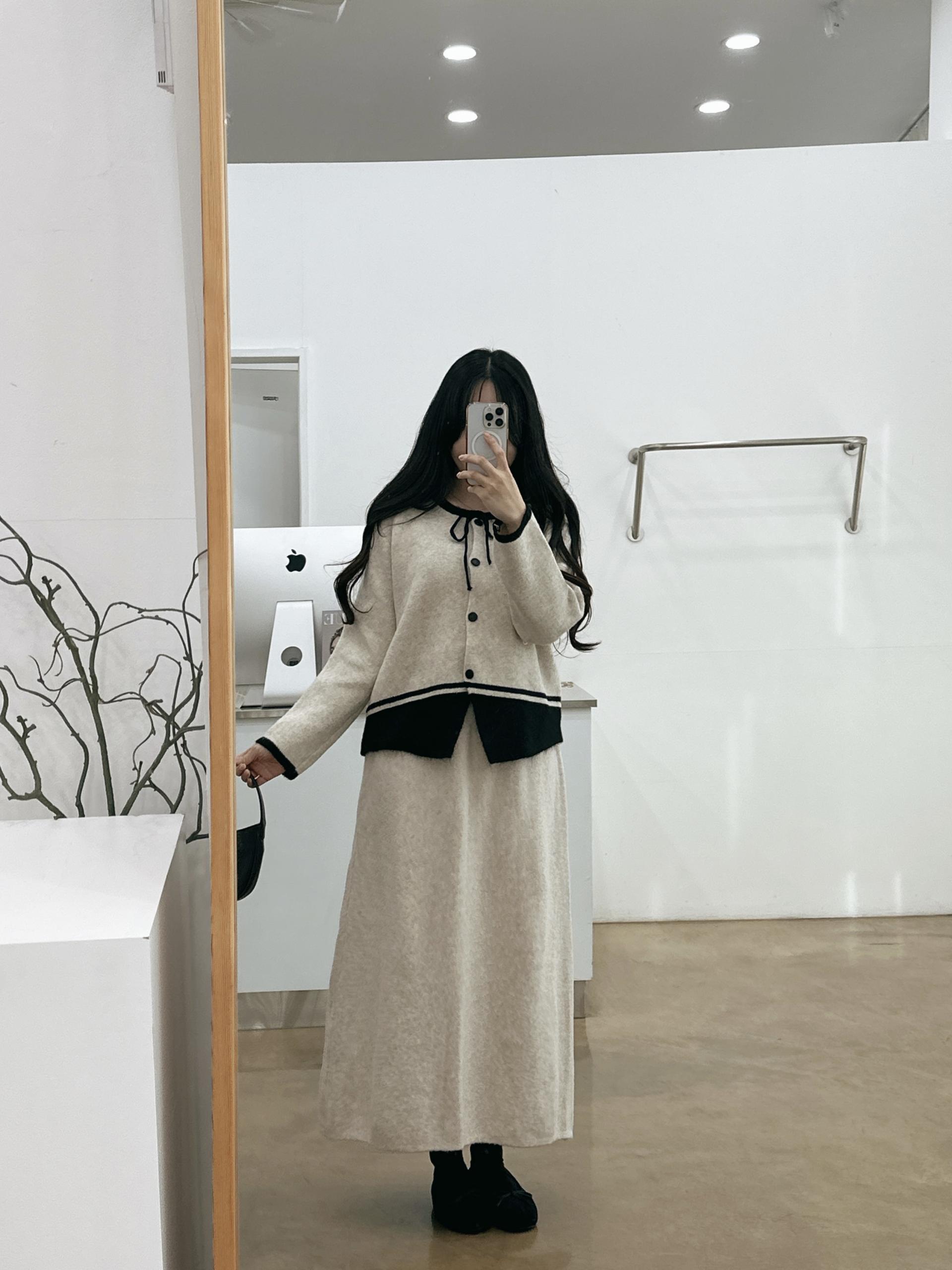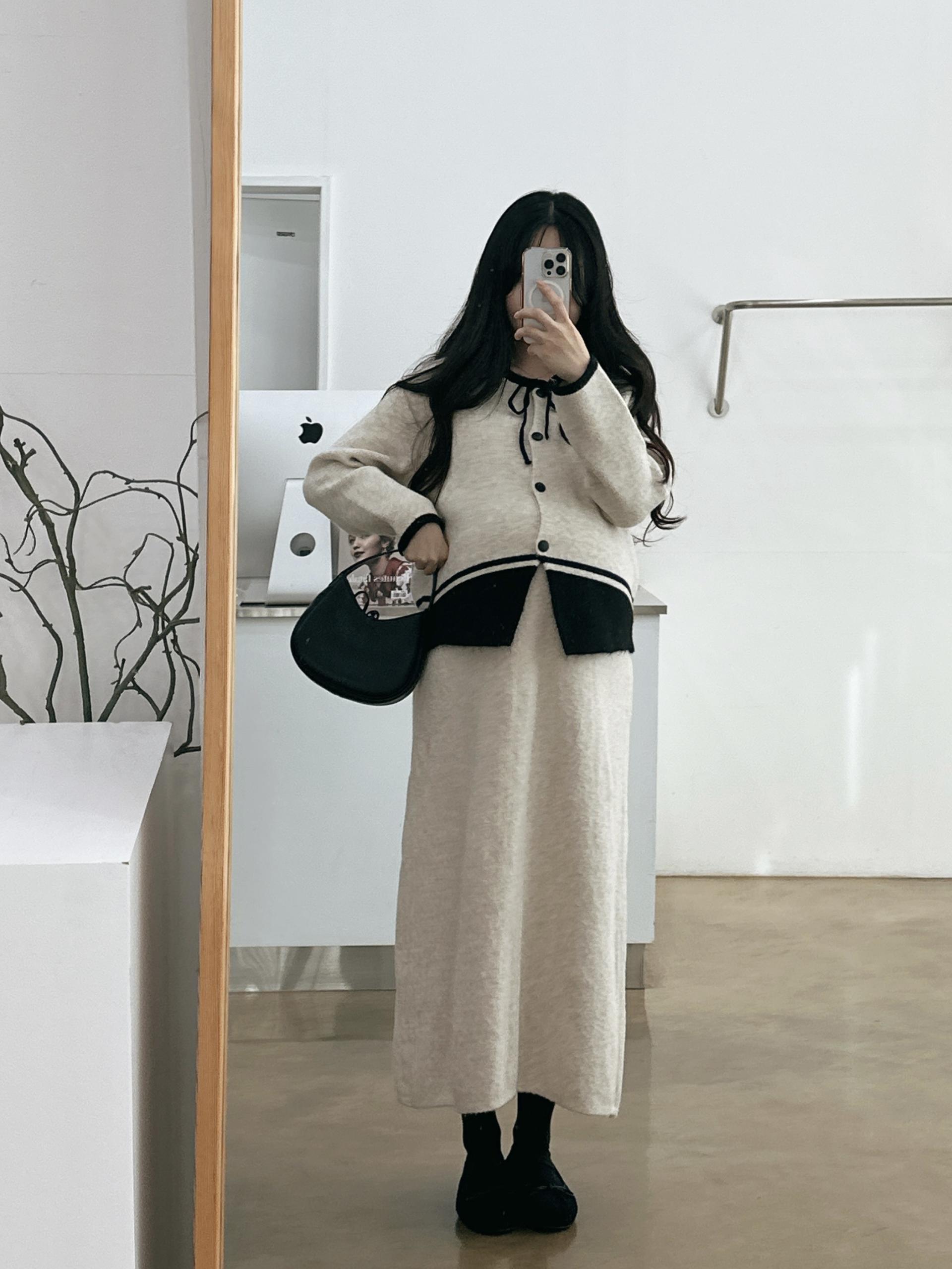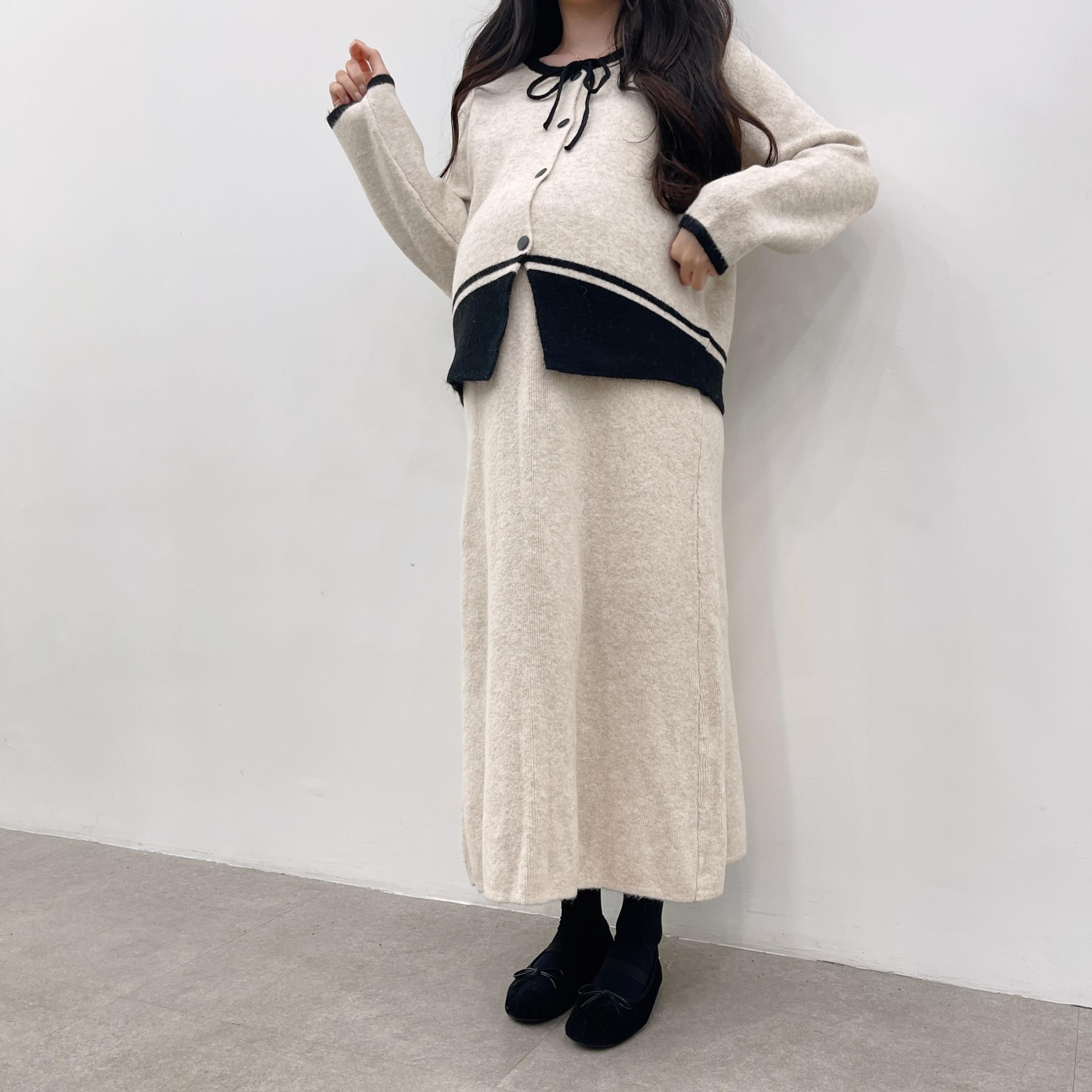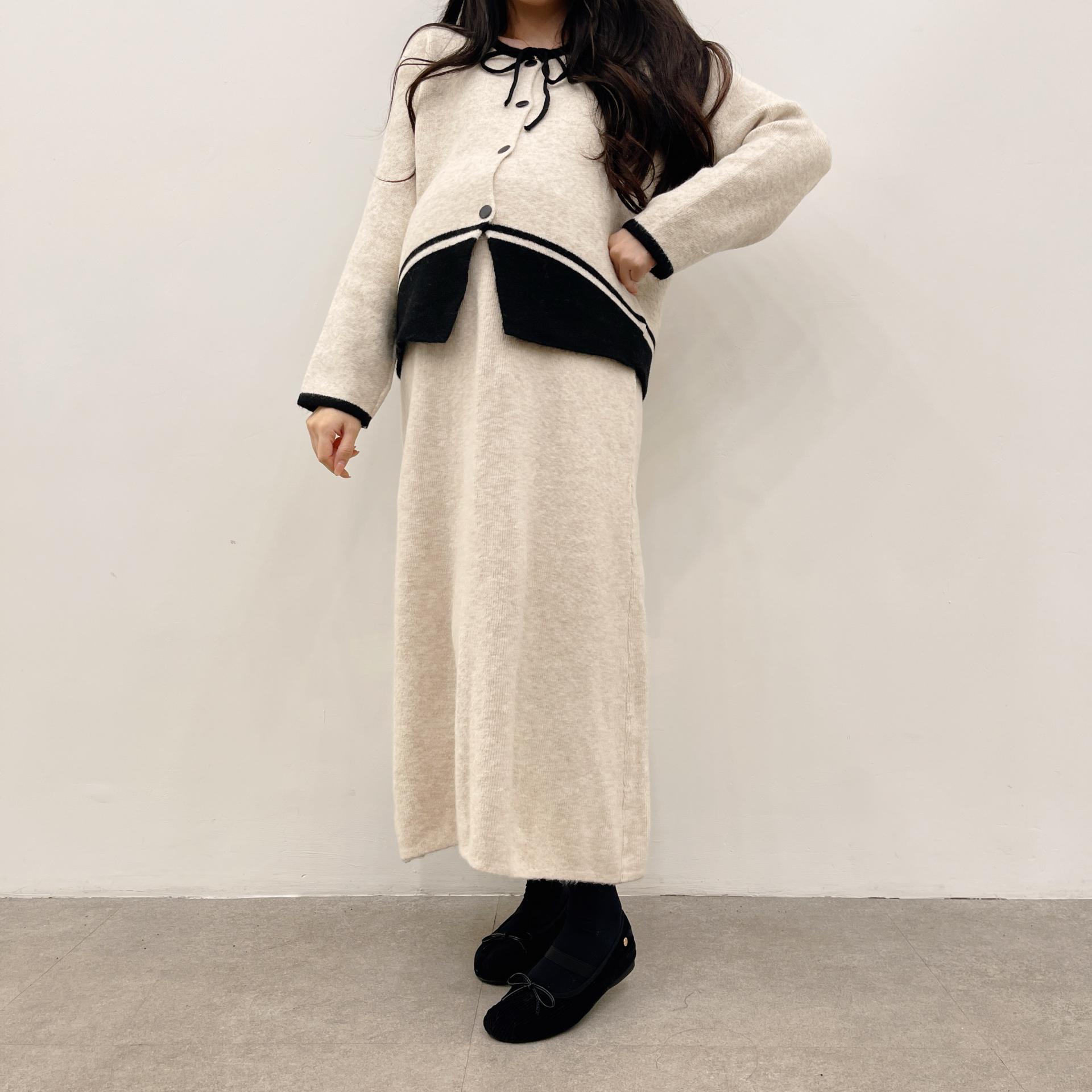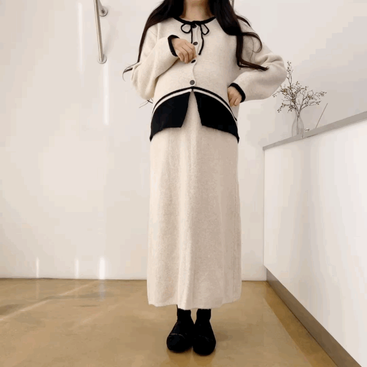 배색 리본니트SET