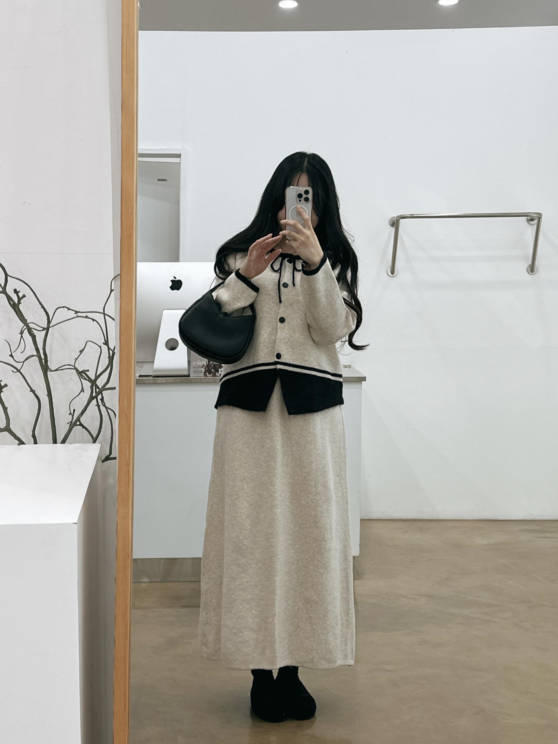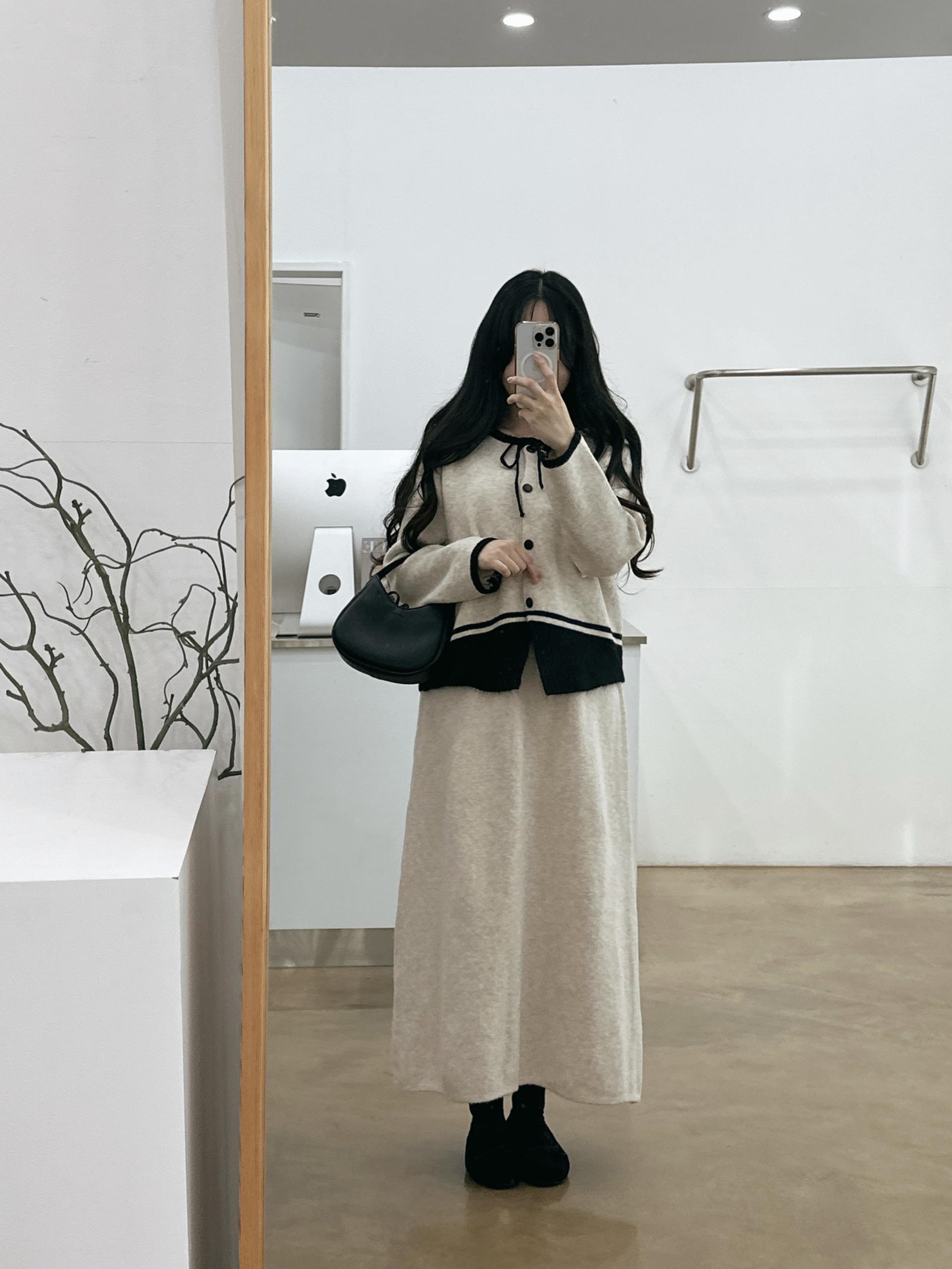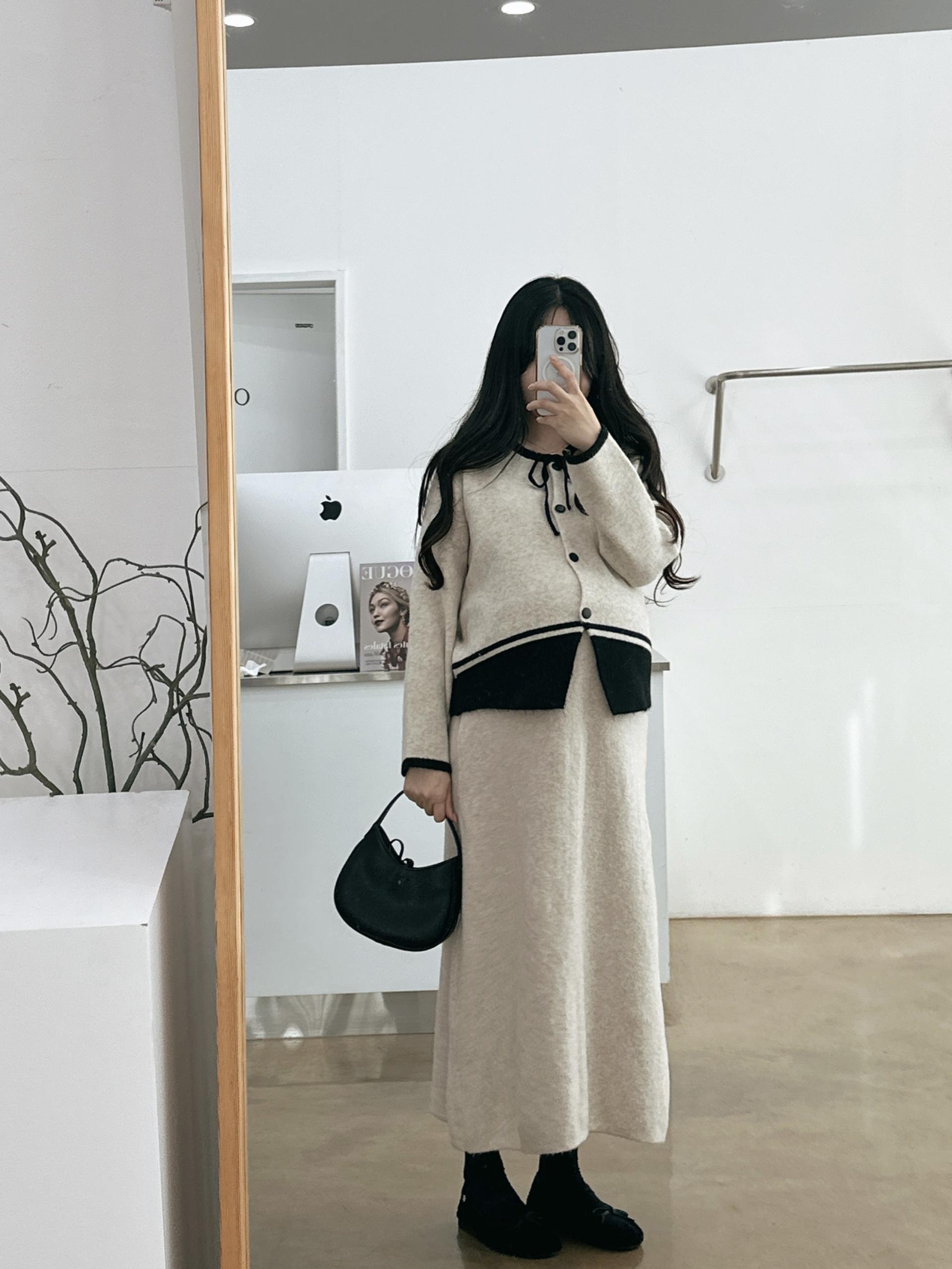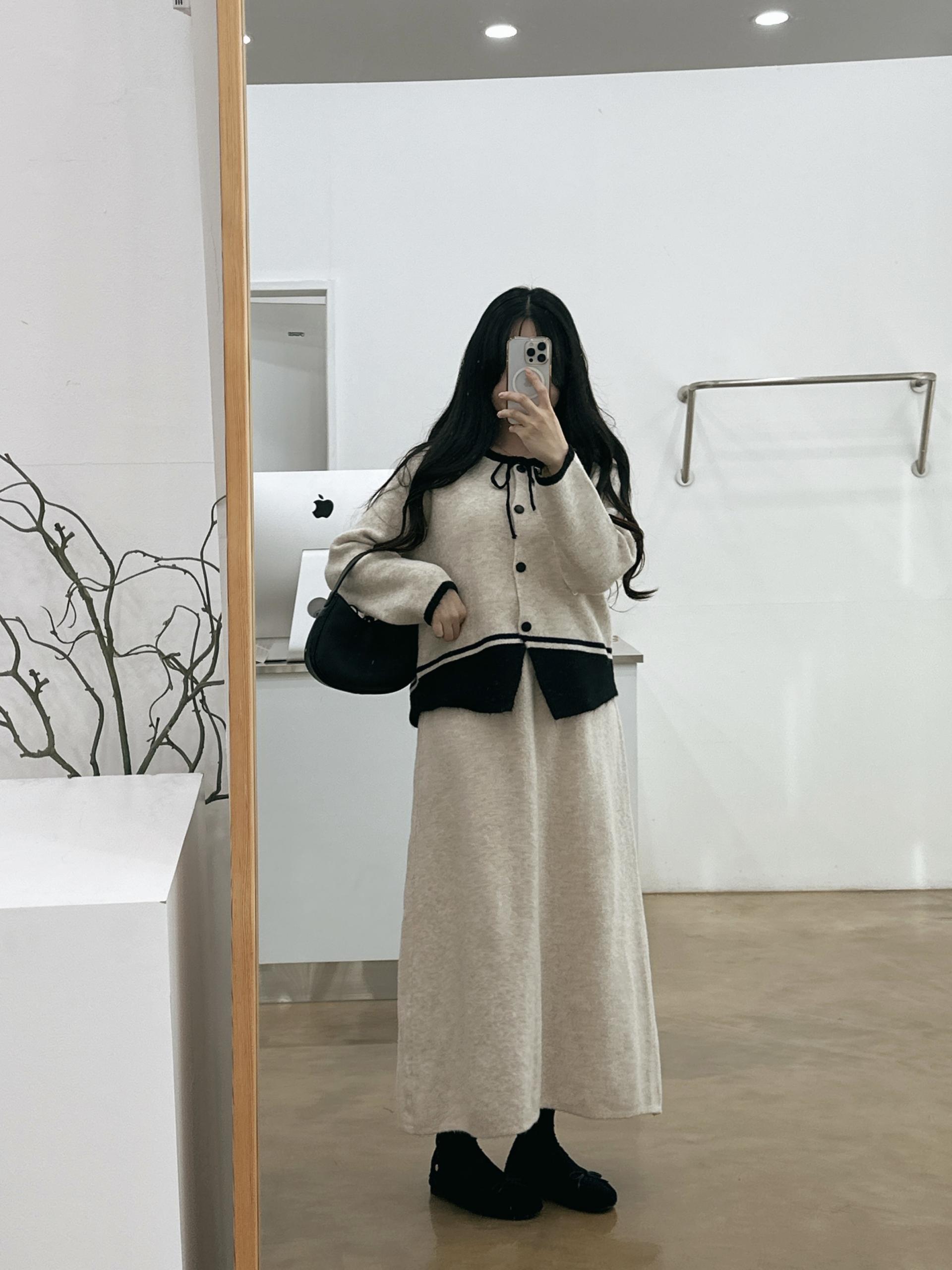 배색 리본니트SET