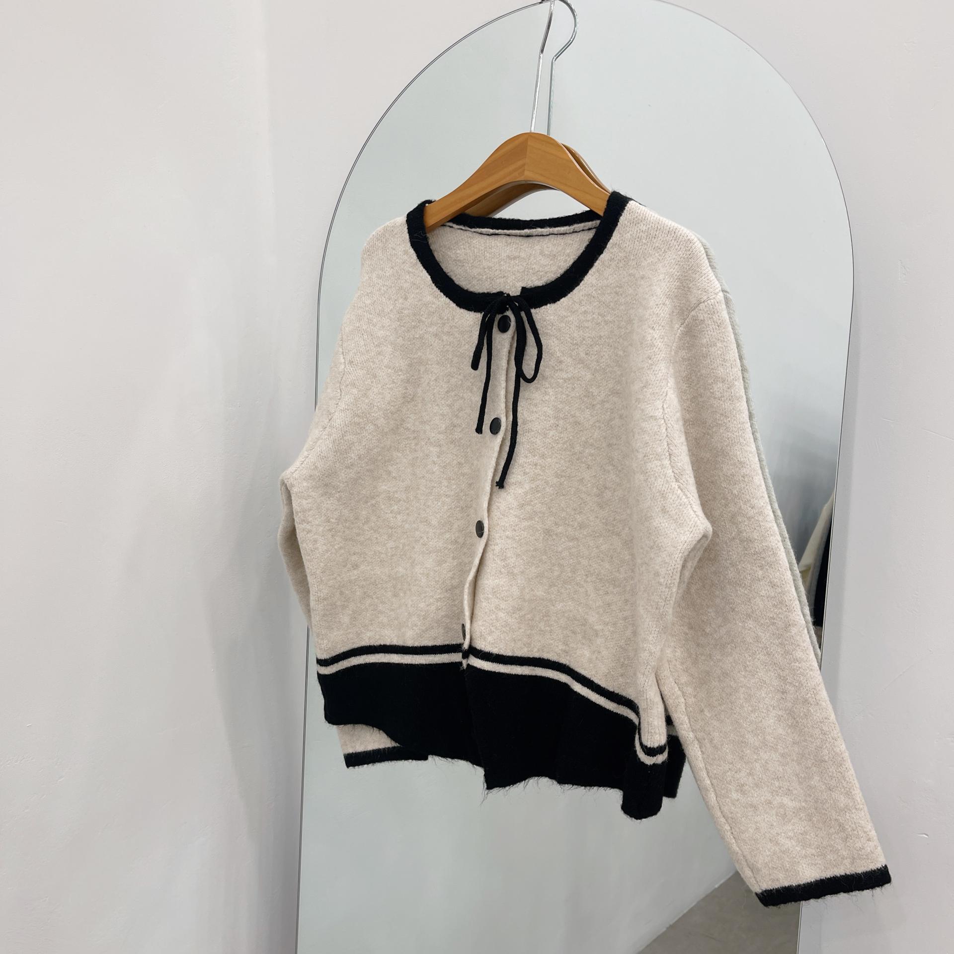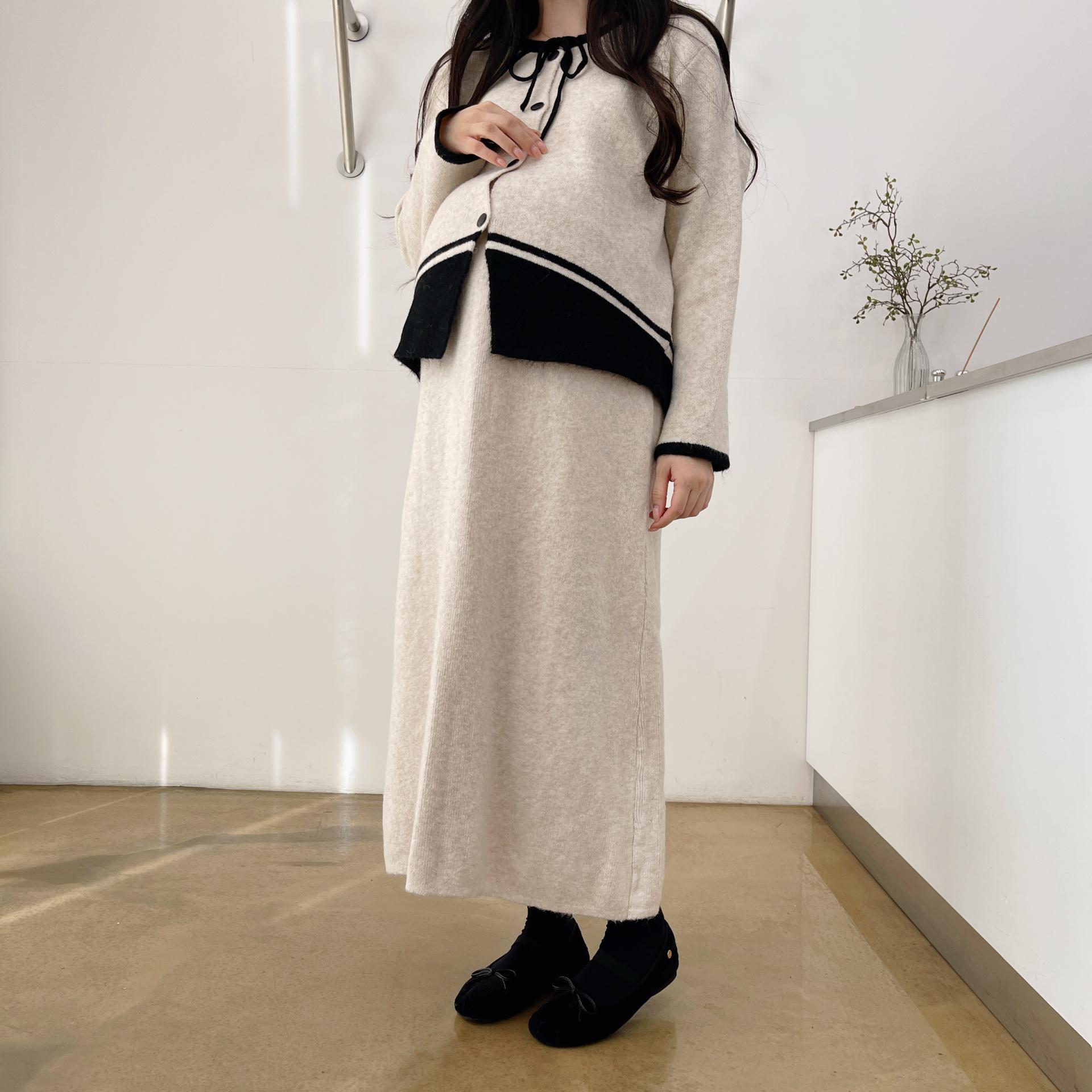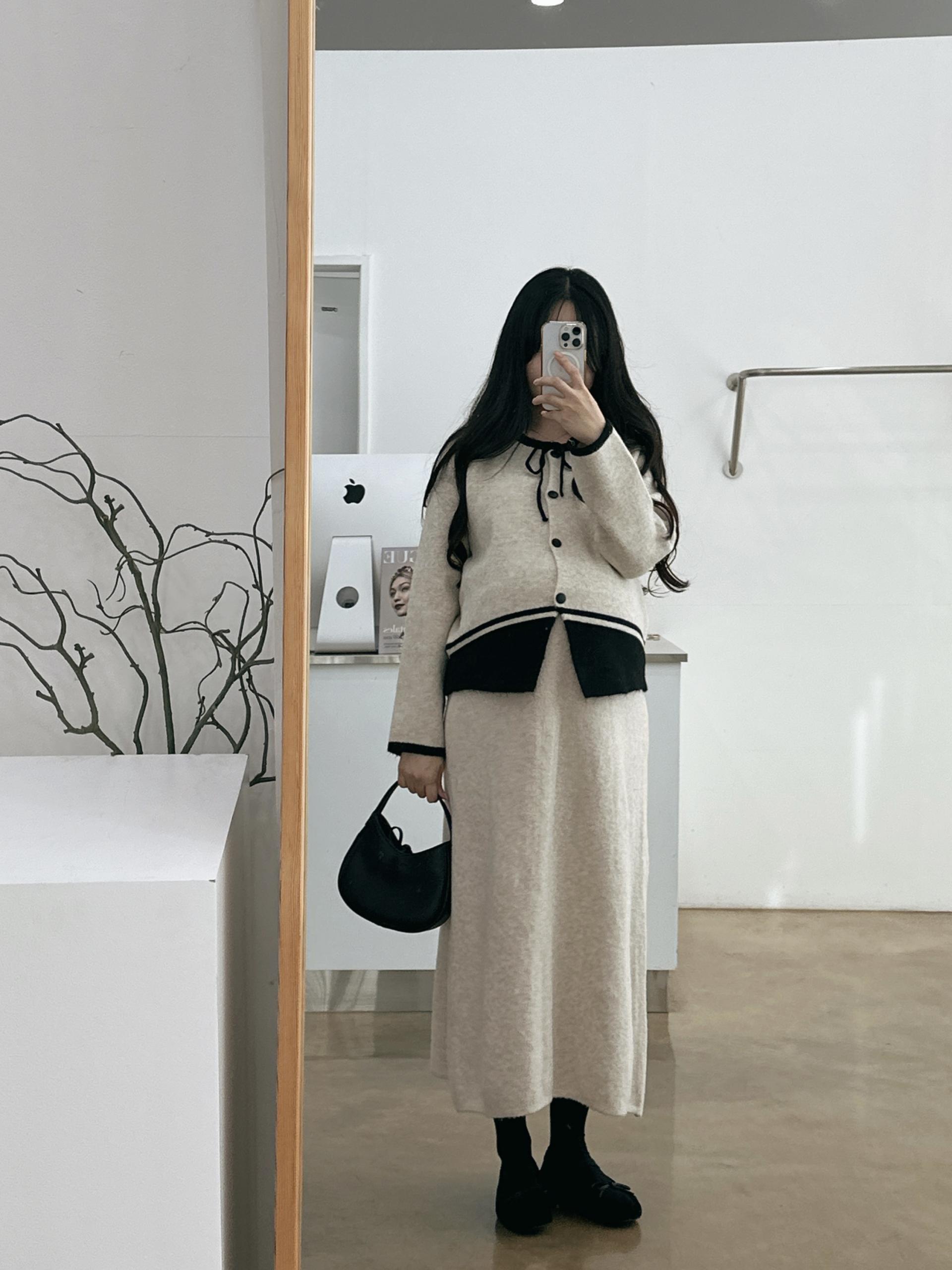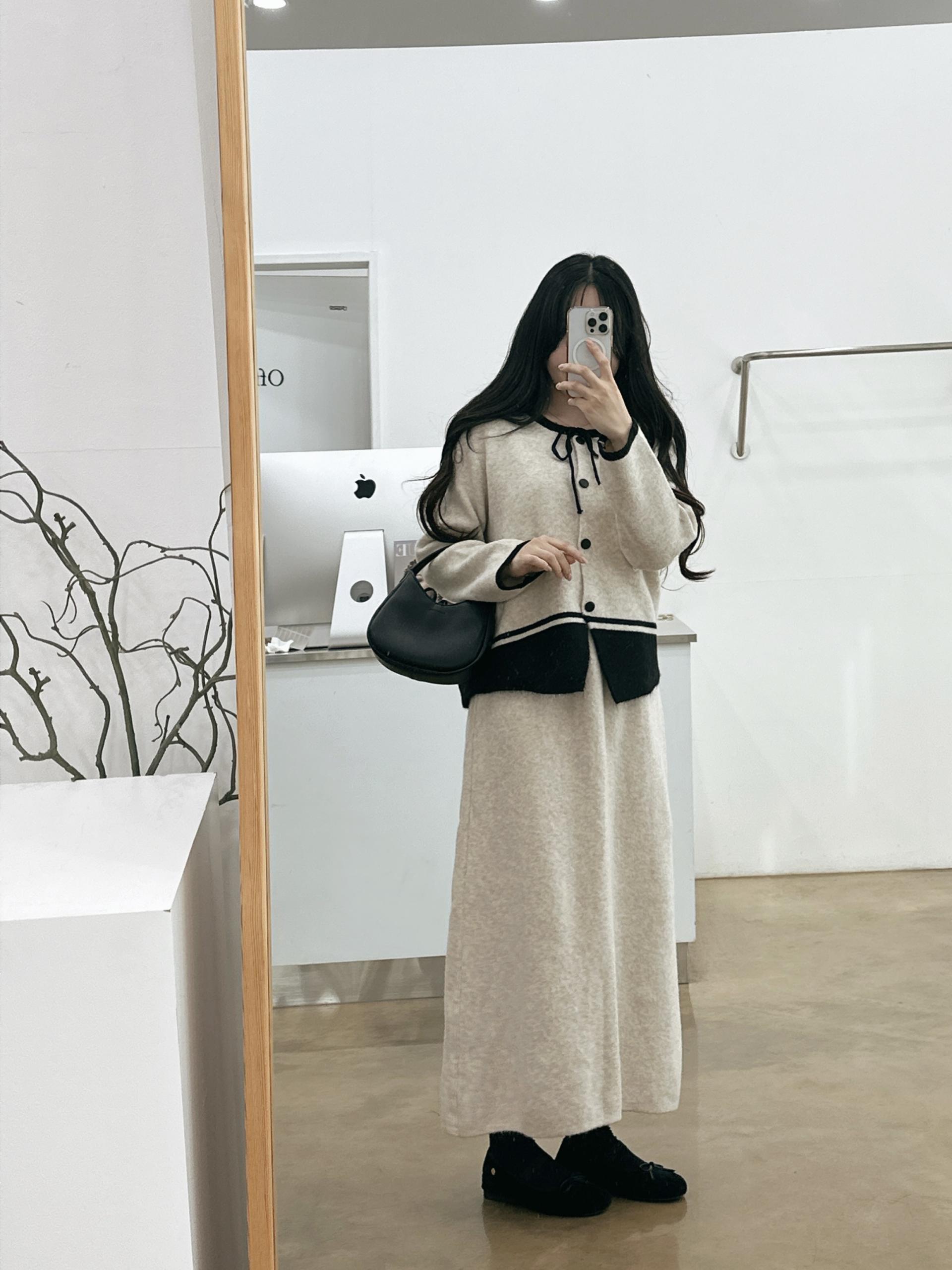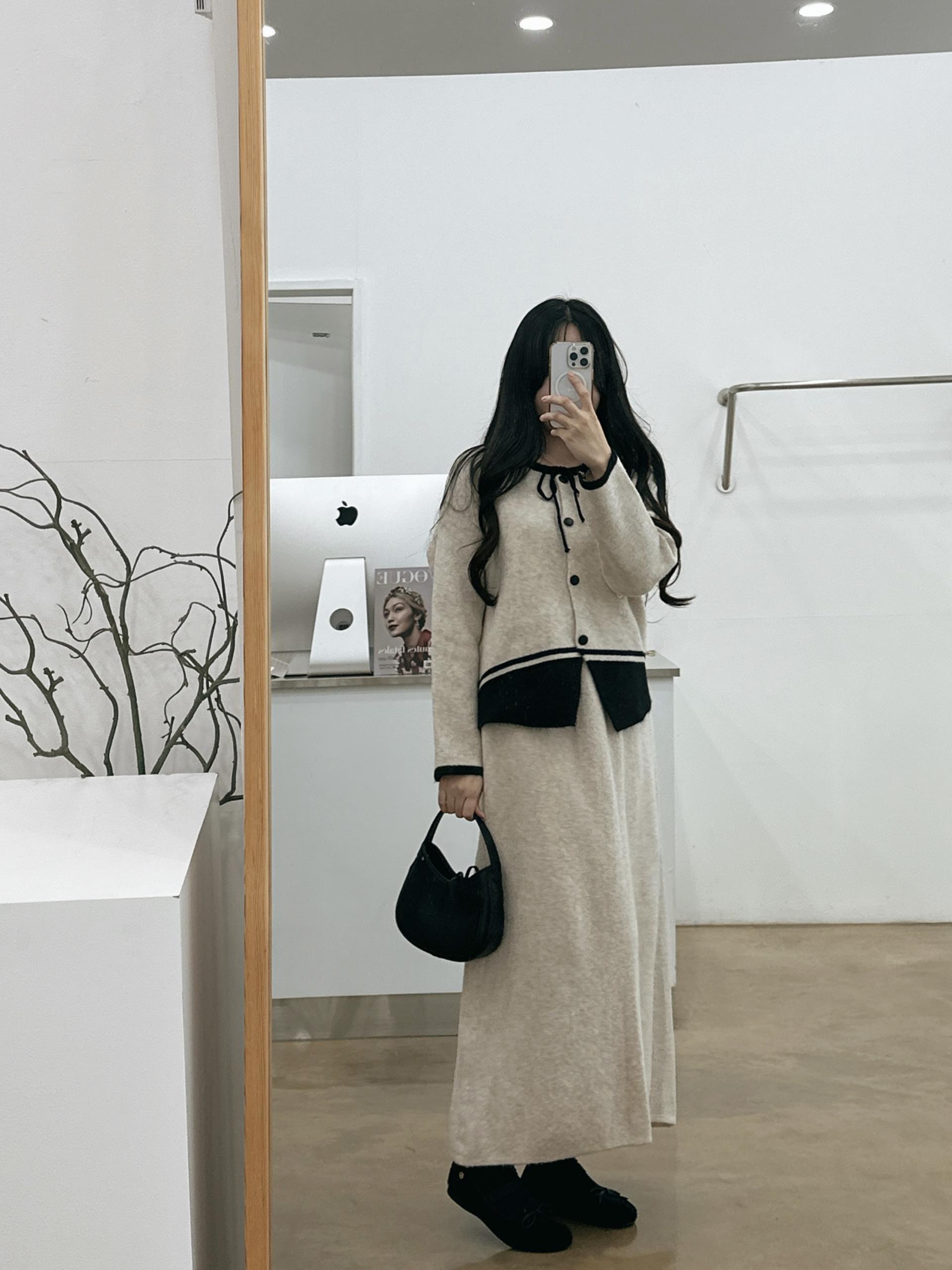 배색 리본니트SET