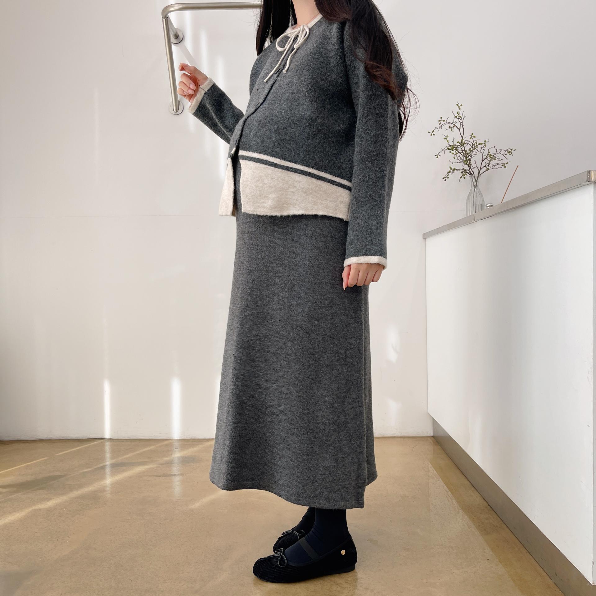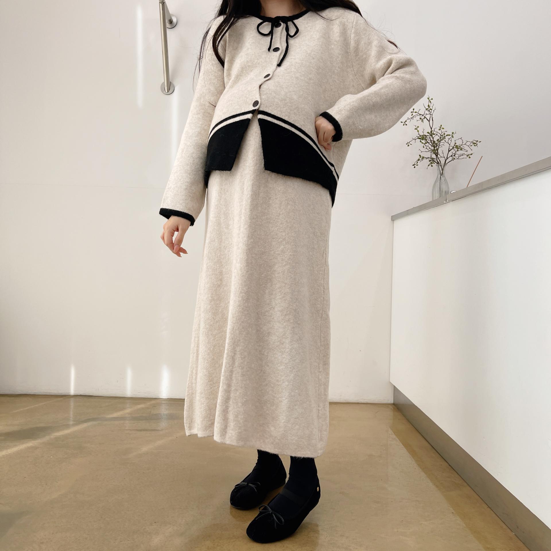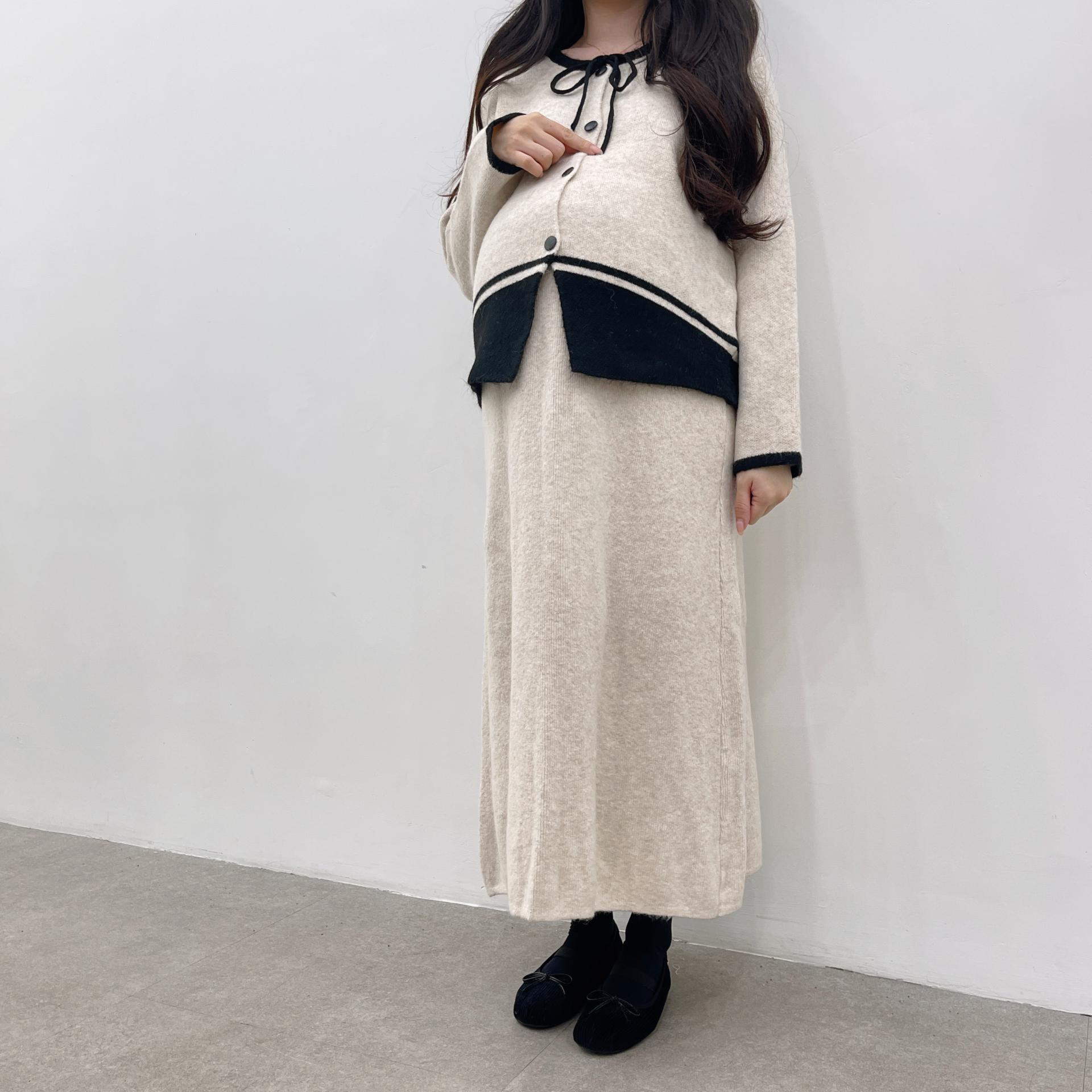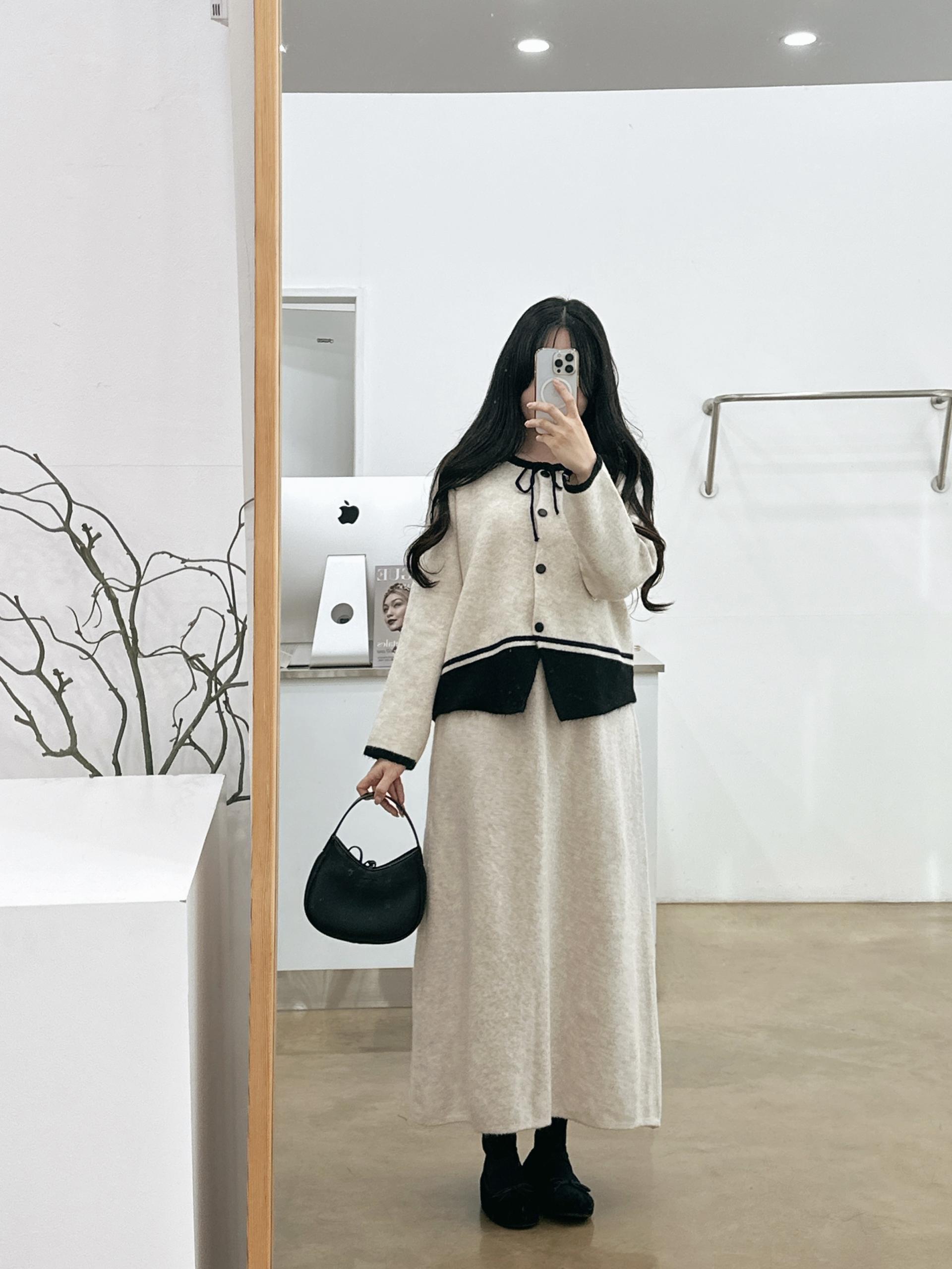 배색 리본니트SET