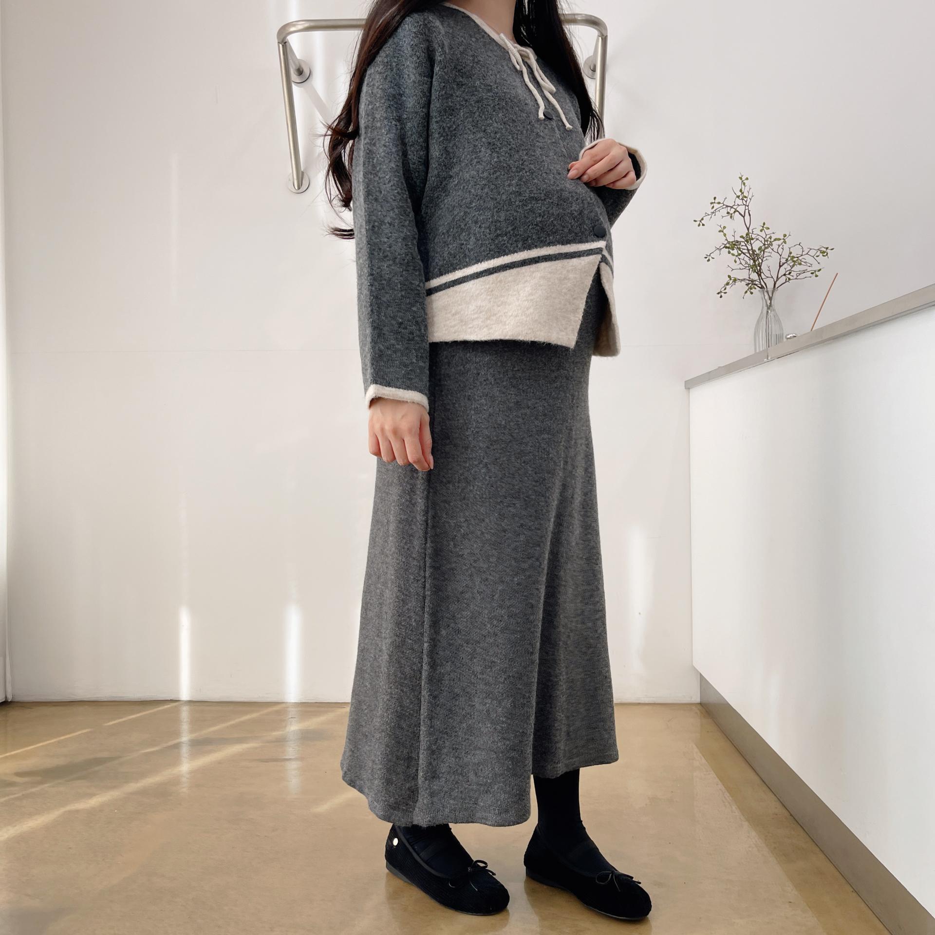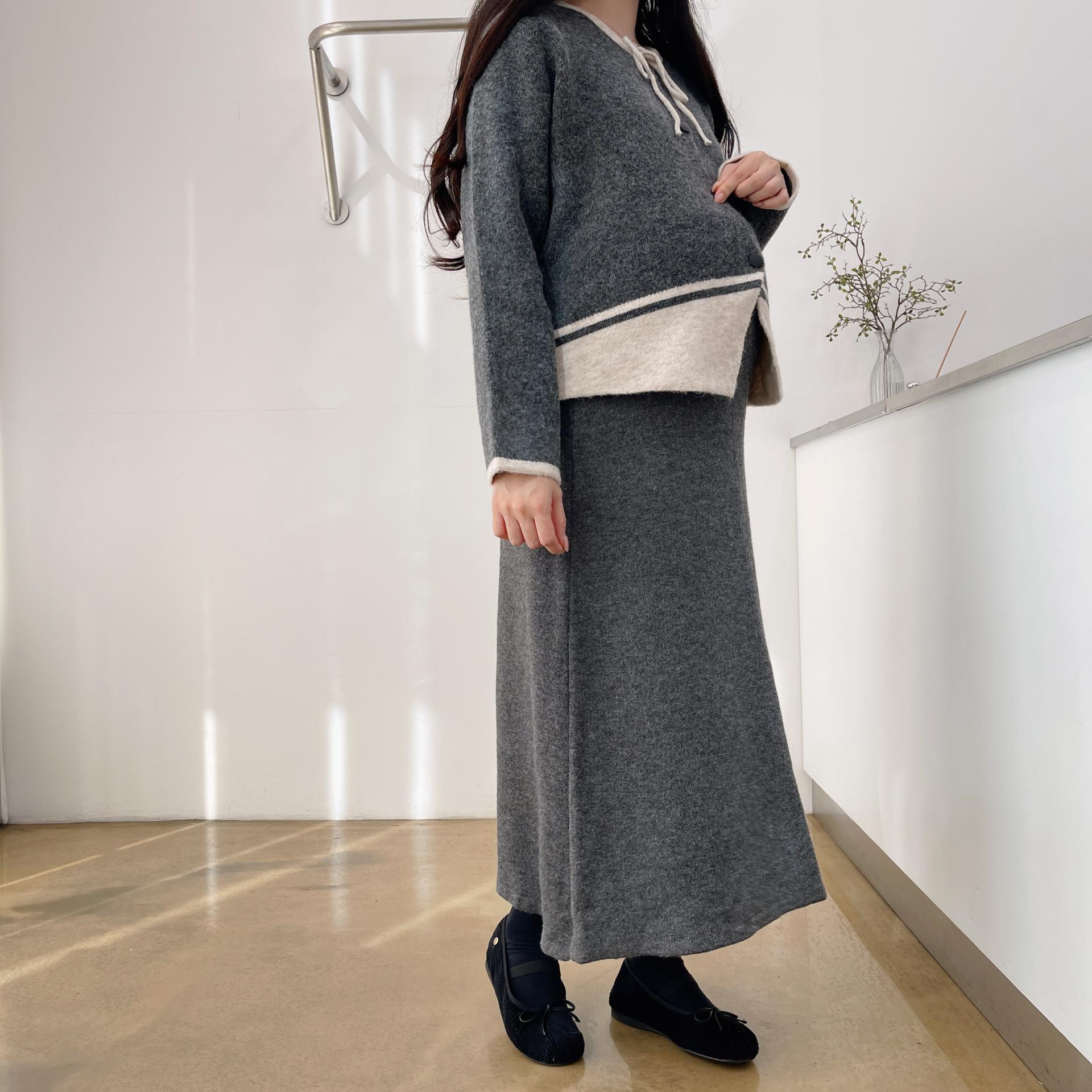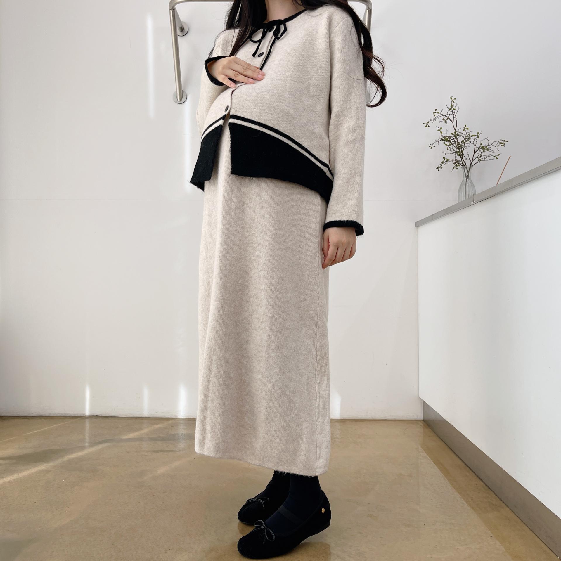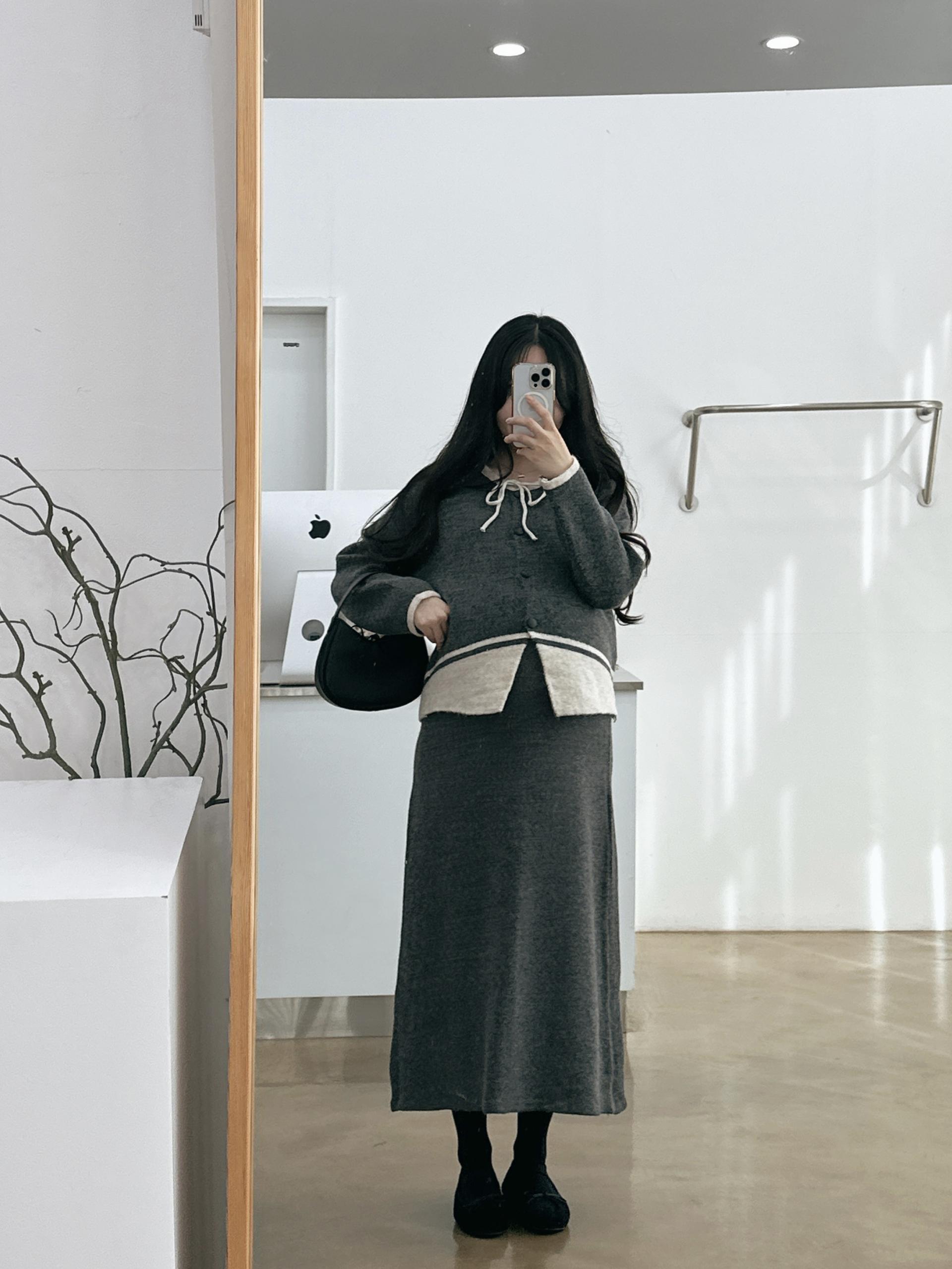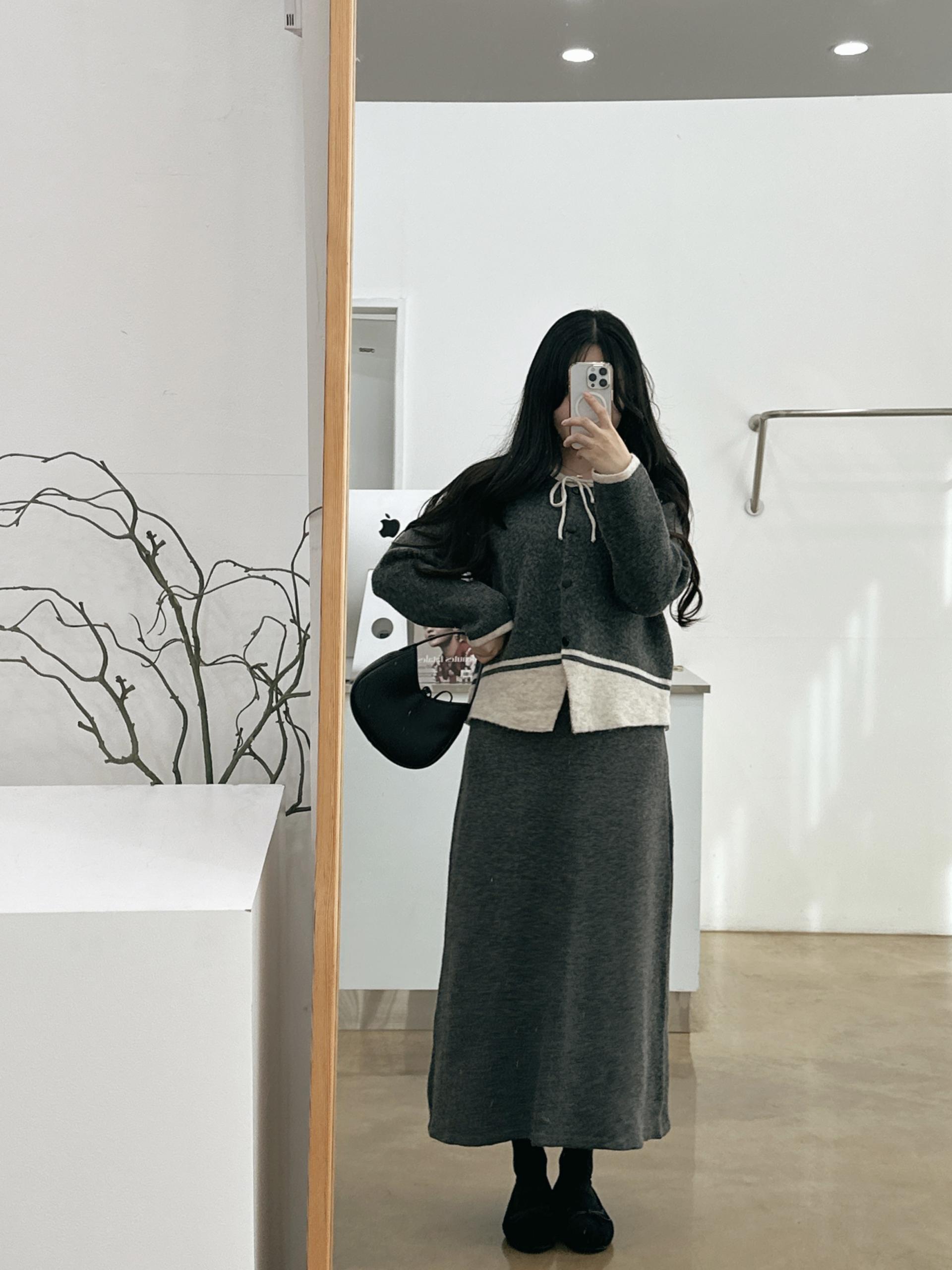 배색 리본니트SET