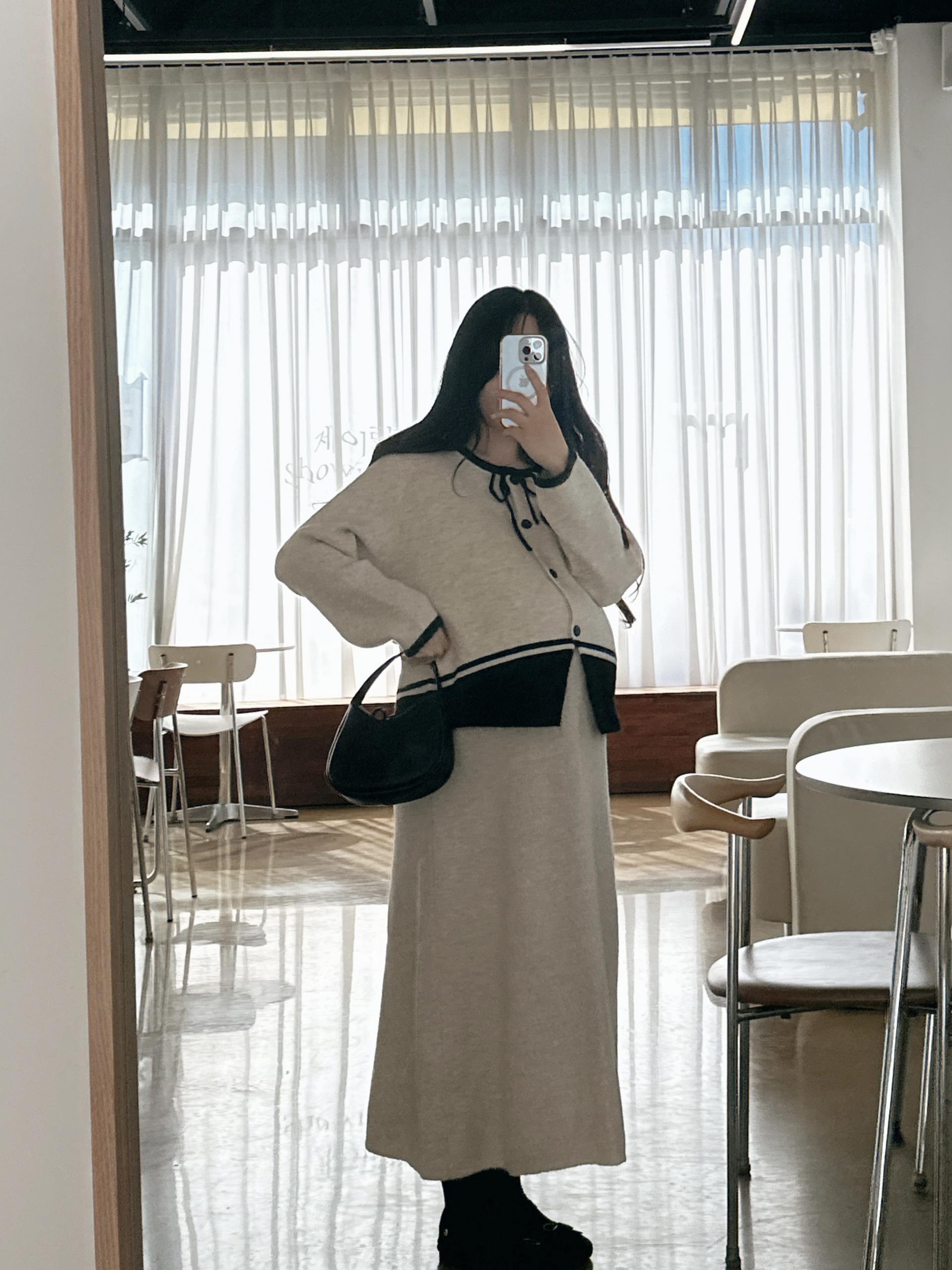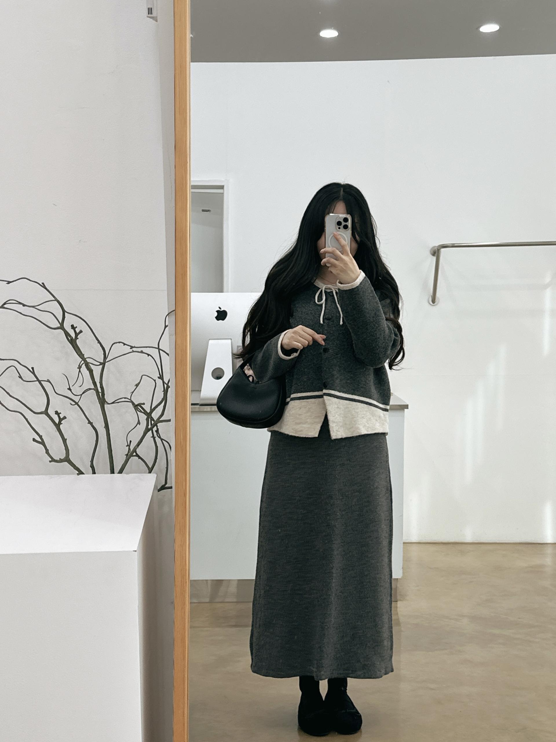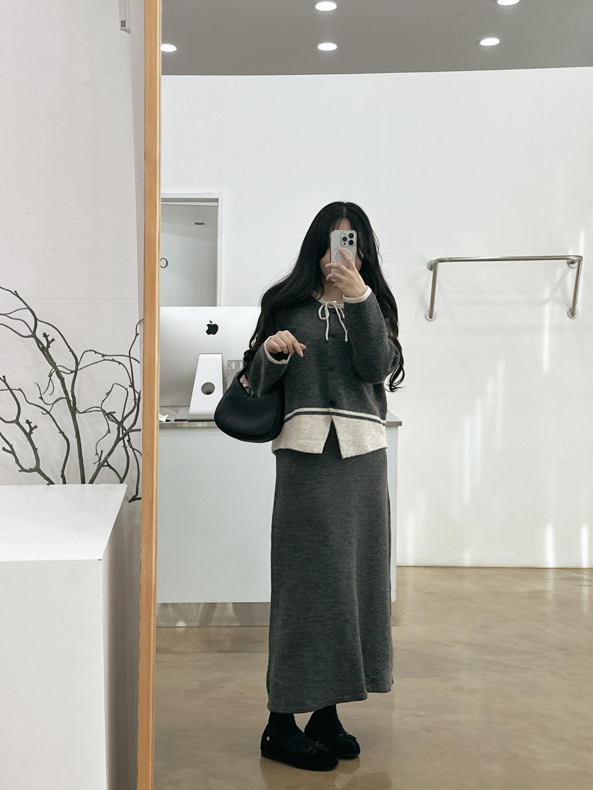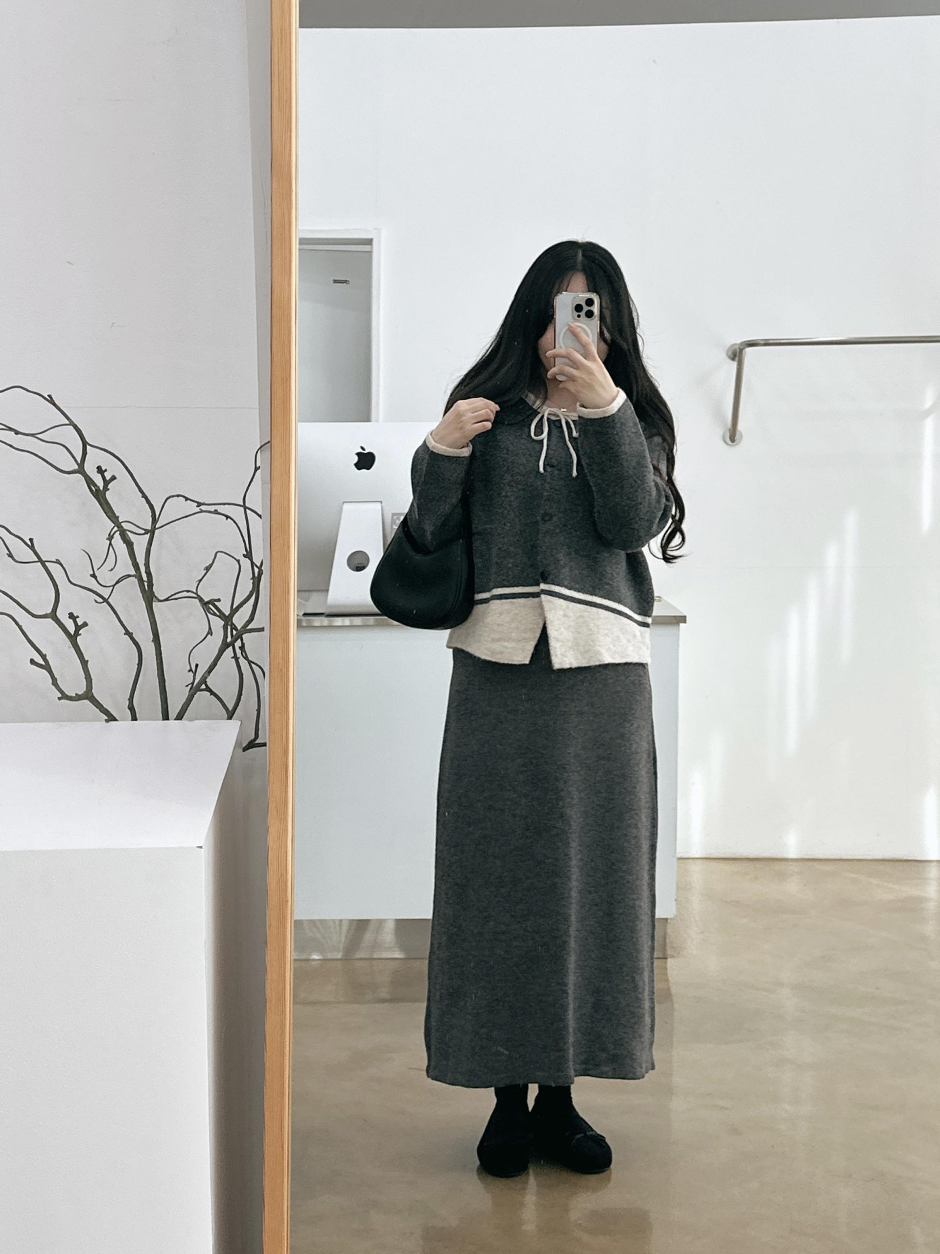 배색 리본니트SET
