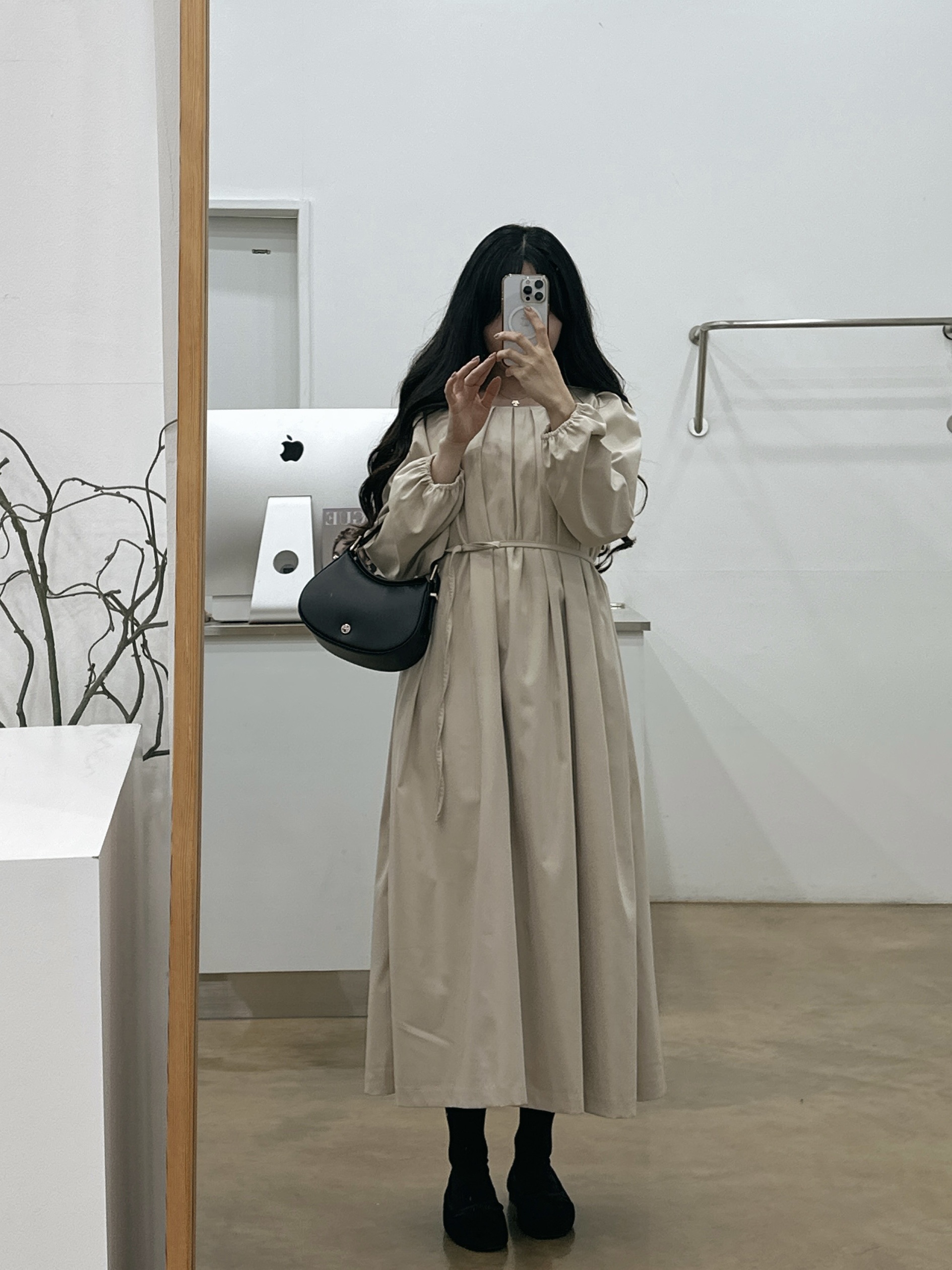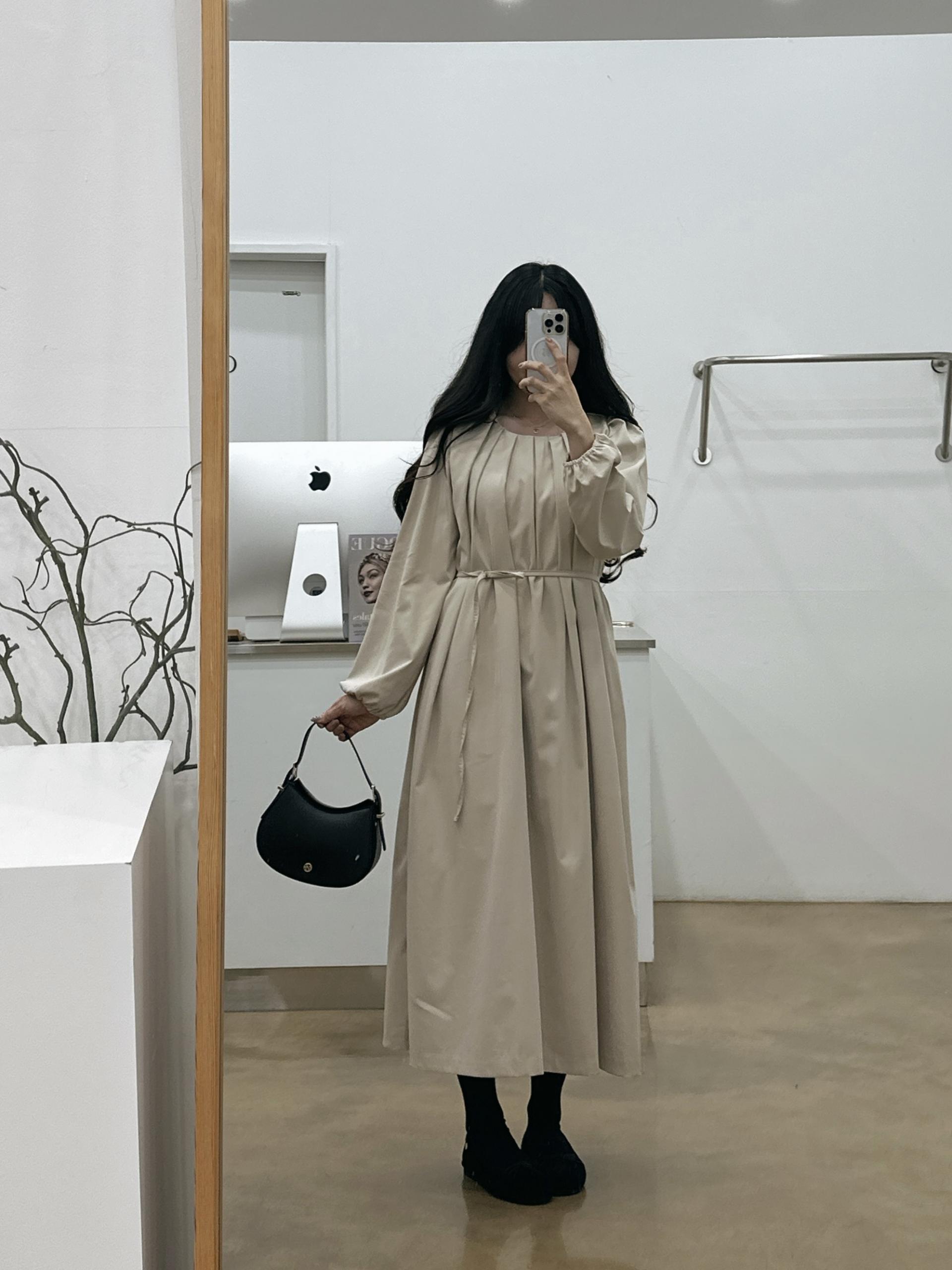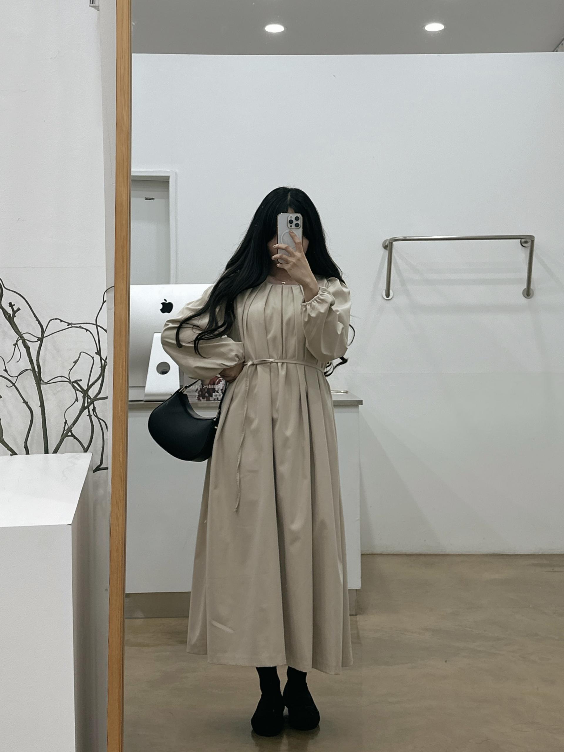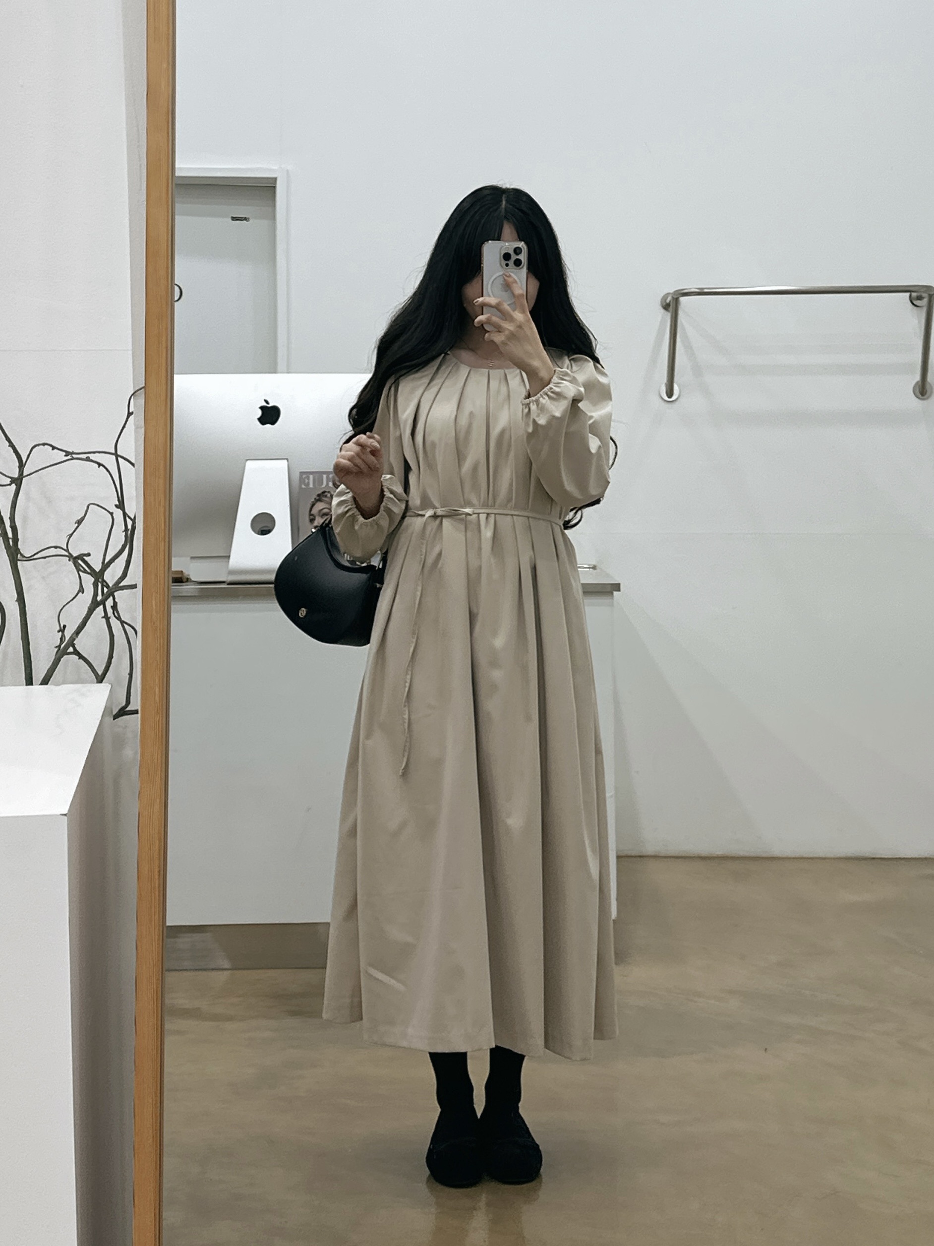 넥라인 핀턱과 벨트끈이 좀 더 고급스러운 느낌을 만들어줘요