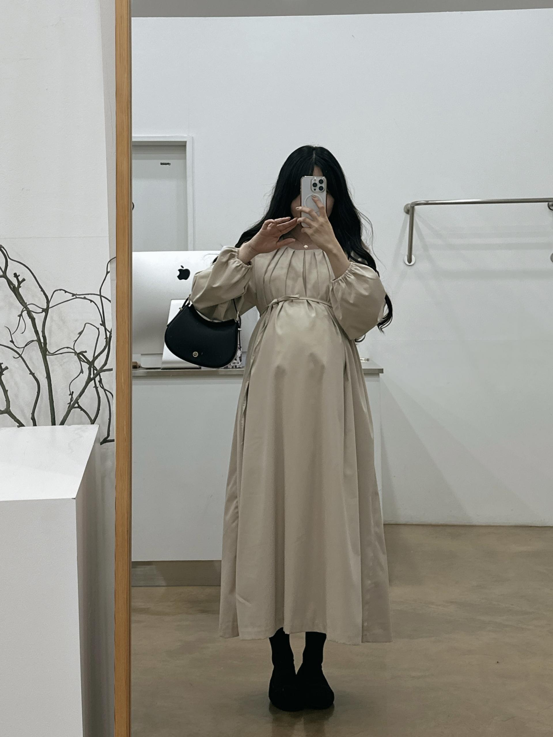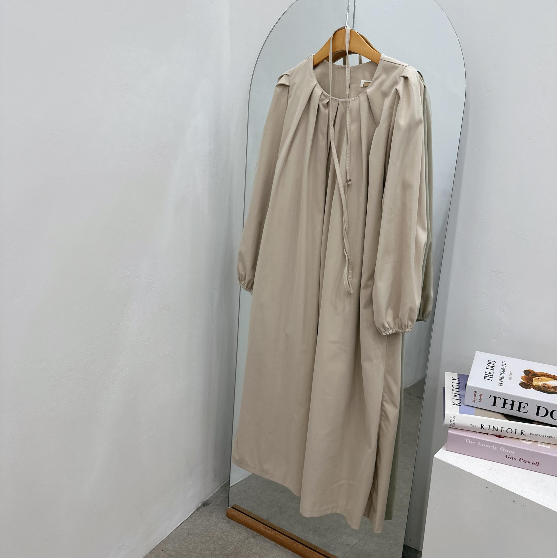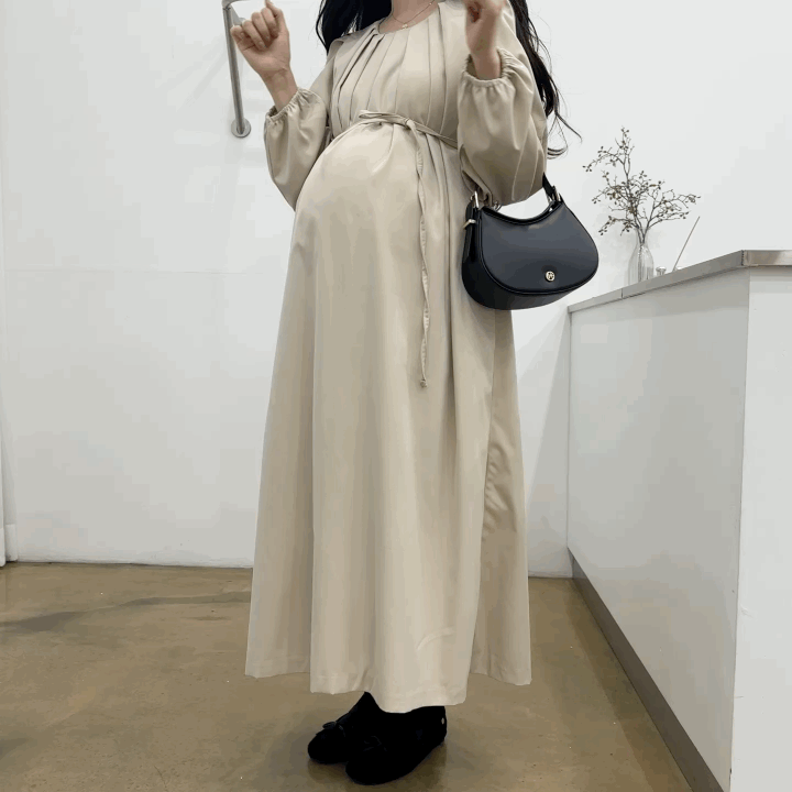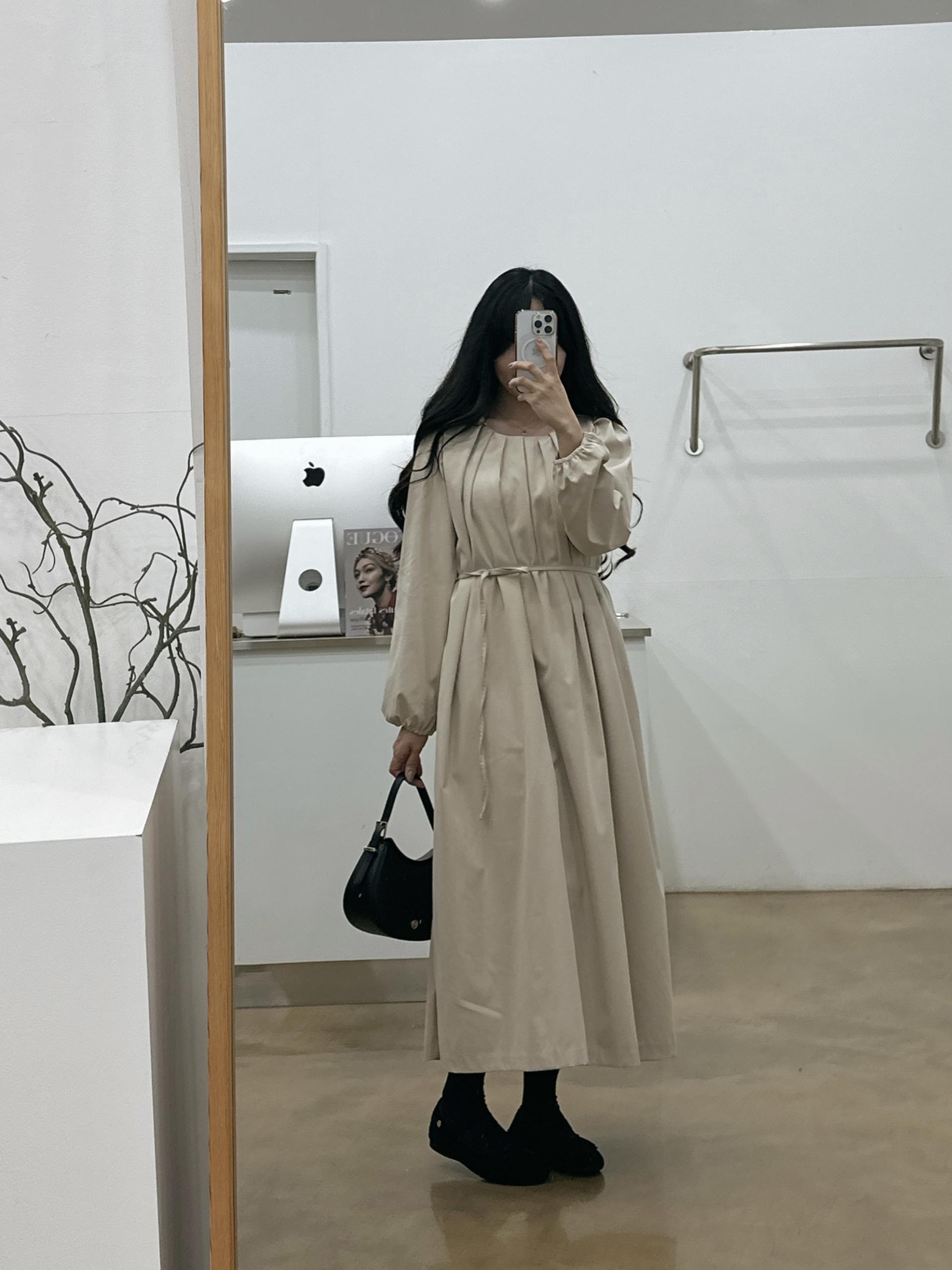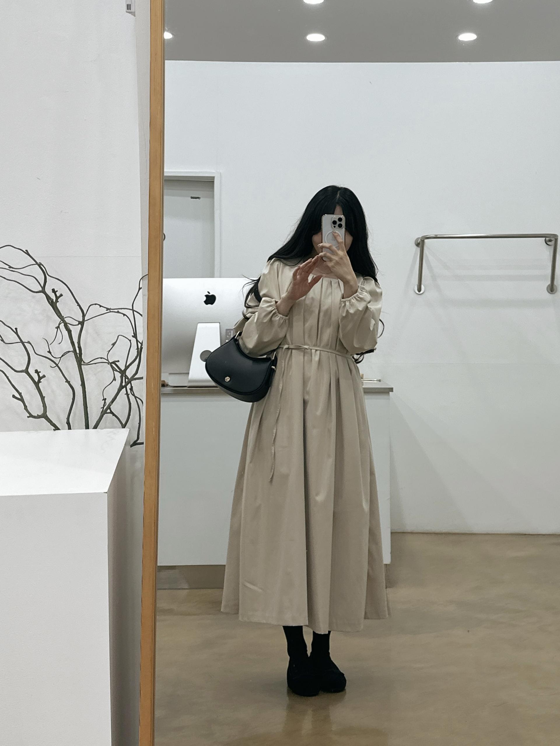 넥라인 핀턱과 벨트끈이 좀 더 고급스러운 느낌을 만들어줘요
